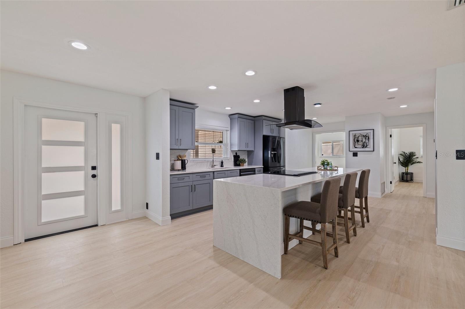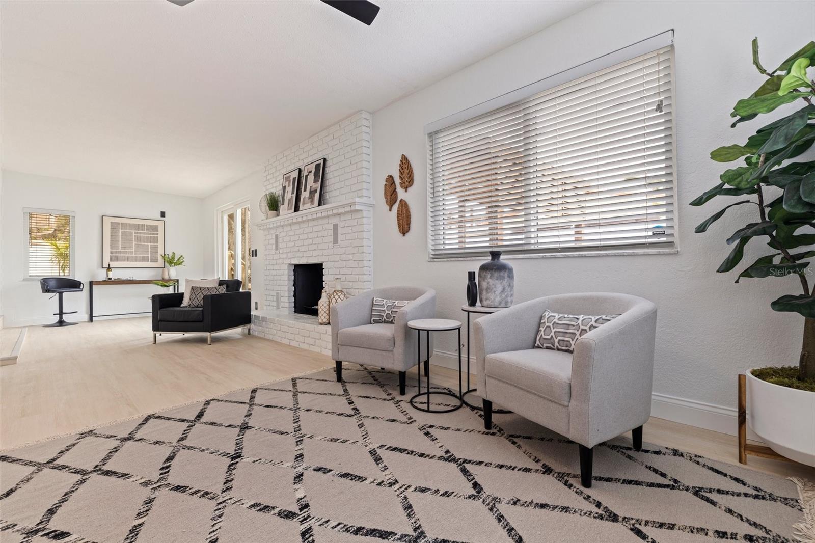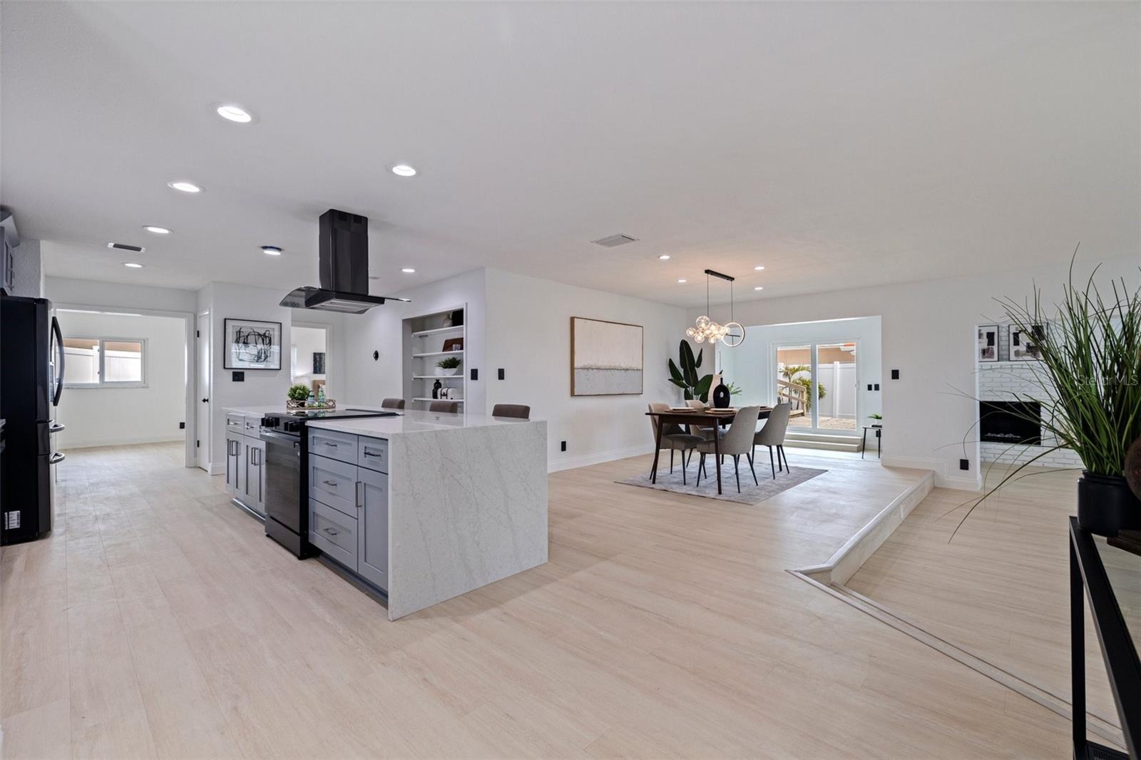 Situated just moments from the prestigious Park Street, this beautifully renovated all-block home offers an exceptional 4-bedroom, 3-bathroom layout with a spacious open floor plan and brand-new luxury plank flooring throughout. The affordable flood insurance is only $1888 a year! At the heart of the home, the fully remodeled kitchen is a chef’s dream with a large central island, sleek quartz countertops, and high-end stainless steel appliances. The layout effortlessly flows into the dining and living areas, creating a perfect space for both relaxing and entertaining. The master suite, located privately on one side of the home, features a spa-like ensuite bathroom with a walk-in shower and a separate soaking tub, offering a luxurious retreat. On the opposite side, two additional bedrooms share a large Jack and Jill bathroom, perfect for family or guests. The versatile 4th bedroom has an ensuite bathroom with a walk-in glass shower. Towards the rear of the home, a sitting area beckons with its inviting fireplace and seamless flow to the expansive backyard oasis. Here, a sprawling wood deck and covered lanai await, offering ample space for al fresco dining, relaxation, and entertaining under the Florida sun. Enhanced by a brand-new roof, hurricane impact windows, and a new water heater, this home ensures peace of mind and energy efficiency year-round. Additional highlights include a convenient 2-car garage and picturesque water views visible from the front and side yards. Perfectly positioned just a short 5-minute drive from award-winning beaches, this turnkey gem invites you to embrace the quintessential Florida lifestyle. Don't miss your chance to call this remarkable property home—schedule your private showing today and make your dreams a reality!