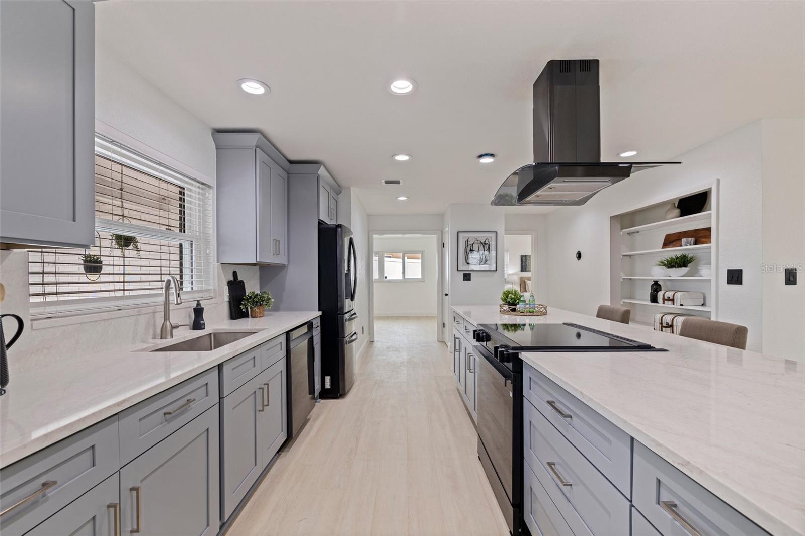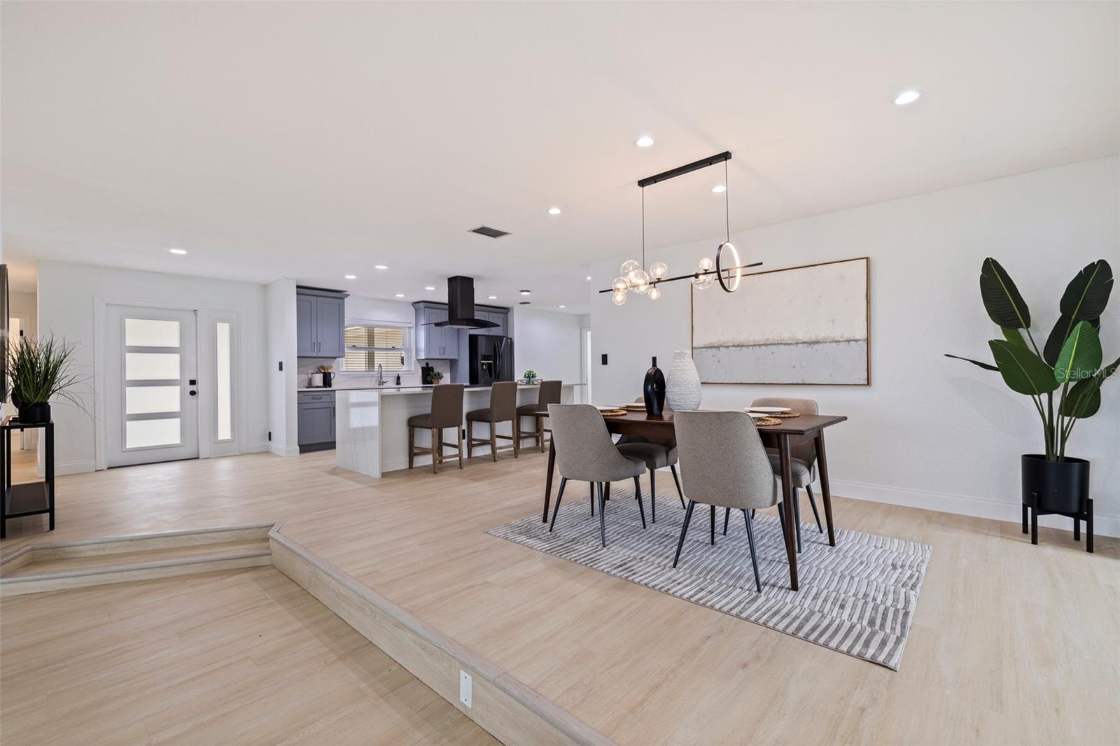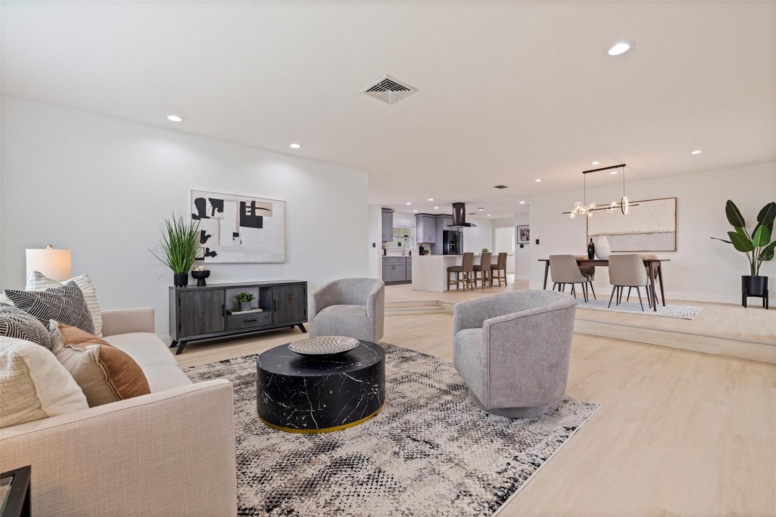 Situated just moments from the prestigious Park Street, this beautifully renovated all-block home offers an exceptional 4-bedroom, 3-bathroom layout with a spacious open floor plan and brand-new luxury plank flooring throughout. The affordable flood insurance is only $1888 a year! At the heart of the home, the fully remodeled kitchen is a chef’s dream with a large central island, sleek quartz countertops, and high-end stainless steel appliances. The layout effortlessly flows into the dining and living areas, creating a perfect space for both relaxing and entertaining. The master suite, located privately on one side of the home, features a spa-like ensuite bathroom with a walk-in shower and a separate soaking tub, offering a luxurious retreat. On the opposite side, two additional bedrooms share a large Jack and Jill bathroom, perfect for family or guests. The versatile 4th bedroom has an ensuite bathroom with a walk-in glass shower. Towards the rear of the home, a sitting area beckons with its inviting fireplace and seamless flow to the expansive backyard oasis. Here, a sprawling wood deck and covered lanai await, offering ample space for al fresco dining, relaxation, and entertaining under the Florida sun. Enhanced by a brand-new roof, hurricane impact windows, and a new water heater, this home ensures peace of mind and energy efficiency year-round. Additional highlights include a convenient 2-car garage and picturesque water views visible from the front and side yards. Perfectly positioned just a short 5-minute drive from award-winning beaches, this turnkey gem invites you to embrace the quintessential Florida lifestyle. Don't miss your chance to call this remarkable property home—schedule your private showing today and make your dreams a reality!