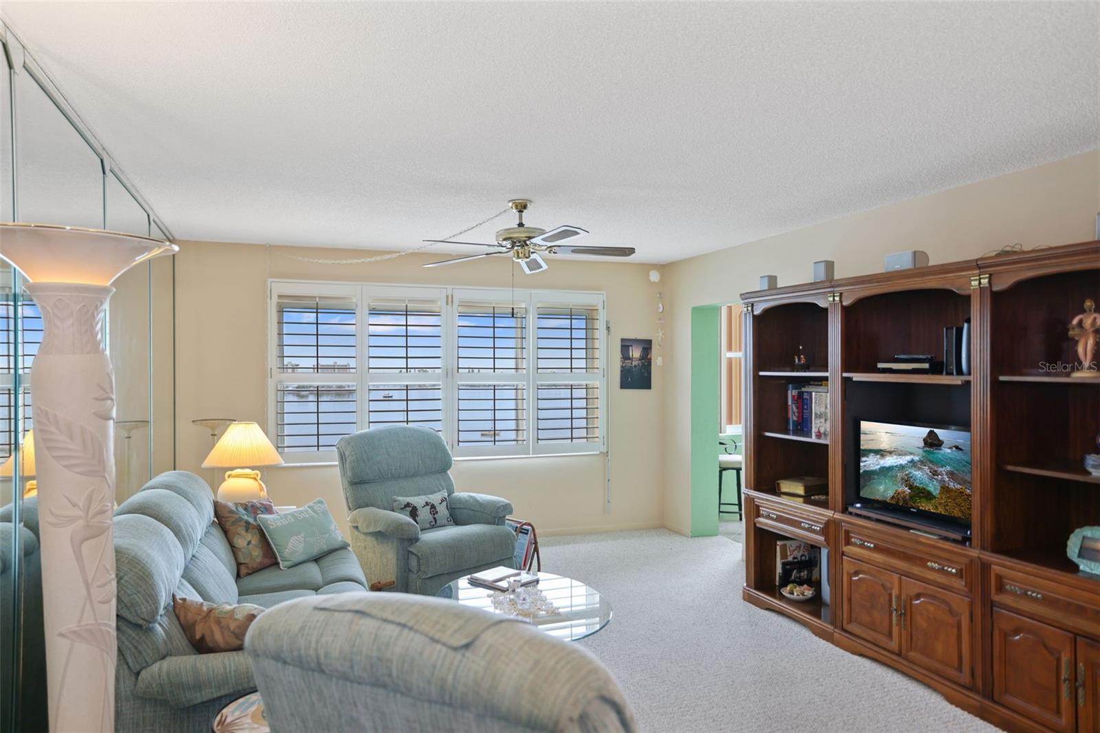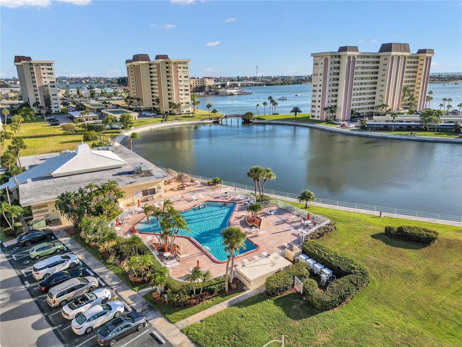Welcome to Sea Towers! This is an active 55+ community located on the intracoastal waterway and just minutes from the Gulf beaches. This 2 bedroom, 2 bath unit on the 10th floor offers AMAZING water views! Inside you will find a comfortable floorplan, spacious kitchen, primary bedroom with ensuite bath and a Florida room with plenty of windows to showcase the sunset views. Climate comfort is provided by a newer central air conditioner (2021). A carport is included, to provide protection for your vehicle. Plantation shutters offer a touch of island-style to the interior and hurricane shutters offer exterior protection. The complex revels in the Florida lifestyle: relax on the intracoastal waterway, use picnic shelter with BBQ grills or practice on the putting green. You will enjoy amazing sunsets, firework displays and boat parades. Social functions abound in this sought after 55+, waterfront community, gated, 24/7 security. 2 pools (cooled in summer & heated in winter). Fishing docks, covered picnic shelters, BBQ grills, clubhouse, shows, potluck dinners, dances, bingo, darts, cards, games, tennis, pickle ball, shuffleboard, water aerobics, saunas and fitness center. Full-time social director. Stroll around the lagoon and enjoy the beautiful tropical landscaping. Walk to shopping, restaurants, banking, American Legion, and only 1 mile to the beautiful Gulf beaches. Minutes to Seminole city Center, and the VA hospital. Yes, you really can have it all! Make an appointment today.