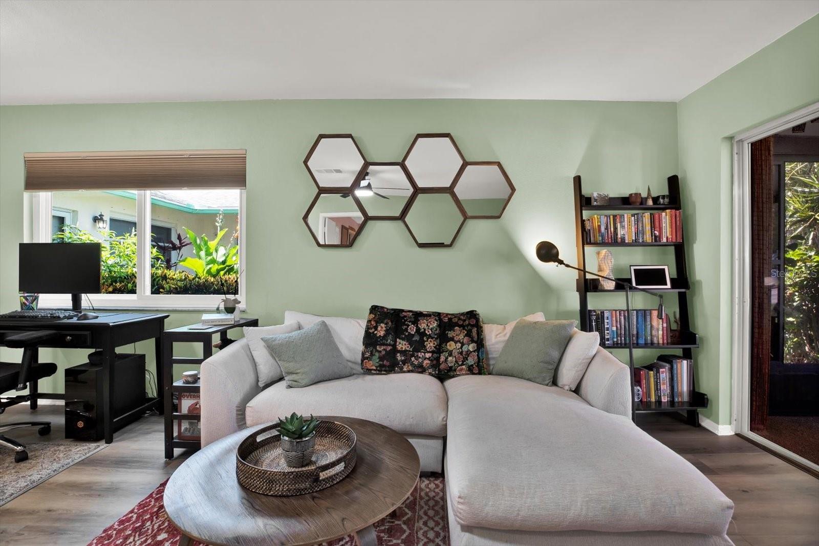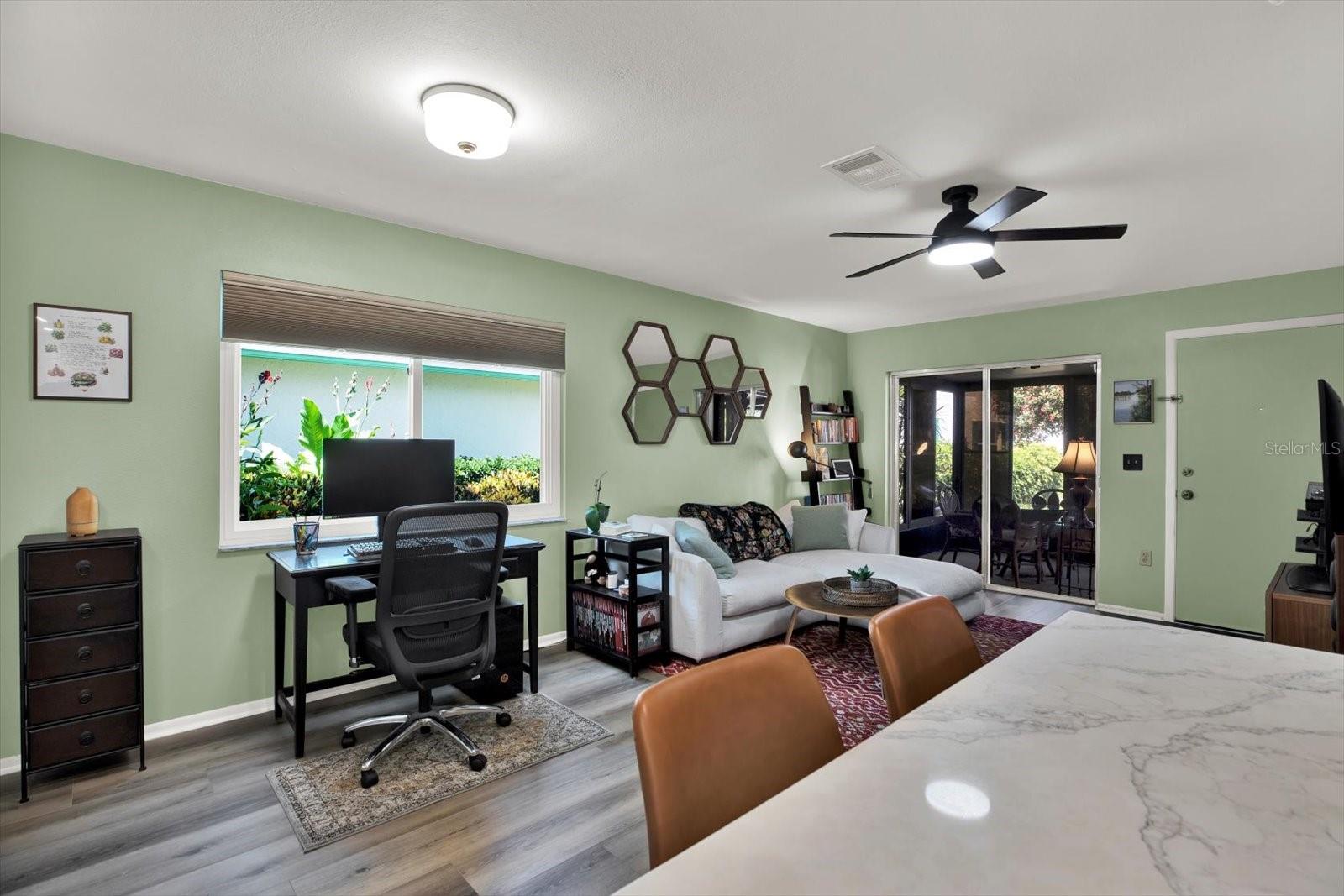 Beautifully renovated and rarely available, this single-story 1BR villa in gated West Shore Village blends style, comfort, and an unbeatable location. Over $35K in improvements (2023–2025) include a stunning kitchen/living reconfiguration with raised ceiling, wall removal for an open plan, new cabinets, countertops, tile backsplash, recessed lighting, modern fixtures, and a peninsula for extra storage and prep. Plumbing moved to add full-size Washer/Dryer; under-sink filtration added. Luxury vinyl plank floors, custom blinds, new fans, and fresh lighting run throughout. The king-sized bedroom features a large walk-in closet. A brand-new insulated lanai roof expands living by ~250 sq ft—creating the largest 1-bedroom lanai layout in the community. Private 1-car garage just steps from the front door with new opener. West Shore Village offers resort amenities: new tennis & pickleball courts, geothermal heated pool, shuffleboard, picnic areas, and a vibrant clubhouse with kitchen, library, billiards, and event space—plus frequent resident gatherings. Tucked in the peaceful western corner of Village 4 with gated access to Clam Bayou’s trails, kayak launch, and boardwalks. Minutes to I-275, downtown St. Pete, Gulfport, and award-winning beaches; everyday essentials nearby and a new Sprouts Market directly across the entrance (Nov 2025). Turnkey, single-level living—schedule your private tour today!