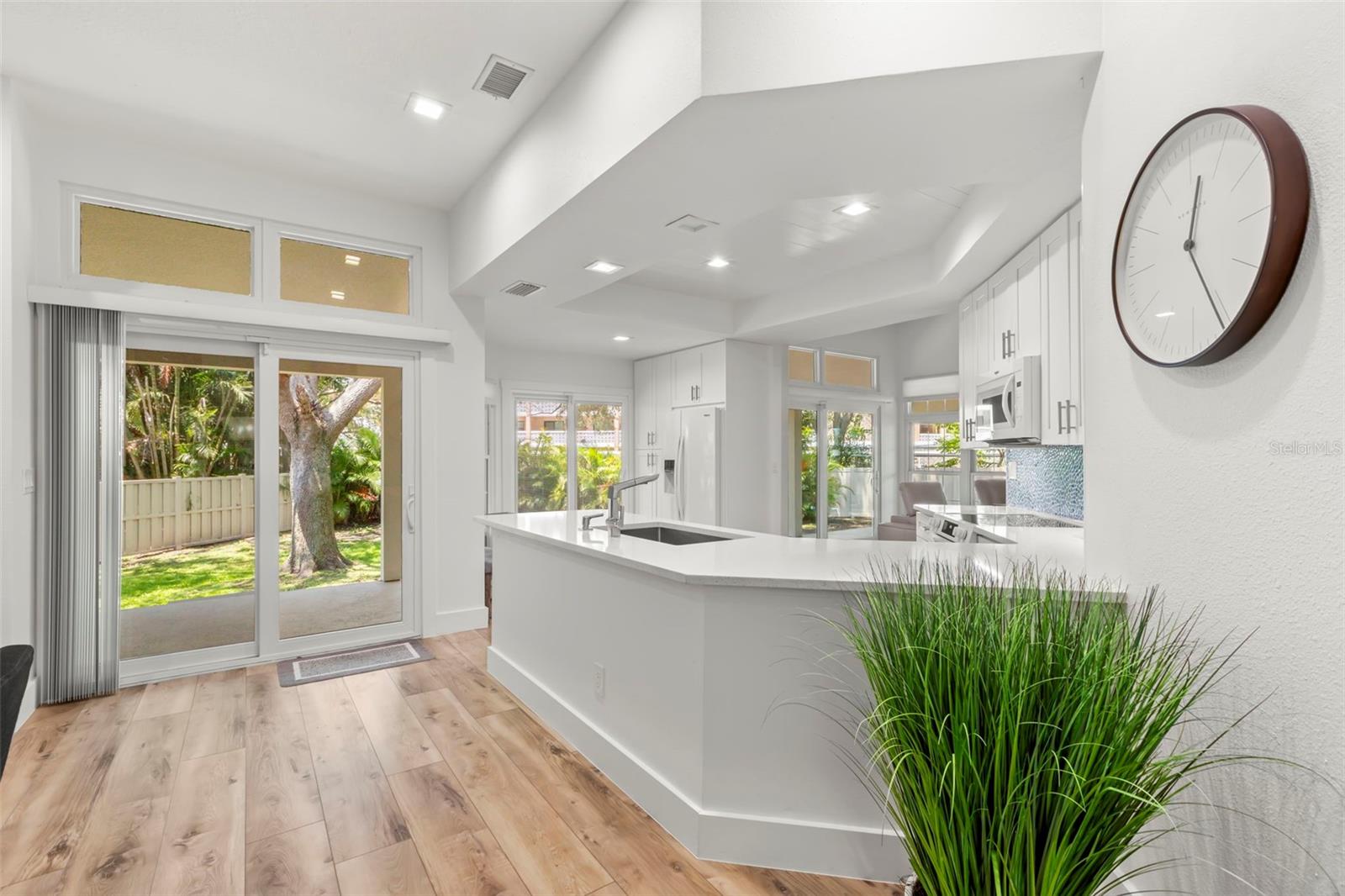 Behind the gates of the beautiful community of Placido Bayou, on one of its most peaceful streets, this completely renovated single-story townhome perfectly blends sophisticated design with everyday comfort. Bathed in natural light from all-new windows and enhanced by high ceilings, this 4-bedroom, 3-bathroom, 2085sqft residence exudes elegance and modern charm. With its thoughtfully designed split floor plan, the home offers an open layout that encourages gathering and entertaining, while still providing distinct spaces ideal for work or peaceful retreat. A large main living area offers expansive views of the lush, park-like backyard setting, bringing the beauty of the outdoors in. At the heart of the home, you'll find a recently renovated kitchen with quartz countertops, coffered shiplap ceiling, breakfast bar, and eat-in area. The kitchen opens to a dining room with a cozy woodburning fireplace, the perfect place for hosting or unwinding. The layout is flexible and this room could also be used as a second living space. The private primary suite enjoys direct access to the backyard, a walk-in closet, and a luxurious en suite bathroom featuring a walk-in shower and double vanity. One of the guest bedrooms also includes its own private en suite bathroom, ideal for visitors or multi-generational living. All bathrooms have been beautifully updated with modern finishes. Additional features include engineered hardwood flooring throughout, custom built closets, new lighting and ceiling fans, and custom window treatments. The interior laundry room and epoxy-coated two-car garage ensure convenience and ease of living. The enormous fenced backyard offers tranquility and privacy, and also includes a gate with direct access to Shorecrest Preparatory School, a rare, highly desirable feature with immense value to those with Shorecrest students. Enjoy close proximity to the community pool without the hassle of pool maintenance or the added cost of upkeep. Located in the prestigious guard-gated community of Placido Bayou, this home is nestled among picturesque lakes, shaded walking paths, and lush natural surroundings. Just minutes from downtown St. Petersburg’s vibrant waterfront, you’ll have easy access to world-class dining, boutique shopping, arts, cultural and sporting events, and entertainment. Top-rated schools like Shorecrest and Canterbury are nearby, and the Racquet Club of St. Petersburg, offering pickleball and tennis, sits right at the neighborhood entrance. This is more than a home, it’s a refined retreat where luxury meets convenience, and every day feels like a getaway in sunny St Petersburg.