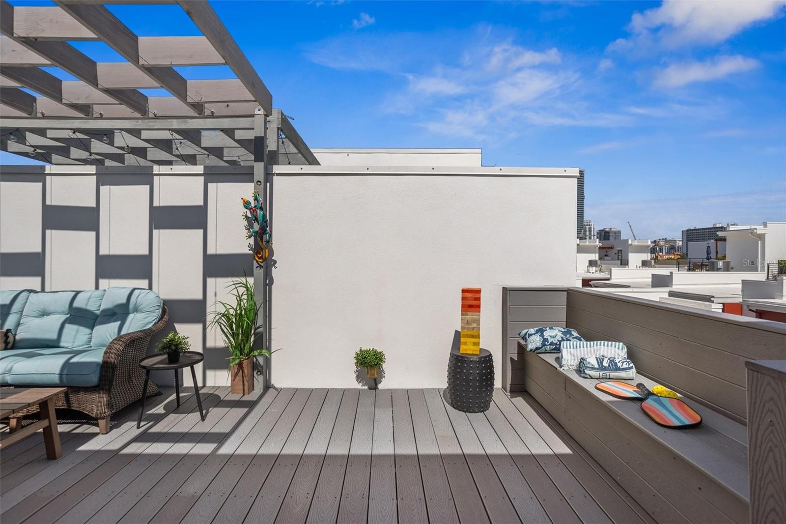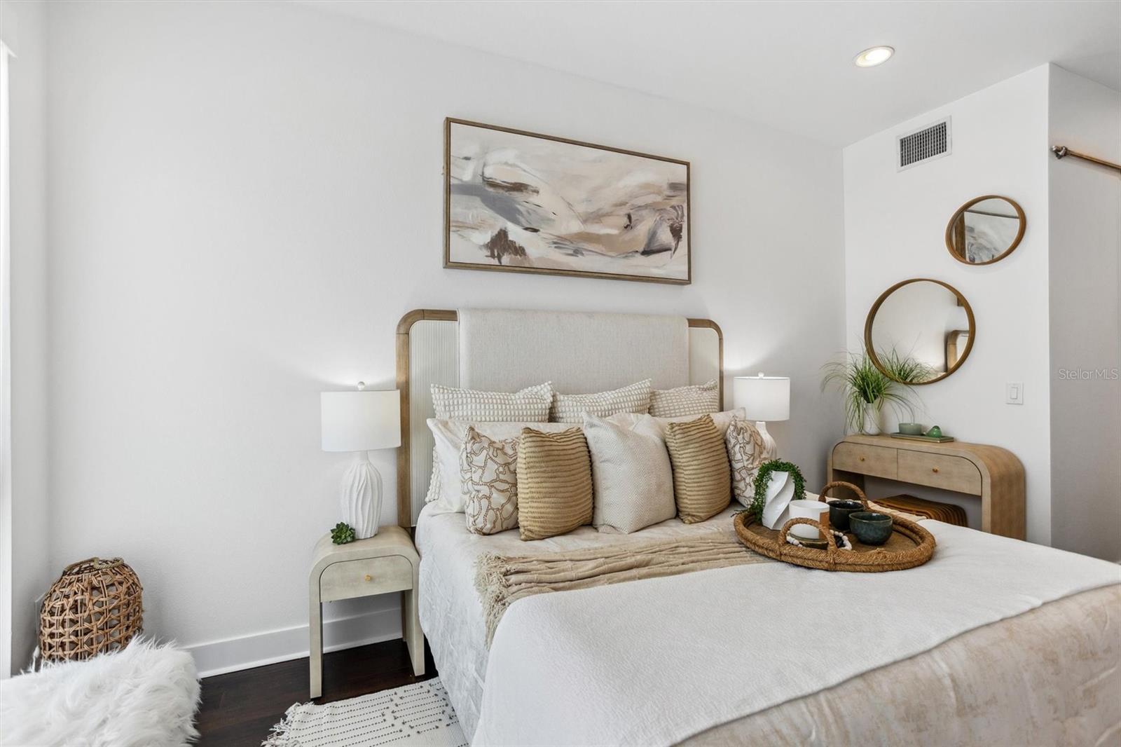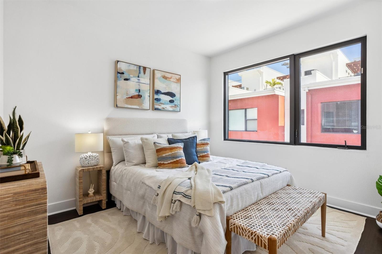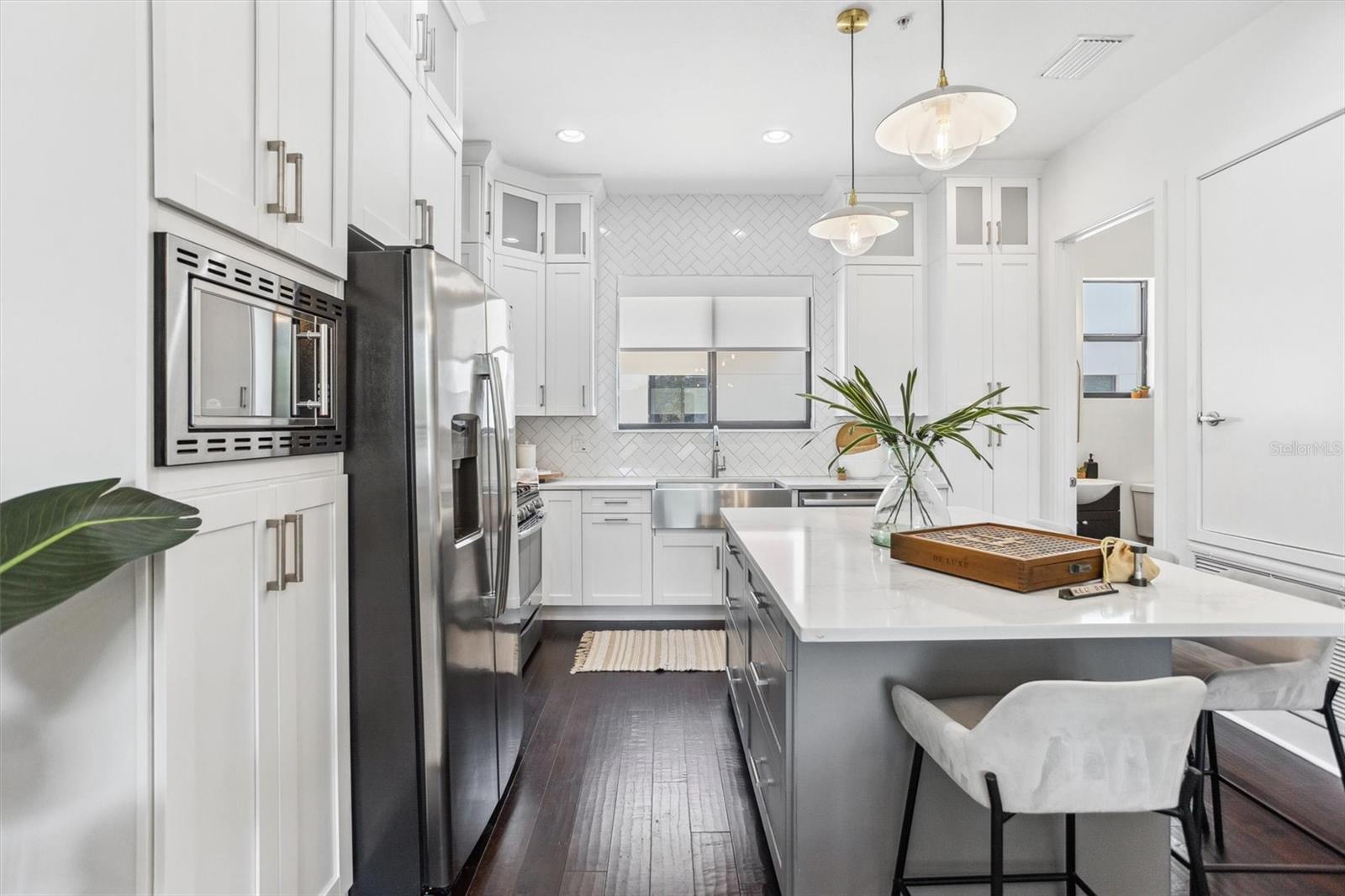 Bold. Modern. Downtown. Welcome to your next-level lifestyle in the heart of Downtown St. Pete — where sleek design, smart living, and rooftop vibes collide in one unforgettable address. Tucked away in a gated community, this stunning four-story unit townhome is more than a place to live — it’s a statement. From the moment you walk through the door, you’re greeted by fresh, modern interiors, newly repainted from ceiling to floor, setting the tone for the elevated living that awaits. The heart of the home — a recently renovated gourmet kitchen — draws you in with its extended island, double-stacked white cabinets, farmhouse sink, stainless steel appliances with gas fired cooktop, and built-in microwave. Whether you're hosting dinner parties or sipping your morning coffee, this open-concept space flows effortlessly into the living area, creating the perfect backdrop for entertaining and everyday life. Mohawk wood flooring guides your steps as natural light pours in from floor-to-ceiling windows. The thoughtful layout continues upstairs, where the primary suite offers not one, but two spacious walk-in closets, a double vanity, and a glass walk-in shower with a built-in bench — your personal retreat after a long day. The home is equipped with smart technology at every turn, including smart locks, ADT alarm, video doorbell camera, and motorized blinds — all designed for seamless, secure living. But the crown jewel of this residence? The private rooftop terrace. Imagine unwinding under the pergola, grilling with friends, mixing cocktails at the rooftop wet bar, or catching the game on your TV — all with the city skyline as your backdrop. This space isn’t just an amenity, it’s your urban oasis in the sky. A private two-car garage offers ease and security, with the option to include a PRX Performance Home Gym setup for those who want to stay active without ever leaving home. On the same level as the primary bedroom there is a dedicated laundry space with sink and stackable front-loading washer and dryer, making daily tasks a breeze. Location, of course, is everything. And with a Walk Score of 93, you’re living in the heart of it all. Just two blocks from Central Avenue’s buzzing restaurants, coffee shops, and boutiques. A short stroll to waterfront parks, The Pier, and world-class museums. And when you're ready for a change of scenery, the white sands of St. Pete Beach and the terminals of Tampa and Clearwater airports are only 15 minutes away. This is more than a townhome — it’s your front-row seat to everything downtown St. Pete has to offer. Schedule your private tour today and experience the energy, elegance, and ease of your next home.