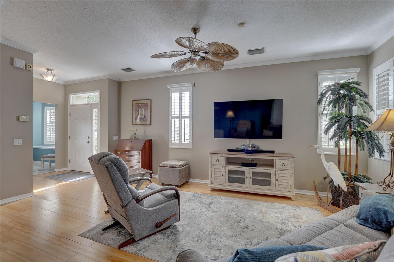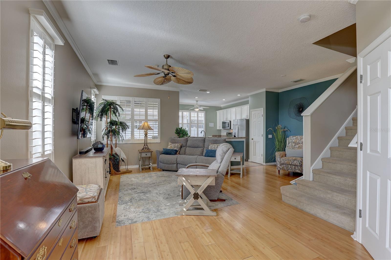 Discover the perfect blend of style, comfort, and convenience in this stunning, MOVE IN READY townhouse located in the highly sought-after Wyngate at Brighton Bay neighborhood. This UPDATED END UNIT with 3 bedroom/2.5 bathroom/1 car garage PLUS a versatile BONUS ROOM is the largest floorplan in the community at 1,618 SF. As an END UNIT, it has more windows providing for a LIGHT & BRIGHT atmosphere. The BONUS ROOM is currently being used as a Dining Room but it would make a perfect HOME OFFICE or a 4th Bedroom. This room has a large Bay Window with a view of the pond and a closet. The bottom level offers 10 ft ceilings, Bamboo flooring, an OPEN FLOOR PLAN, An UPDATED KITCHEN with GRANITE countertops, a half bathroom, canned lights, and CROWN MOLDING. The top level includes 3 spacious bedrooms with VAULTED CEILINGS and 2 full bathrooms. The Master Bedroom offers a HUGE WALK IN CLOSET and a gorgeous SPA LIKE ensuite bathroom with dual sinks and an UPDATED walk in shower with a SEAMLESS GLASS shower door and a multi-nozzle shower spraying system (the car wash effect). Just off the kitchen, is a new screen enclosed patio where you can enjoy your morning coffee with a peaceful view of the pond where you will see a variety of birds and wildlife. The Seller invested over $20k in beautiful PLANTATION SHUTTERS throughout for all 17 windows creating a sense of style and elegance. For peace of mind, there is a NEW ROOF in 2021 which the HOA covers. This community boasts the lowest HOA fees of any townhome development in St. Petersburg of only $207 per month. HOA Includes: Exterior maintenance, grounds maintenance, community amenities, roof replacement, and property management. The community amenities are unparalleled, offering a resort-style pool, tennis and pickleball courts, a basketball court, sand volleyball court, a playground, and beautifully maintained grounds with numerous ponds. It is centrally located with convenient access to the Gandy Bridge, I275, Tampa, downtown St Petersburg, the Tampa International Airport, Weedon Island Preserve, and numerous dining options. Hurry and schedule your private showing today! You will not be disappointed.