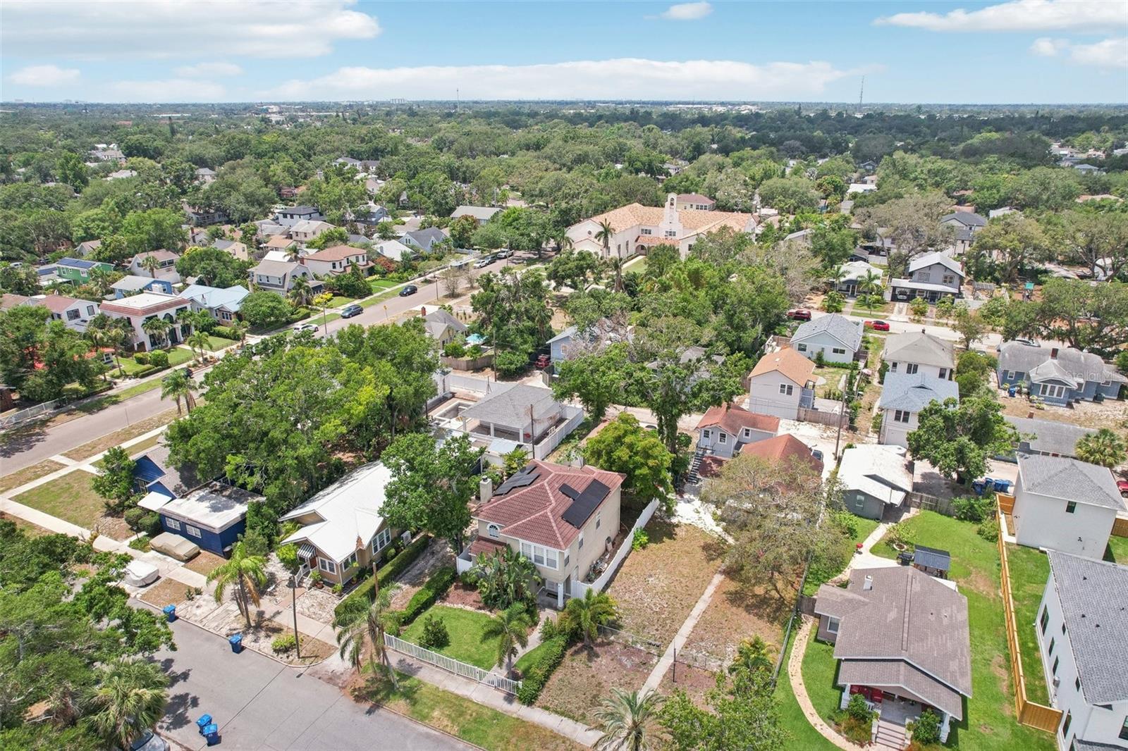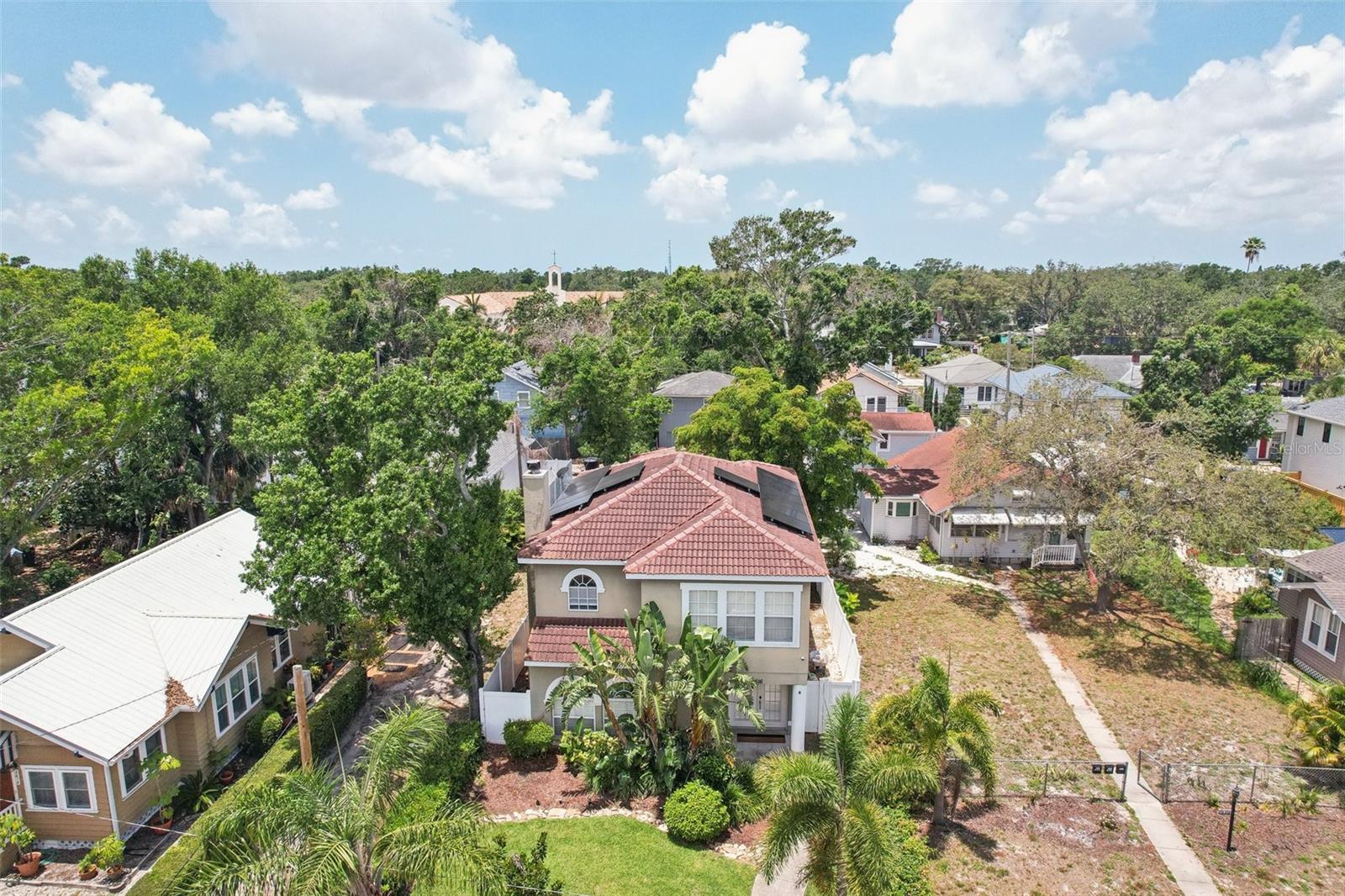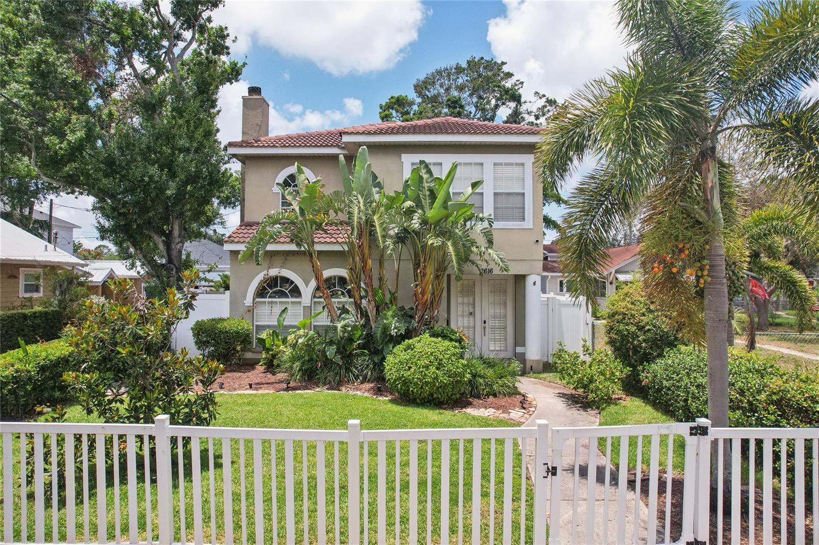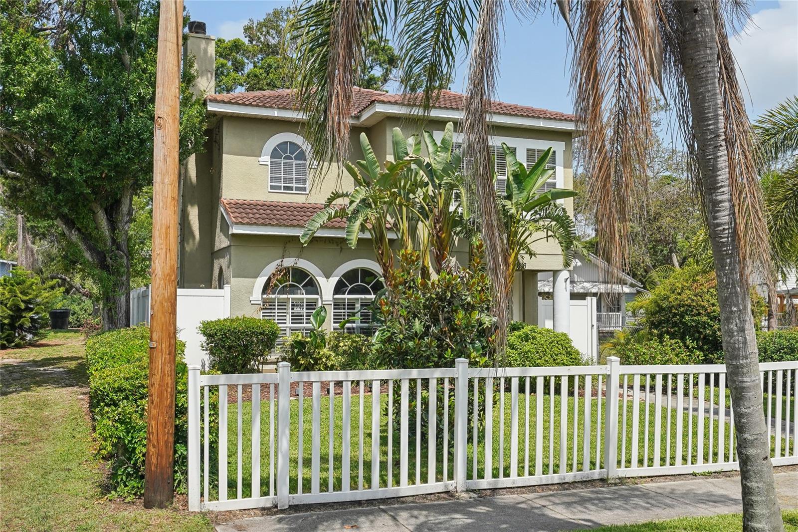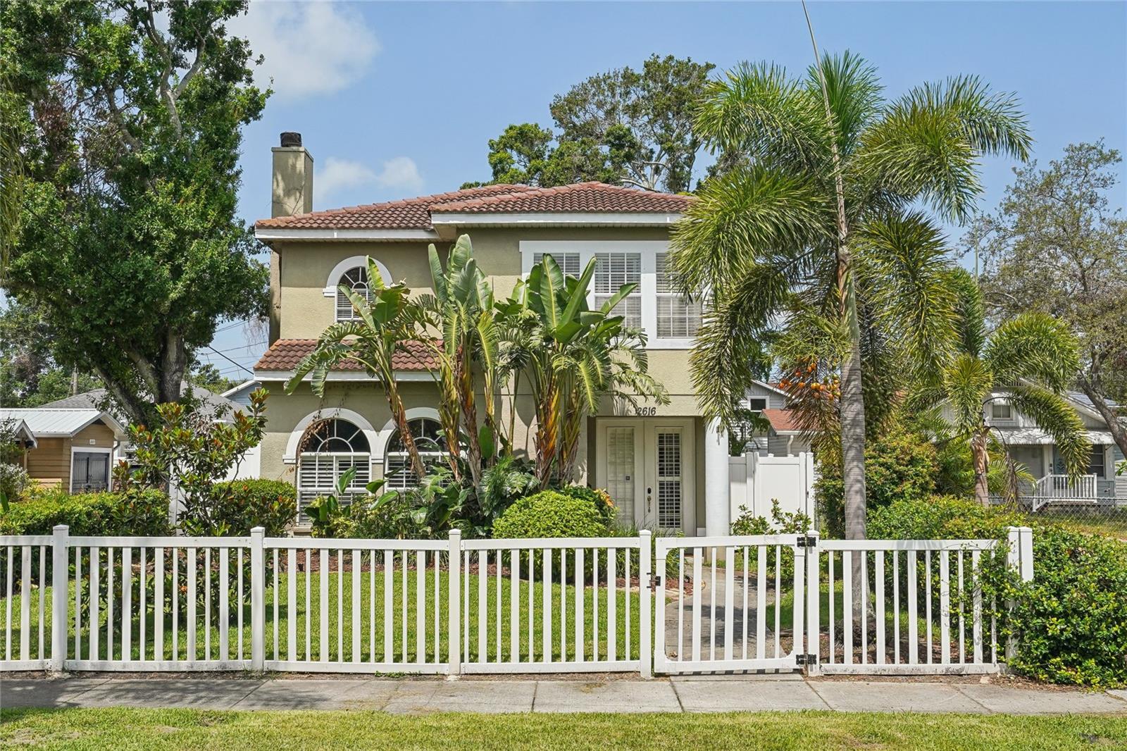 Welcome to this breathtaking 3-bedroom, 2.5-bathroom home with a bonus room currently used as an office, nestled in the heart of the highly desirable Woodlawn neighborhood. This property sits high and dry, safely outside of any designated flood zone. From the moment you arrive, you’ll be captivated by the curb appeal—terra cotta barrel tile roofing, meticulously maintained landscaping, and a grand double-door entry that sets the tone for what’s inside. Step into a thoughtfully designed open floorplan where luxury vinyl plank flooring, plantation shutters, crown molding, and a newly refinished gas log fireplace create an inviting and sophisticated living space. The kitchen is truly a chef’s dream, showcasing quartz waterfall countertops, a premium Bosch gas range, stainless steel appliances, and an oversized pantry for all your storage needs. Just off the main living area, French doors open into a cozy den or office space, offering flexibility to suit your lifestyle. Downstairs also includes a convenient powder room for guests, while upstairs features rich hardwood flooring throughout. The laundry room is located right where you want it—upstairs and close to the bedrooms—making everyday life easier. The primary suite is nothing short of exceptional, boasting a fully renovated bathroom with a glass-enclosed shower, free-standing soaking tub, dual vanities, and a spacious walk-in closet designed to impress. French doors lead you to your private backyard sanctuary, complete with a pergola-style insulated patio cover and plenty of space to build the pool of your dreams. There's even room for RV or boat parking alongside the detached garage, which also offers generous storage options. Major updates like newer A/C (2019) and all new plumbing throughout offer added peace of mind. And let’s not forget about the location—just minutes to Trader Joe’s, Crescent Lake Park, downtown St. Pete, Vinoy Golf Club, award-winning beaches, and a quick hop onto I-275 for easy commuting. Enjoy nightly strolls at nearby Blanc Park or explore all the shopping and dining that vibrant St. Petersburg has to offer. This home truly has it all—schedule your showing today!