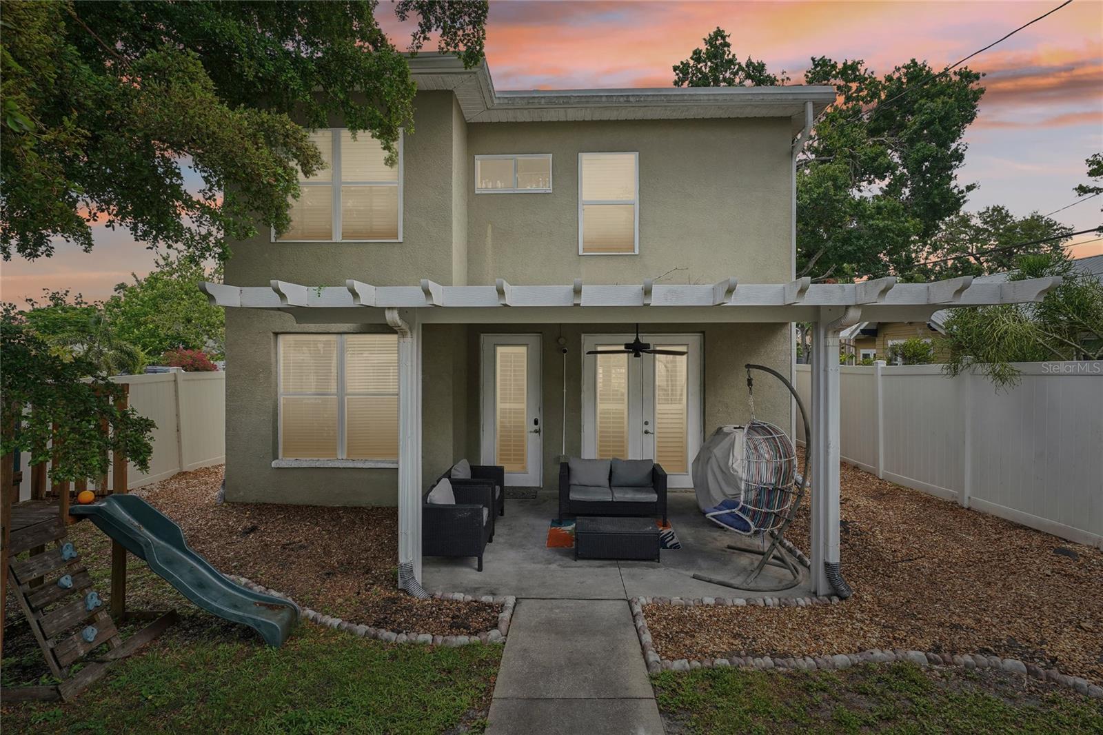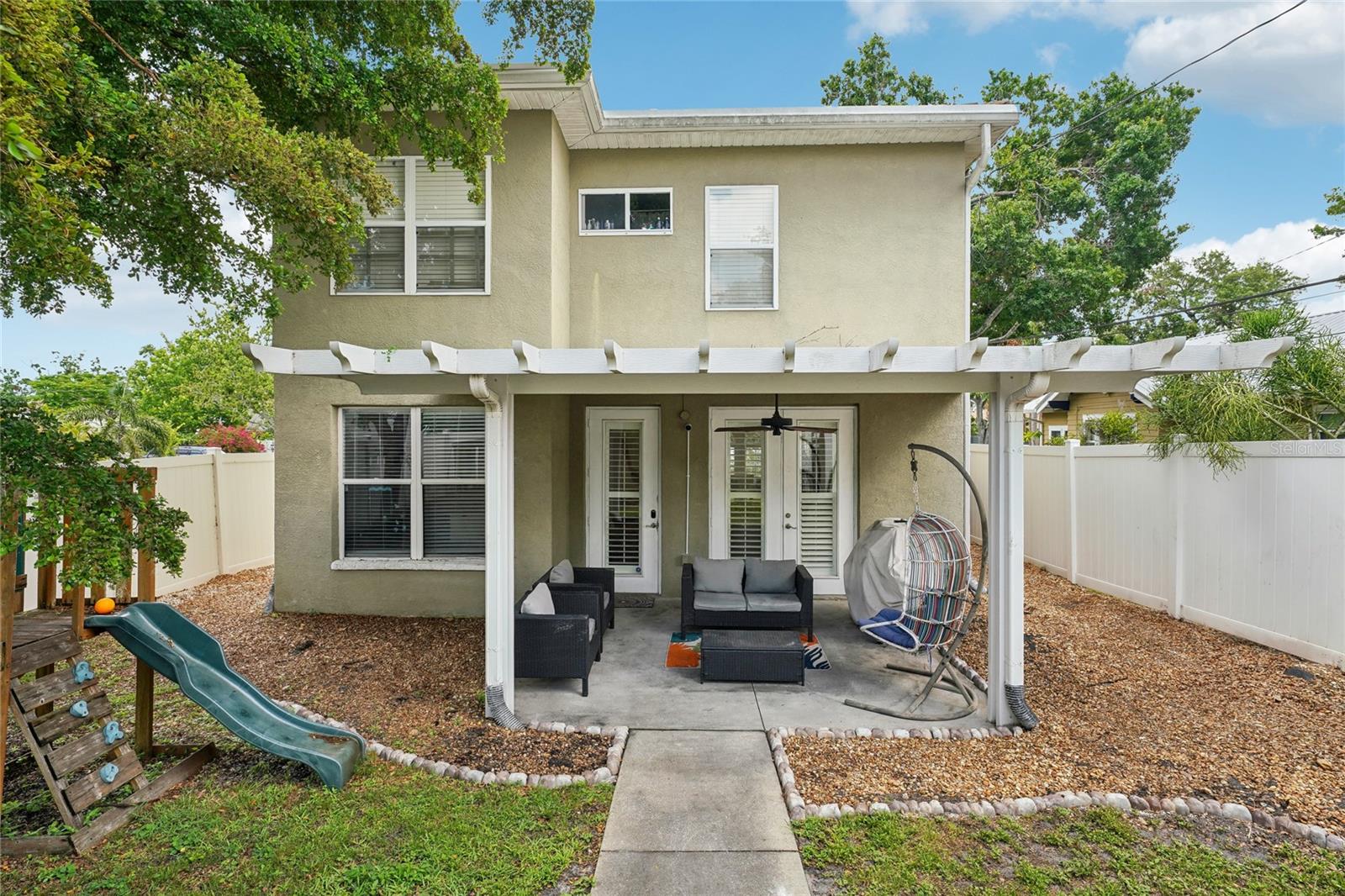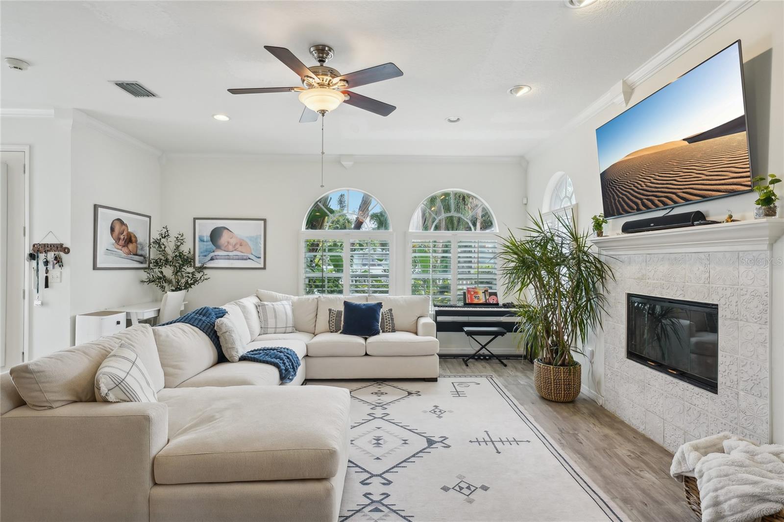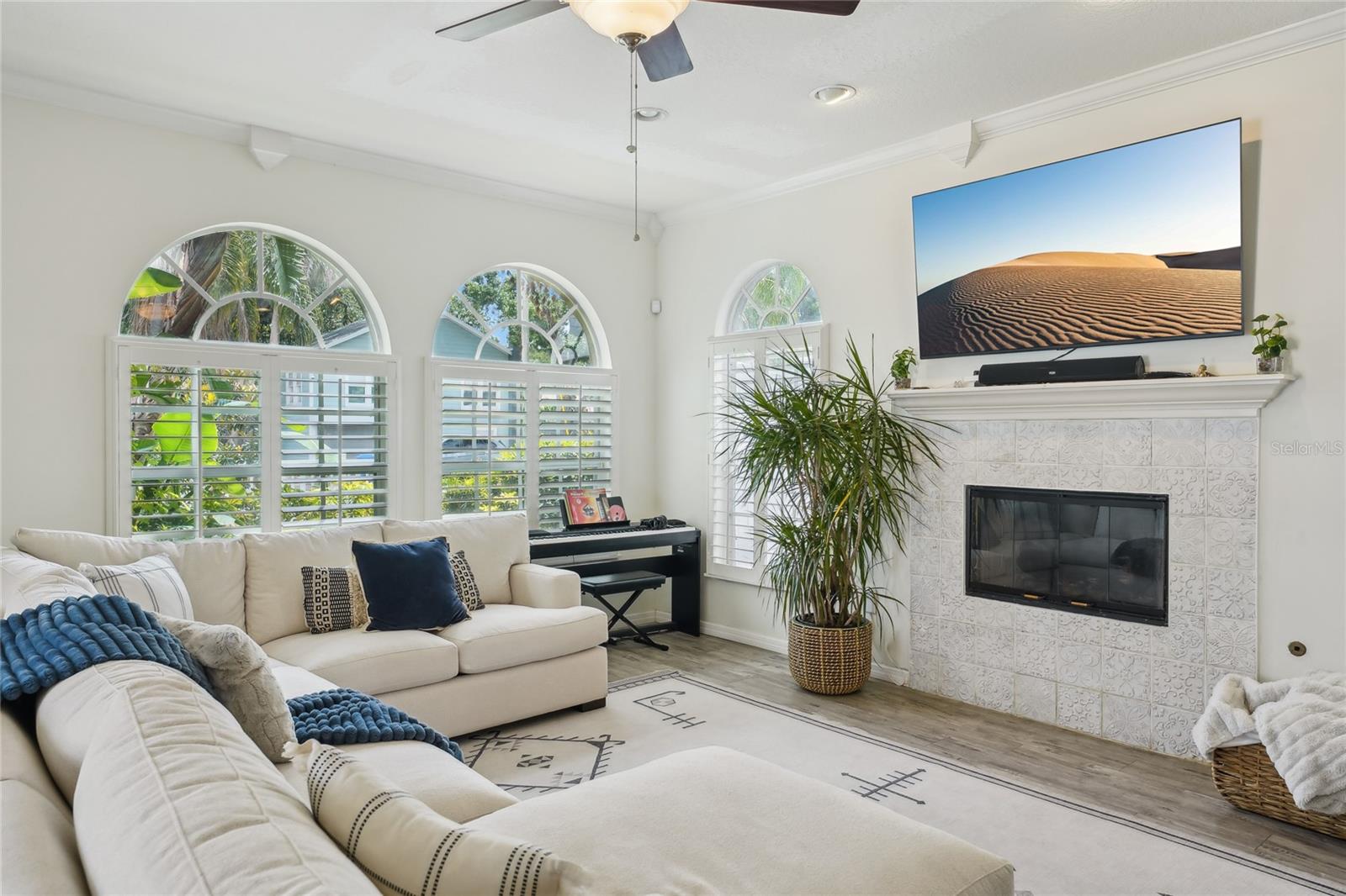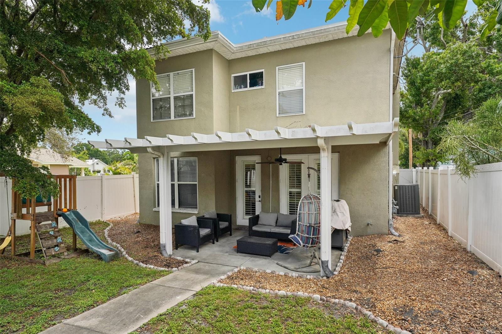 Welcome to this breathtaking 3-bedroom, 2.5-bathroom home with a bonus room currently used as an office, nestled in the heart of the highly desirable Woodlawn neighborhood. This property sits high and dry, safely outside of any designated flood zone. From the moment you arrive, you’ll be captivated by the curb appeal—terra cotta barrel tile roofing, meticulously maintained landscaping, and a grand double-door entry that sets the tone for what’s inside. Step into a thoughtfully designed open floorplan where luxury vinyl plank flooring, plantation shutters, crown molding, and a newly refinished gas log fireplace create an inviting and sophisticated living space. The kitchen is truly a chef’s dream, showcasing quartz waterfall countertops, a premium Bosch gas range, stainless steel appliances, and an oversized pantry for all your storage needs. Just off the main living area, French doors open into a cozy den or office space, offering flexibility to suit your lifestyle. Downstairs also includes a convenient powder room for guests, while upstairs features rich hardwood flooring throughout. The laundry room is located right where you want it—upstairs and close to the bedrooms—making everyday life easier. The primary suite is nothing short of exceptional, boasting a fully renovated bathroom with a glass-enclosed shower, free-standing soaking tub, dual vanities, and a spacious walk-in closet designed to impress. French doors lead you to your private backyard sanctuary, complete with a pergola-style insulated patio cover and plenty of space to build the pool of your dreams. There's even room for RV or boat parking alongside the detached garage, which also offers generous storage options. Major updates like newer A/C (2019) and all new plumbing throughout offer added peace of mind. And let’s not forget about the location—just minutes to Trader Joe’s, Crescent Lake Park, downtown St. Pete, Vinoy Golf Club, award-winning beaches, and a quick hop onto I-275 for easy commuting. Enjoy nightly strolls at nearby Blanc Park or explore all the shopping and dining that vibrant St. Petersburg has to offer. This home truly has it all—schedule your showing today!