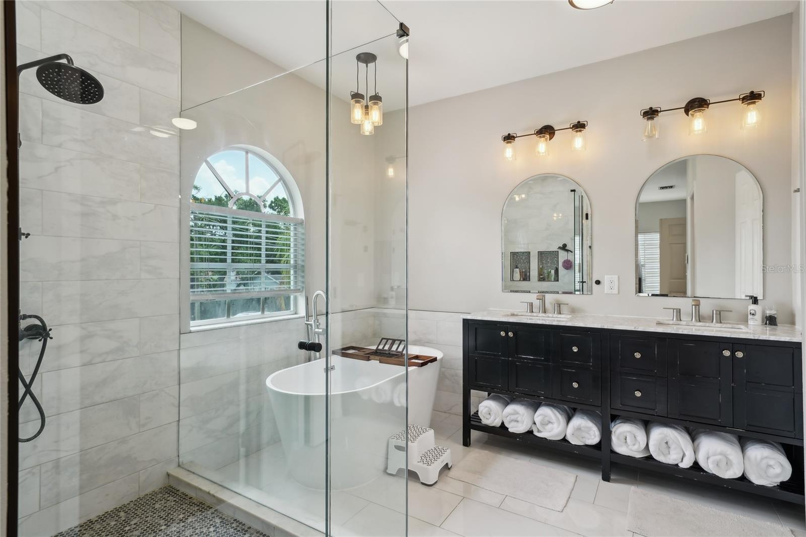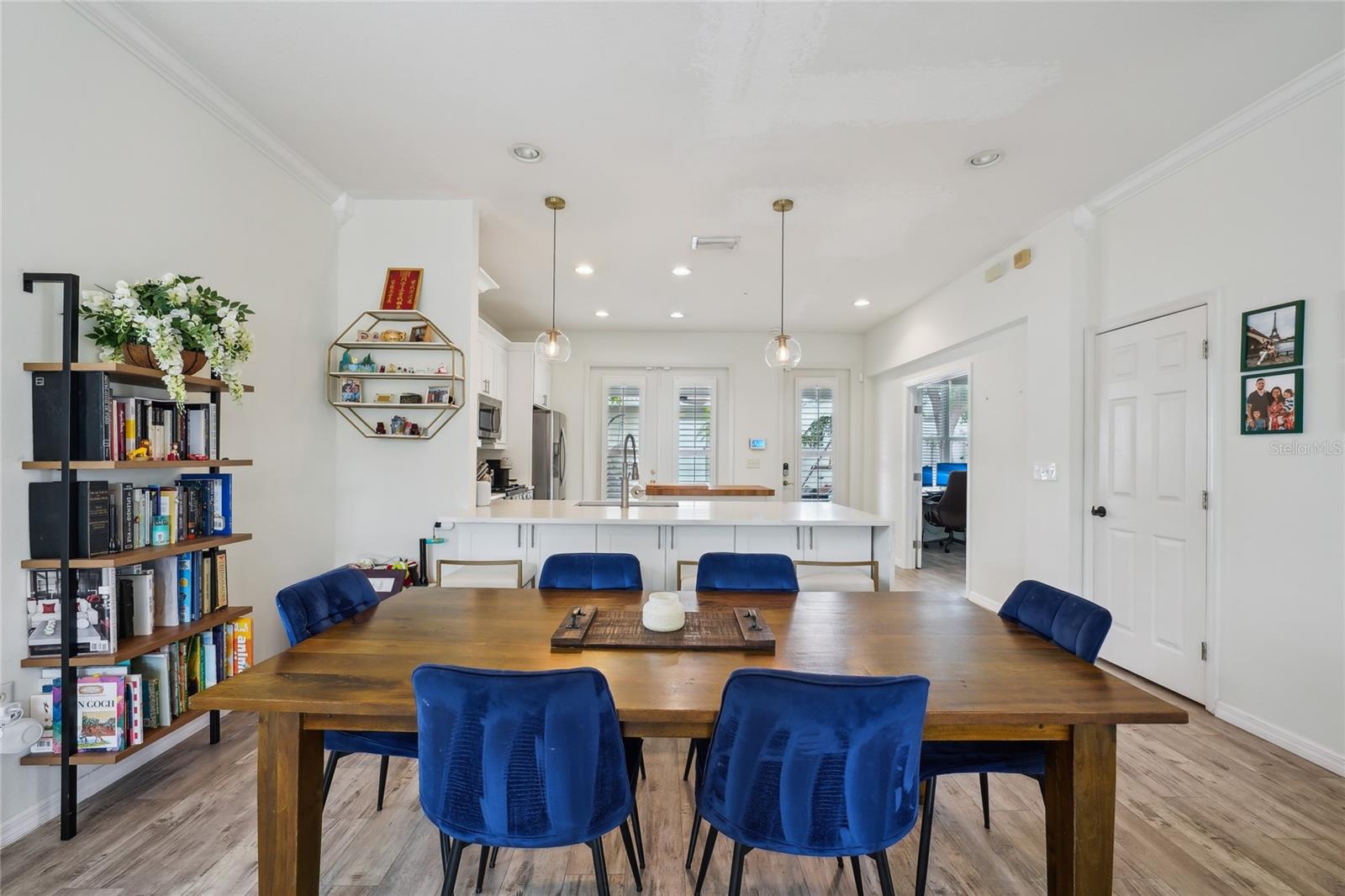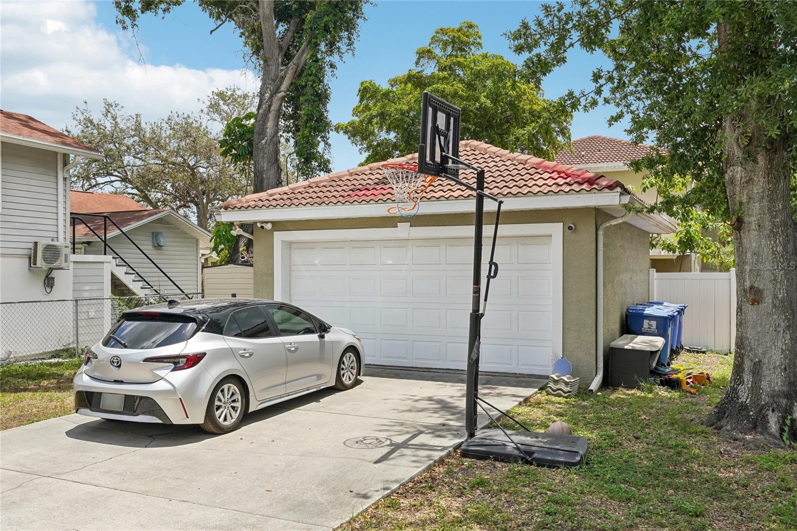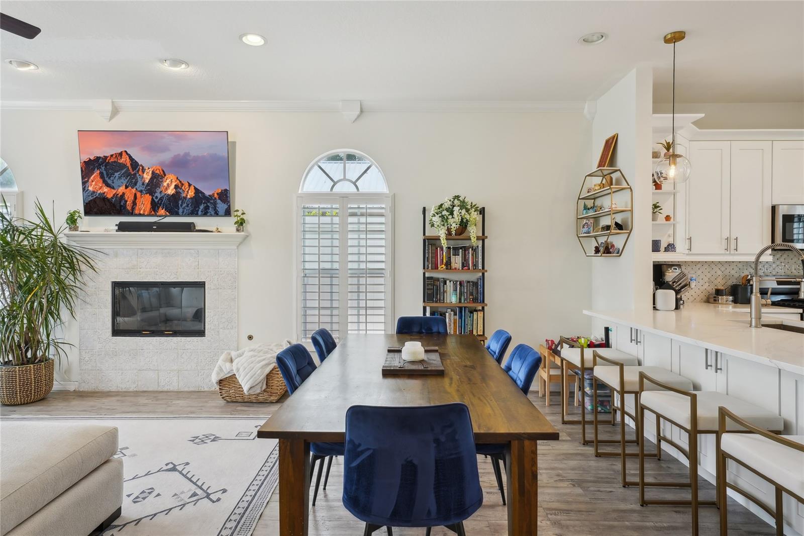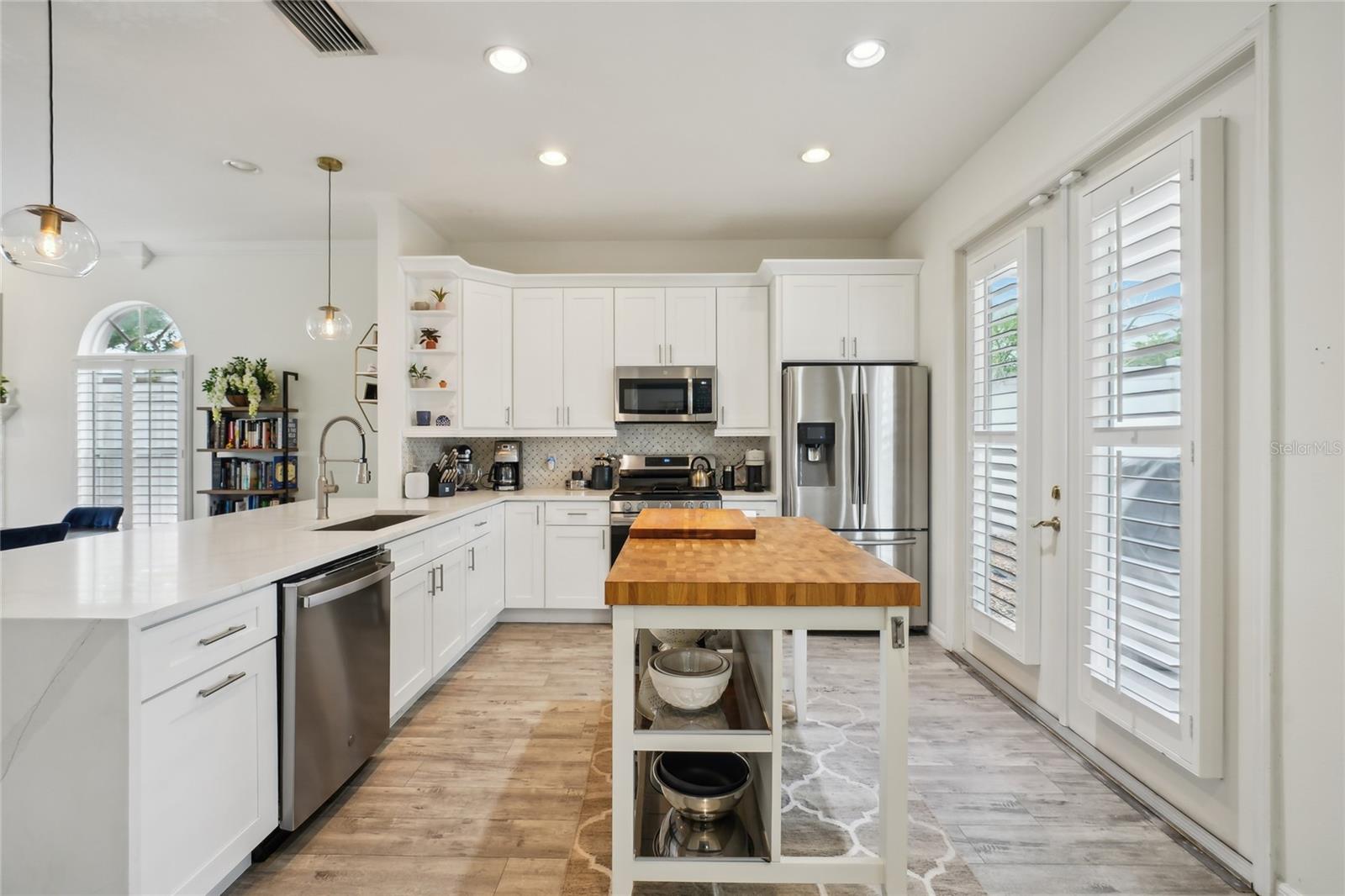 Welcome to this breathtaking 3-bedroom, 2.5-bathroom home with a bonus room currently used as an office, nestled in the heart of the highly desirable Woodlawn neighborhood. This property sits high and dry, safely outside of any designated flood zone. From the moment you arrive, you’ll be captivated by the curb appeal—terra cotta barrel tile roofing, meticulously maintained landscaping, and a grand double-door entry that sets the tone for what’s inside. Step into a thoughtfully designed open floorplan where luxury vinyl plank flooring, plantation shutters, crown molding, and a newly refinished gas log fireplace create an inviting and sophisticated living space. The kitchen is truly a chef’s dream, showcasing quartz waterfall countertops, a premium Bosch gas range, stainless steel appliances, and an oversized pantry for all your storage needs. Just off the main living area, French doors open into a cozy den or office space, offering flexibility to suit your lifestyle. Downstairs also includes a convenient powder room for guests, while upstairs features rich hardwood flooring throughout. The laundry room is located right where you want it—upstairs and close to the bedrooms—making everyday life easier. The primary suite is nothing short of exceptional, boasting a fully renovated bathroom with a glass-enclosed shower, free-standing soaking tub, dual vanities, and a spacious walk-in closet designed to impress. French doors lead you to your private backyard sanctuary, complete with a pergola-style insulated patio cover and plenty of space to build the pool of your dreams. There's even room for RV or boat parking alongside the detached garage, which also offers generous storage options. Major updates like newer A/C (2019) and all new plumbing throughout offer added peace of mind. And let’s not forget about the location—just minutes to Trader Joe’s, Crescent Lake Park, downtown St. Pete, Vinoy Golf Club, award-winning beaches, and a quick hop onto I-275 for easy commuting. Enjoy nightly strolls at nearby Blanc Park or explore all the shopping and dining that vibrant St. Petersburg has to offer. This home truly has it all—schedule your showing today!