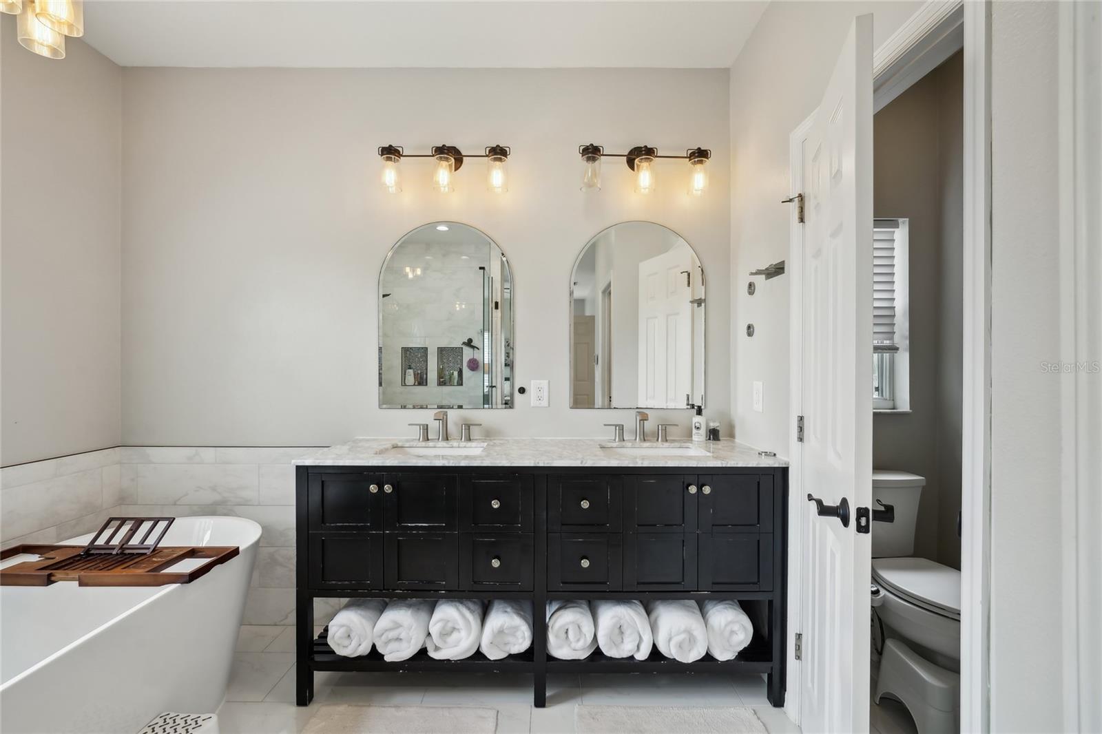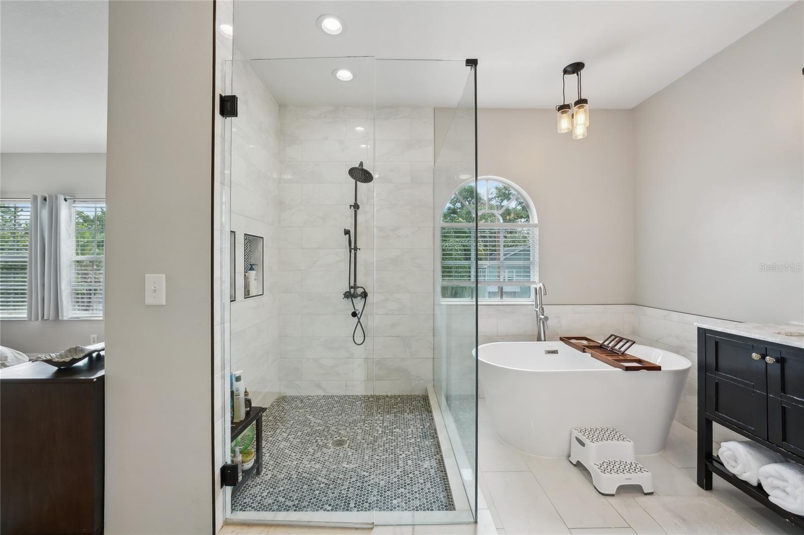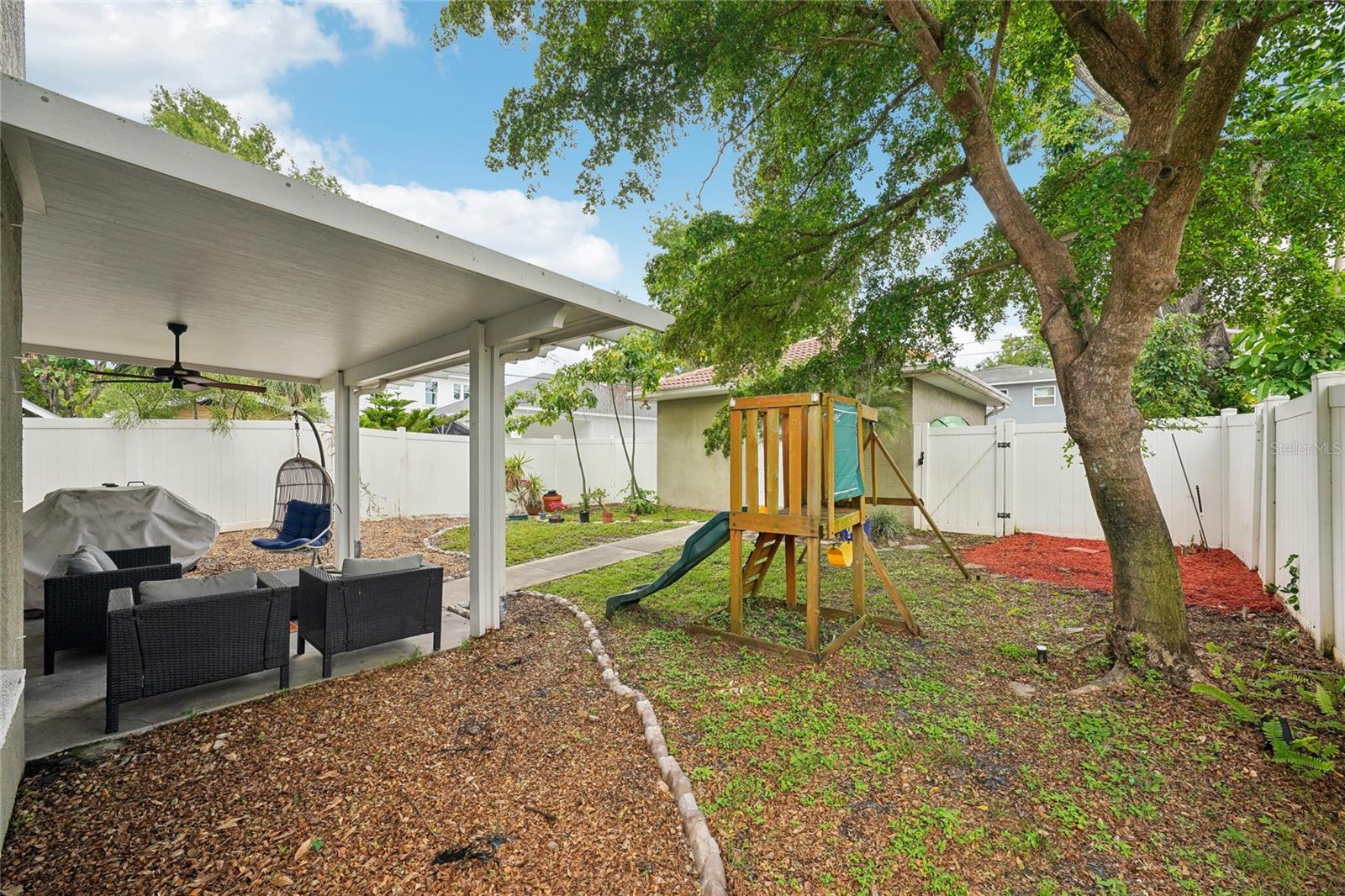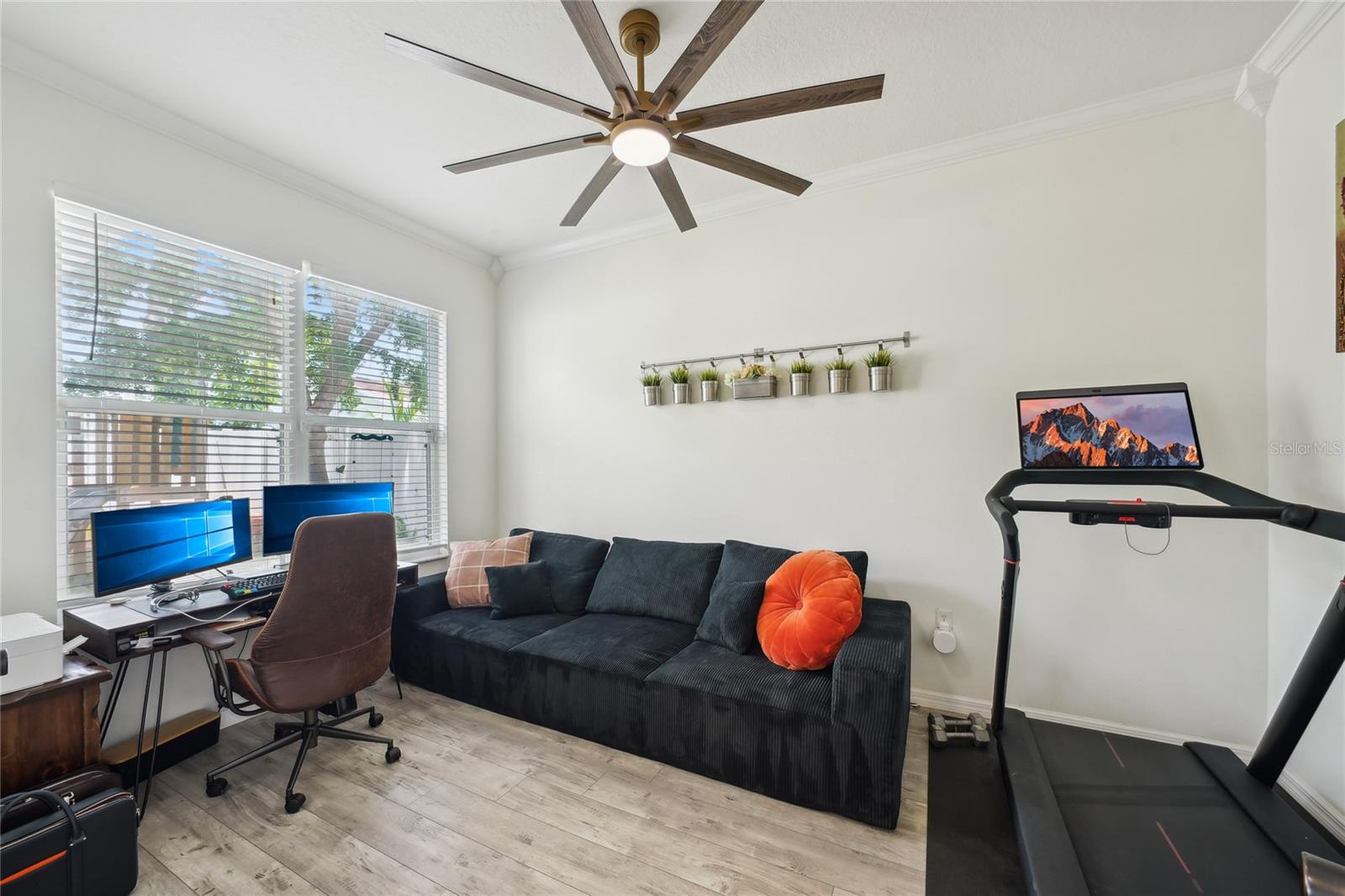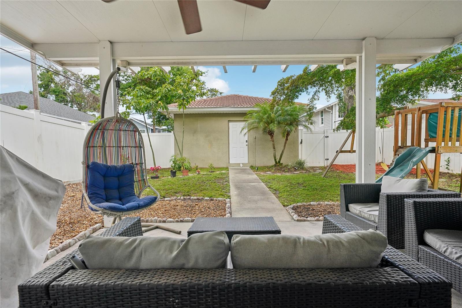 Welcome to this breathtaking 3-bedroom, 2.5-bathroom home with a bonus room currently used as an office, nestled in the heart of the highly desirable Woodlawn neighborhood. This property sits high and dry, safely outside of any designated flood zone. From the moment you arrive, you’ll be captivated by the curb appeal—terra cotta barrel tile roofing, meticulously maintained landscaping, and a grand double-door entry that sets the tone for what’s inside. Step into a thoughtfully designed open floorplan where luxury vinyl plank flooring, plantation shutters, crown molding, and a newly refinished gas log fireplace create an inviting and sophisticated living space. The kitchen is truly a chef’s dream, showcasing quartz waterfall countertops, a premium Bosch gas range, stainless steel appliances, and an oversized pantry for all your storage needs. Just off the main living area, French doors open into a cozy den or office space, offering flexibility to suit your lifestyle. Downstairs also includes a convenient powder room for guests, while upstairs features rich hardwood flooring throughout. The laundry room is located right where you want it—upstairs and close to the bedrooms—making everyday life easier. The primary suite is nothing short of exceptional, boasting a fully renovated bathroom with a glass-enclosed shower, free-standing soaking tub, dual vanities, and a spacious walk-in closet designed to impress. French doors lead you to your private backyard sanctuary, complete with a pergola-style insulated patio cover and plenty of space to build the pool of your dreams. There's even room for RV or boat parking alongside the detached garage, which also offers generous storage options. Major updates like newer A/C (2019) and all new plumbing throughout offer added peace of mind. And let’s not forget about the location—just minutes to Trader Joe’s, Crescent Lake Park, downtown St. Pete, Vinoy Golf Club, award-winning beaches, and a quick hop onto I-275 for easy commuting. Enjoy nightly strolls at nearby Blanc Park or explore all the shopping and dining that vibrant St. Petersburg has to offer. This home truly has it all—schedule your showing today!