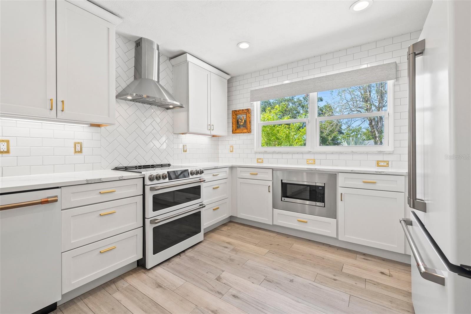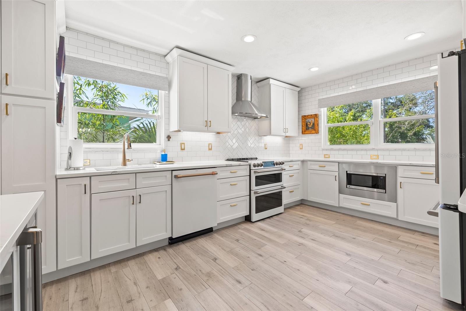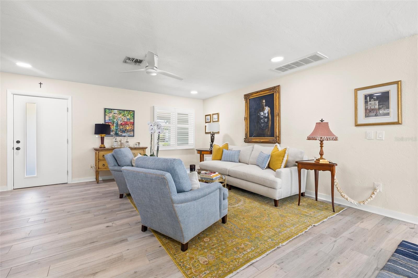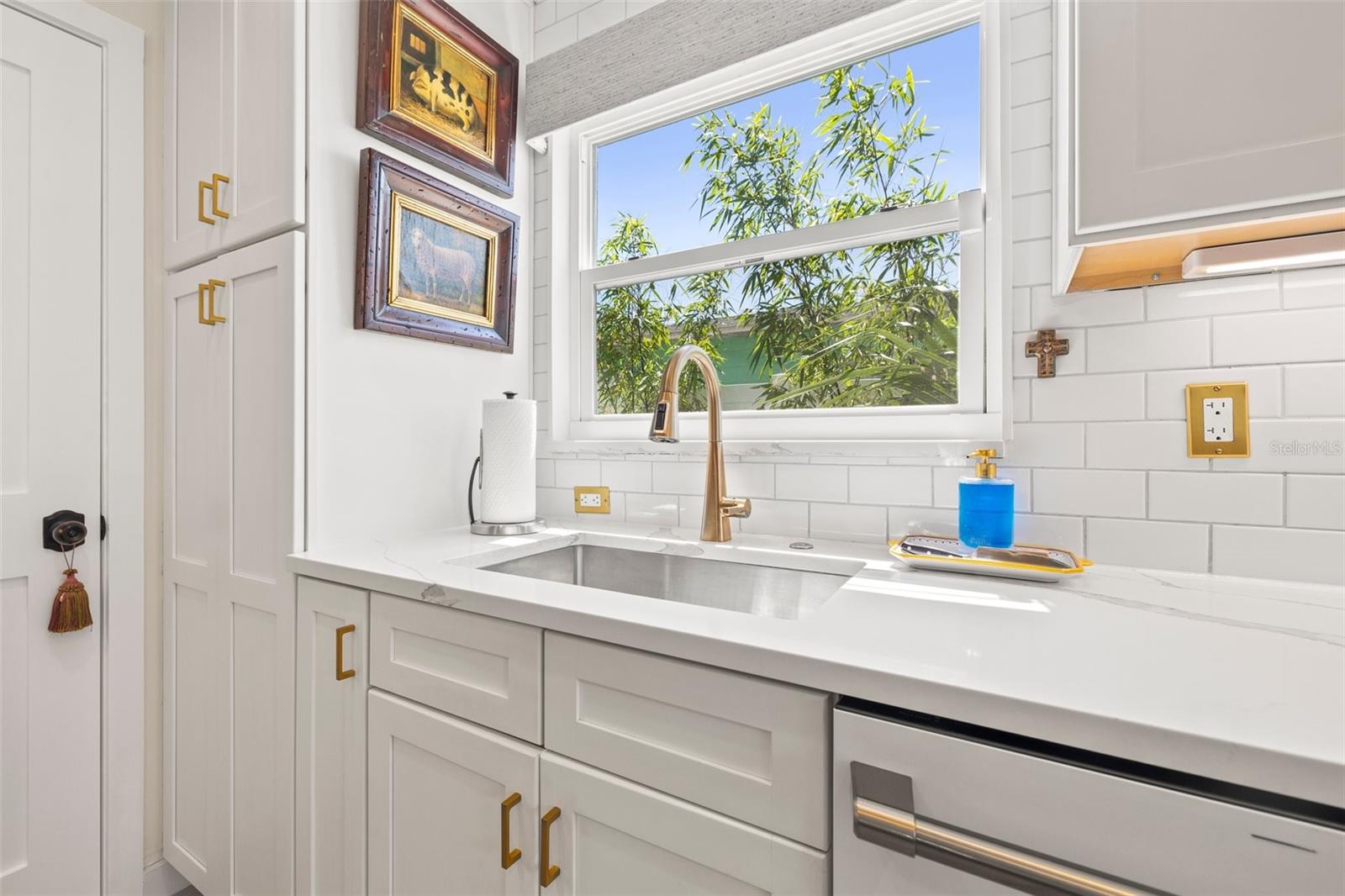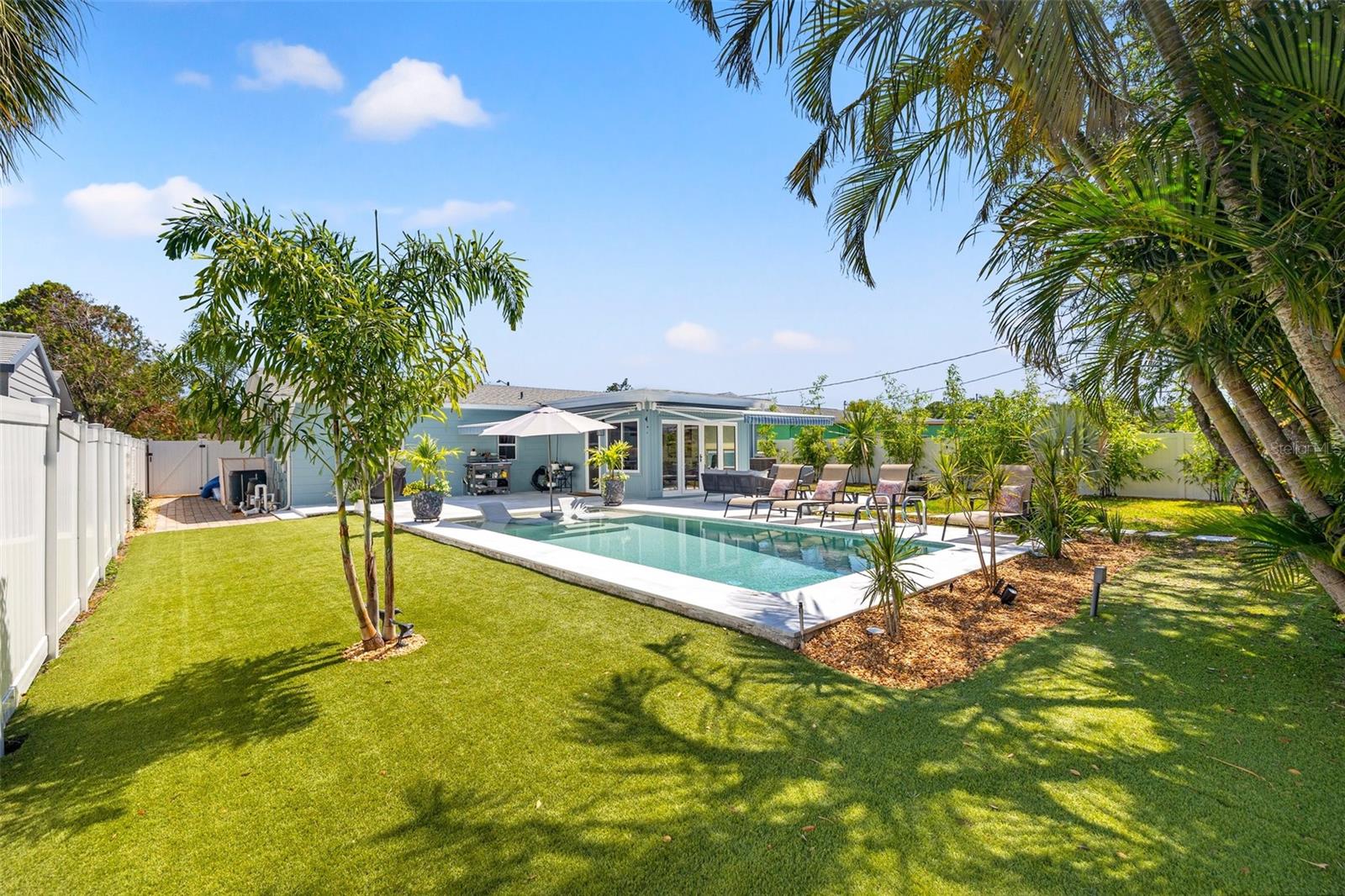 **MOTIVATED SELLERS** You are not going to want to miss seeing this impeccably remodeled home in the Snell Shores neighborhood tucked away in Northeast St. Pete. It is hard to beat the curb appeal this home has to offer. Upon pulling up to the home, you're greeted with new landscaping, fresh exterior paint, and an inviting covered front porch. Inside the front door, you will see the most welcoming layout with the oversized living room as soon as you walk in. This home is designed for entertaining, with ample spaces to spread out and enjoy all that the home has to offer. The kitchen has recently been remodeled with new Café appliances, quartz countertops, an undermount sink, sleek hardware/fixtures, an abundant amount of storage, undercabinet lighting, range hood, timeless backsplash, and a bonus dual-zone beverage/wine fridge. The dining room is centered in the heart of the home, and there is a great Florida room that is perfect for cozying up with a good book or looking out over the incredible backyard. The two bedrooms are both tucked away on one side of the home. This home features two completely remodeled bathrooms. The larger bathroom features a modern vanity with double sinks, a fogless backlit mirror, and stunning hardware/fixtures. Walking out the back door, you will be drawn to the marble pool deck, automatic awnings with LED lights, new landscaping, white vinyl fencing, and a beautiful pool. The saltwater heated pool features a sunshelf with chairs and an umbrella, new pool pump/plumbing in 2024, and resurfaced in 2020. This home has a BRAND NEW Generac whole house generator that has never been used. The current owners have spent over $100,000 in upgrades since they purchased the home. Additional upgrades are as follows: gutters w/ leaf guards (2024), new soffit/trim (2024), all outlets inside and out replaced (2024), overhaul of reclaimed water sprinkler system (2024), new tile in the Florida room & bathrooms (2024), custom plantation shutters and blinds throughout (2024-2025), bedroom/hall closet systems (2024), added indoor laundry room (2024), new interior doors & exterior front door + hardware (2024), new ceiling fans and fixtures (2024-2025), Roof (2020), A/C system (2013), 150 AMP Square D electrical panel, and much more (ask your Realtor for a complete upgrade list). Many of the windows are impact-rated. This home is conveniently located within walking distance to Crisp Park, where you'll find plenty of green space, a playground, facilities, a public boat ramp, and a covered pavilion. You can also hop on the North Bay Trail that takes you all the way to North St. Pete or all the way downtown. You're also within five minutes of Whole Foods, Publix, Fresh Market, Trader Joe's, and plenty of restaurants.
