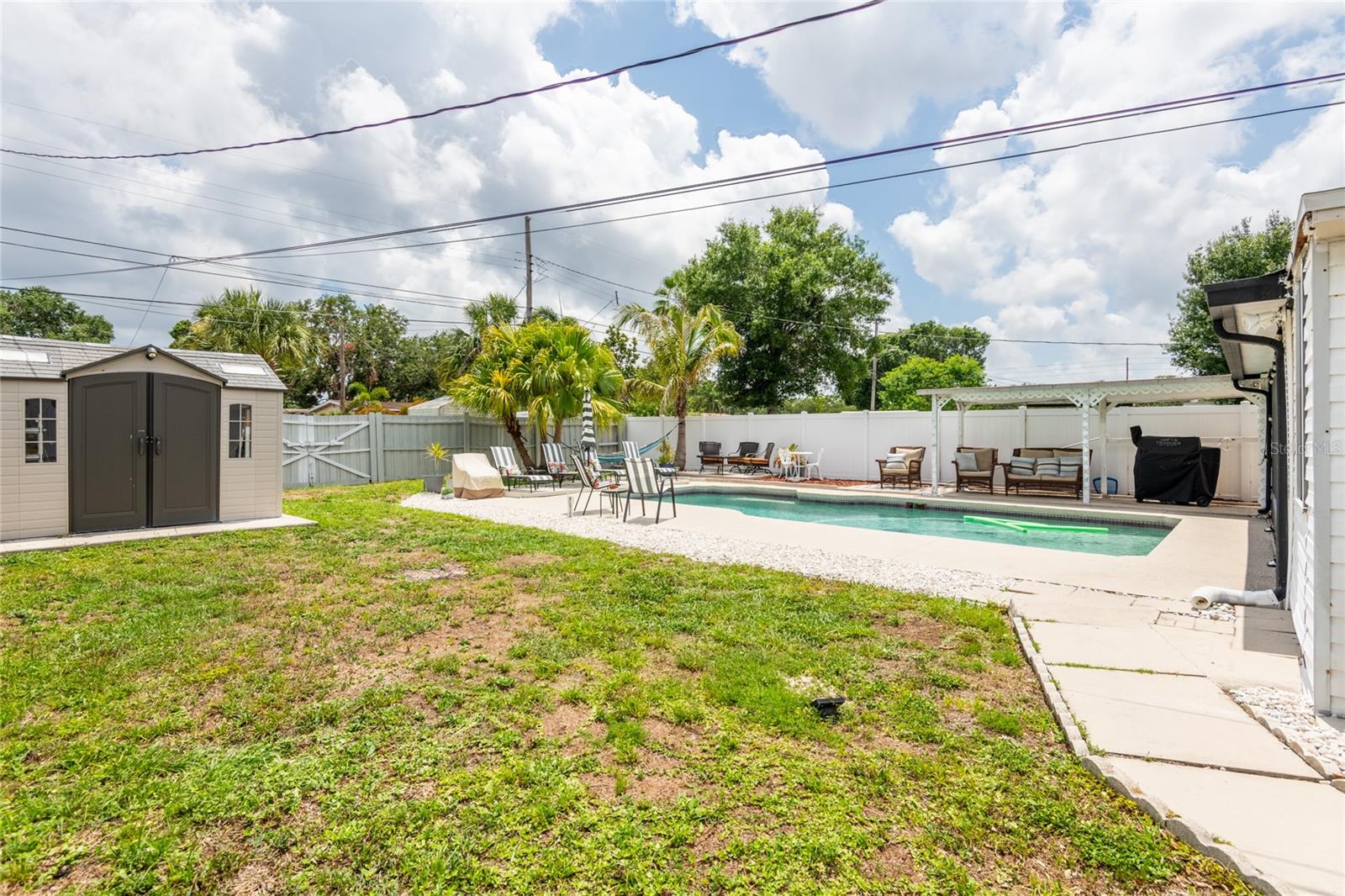 Priced to sell! This charming 1955 ranch-style home in desirable Euclid Heights features a sparkling 30x15 pool, a spacious screened-in porch, and a fully fenced yard that’s perfect for entertaining, gardening, or simply enjoying the Florida lifestyle. Inside you’ll find 3 bedrooms 2 full bathrooms and a comfortable layout full of natural light and character. The living and dining areas have large windows and an easy flow, while the updated kitchen offers plenty of cabinet space, a pantry and room to cook and gather. Two cozy bedrooms with built-in touches are located at the front of the home, and a third, more private bedroom sits at the back, opening through beautiful French doors to the outdoor living area. The backyard truly shines—with plenty of room to host, unwind, or play with your furry friends. The side yard includes a sink area that works perfectly as a gardening nook, outdoor bar setup, or dog wash station. A nice-sized shed provides extra storage. Additional UPDATES include a NEW ROOF in 2023. Located on a quiet street that remained high and dry during last year’s storms—NO FLOOD INSURANCE REQUIRED—this home is just minutes to downtown St. Pete, major roadways, and the Gulf beaches. A rare find with indoor charm and outdoor space that’s hard to beat! This home is priced to sell.