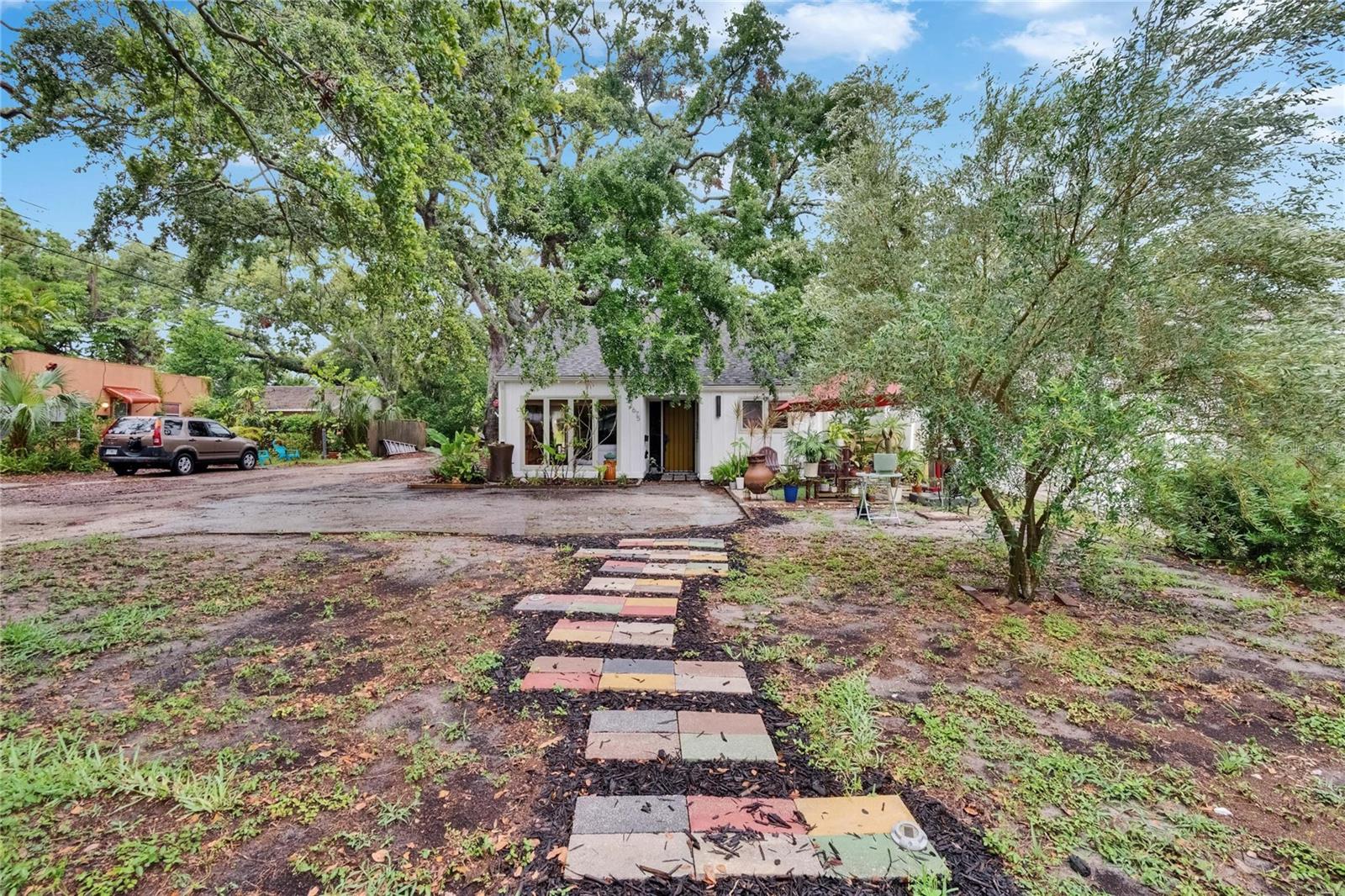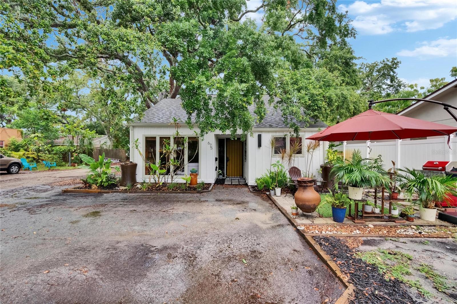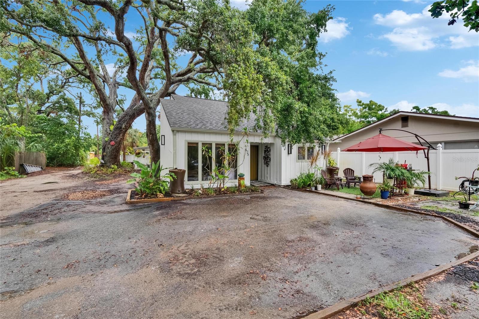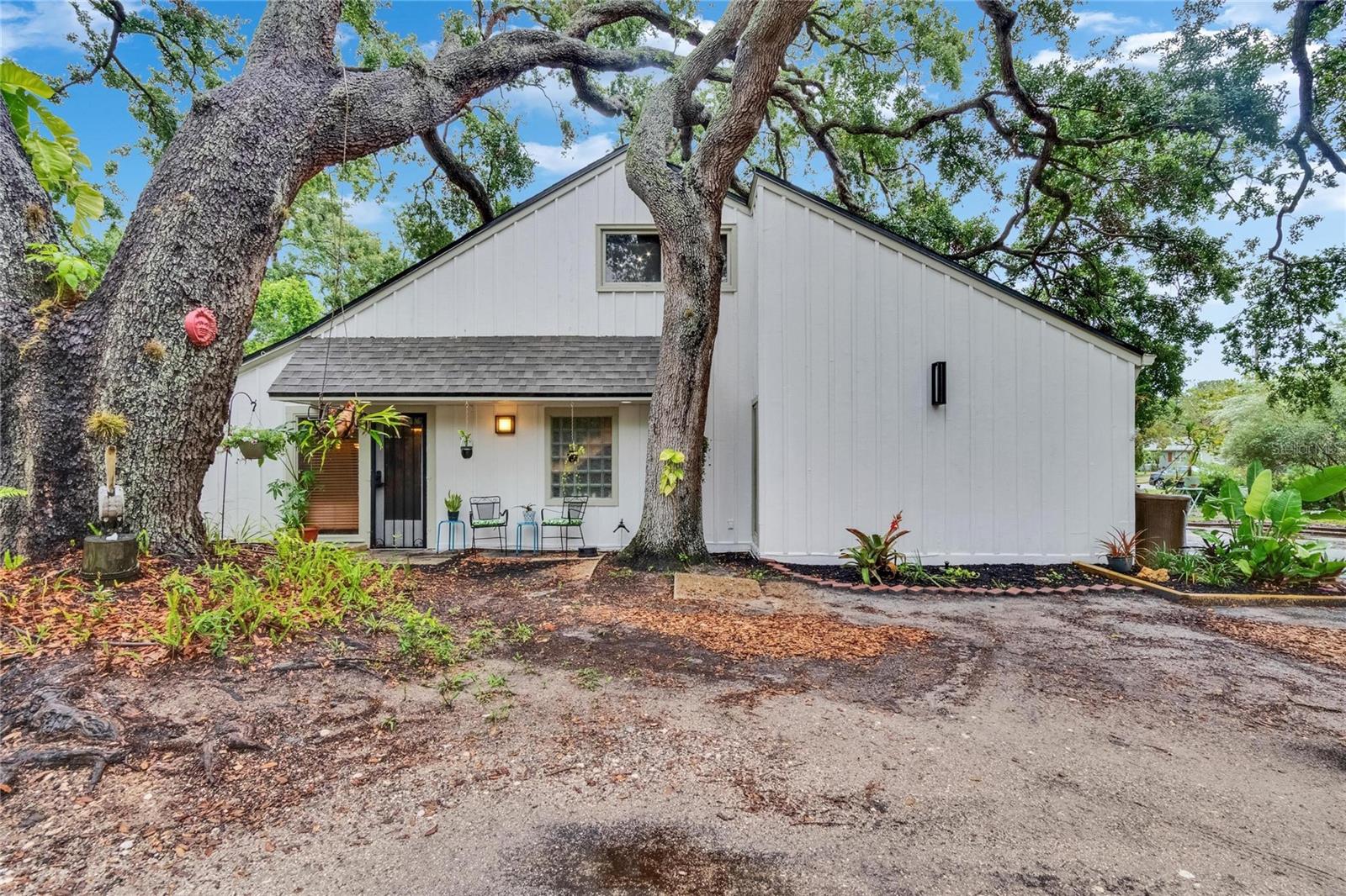 It is not often that you find such a unique, affordable property with easy access to all that stunning St. Pete offers! This home under the trees functions as the perfect duplex style property with multiple options for added privacy or rental potential. There are 3 bedroom suites with ensuite bathrooms making this a roommate's dream! As you enter you will immediately love the beautiful porcelain and marble flooring with various other unique touches throughout the home. To the left is the living room complete with built in cabinets and a wet bar. To the right of the front door is the first bedroom suite complete with double vanity and walk-in tile shower in the ensuite bathroom. As you continue you'll find the fully updated kitchen, dining area, and stair case to the loft. The loft features the 2nd bedroom suite that feels like you're truly living in a tree house where you can enjoy the oversized bedroom and statement vanity leading into the ensuite bathroom. Back downstairs as you continue you enter the back of the home that functions as a fully separate dwelling complete with living room/den, another full kitchen, and the 3rd bedroom with ensuite bathroom. There is a private entrance door in that living space and the bedroom making it perfect for a rental or scenario where people need to come and go freely. There is also a 1 car garage (including the laundry area), plenty of parking including alley access, and a front patio area to enjoy the peaceful ambiance of this shaded lot. If all of this isn't great enough, the roof was replaced and exterior painted in 2025 and kitchen and bathroom updates were completed in 2023 giving you true ease of ownership to move right in and make it your own. All of this is within minutes to boat ramps, parks, and so many other fabulous aspects of life in St. Pete so bring your boat or jet skis and get ready to enjoy the summer on the water! You do not want to miss out on this one-of-a-kind property so schedule your showing today!