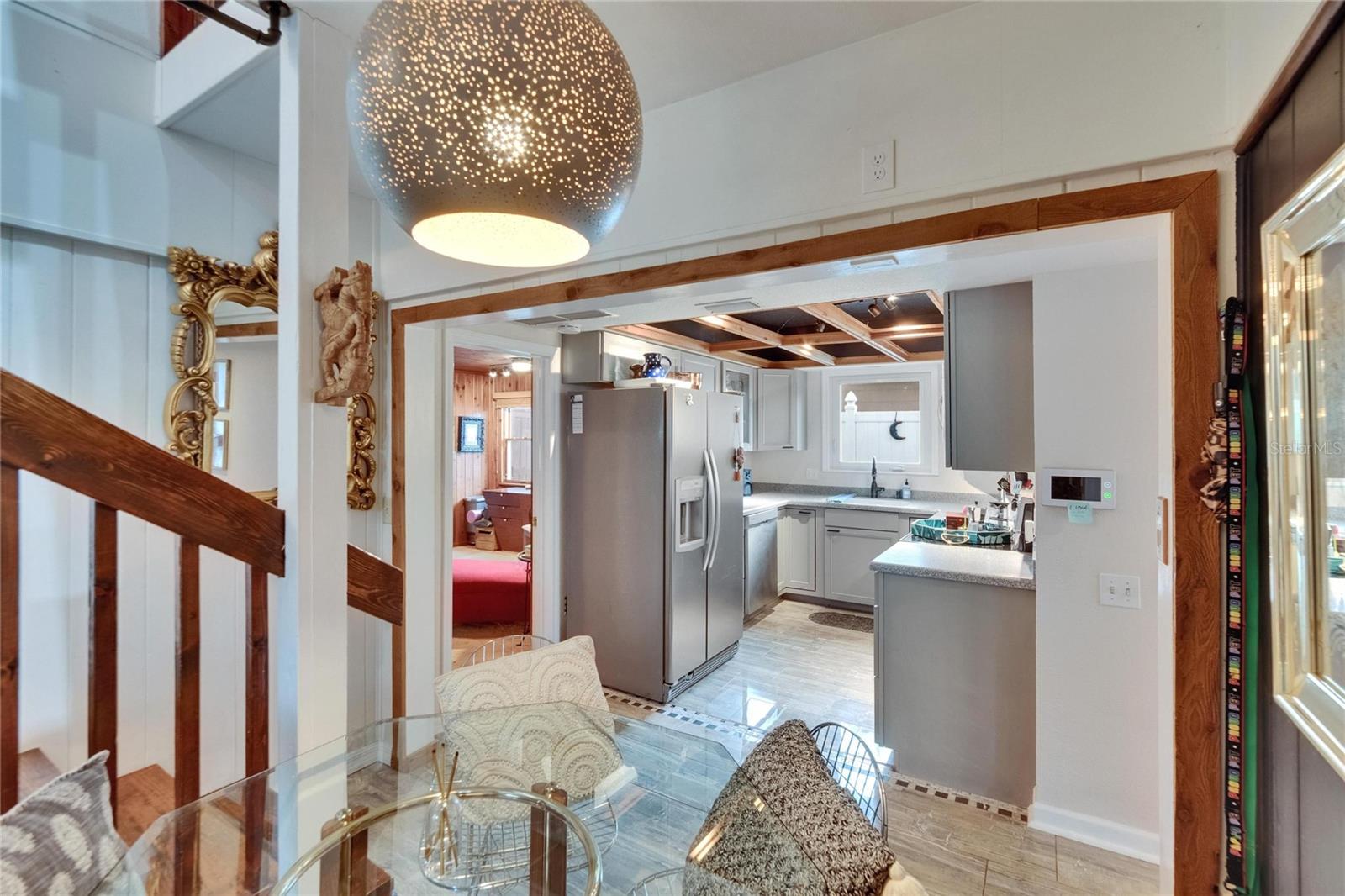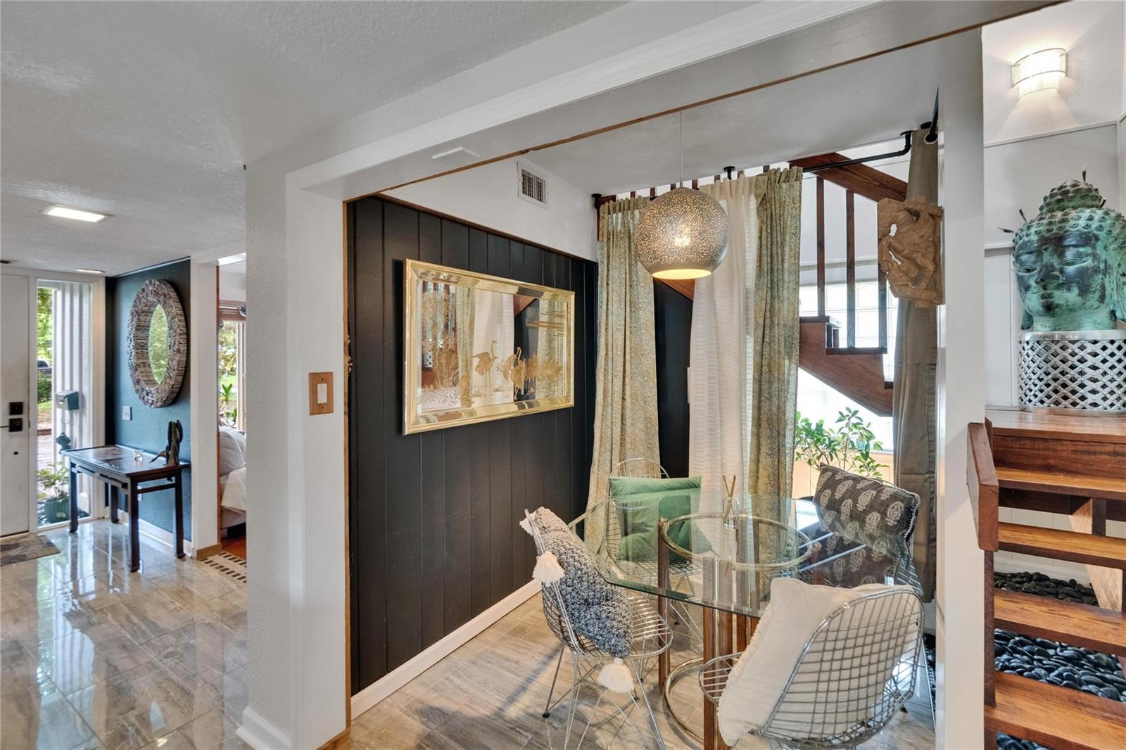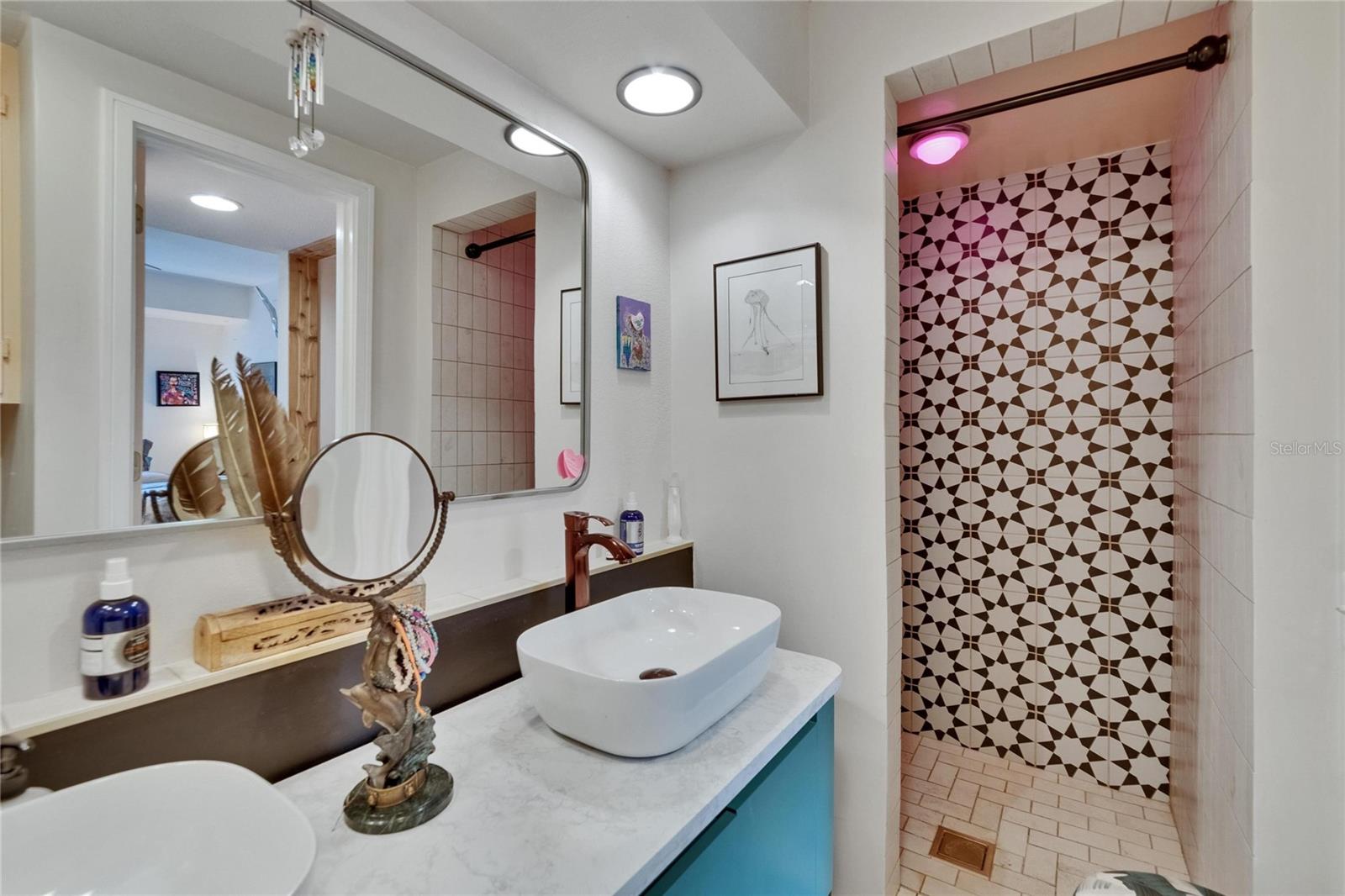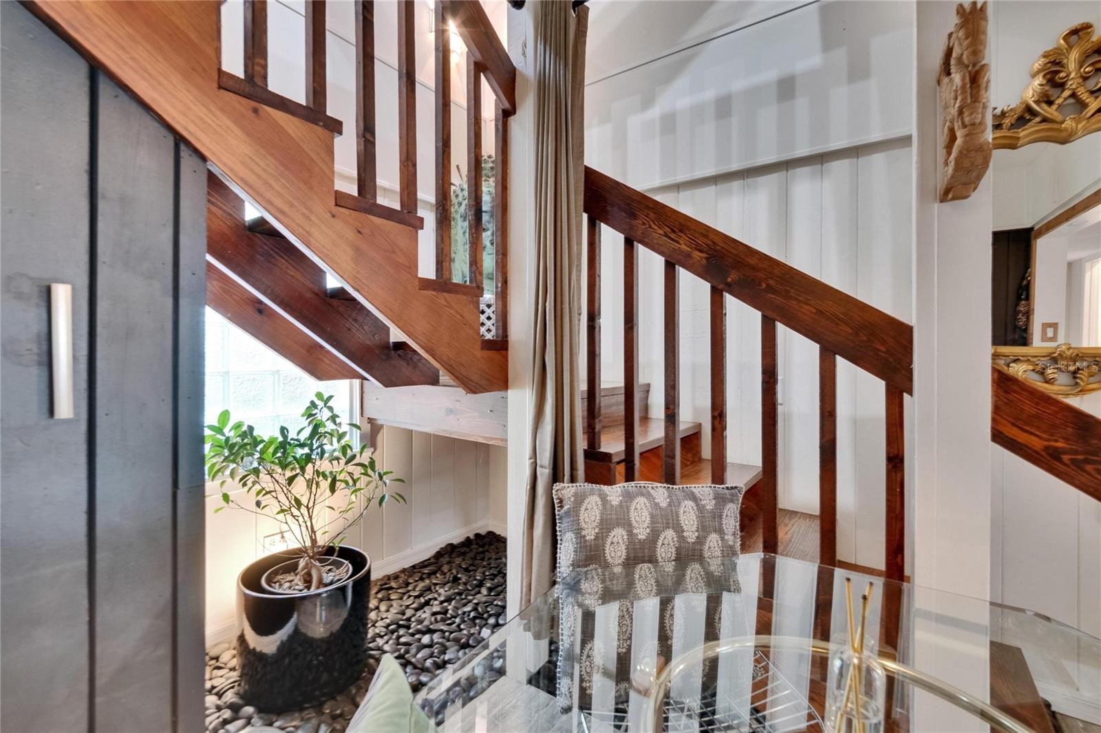 It is not often that you find such a unique, affordable property with easy access to all that stunning St. Pete offers! This home under the trees functions as the perfect duplex style property with multiple options for added privacy or rental potential. There are 3 bedroom suites with ensuite bathrooms making this a roommate's dream! As you enter you will immediately love the beautiful porcelain and marble flooring with various other unique touches throughout the home. To the left is the living room complete with built in cabinets and a wet bar. To the right of the front door is the first bedroom suite complete with double vanity and walk-in tile shower in the ensuite bathroom. As you continue you'll find the fully updated kitchen, dining area, and stair case to the loft. The loft features the 2nd bedroom suite that feels like you're truly living in a tree house where you can enjoy the oversized bedroom and statement vanity leading into the ensuite bathroom. Back downstairs as you continue you enter the back of the home that functions as a fully separate dwelling complete with living room/den, another full kitchen, and the 3rd bedroom with ensuite bathroom. There is a private entrance door in that living space and the bedroom making it perfect for a rental or scenario where people need to come and go freely. There is also a 1 car garage (including the laundry area), plenty of parking including alley access, and a front patio area to enjoy the peaceful ambiance of this shaded lot. If all of this isn't great enough, the roof was replaced and exterior painted in 2025 and kitchen and bathroom updates were completed in 2023 giving you true ease of ownership to move right in and make it your own. All of this is within minutes to boat ramps, parks, and so many other fabulous aspects of life in St. Pete so bring your boat or jet skis and get ready to enjoy the summer on the water! You do not want to miss out on this one-of-a-kind property so schedule your showing today!