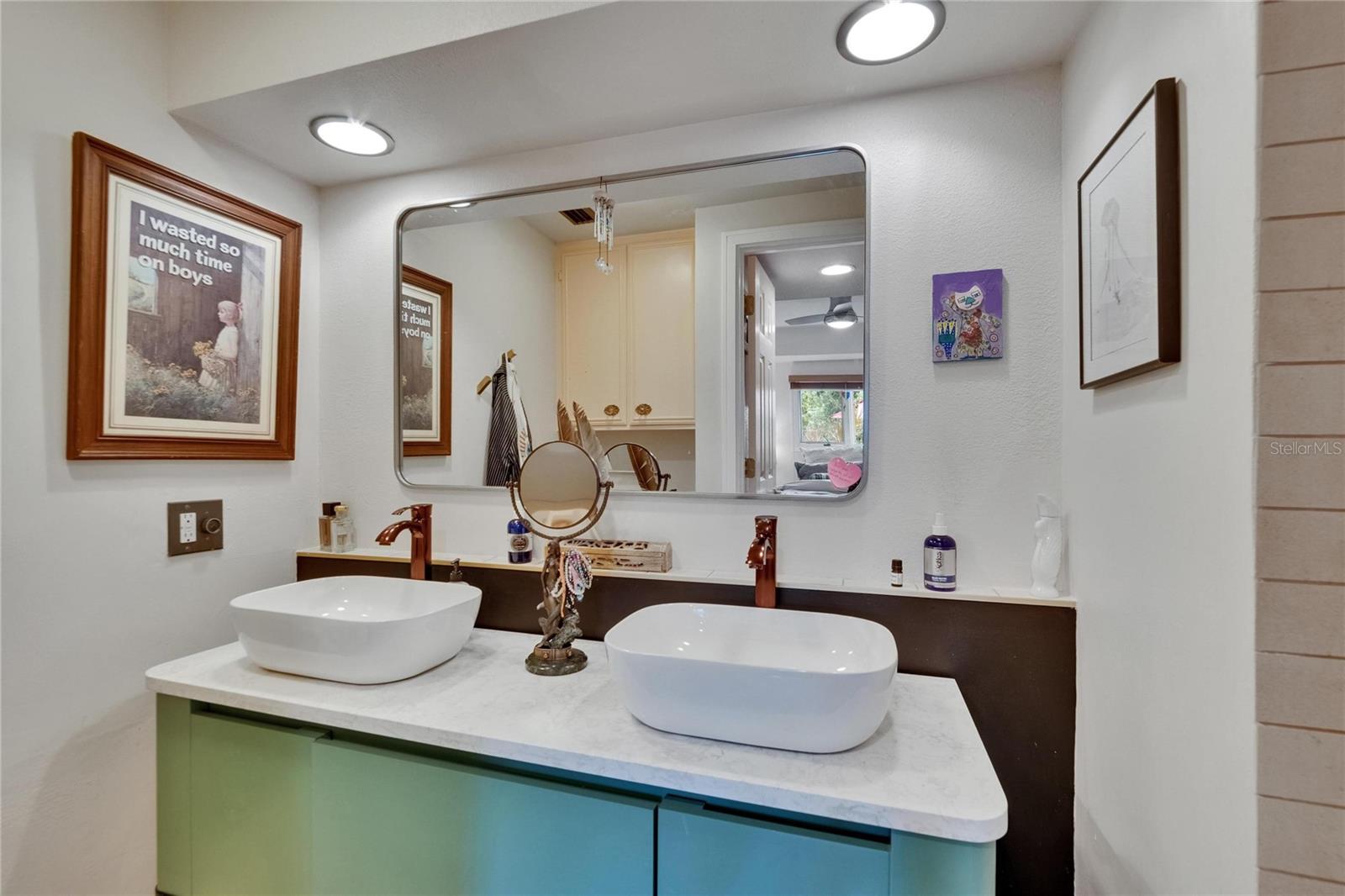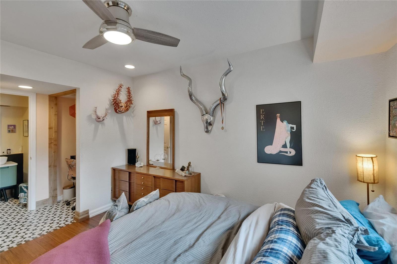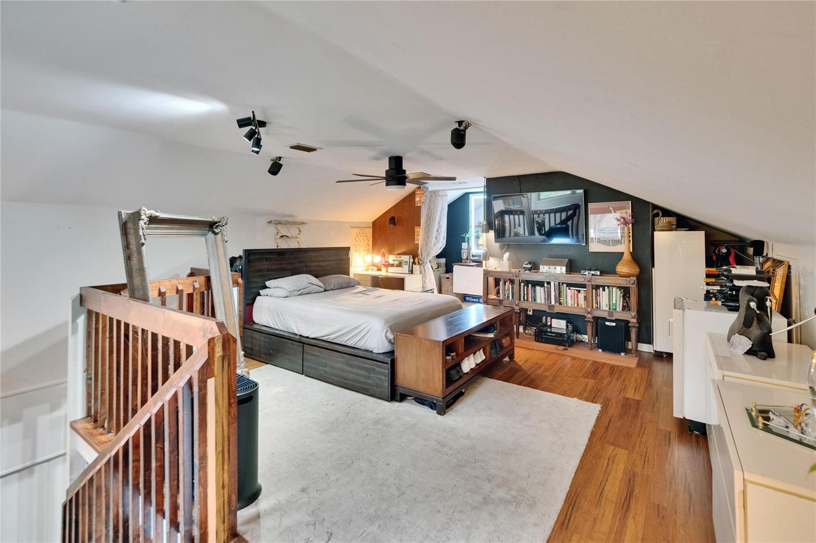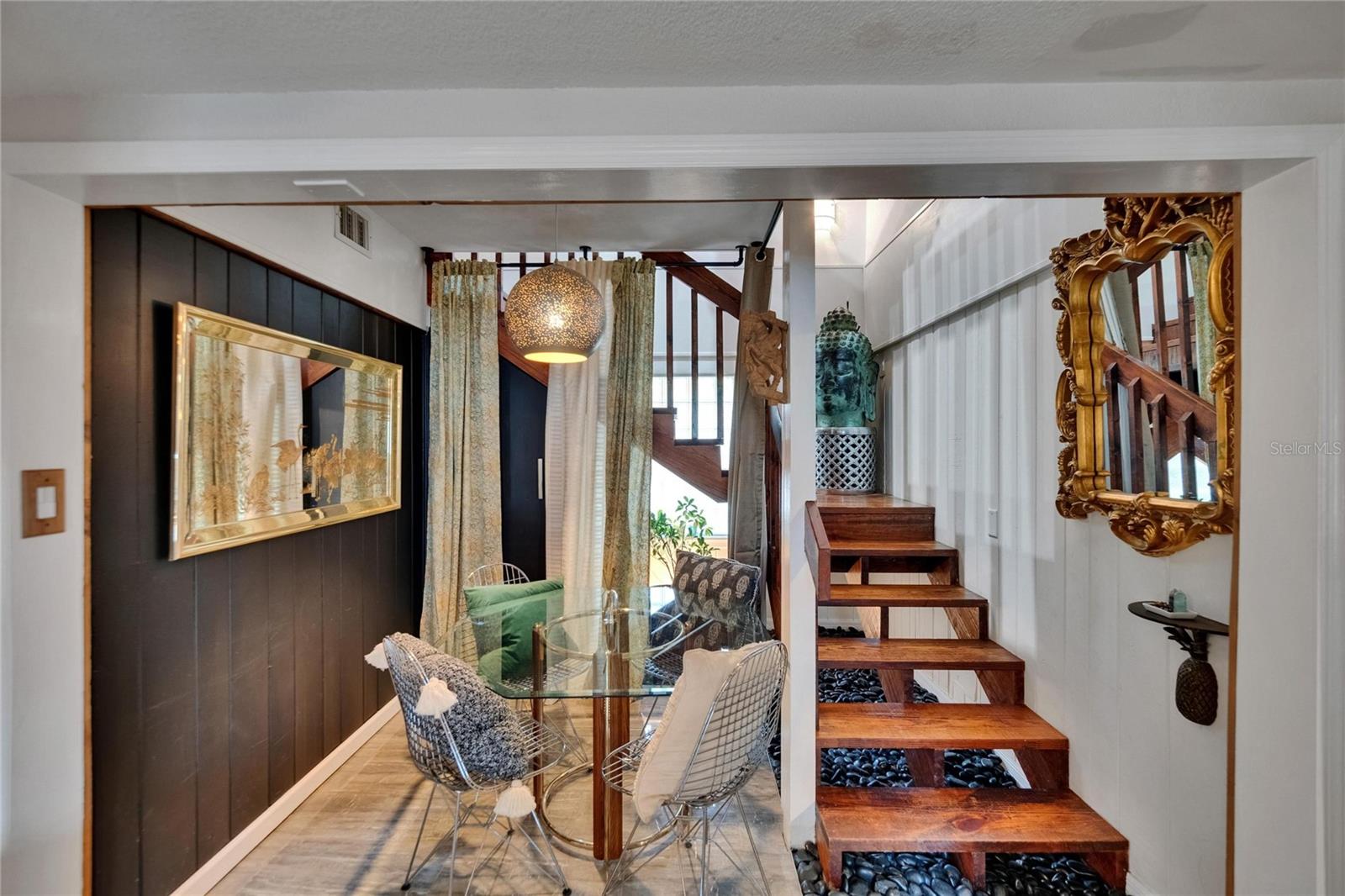 It is not often that you find such a unique, affordable property with easy access to all that stunning St. Pete offers! This home under the trees functions as the perfect duplex style property with multiple options for added privacy or rental potential. There are 3 bedroom suites with ensuite bathrooms making this a roommate's dream! As you enter you will immediately love the beautiful porcelain and marble flooring with various other unique touches throughout the home. To the left is the living room complete with built in cabinets and a wet bar. To the right of the front door is the first bedroom suite complete with double vanity and walk-in tile shower in the ensuite bathroom. As you continue you'll find the fully updated kitchen, dining area, and stair case to the loft. The loft features the 2nd bedroom suite that feels like you're truly living in a tree house where you can enjoy the oversized bedroom and statement vanity leading into the ensuite bathroom. Back downstairs as you continue you enter the back of the home that functions as a fully separate dwelling complete with living room/den, another full kitchen, and the 3rd bedroom with ensuite bathroom. There is a private entrance door in that living space and the bedroom making it perfect for a rental or scenario where people need to come and go freely. There is also a 1 car garage (including the laundry area), plenty of parking including alley access, and a front patio area to enjoy the peaceful ambiance of this shaded lot. If all of this isn't great enough, the roof was replaced and exterior painted in 2025 and kitchen and bathroom updates were completed in 2023 giving you true ease of ownership to move right in and make it your own. All of this is within minutes to boat ramps, parks, and so many other fabulous aspects of life in St. Pete so bring your boat or jet skis and get ready to enjoy the summer on the water! You do not want to miss out on this one-of-a-kind property so schedule your showing today!
