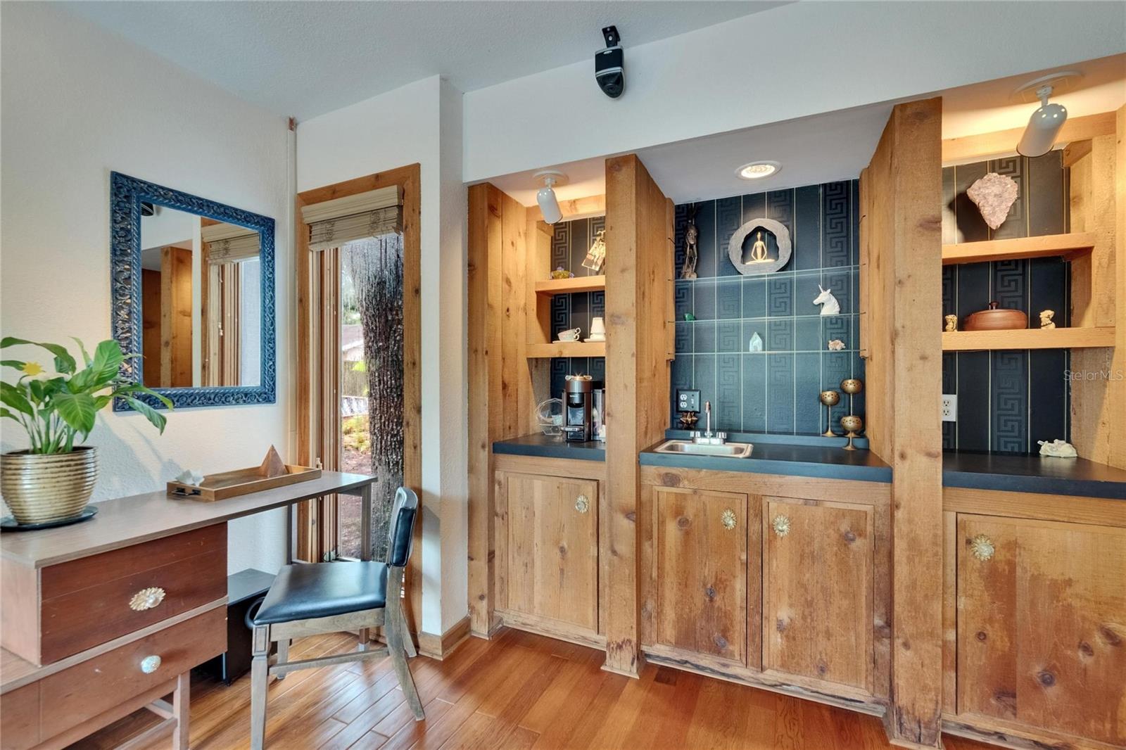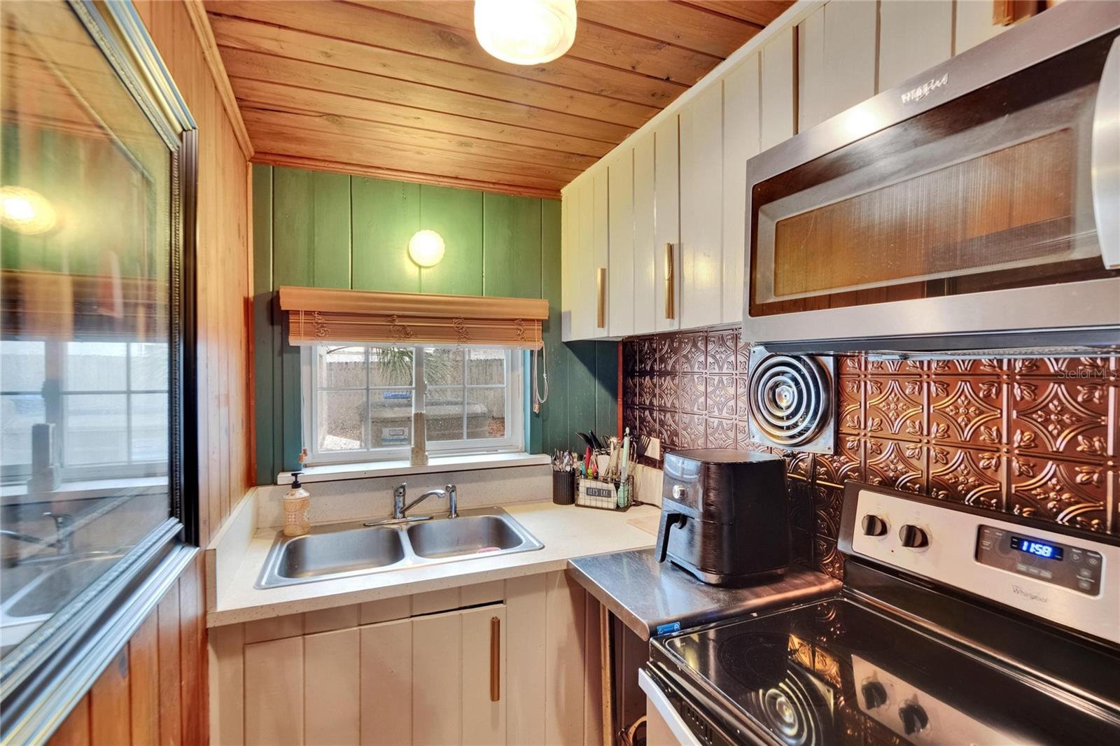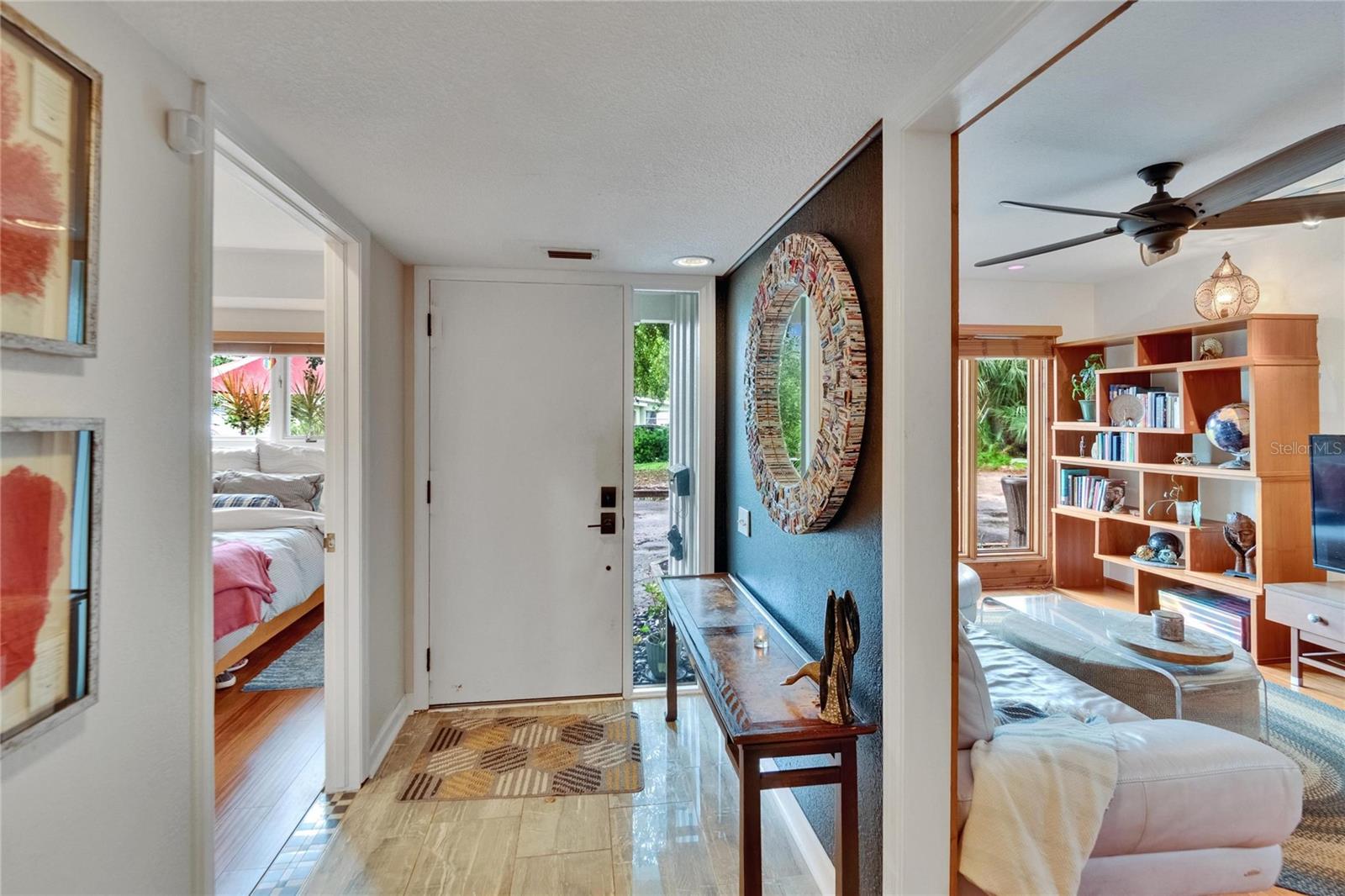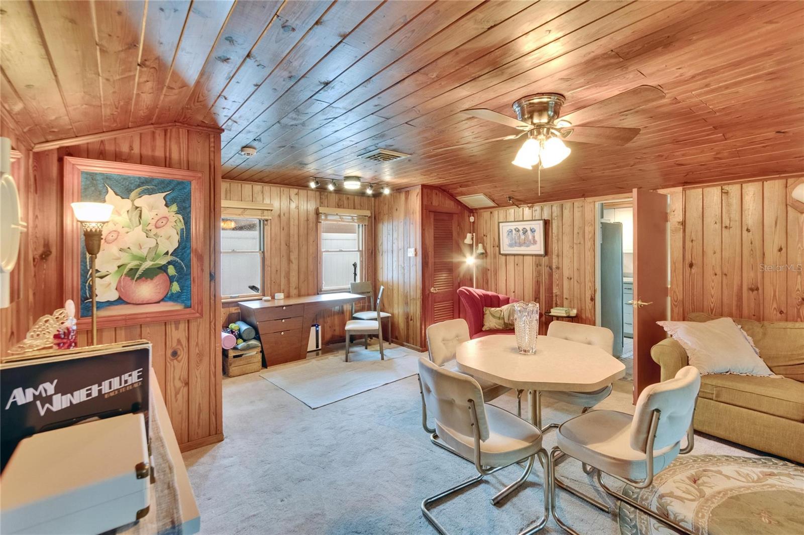 It is not often that you find such a unique, affordable property with easy access to all that stunning St. Pete offers! This home under the trees functions as the perfect duplex style property with multiple options for added privacy or rental potential. There are 3 bedroom suites with ensuite bathrooms making this a roommate's dream! As you enter you will immediately love the beautiful porcelain and marble flooring with various other unique touches throughout the home. To the left is the living room complete with built in cabinets and a wet bar. To the right of the front door is the first bedroom suite complete with double vanity and walk-in tile shower in the ensuite bathroom. As you continue you'll find the fully updated kitchen, dining area, and stair case to the loft. The loft features the 2nd bedroom suite that feels like you're truly living in a tree house where you can enjoy the oversized bedroom and statement vanity leading into the ensuite bathroom. Back downstairs as you continue you enter the back of the home that functions as a fully separate dwelling complete with living room/den, another full kitchen, and the 3rd bedroom with ensuite bathroom. There is a private entrance door in that living space and the bedroom making it perfect for a rental or scenario where people need to come and go freely. There is also a 1 car garage (including the laundry area), plenty of parking including alley access, and a front patio area to enjoy the peaceful ambiance of this shaded lot. If all of this isn't great enough, the roof was replaced and exterior painted in 2025 and kitchen and bathroom updates were completed in 2023 giving you true ease of ownership to move right in and make it your own. All of this is within minutes to boat ramps, parks, and so many other fabulous aspects of life in St. Pete so bring your boat or jet skis and get ready to enjoy the summer on the water! You do not want to miss out on this one-of-a-kind property so schedule your showing today!