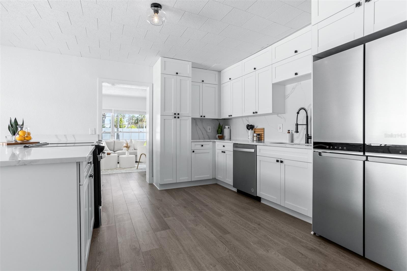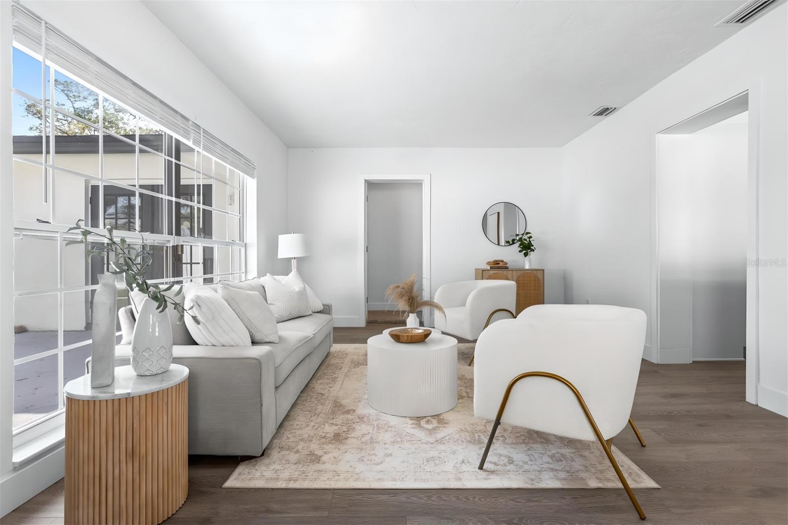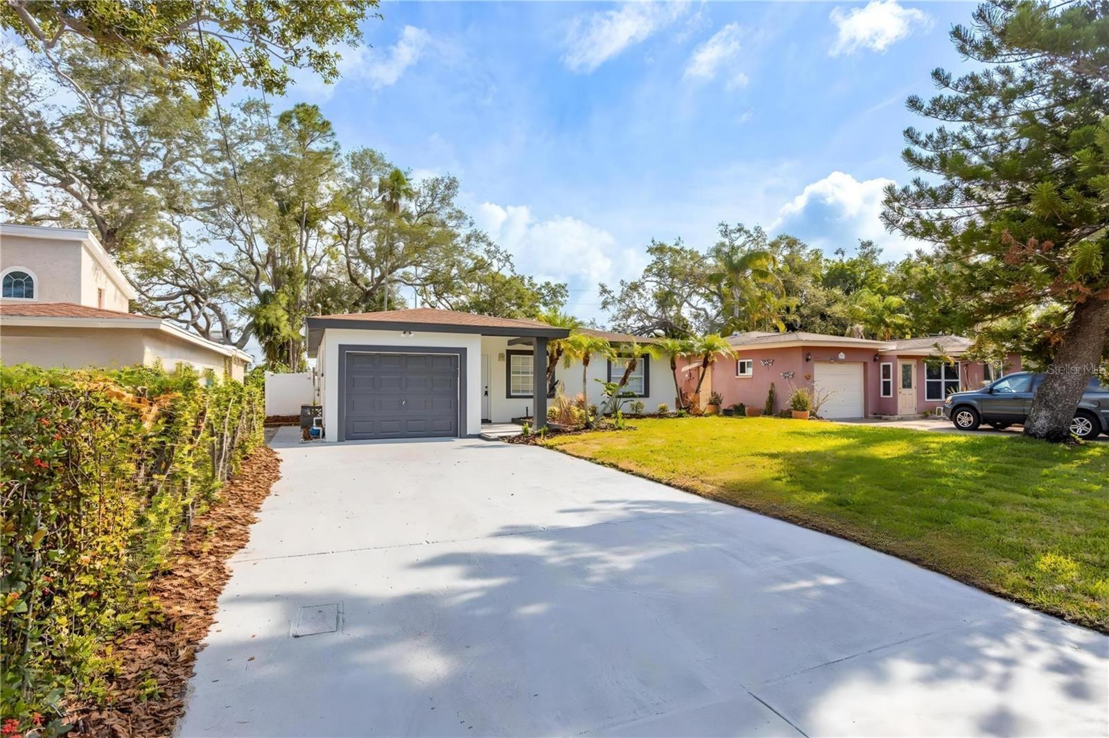 PROPERTY QUALIFIES FOR 100% FINANCING!!! PRICE DROP!!!Welcome to your dream home in the heart of St. Petersburg! Tucked away on a quiet private road, this beautifully renovated property offers the perfect blend of comfort, style, and convenience. Just minutes from world-renowned beaches, shopping, dining, and major highways, the location couldn’t be more ideal. As you arrive, the home’s fresh curb appeal will instantly impress—featuring a brand-new exterior paint job, lush landscaping, fresh sod, and a newly installed irrigation system connected to a private well for easy maintenance. The oversized, gated backyard offers plenty of room to play, relax, or entertain, complete with a spacious patio perfect for enjoying warm Florida evenings. Step inside to discover a bright, open-concept floor plan with luxury vinyl plank flooring throughout the main living spaces. The home offers two living areas—one at the front and another at the rear—providing plenty of flexible space for gathering or relaxing. At the heart of the home is a stunning, brand-new kitchen showcasing solid wood cabinetry, sleek quartz countertops, high-end stainless steel appliances, and a generous island perfect for cooking and conversation. This thoughtfully designed home features 3 bedrooms and 2 full bathrooms, including a spacious primary suite tucked at the back of the house for added privacy. The master includes a large walk-in closet and a beautifully updated en suite bath. Two additional bedrooms are located at the front of the home and share a stylish full bath.Additional upgrades include a brand-new air conditioning system and a new roof to be installed prior to closing, giving the next owners peace of mind for years to come. Flood insurance quote is estimated to be $3,000!!Don’t miss your chance to own this move-in-ready gem in one of St. Pete’s most desirable areas. Schedule your private showing today!