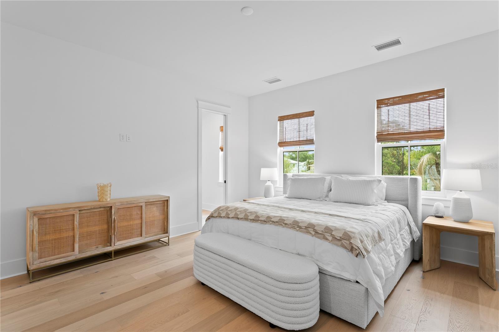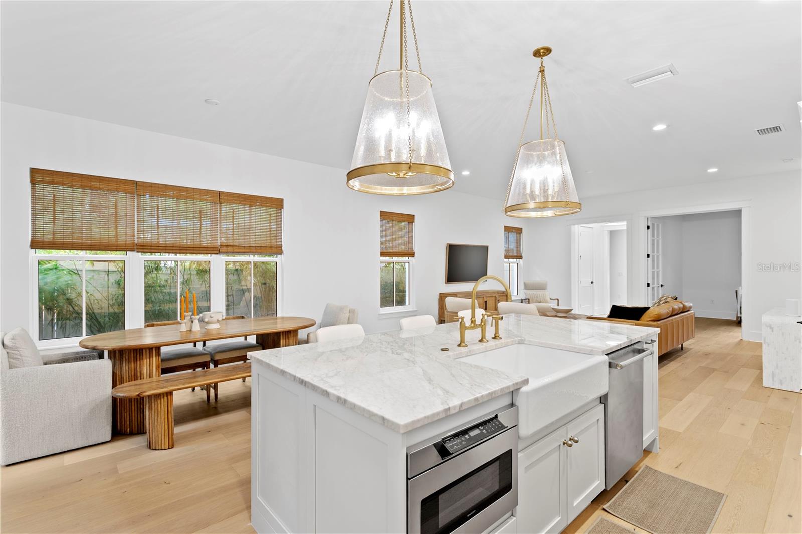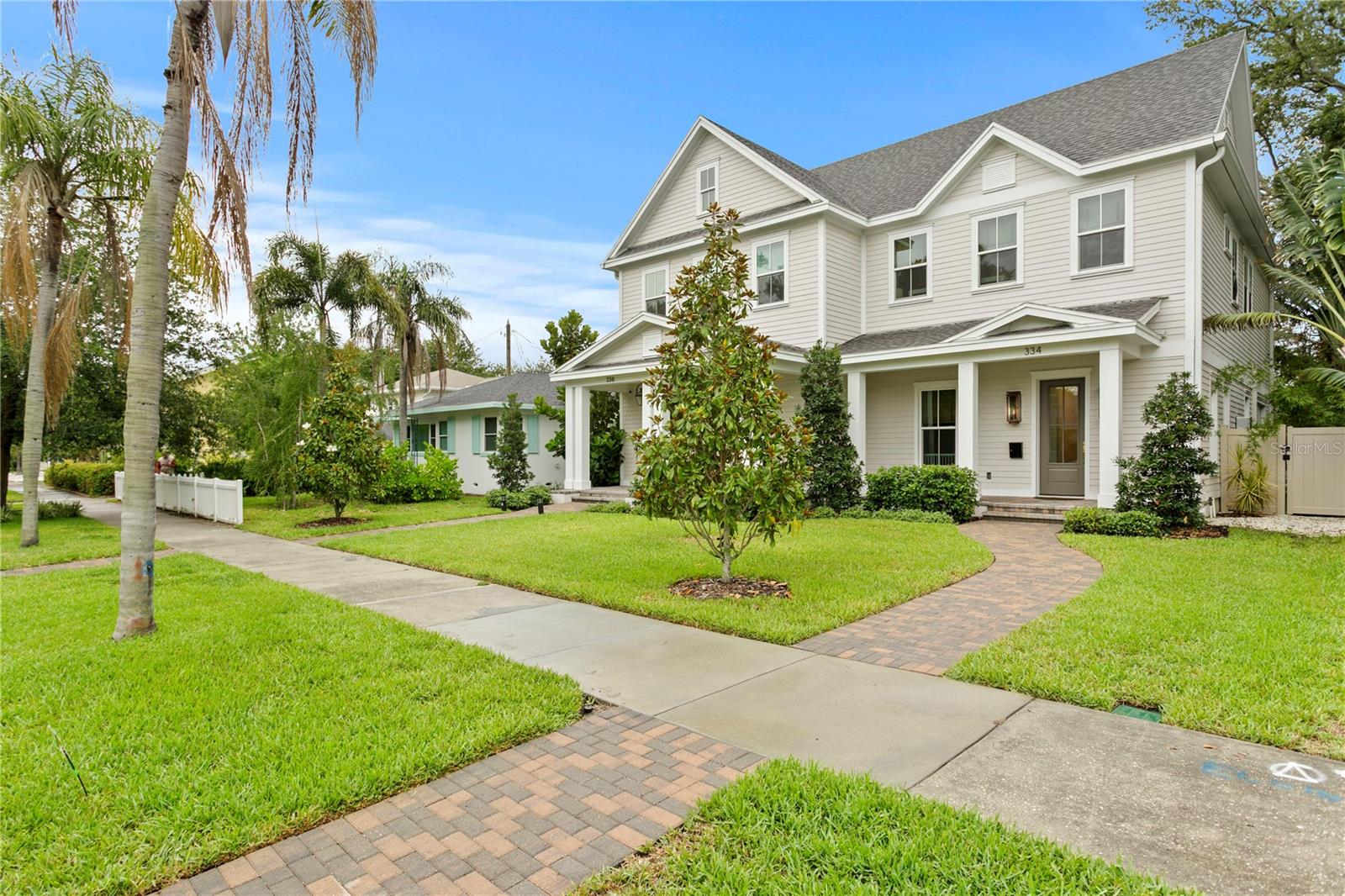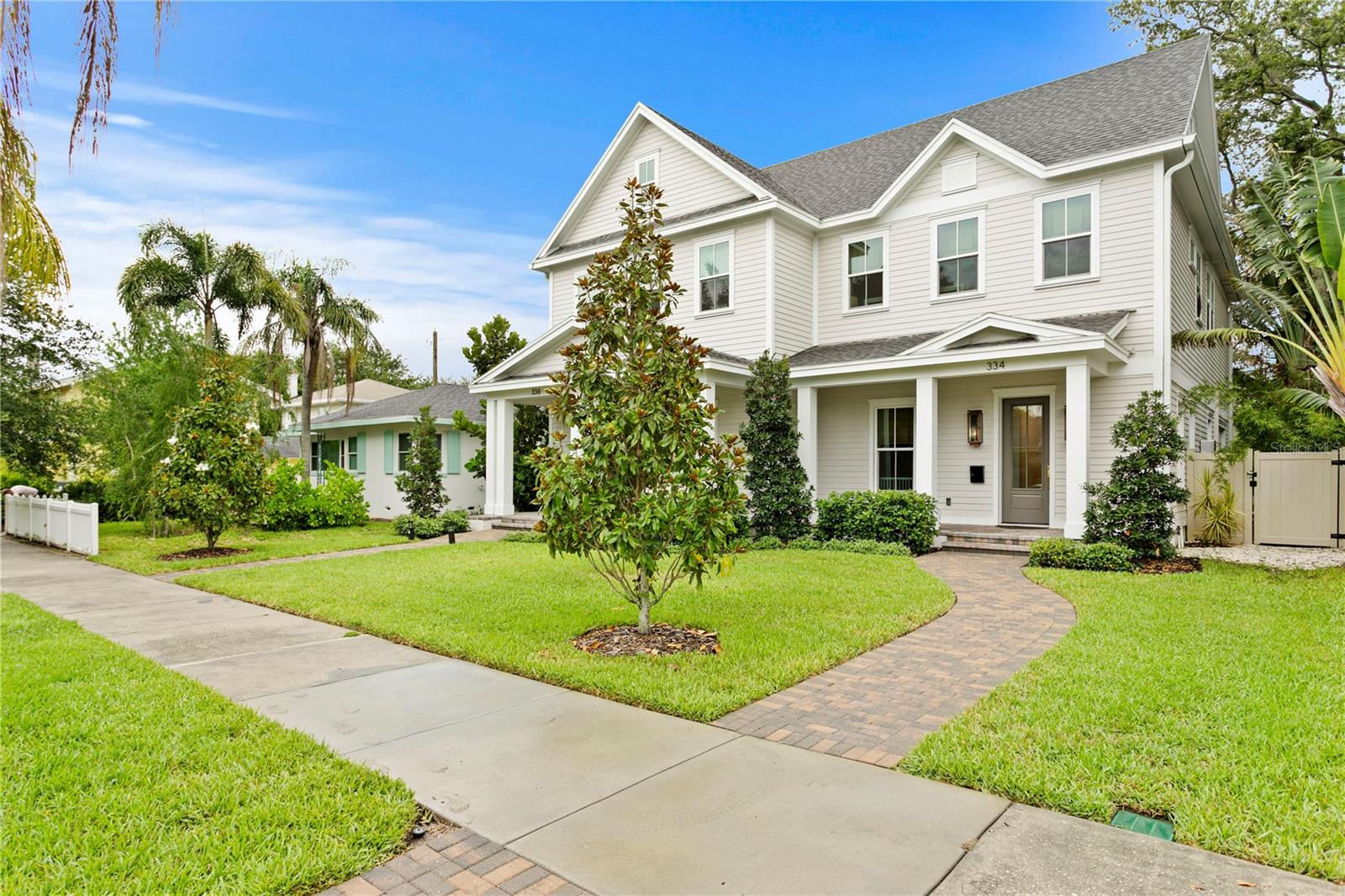 Welcome to 334 11th Avenue NE, a rare opportunity to own a beautifully crafted townhome by Canopy Builders, located in the heart of St. Petersburg’s cherished Old Northeast neighborhood with no HOA. This home offers the option to come fully furnished, with pieces purchased within the last six months that have been lightly used—making it completely move-in ready. One of two thoughtfully designed residences built in 2024, this home blends classic craftsman-style architecture with elevated, modern finishes—beginning with signature natural gas lanterns that warmly illuminate the front entry. Inside, the first floor welcomes you with an expansive open-concept layout that effortlessly connects the living, dining, kitchen, and office/den spaces. Ten-foot ceilings and wide-plank engineered white oak flooring create a sense of volume and warmth, while 8-inch baseboards and exquisite millwork reflect the home's attention to detail. The gourmet kitchen serves as the heart of the home, featuring custom cabinetry, a marble-topped island, brass hardware, and a GE Monogram appliance package—including a 36-inch chef-inspired gas range. It’s both a showpiece and a functional culinary space. Upstairs, you’ll find three generously sized bedrooms and a versatile loft area—ideal for a secondary living space, office, or workout room. The primary suite is privately tucked away and features a glamorously large walk-in closet, ready for custom built-ins. The en-suite bathroom offers a spa-like retreat with marble countertops, Kohler fixtures, and timeless design. The two additional bedrooms provide ample space and are perfect for family or guests, while the full upstairs layout supports flexibility in how you live and grow in the space. Step outside to enjoy a beautifully designed escape. The covered lanai offers a shaded outdoor retreat, perfect for entertaining or relaxing with the opportunity to add an extensive outdoor kitchen. The side yard has been upgraded with lush turf and mature bamboo landscaping, creating a serene and low-maintenance setting. The covered lanai attaches to the two-car garage that offers secure and convenient parking with direct access into the home. A dedicated parking slab to the left of the garage provides extra space for a third car or golf cart. A tankless gas water heater ensures energy-efficient hot water, and PGT double-pane, insulated, impact-resistant windows with low-E coating provide natural light, energy savings, and a quieter interior, with the blinds adding warmth and style throughout the home. A stackable washer & dryer, and Ring security cameras monitoring the property enhance everyday comfort and peace of mind. Every detail of 334 11th Avenue NE has been curated for elevated living—blending comfort, style, and smart functionality. Just a 7-minute walk to Beach Drive and the Vinoy Hotel, and only 4 minutes from Northshore Park and the scenic Coffee Pot Trail, this home offers the perfect balance of neighborhood charm and city convenience in one of St. Petersburg’s most sought-after locations. Welcome to timeless design, modern luxury, and the best of Old Northeast living.