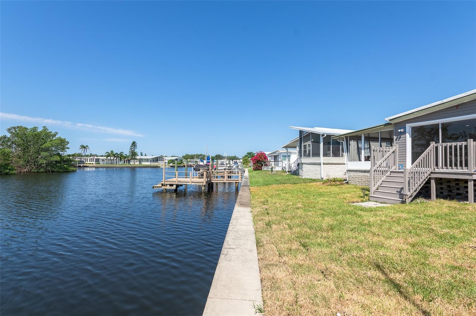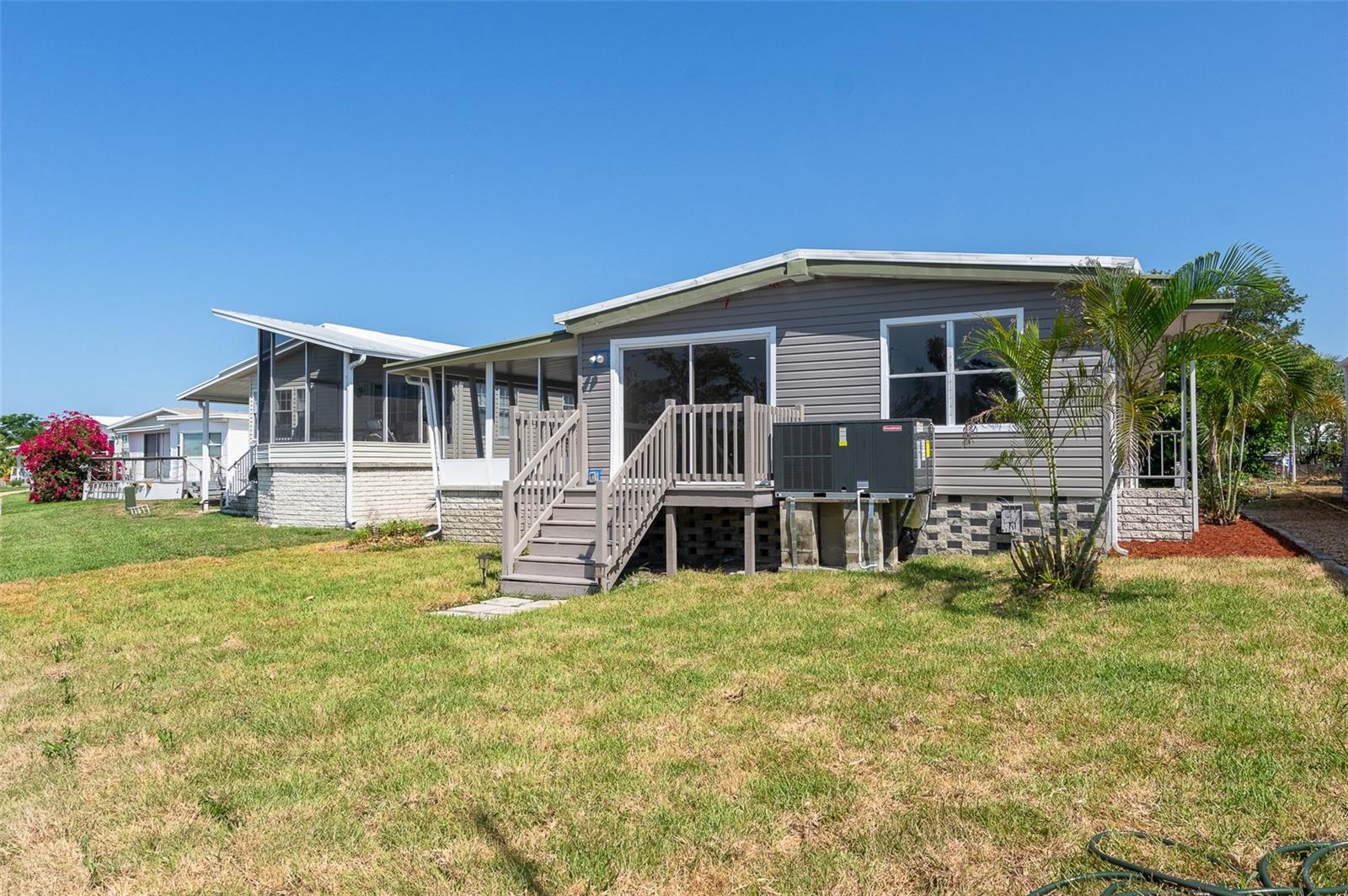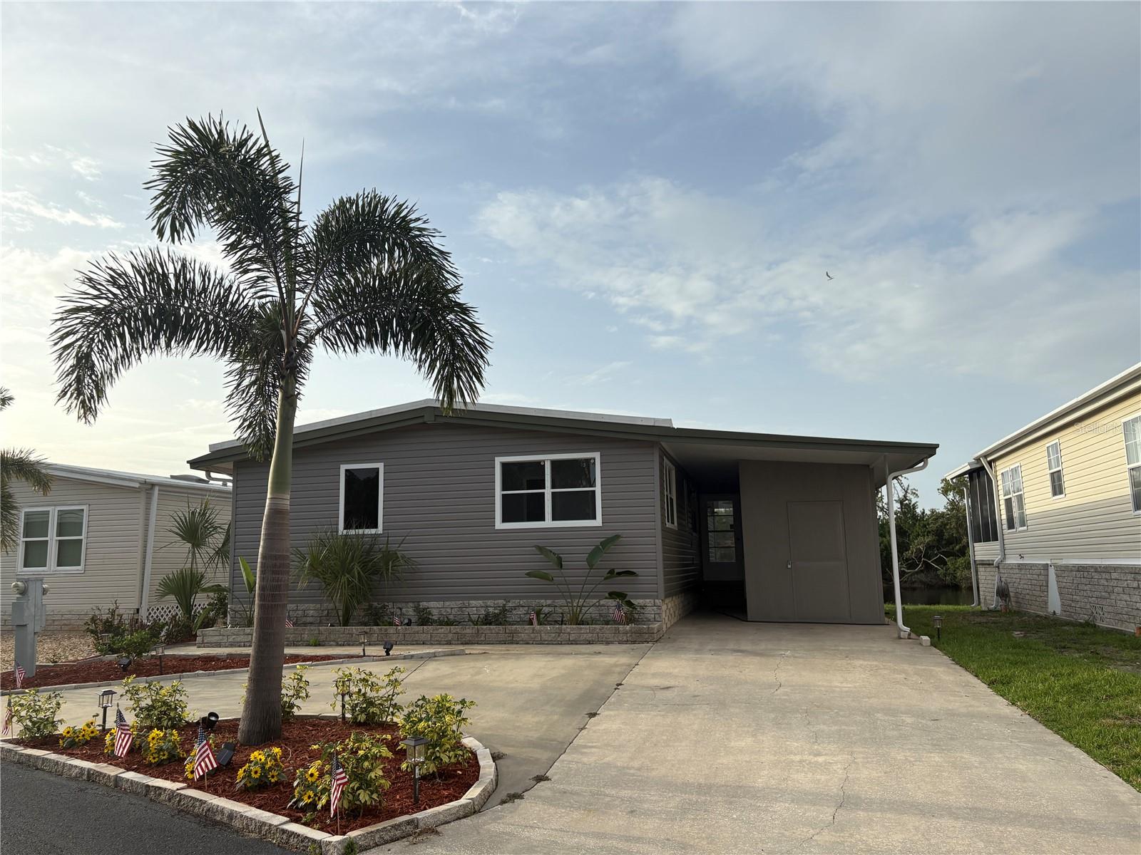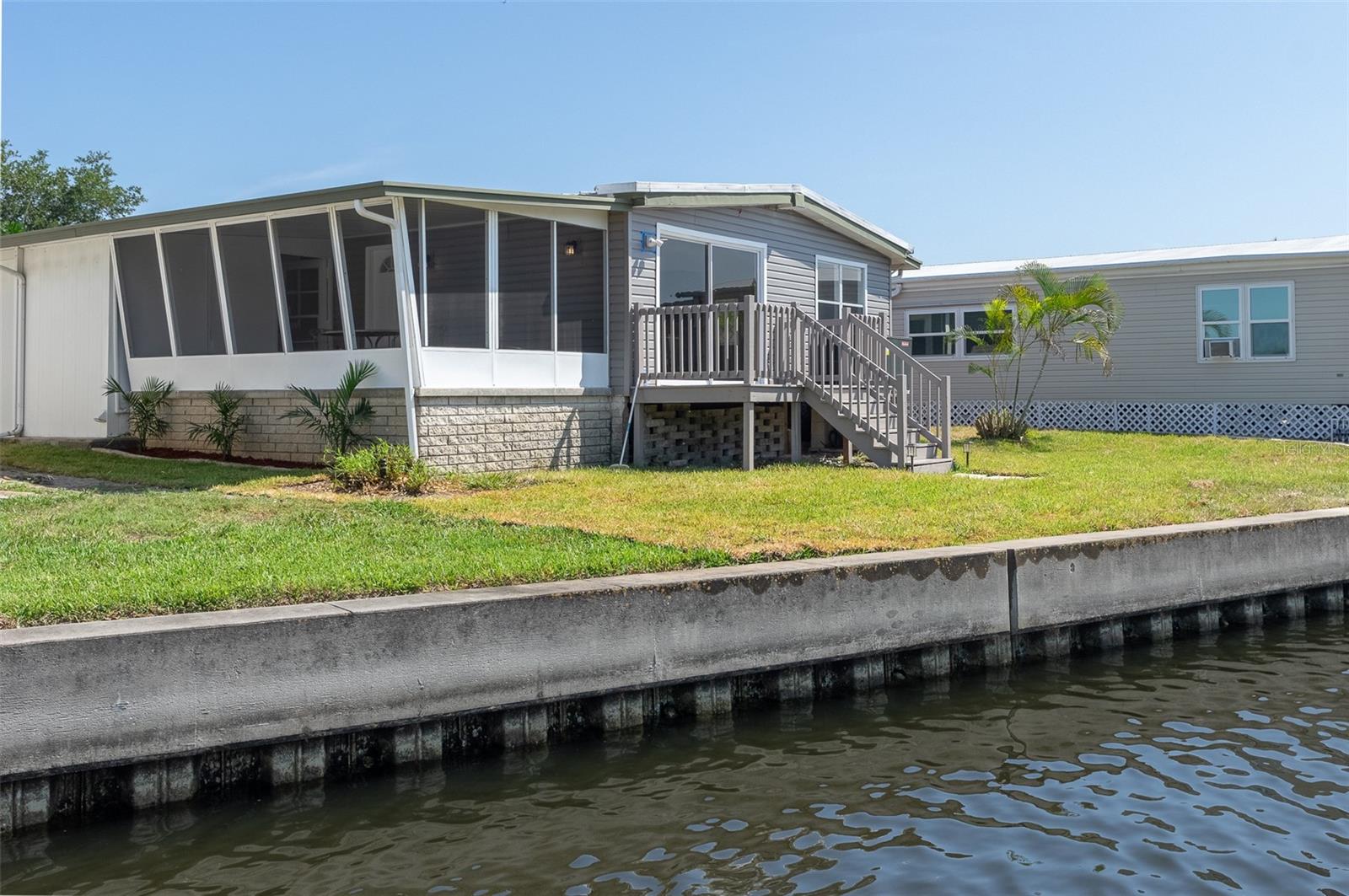 One or more photo(s) has been virtually staged. This remodeled WATERFRONT 3 bedroom 2 bath home has a screened porch, an open porch, and a deck. No interior flooding with 2024 storms. New in 2025, stainless steel appliances, cabinets, large custom island, solid surface counter tops, laminate flooring throughout, new windows, and drywall thru out. Bathrooms remodeled with new cabinets, sinks, and showers. New A/C and ductwork. Parking for 4 cars. No interior flooding with 2024 storms. Price includes share for the lot and ownership in the co-op. home is located in Americana Cove, a 55+, resident owned, waterfront community only 10 minutes from downtown St. Pete, 15 minutes from two airports and 25 minutes to Gulf beaches. Low monthly fee of $380 includes 24 hour manned gate, private streets, water/sever, lawn mowing/edging, trash pick up twice weekly and all amenities including heated pool, shuffleboard, bocce ball, two boat ramps and kayak launch. And many clubs and activities to get involved in.