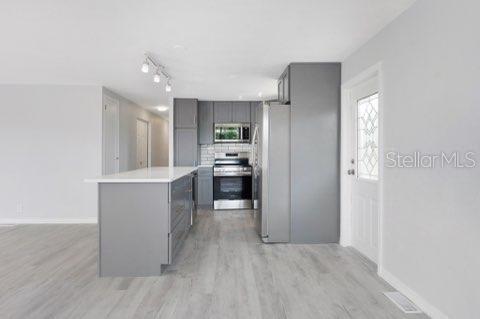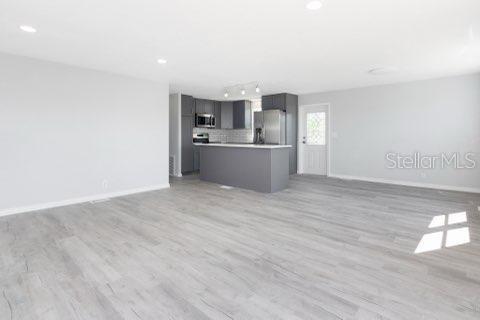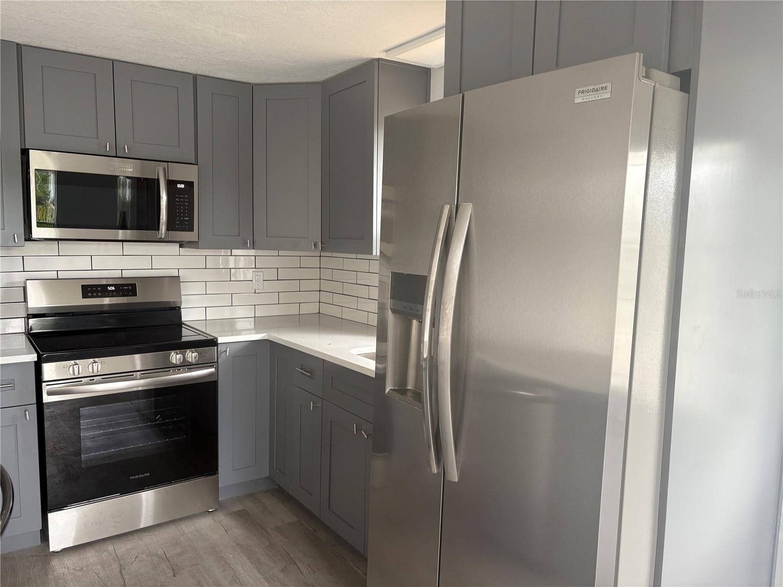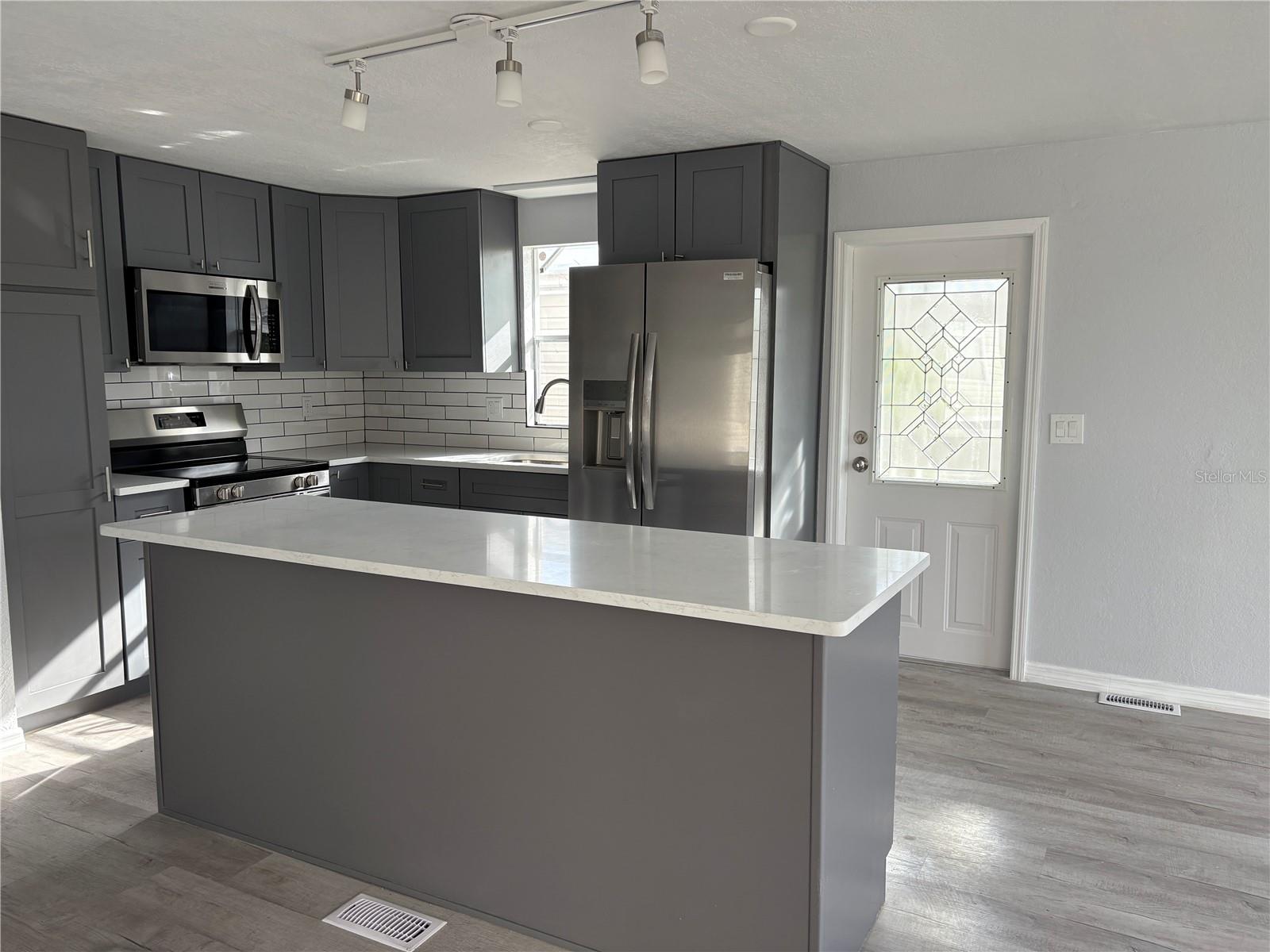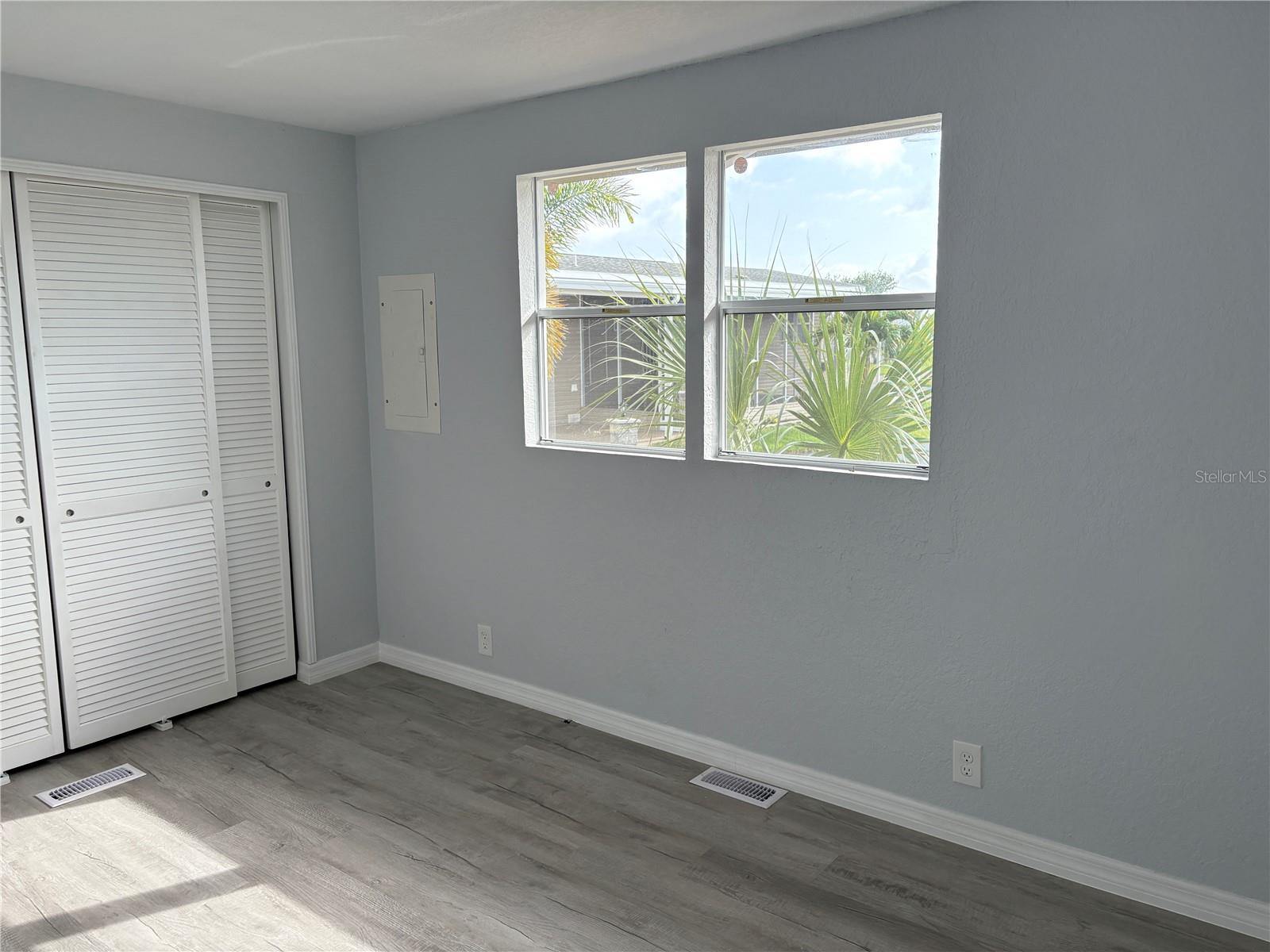 One or more photo(s) has been virtually staged. This remodeled WATERFRONT 3 bedroom 2 bath home has a screened porch, an open porch, and a deck. No interior flooding with 2024 storms. New in 2025, stainless steel appliances, cabinets, large custom island, solid surface counter tops, laminate flooring throughout, new windows, and drywall thru out. Bathrooms remodeled with new cabinets, sinks, and showers. New A/C and ductwork. Parking for 4 cars. No interior flooding with 2024 storms. Price includes share for the lot and ownership in the co-op. home is located in Americana Cove, a 55+, resident owned, waterfront community only 10 minutes from downtown St. Pete, 15 minutes from two airports and 25 minutes to Gulf beaches. Low monthly fee of $380 includes 24 hour manned gate, private streets, water/sever, lawn mowing/edging, trash pick up twice weekly and all amenities including heated pool, shuffleboard, bocce ball, two boat ramps and kayak launch. And many clubs and activities to get involved in.
