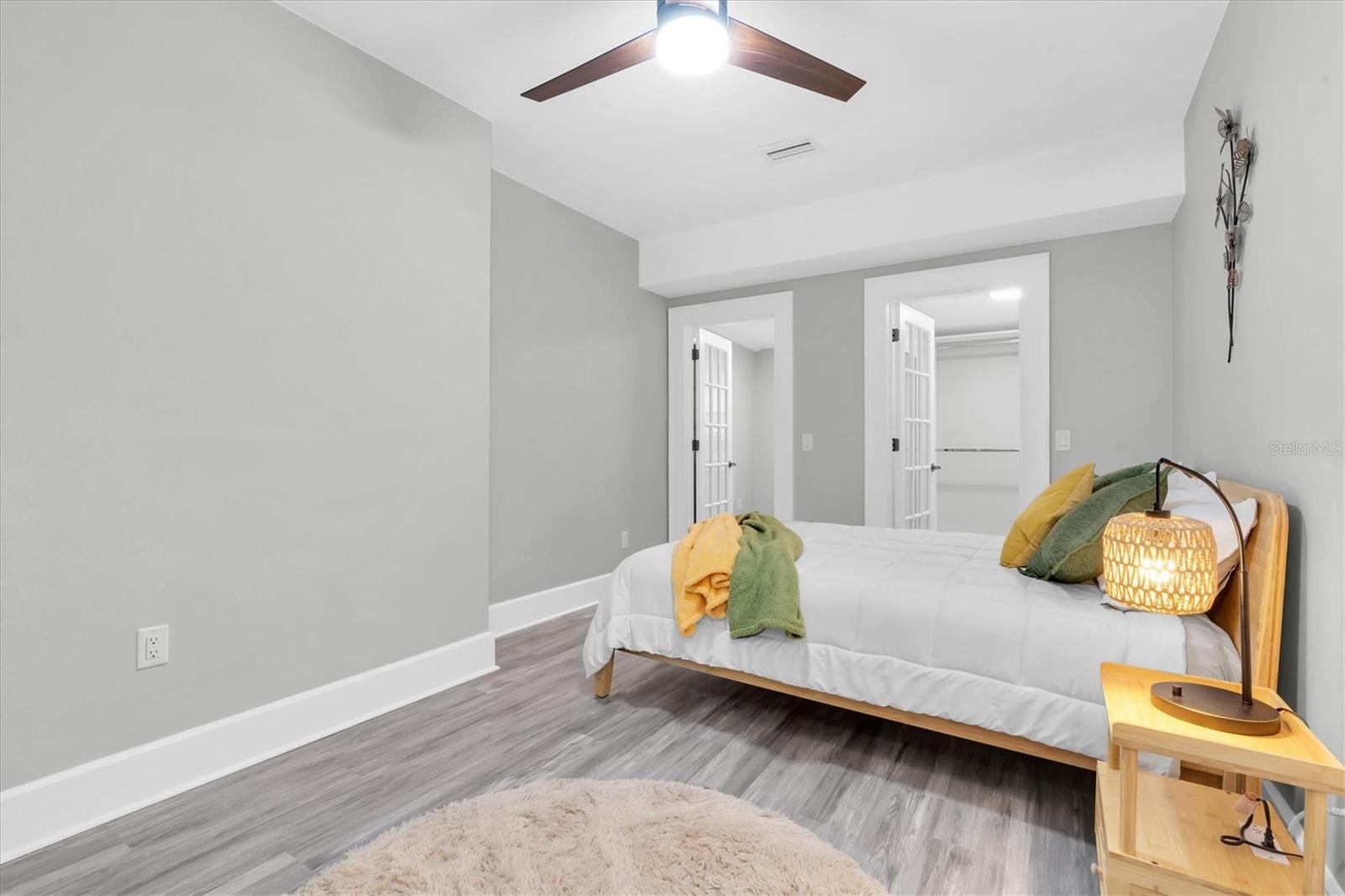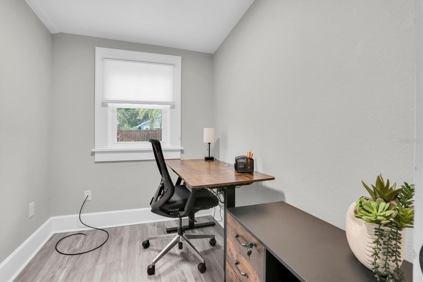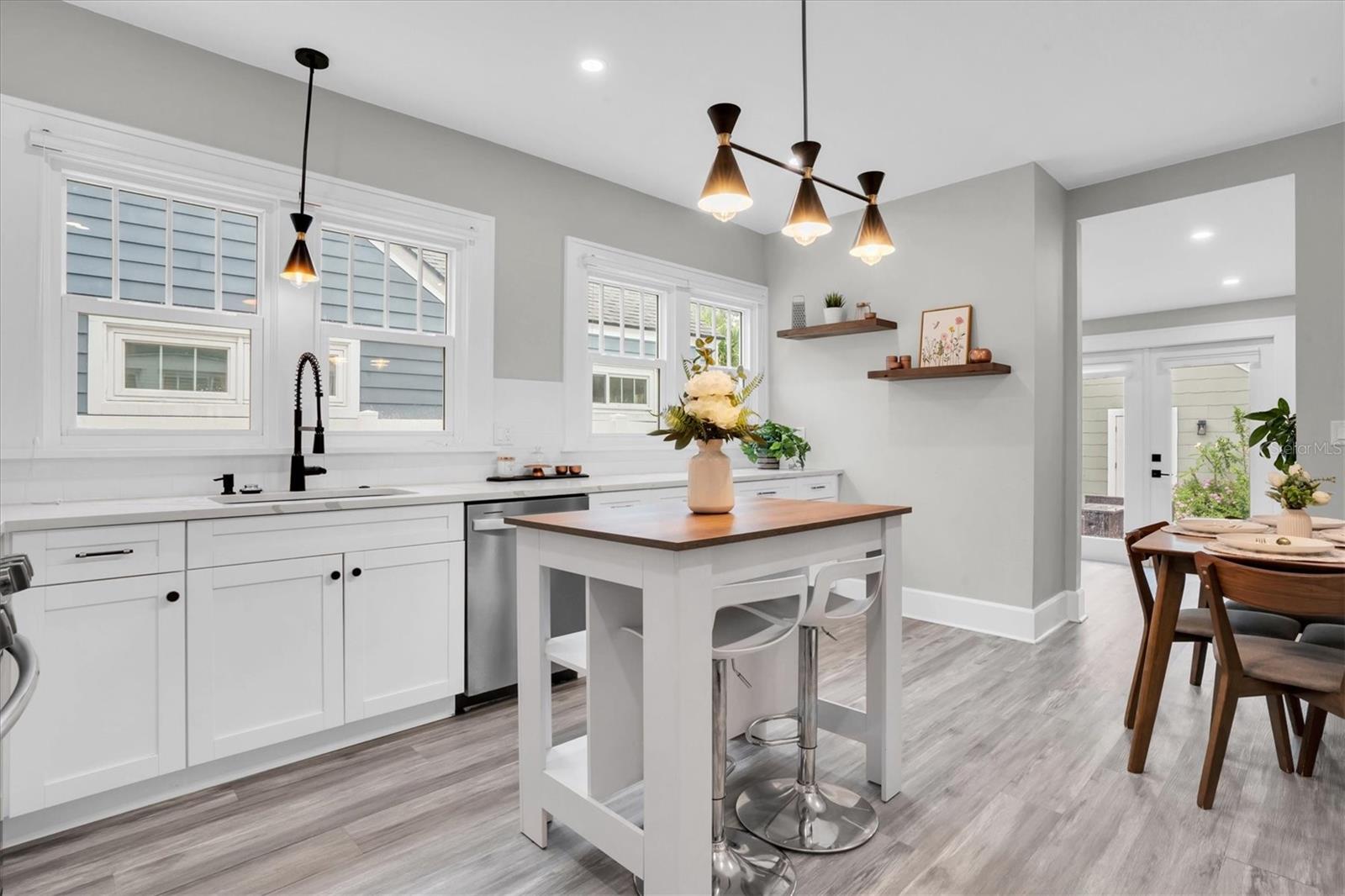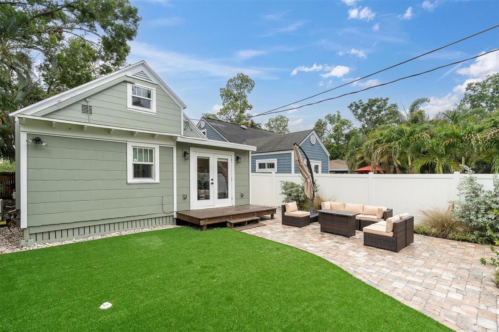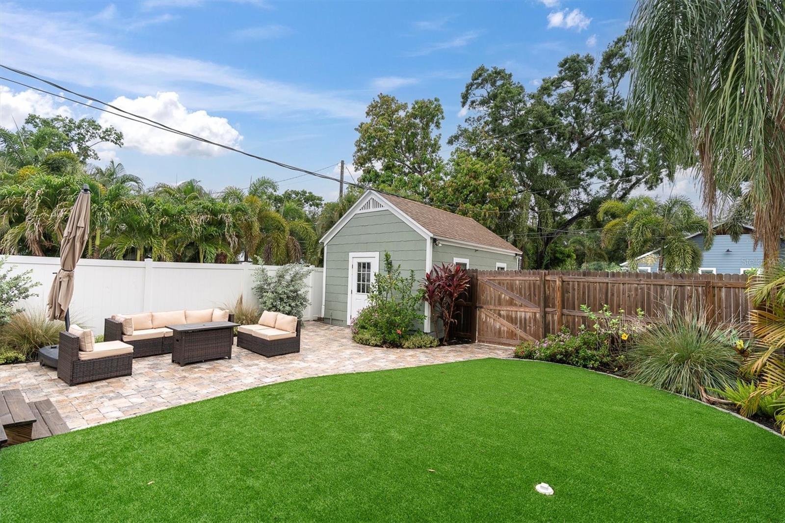 Charming 1940 Historic Kenwood 3 Bedroom, 2 Bathroom Home – Fully Renovated in 2021. Available furnished! Welcome to this beautifully restored 1940 gem in the heart of Historic Kenwood, nestled on a quiet brick street lined with mature, canopy trees. This home blends timeless character with modern updates, ensuring peace of mind for years to come. Enjoy mornings on the charming open front porch, perfect for sipping coffee and taking in the peaceful, tree-shaded surroundings. Inside, you’ll find top-to-bottom updates including newer electrical, plumbing, roof, windows, appliances, flooring, and cabinetry. Two bedrooms down stairs share a gorgeous bathroom with step-in shower with glass doors, contemporary tile and dual vanities. One of the bedrooms can serve as a primary with it's dual extra large walk-in closets, one of which the current owners use as an office! Upstairs, find the massive primary suit. A beautiful bedroom with a built-in window seat is inviting. The primary bathroom echos the brilliance of the home's design and the huge walk-in closet will be the cherry on top! The light-filled kitchen features a gas stove, stainless steel appliances, generous counter space of luxurious quarts, and stunning lighting. It's perfect for the chef in the home or a natural space for friends to gather. The spacious in-home utility room adds everyday convenience and you'll love the on-demand gas water heater. Whether you're entertaining or relaxing, the flow of the space and stylish finishes make this home both comfortable and functional. The backyard is a perfect combination of natural beauty and minimal up-keep thanks to the professionally installed faux grass. There is room for a pool or a potential ADU income or Multigenerational living. Located in the highly sought out Historic Kenwood Artist Enclave, within the vibrant Grand Central District, you're just minutes from downtown St. Pete, Tampa, and the beaches. Additional highlights include: Detached garage plus alley access with additional parking. Plenty of space to add a pool or potential ADU income/Multigenerational living. Furniture can stay for a turnkey move-in. Don’t miss this opportunity to own a piece of Kenwood history, with the peace of mind of professional craftsmanship and modern systems. Call to schedule your private showing today!