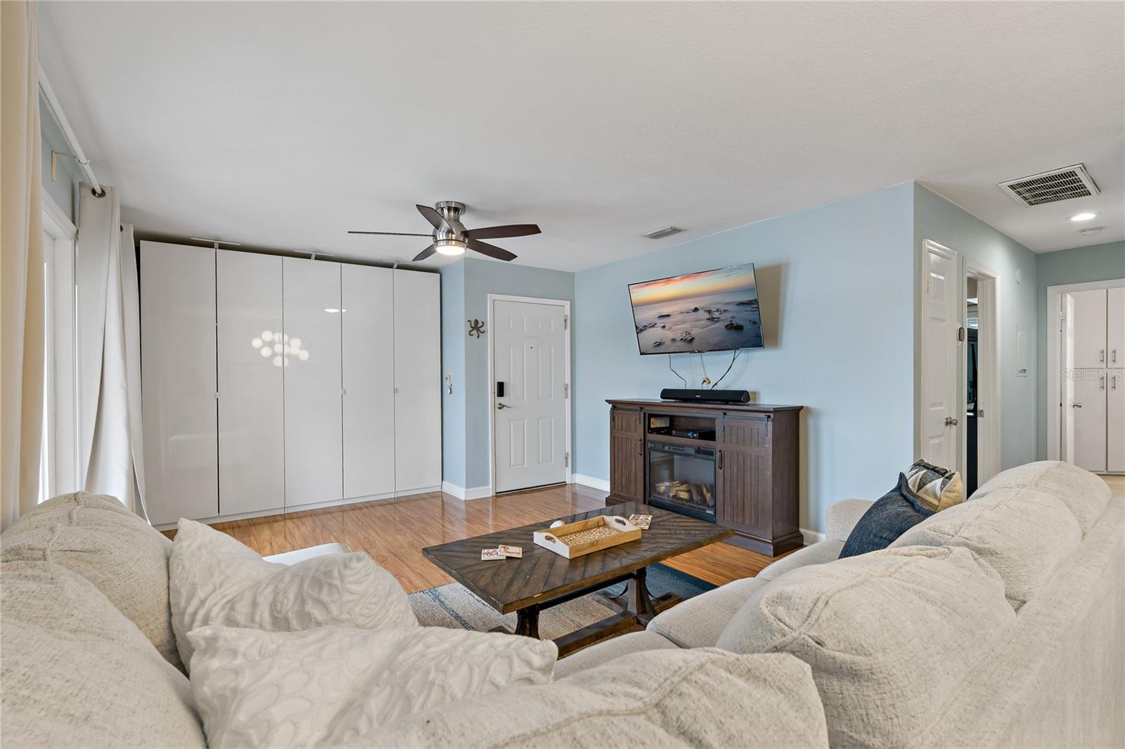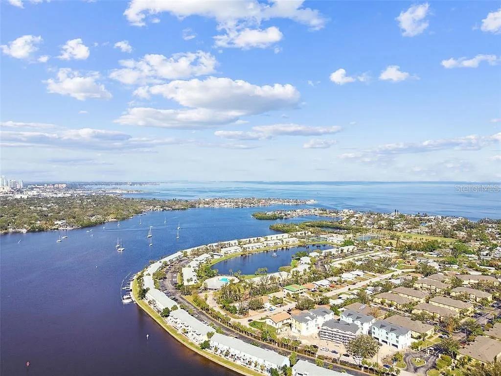 PRICE REDUCTION! A highly desirable Waterfront Condo with stunning Sunset Views is now ready!! New A/C installed in 2023. This condo features upgraded hurricane-impact windows, a kitchen with new custom cabinetry, high end appliances, floor to ceiling wall storage in the living room, built-in smart lighting heated (anti-fog) mirror, quartz countertops, under mount sink, and new lighting throughout as well as updated bathroom. Community amenities include Wi-Fi/cable, water, garbage, well equipped clubhouse with a full bar, 3 resort style pools, heated spa, tennis/pickleball courts, basketball courts, volleyball, 2 fitness centers, a fishing pier, and dog park. Boat slips and covered parking are available for rent. I-275 and downtown St. Petersburg is only a few minutes away. Short drive to the Gulf's famous beaches. Your Florida Lifestyle is waiting!