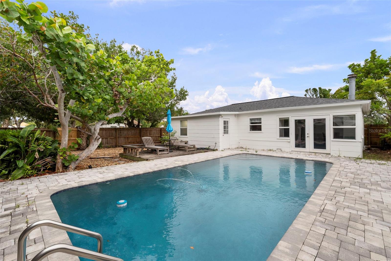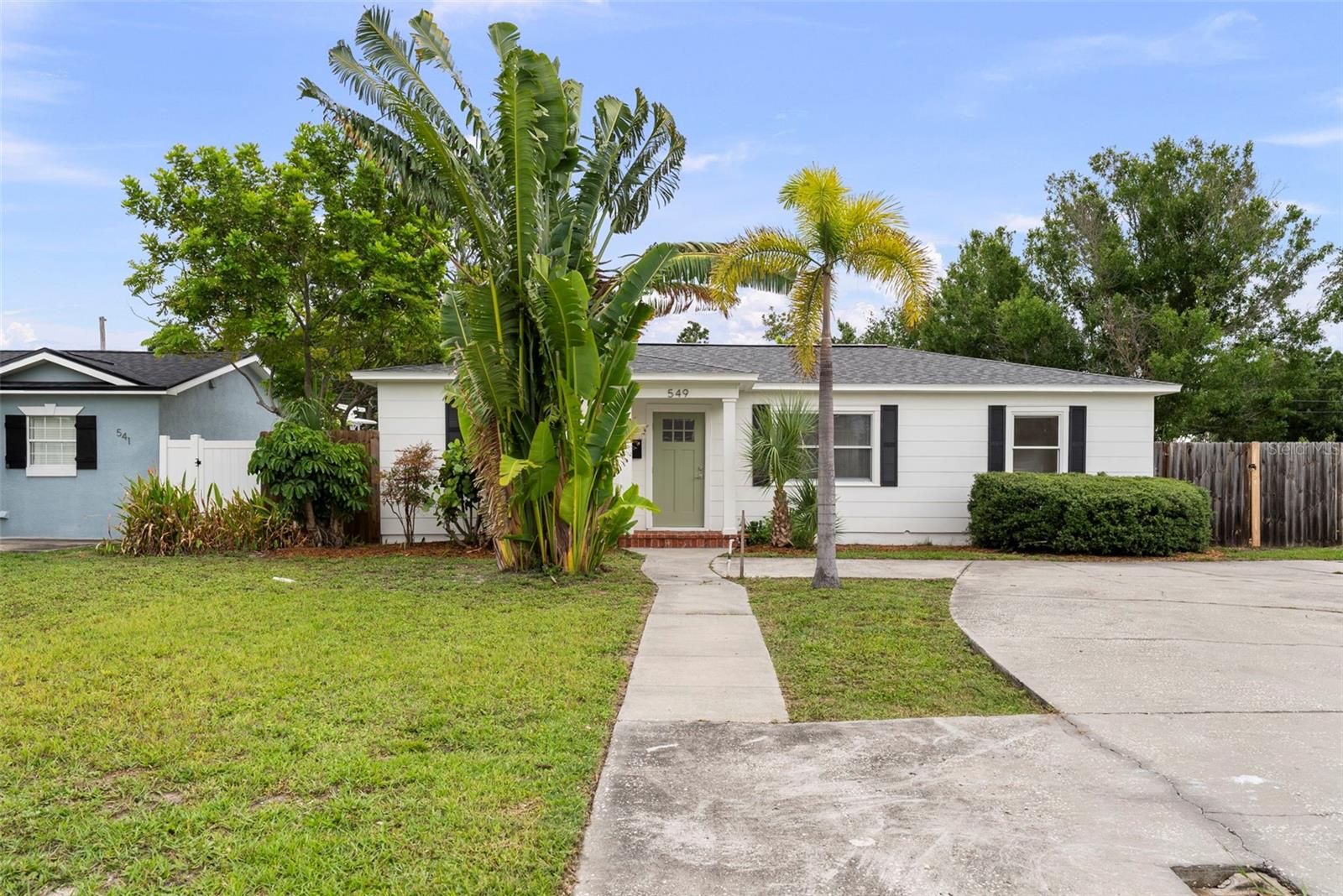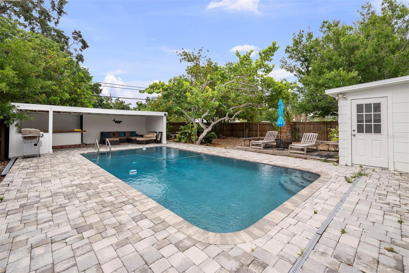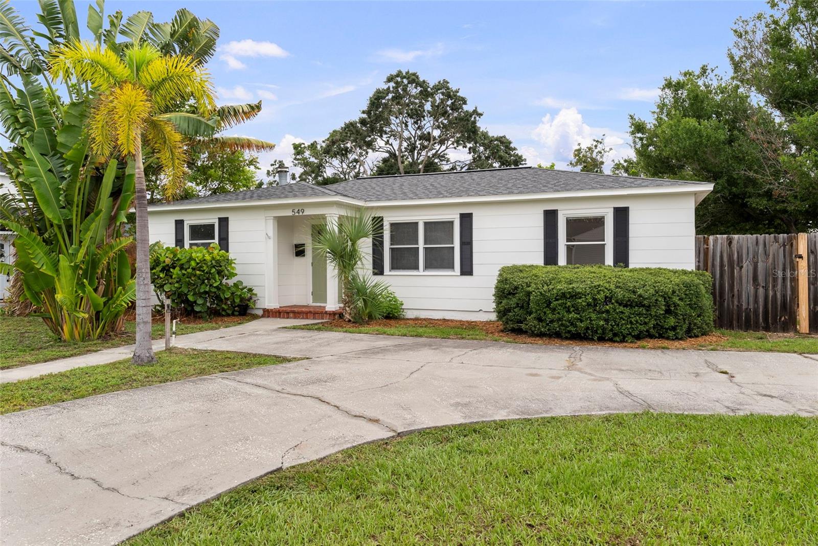 Welcome to this beautiful 2 bed/ 2 1/2 bath pool home located on a corner lot with circular drive in the lovely Snell Shores neighborhood with rear alley access! You will enter into the light and bright living room flanked by a large dining room with fireplace overlooking amazing pool/entertaining area! Updated kitchen with brand new appliances is a chef's dream come true. Primary bedroom with walk-in closet and ensuite. Laundry room for added storage space with new washer and dryer. New flooring throughout, new hot water tank, and new roof!Step out into your private oasis, featuring an in-ground pool surrounded by patio perfect for lounging by the pool, small deck area, as well as cabana with lighted pool bar and half pool bath. New pool pump! The backyard is oversized, low-maintenance, fenced in, offers a shed for additional storage and there is plenty of parking with gate that opens up for your RV, boat, or any of your other storage needs! Conveniently located to DTSP, the beautiful Crisp Park with boat launch and 4th Street with so many parks, shops, and restaurants. Just a short drive to the Gulf's Famous Beaches!