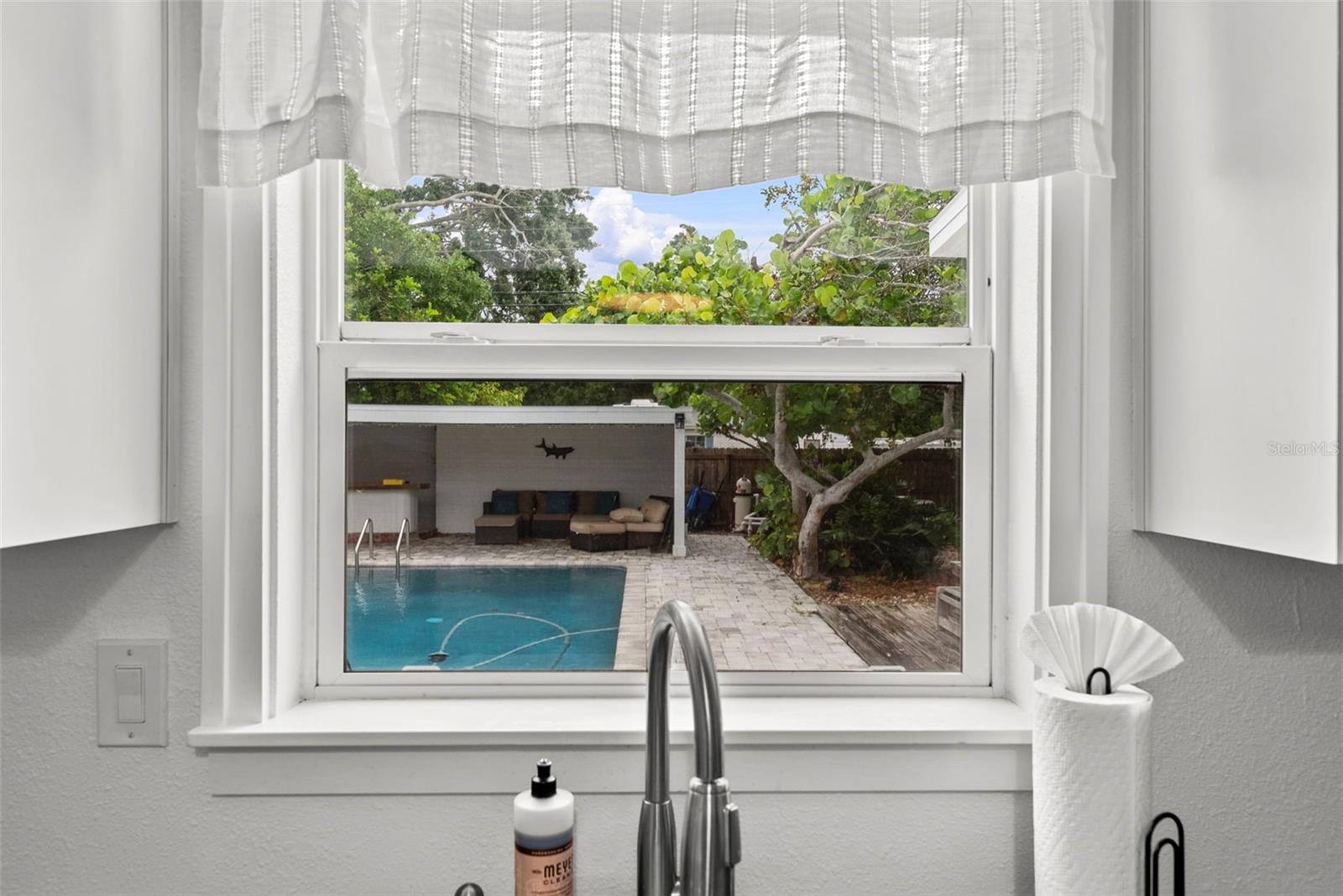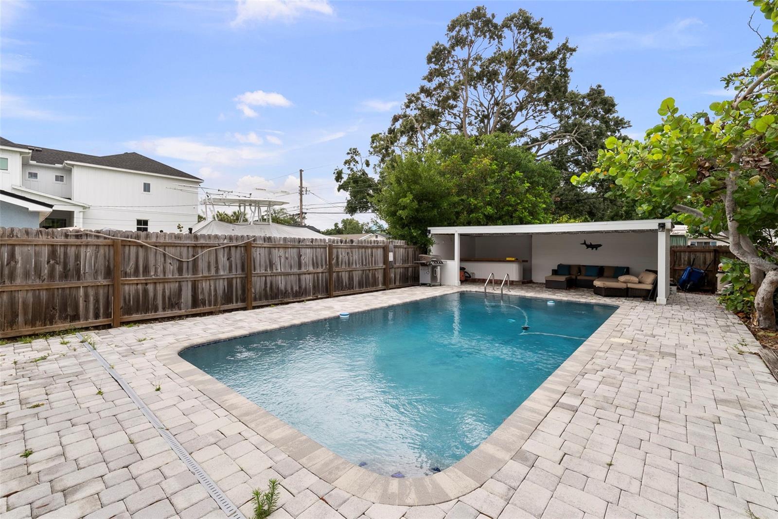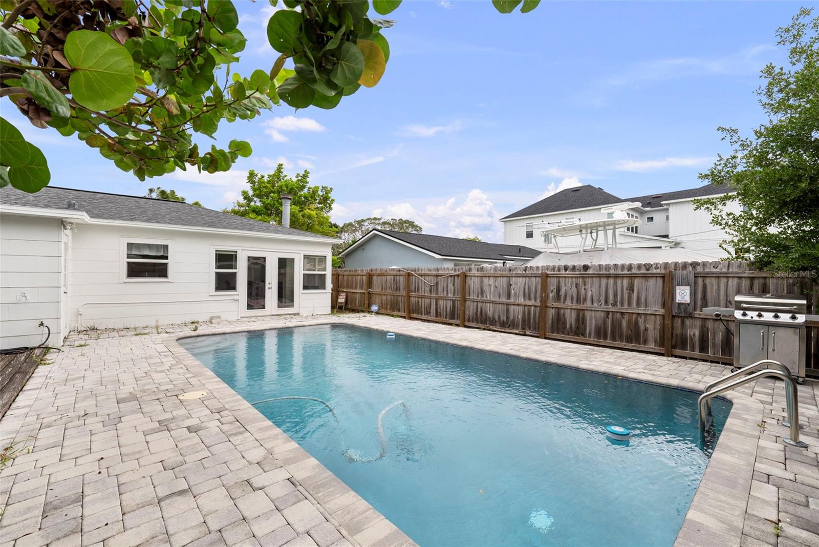 Welcome to this beautiful 2 bed/ 2 1/2 bath pool home located on a corner lot with circular drive in the lovely Snell Shores neighborhood with rear alley access! You will enter into the light and bright living room flanked by a large dining room with fireplace overlooking amazing pool/entertaining area! Updated kitchen with brand new appliances is a chef's dream come true. Primary bedroom with walk-in closet and ensuite. Laundry room for added storage space with new washer and dryer. New flooring throughout, new hot water tank, and new roof!Step out into your private oasis, featuring an in-ground pool surrounded by patio perfect for lounging by the pool, small deck area, as well as cabana with lighted pool bar and half pool bath. New pool pump! The backyard is oversized, low-maintenance, fenced in, offers a shed for additional storage and there is plenty of parking with gate that opens up for your RV, boat, or any of your other storage needs! Conveniently located to DTSP, the beautiful Crisp Park with boat launch and 4th Street with so many parks, shops, and restaurants. Just a short drive to the Gulf's Famous Beaches!