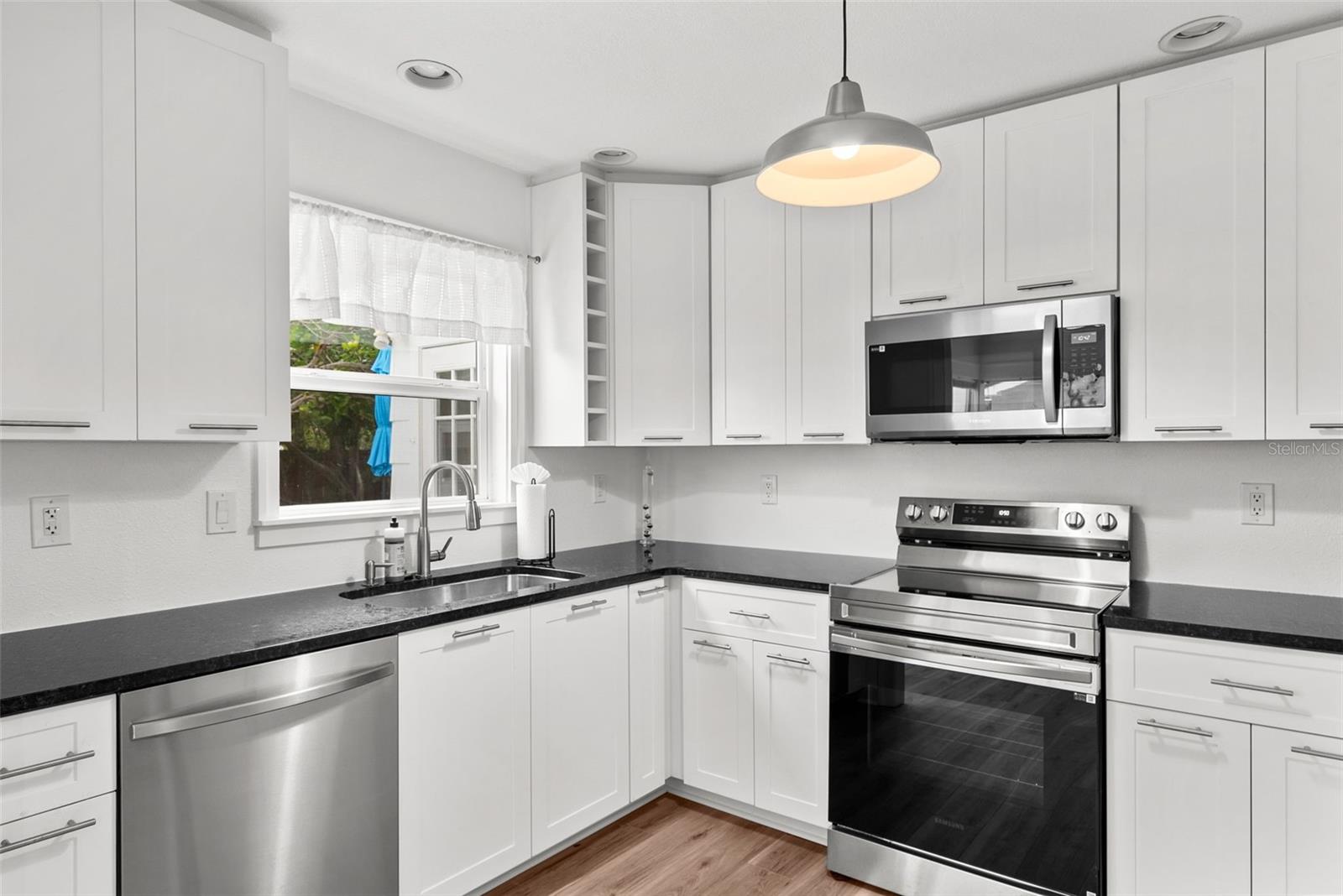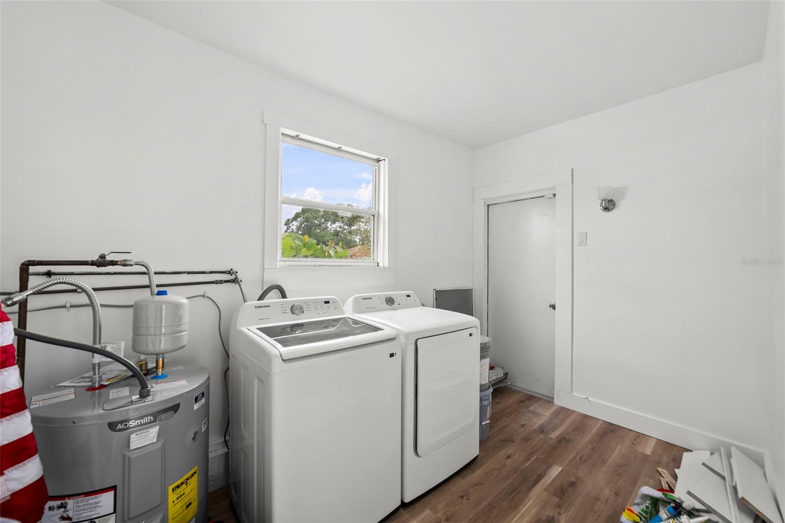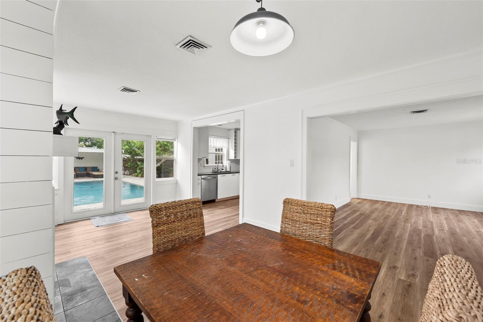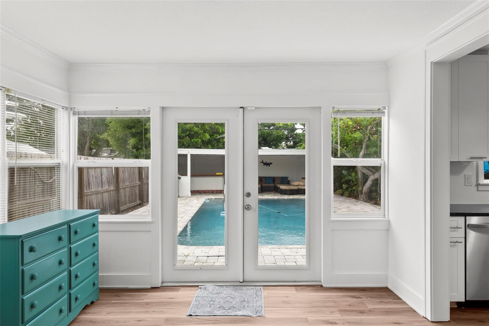Welcome to this beautiful 2 bed/ 2 1/2 bath pool home located on a corner lot with circular drive in the lovely Snell Shores neighborhood with rear alley access! You will enter into the light and bright living room flanked by a large dining room with fireplace overlooking amazing pool/entertaining area! Updated kitchen with brand new appliances is a chef's dream come true. Primary bedroom with walk-in closet and ensuite. Laundry room for added storage space with new washer and dryer. New flooring throughout, new hot water tank, and new roof!Step out into your private oasis, featuring an in-ground pool surrounded by patio perfect for lounging by the pool, small deck area, as well as cabana with lighted pool bar and half pool bath. New pool pump! The backyard is oversized, low-maintenance, fenced in, offers a shed for additional storage and there is plenty of parking with gate that opens up for your RV, boat, or any of your other storage needs! Conveniently located to DTSP, the beautiful Crisp Park with boat launch and 4th Street with so many parks, shops, and restaurants. Just a short drive to the Gulf's Famous Beaches!