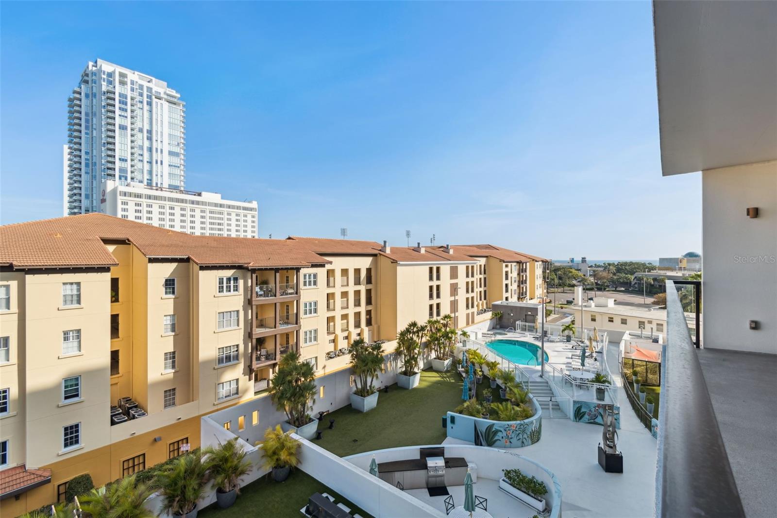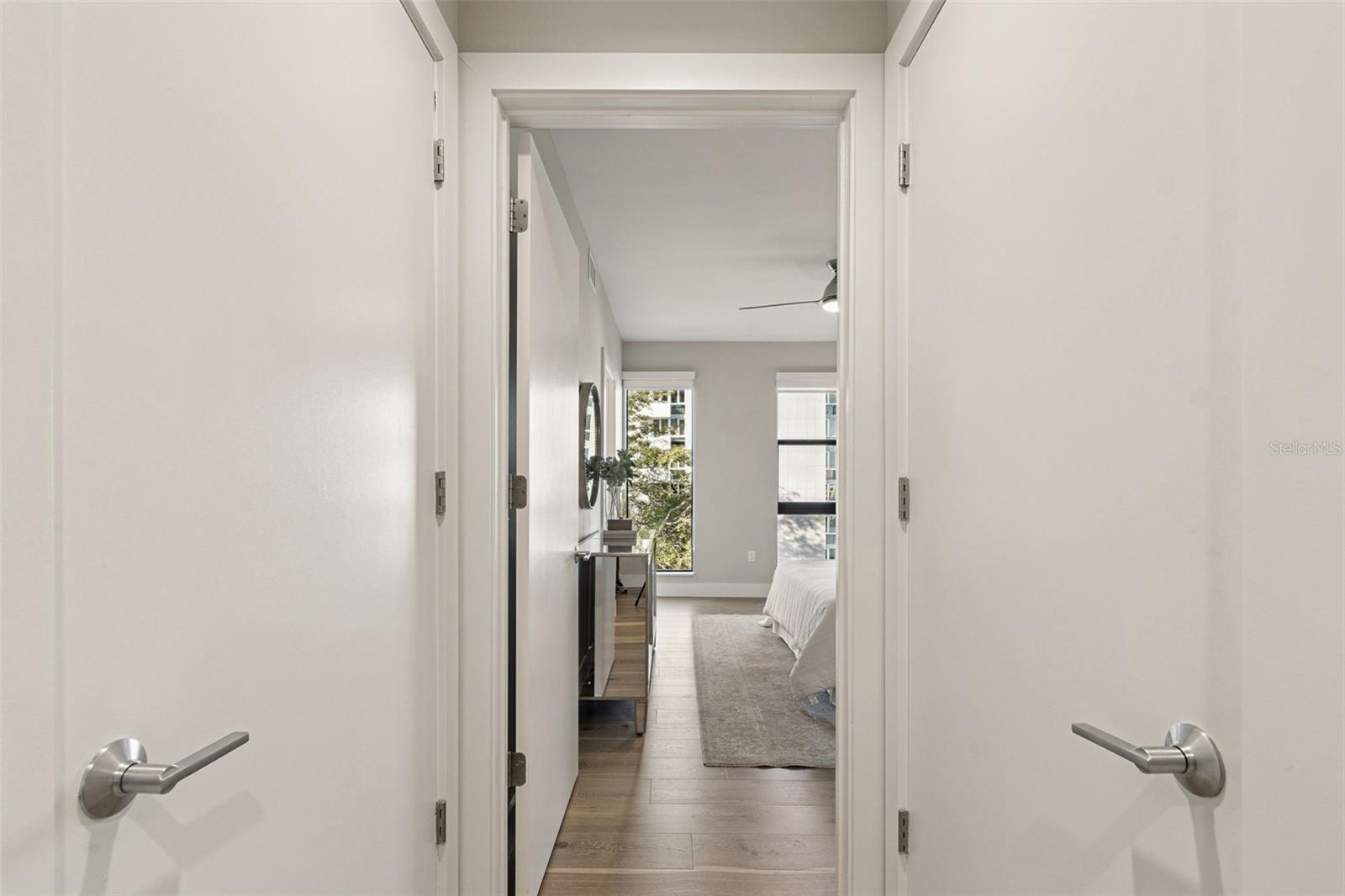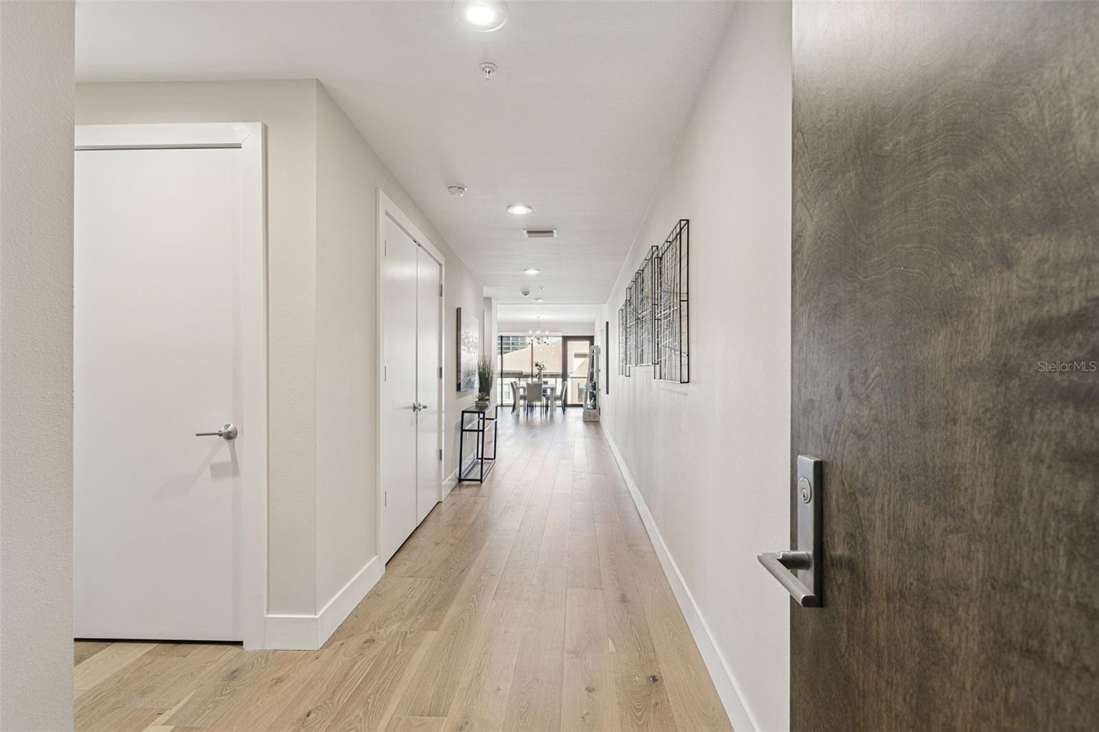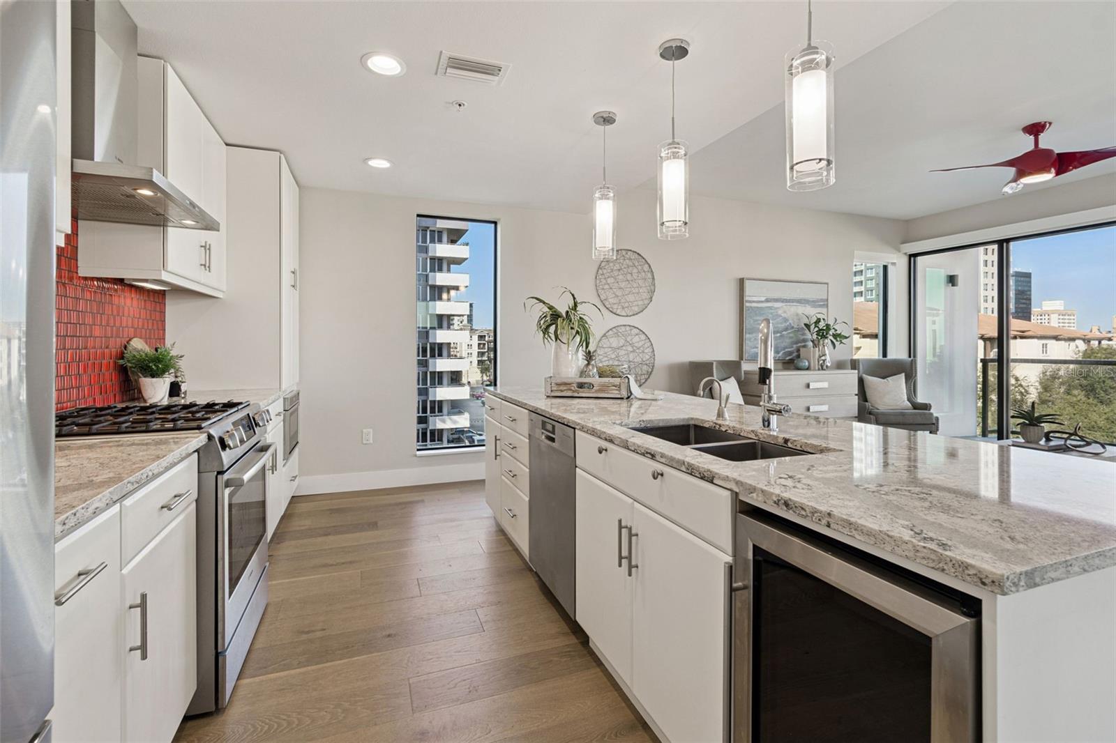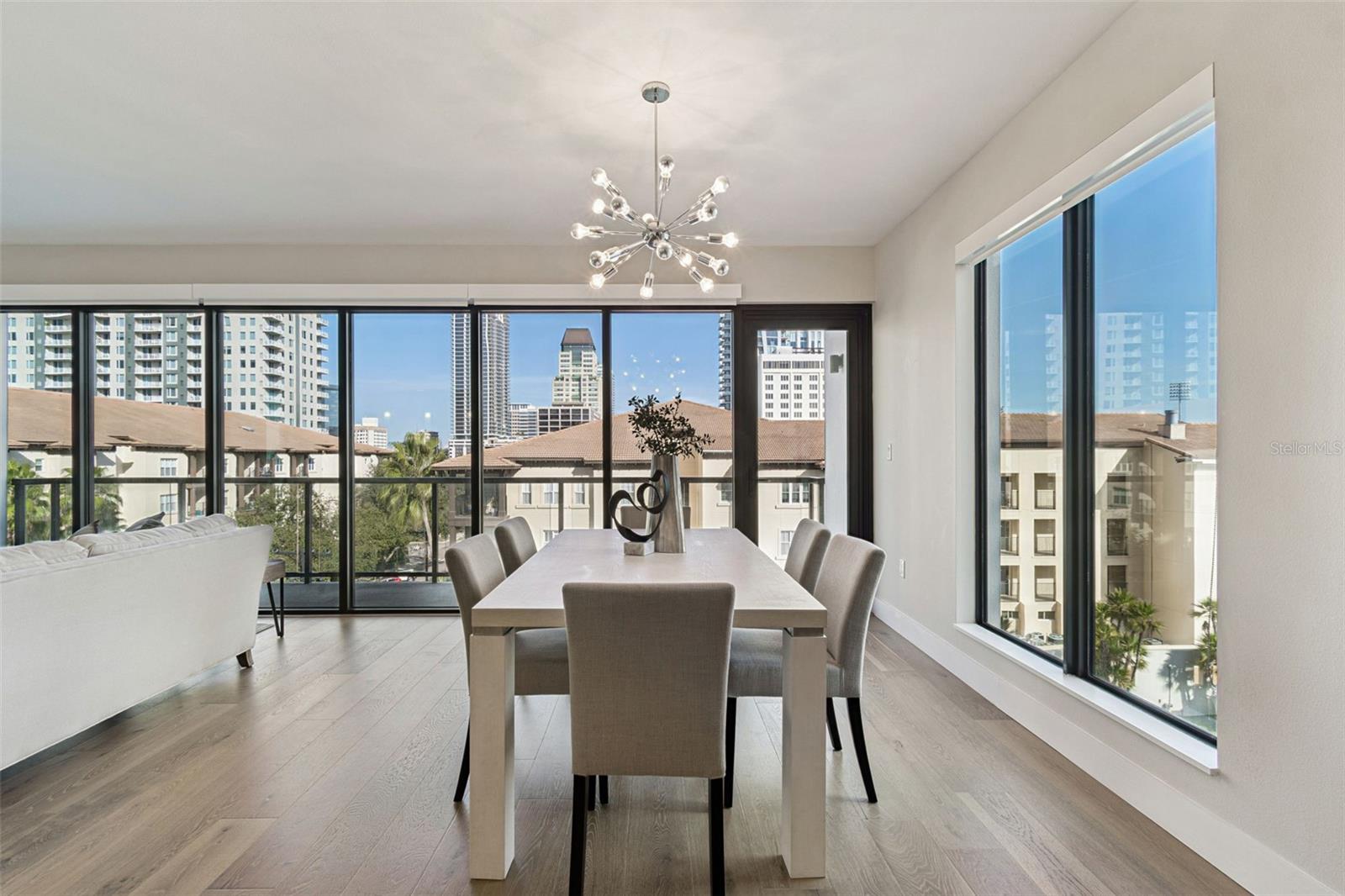 You’ll enjoy panoramic vistas of the city and Tampa Bay from the spacious balcony with room for plenty of seating and no adjacent neighbors. Step inside and you're welcomed by a spacious Gallery Hall—perfect for showcasing art and setting a dramatic tone for what’s ahead. This 1,555-square-foot, 2-bedroom, 2-bath home stands apart with windows on three sides, flooding the open floor plan with natural light and ever-changing views. The living and dining areas are framed by floor-to-ceiling glass and outfitted with motorized blinds for effortless ambiance control. The sleek, contemporary kitchen features upgraded countertops and cabinetry with custom pullouts, a natural gas range, wine cooler, and smart storage throughout. Design details shine here—upgraded dimmers, modern lighting, and stylish ceiling fans add a layer of refinement. The primary suite is a serene retreat with a generous California Closets walk-in and a spa-inspired bath complete with a deep soaking tub, oversized shower, and dual-sink vanity. The second bedroom includes a custom-built queen Murphy bed with integrated desk, making it ideal as a guest room, office, or both. Blackout and shade blinds are installed in both bedrooms for maximum comfort. A dedicated laundry area with custom cabinetry adds convenience, and the included first-floor parking space is a major plus. The Salvador—an exclusive, LEED-certified building of just 74 residences—offers outstanding amenities: pool and spa, state-of-the-art fitness center, social room, grilling area, dog park with wash station, sculpture garden, and outdoor fire pit. Concierge service and on-site management elevate the lifestyle. Set in a peaceful pocket just blocks from downtown, the Dali Museum, Mahaffey Theater, Albert Whitted Airfield, and the Saturday Morning Market, this residence blends privacy, luxury, and location like few others. Schedule your private tour today.