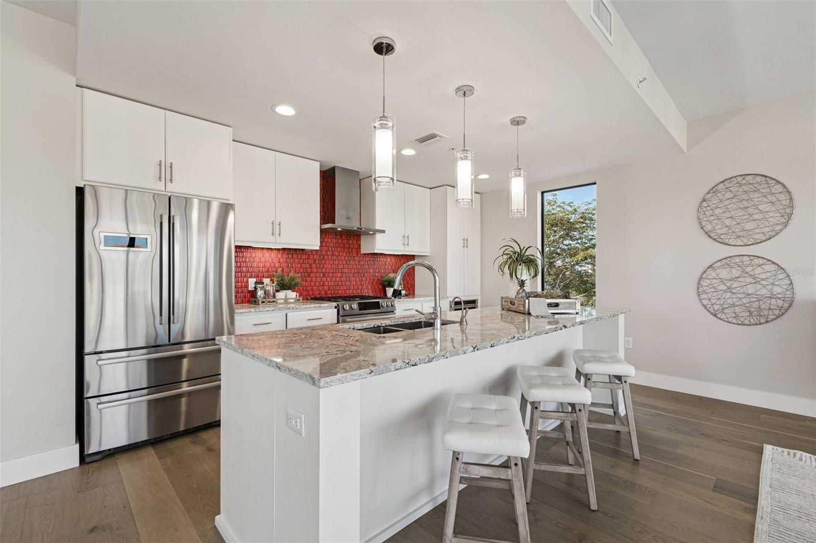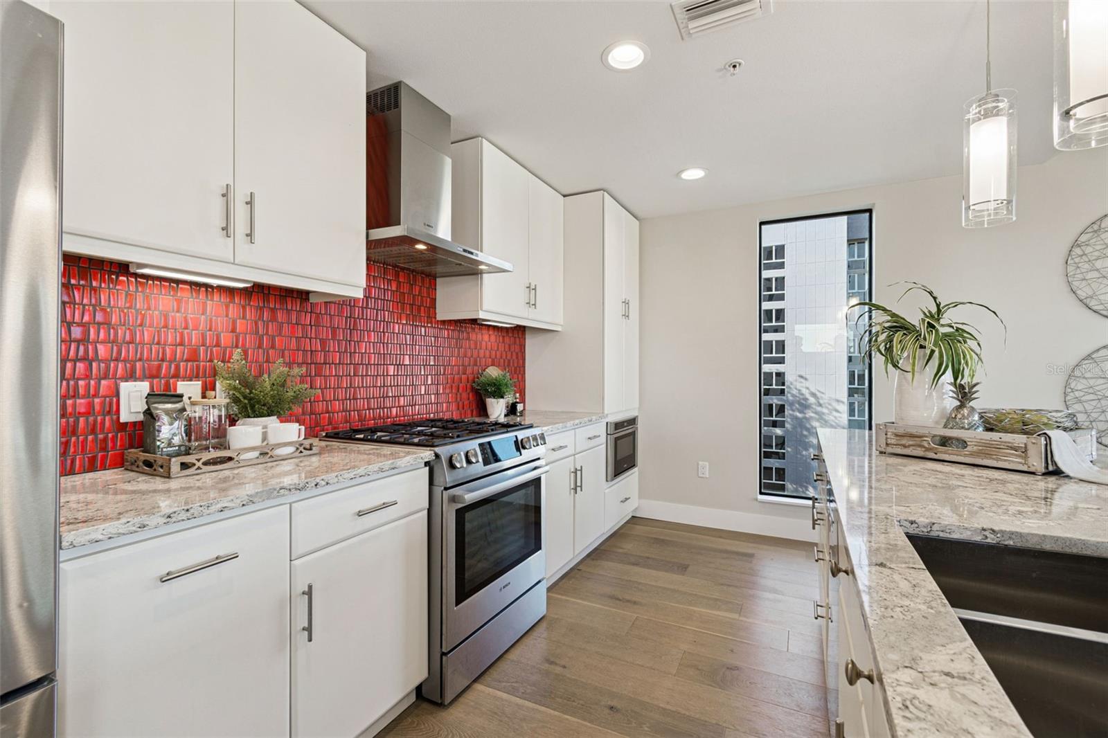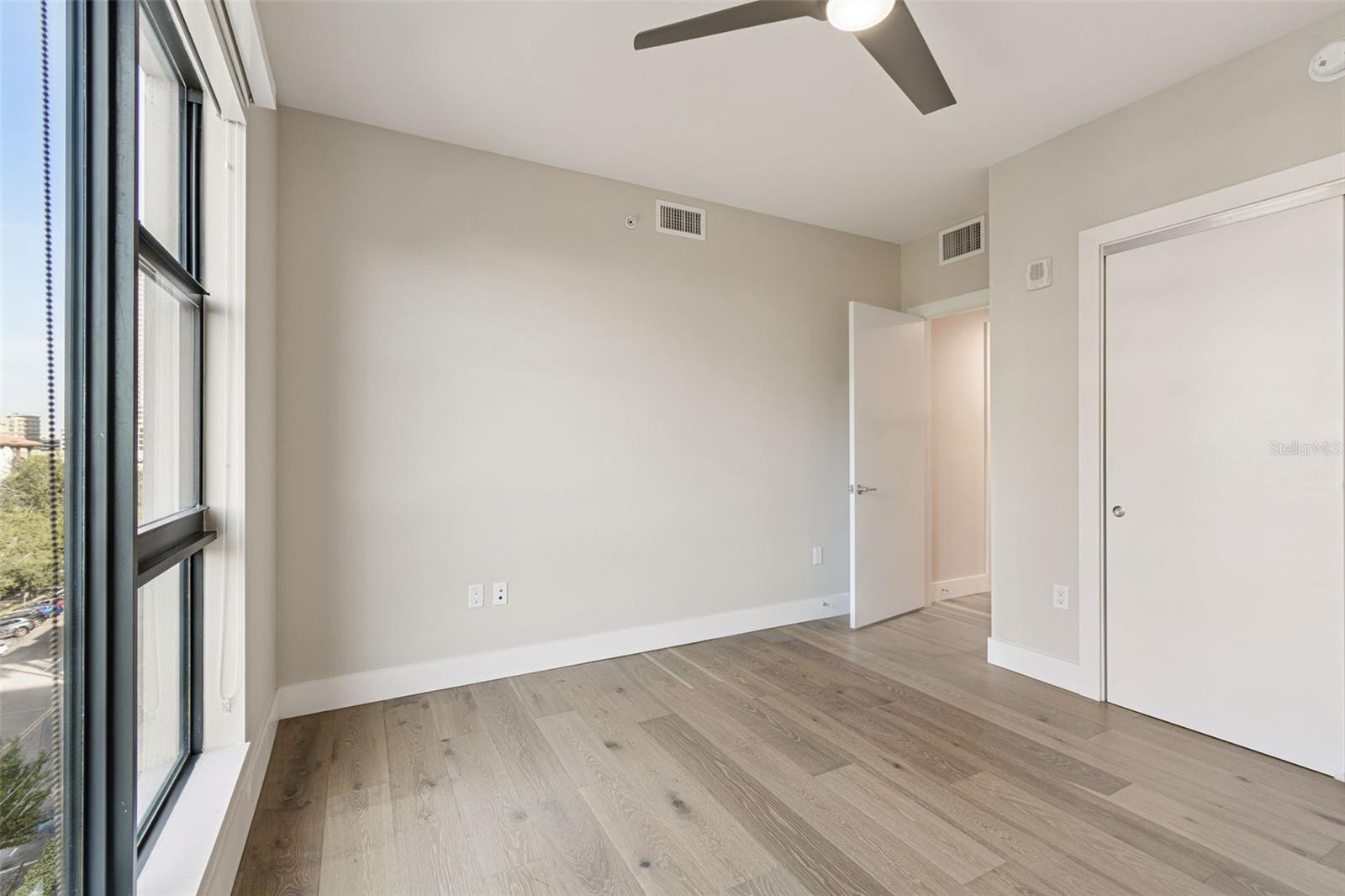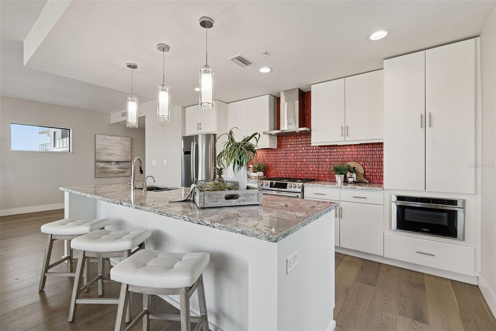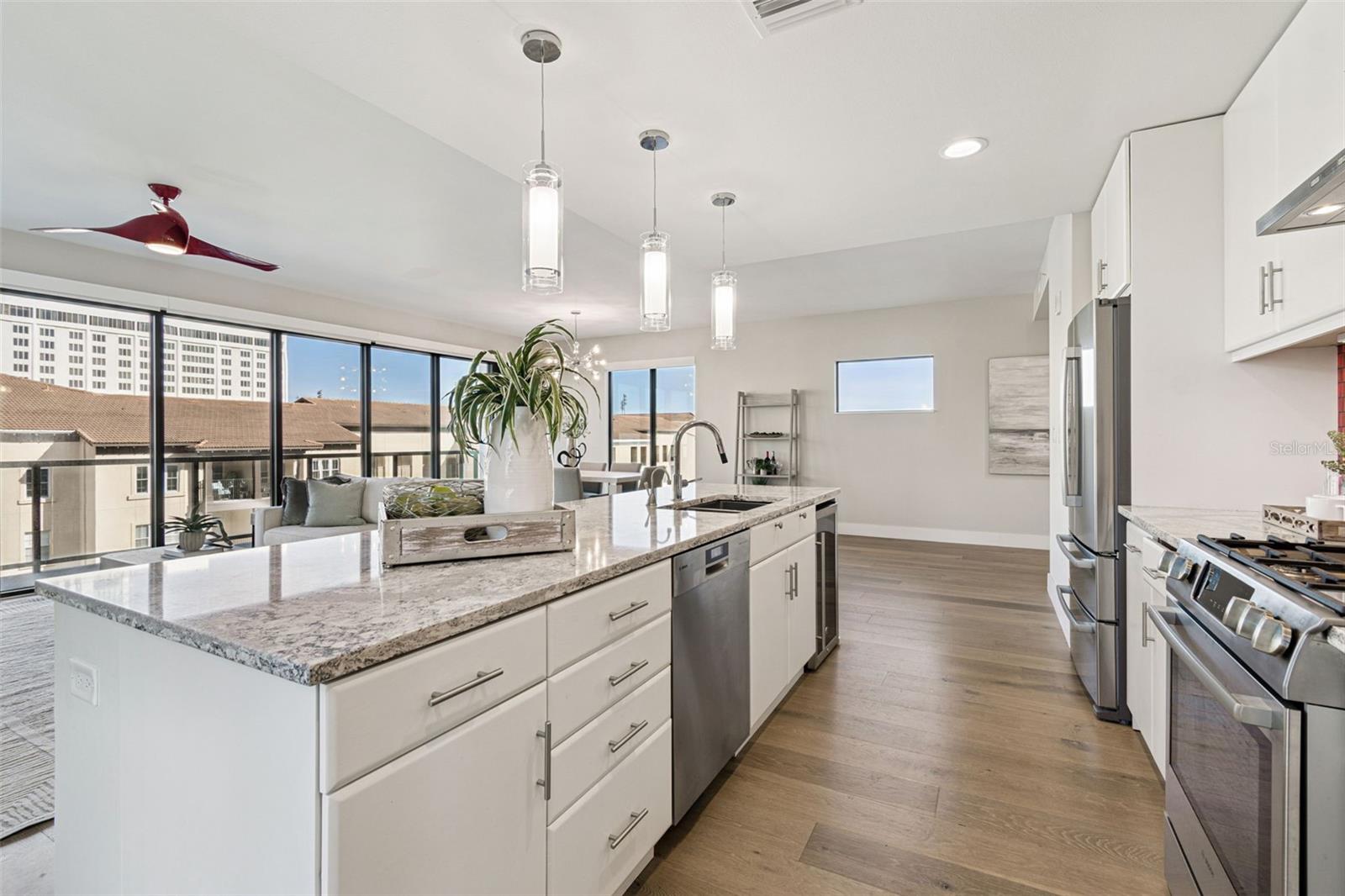 You’ll enjoy panoramic vistas of the city and Tampa Bay from the spacious balcony with room for plenty of seating and no adjacent neighbors. Step inside and you're welcomed by a spacious Gallery Hall—perfect for showcasing art and setting a dramatic tone for what’s ahead. This 1,555-square-foot, 2-bedroom, 2-bath home stands apart with windows on three sides, flooding the open floor plan with natural light and ever-changing views. The living and dining areas are framed by floor-to-ceiling glass and outfitted with motorized blinds for effortless ambiance control. The sleek, contemporary kitchen features upgraded countertops and cabinetry with custom pullouts, a natural gas range, wine cooler, and smart storage throughout. Design details shine here—upgraded dimmers, modern lighting, and stylish ceiling fans add a layer of refinement. The primary suite is a serene retreat with a generous California Closets walk-in and a spa-inspired bath complete with a deep soaking tub, oversized shower, and dual-sink vanity. The second bedroom includes a custom-built queen Murphy bed with integrated desk, making it ideal as a guest room, office, or both. Blackout and shade blinds are installed in both bedrooms for maximum comfort. A dedicated laundry area with custom cabinetry adds convenience, and the included first-floor parking space is a major plus. The Salvador—an exclusive, LEED-certified building of just 74 residences—offers outstanding amenities: pool and spa, state-of-the-art fitness center, social room, grilling area, dog park with wash station, sculpture garden, and outdoor fire pit. Concierge service and on-site management elevate the lifestyle. Set in a peaceful pocket just blocks from downtown, the Dali Museum, Mahaffey Theater, Albert Whitted Airfield, and the Saturday Morning Market, this residence blends privacy, luxury, and location like few others. Schedule your private tour today.