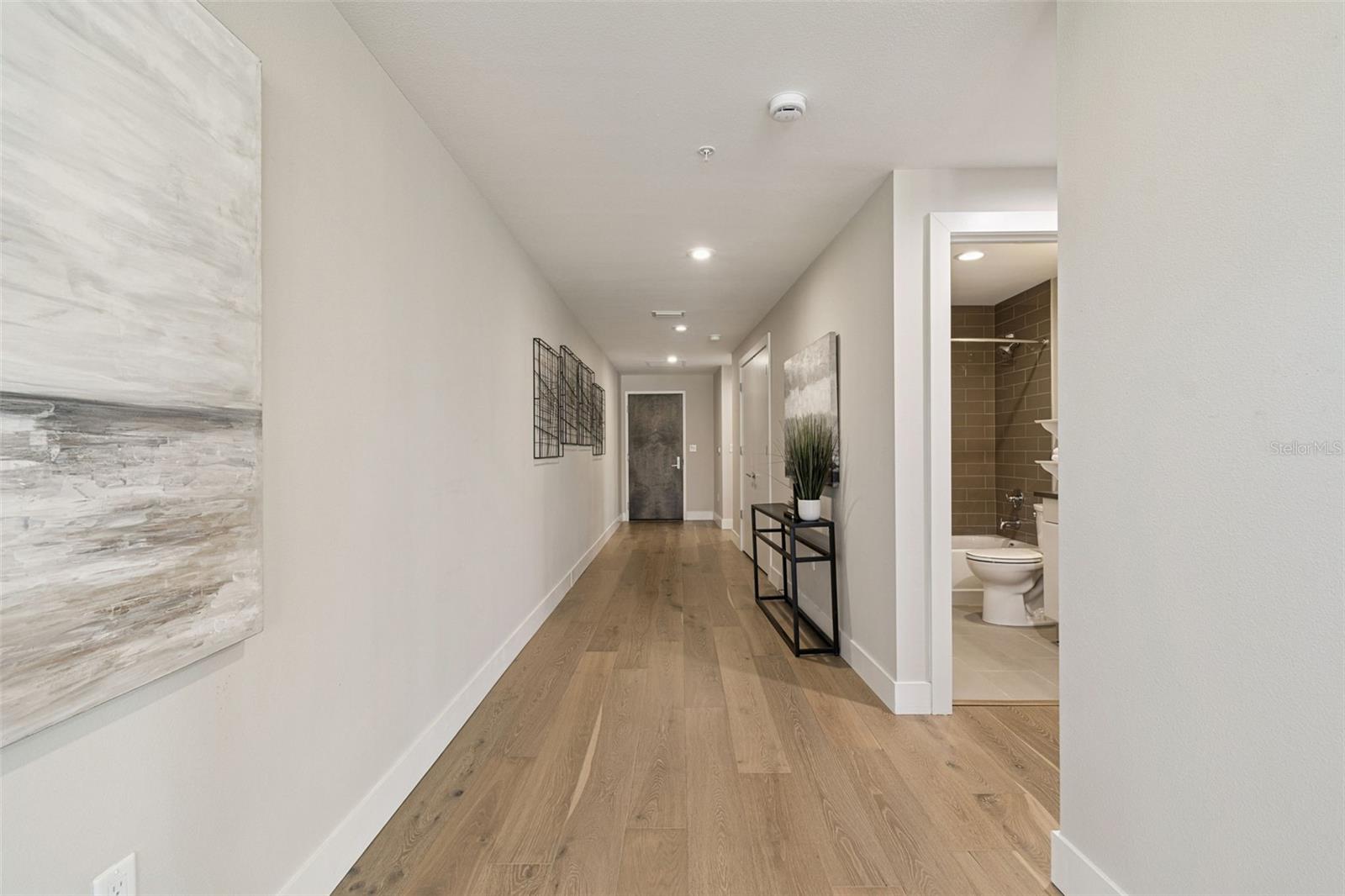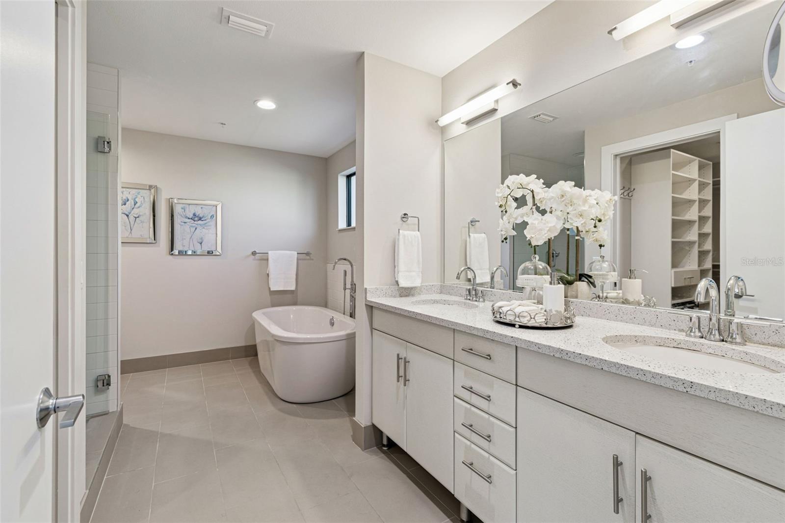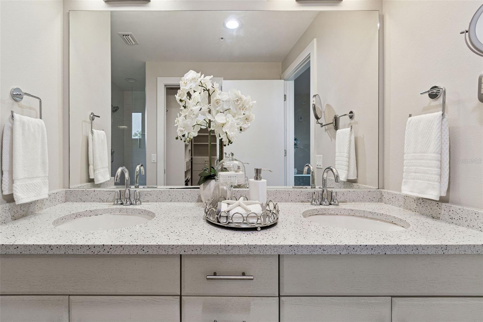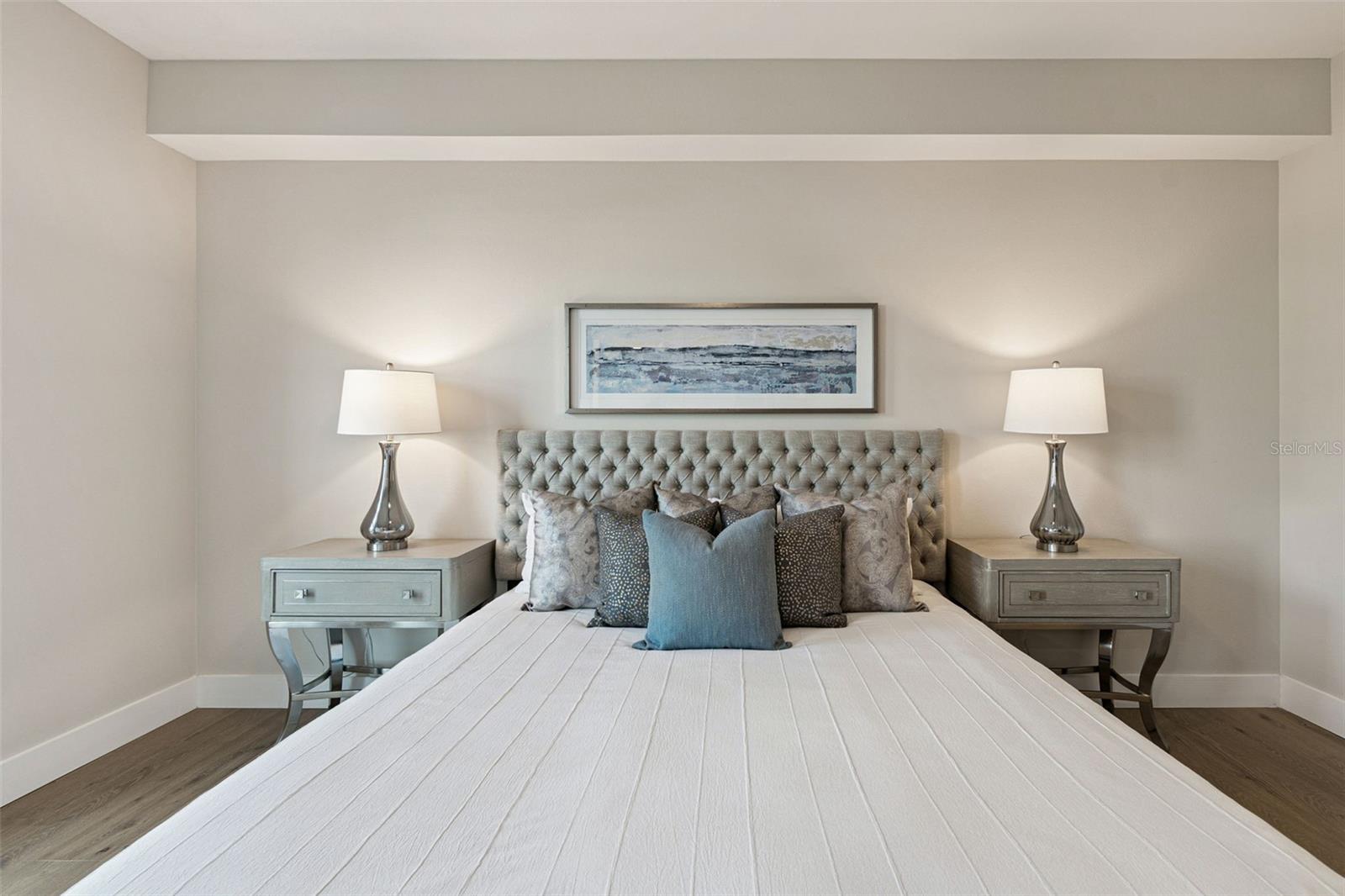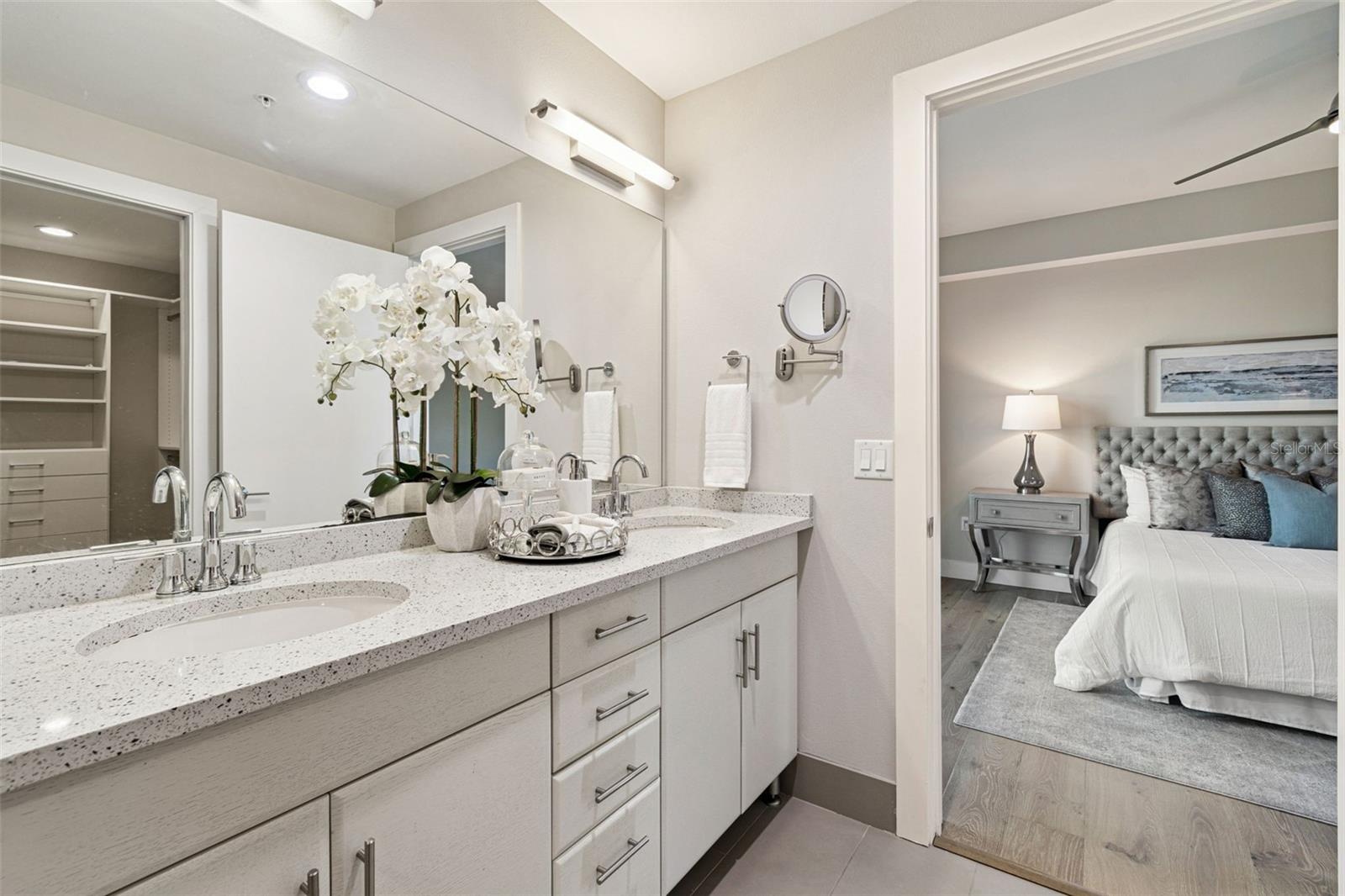 You’ll enjoy panoramic vistas of the city and Tampa Bay from the spacious balcony with room for plenty of seating and no adjacent neighbors. Step inside and you're welcomed by a spacious Gallery Hall—perfect for showcasing art and setting a dramatic tone for what’s ahead. This 1,555-square-foot, 2-bedroom, 2-bath home stands apart with windows on three sides, flooding the open floor plan with natural light and ever-changing views. The living and dining areas are framed by floor-to-ceiling glass and outfitted with motorized blinds for effortless ambiance control. The sleek, contemporary kitchen features upgraded countertops and cabinetry with custom pullouts, a natural gas range, wine cooler, and smart storage throughout. Design details shine here—upgraded dimmers, modern lighting, and stylish ceiling fans add a layer of refinement. The primary suite is a serene retreat with a generous California Closets walk-in and a spa-inspired bath complete with a deep soaking tub, oversized shower, and dual-sink vanity. The second bedroom includes a custom-built queen Murphy bed with integrated desk, making it ideal as a guest room, office, or both. Blackout and shade blinds are installed in both bedrooms for maximum comfort. A dedicated laundry area with custom cabinetry adds convenience, and the included first-floor parking space is a major plus. The Salvador—an exclusive, LEED-certified building of just 74 residences—offers outstanding amenities: pool and spa, state-of-the-art fitness center, social room, grilling area, dog park with wash station, sculpture garden, and outdoor fire pit. Concierge service and on-site management elevate the lifestyle. Set in a peaceful pocket just blocks from downtown, the Dali Museum, Mahaffey Theater, Albert Whitted Airfield, and the Saturday Morning Market, this residence blends privacy, luxury, and location like few others. Schedule your private tour today.