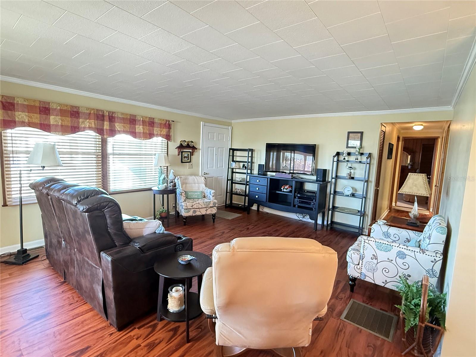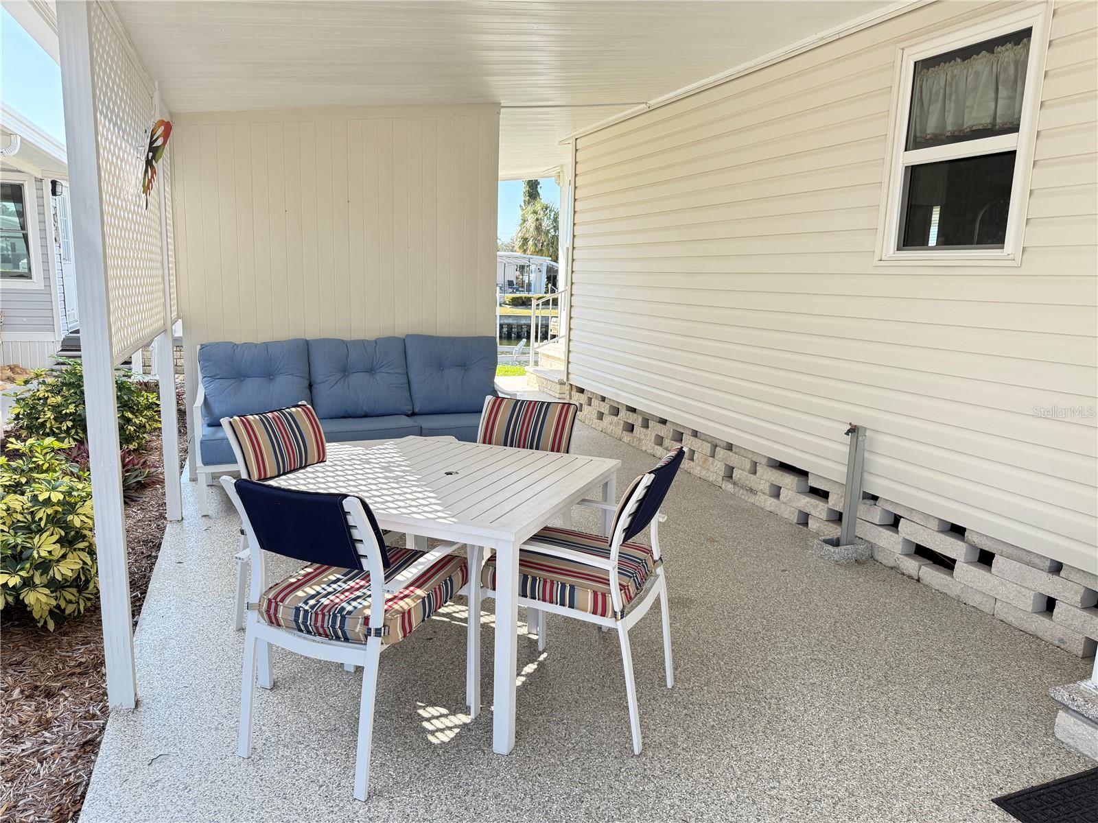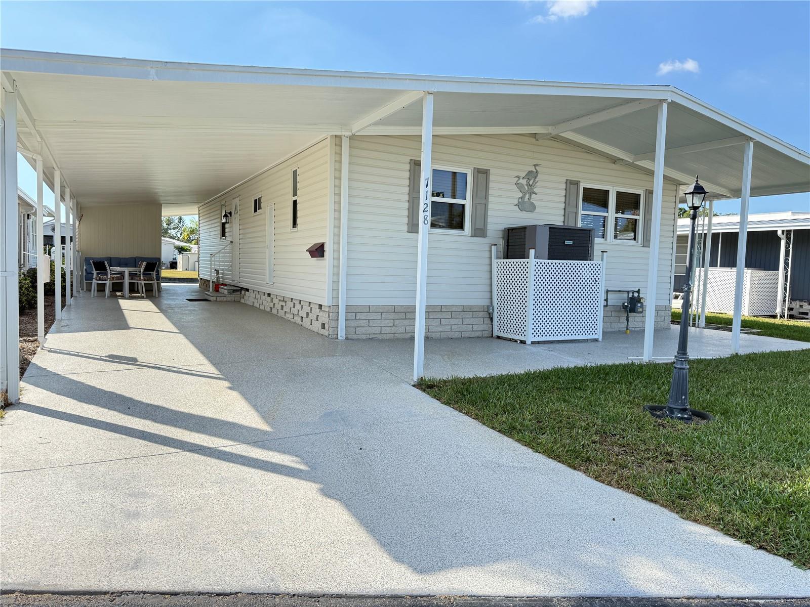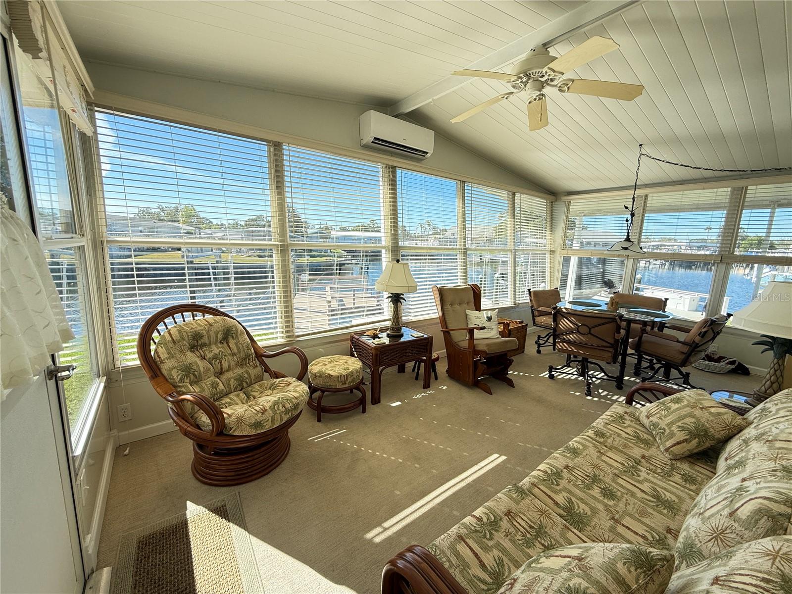 This 2 Bed/2 Bath WATERFRONT home boasts approximately 1232. sq ft of living area. Well maintained with many upgrades. Interior finishes include solid surface countertops in kitchen & baths, stainless steel appliances in the kitchen, double pane windows, ceramic tile in baths, carpet in bedrooms, and laminate in other living areas. Newer stackable washer & dryer located inside. AC (2017), Roof (2004). The carpeted Florida room has wood faux blinds and a mini split air conditioner (2020) providing comfort in any weather. Looking out at the canal the composite dock and lift (2011) are ready for the watercraft of your choice. The covered carport is also a great place to enjoy sitting. The acrylic floor coating adds a pleasant look and feel. Home is located in Americana Cove, a 55+ Resident owned waterfront community. Low HOA $380 includes water, sewer, trash pickup, lawn mowing/edging, 24/7 manned gate, shuffleboard, bocce, fitness room, clubhouse and heated pool. Located just 10 minutes from downtown St Pete, 20 minutes to 2 airports and 25 minutes to the beaches. This is an active communitty with many clubs and activities, perfect for full time or seasonal occupancy.