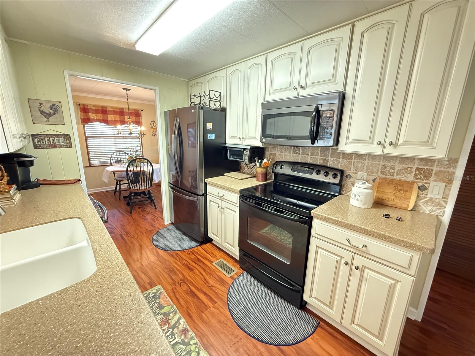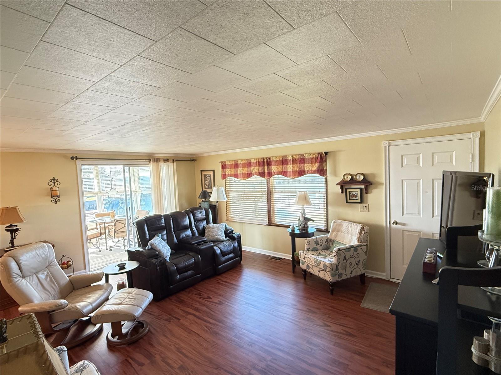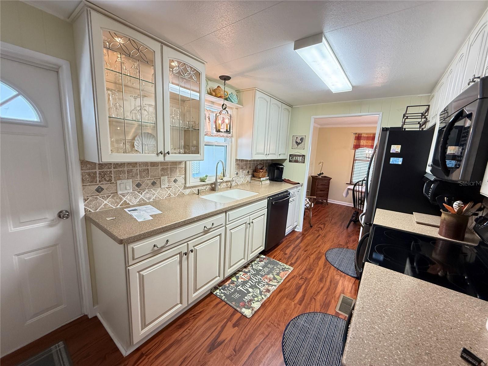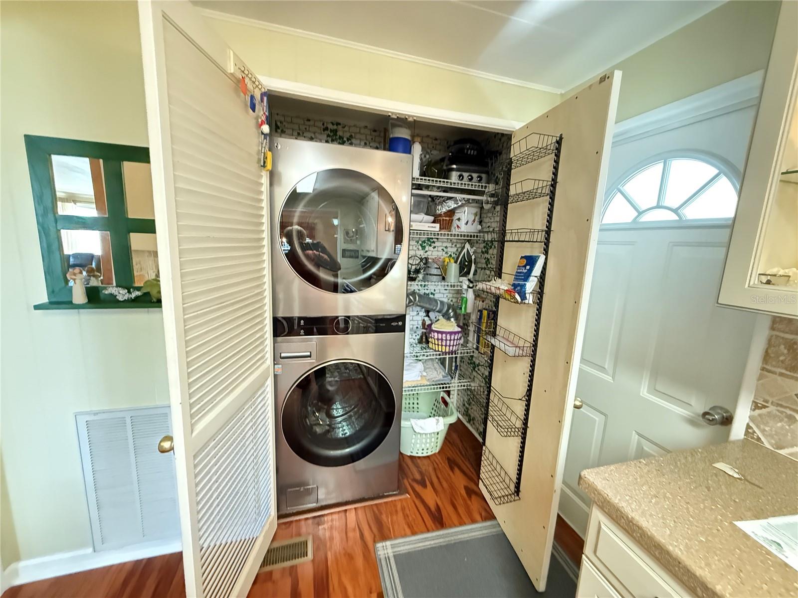 This 2 Bed/2 Bath WATERFRONT home boasts approximately 1232. sq ft of living area. Well maintained with many upgrades. Interior finishes include solid surface countertops in kitchen & baths, stainless steel appliances in the kitchen, double pane windows, ceramic tile in baths, carpet in bedrooms, and laminate in other living areas. Newer stackable washer & dryer located inside. AC (2017), Roof (2004). The carpeted Florida room has wood faux blinds and a mini split air conditioner (2020) providing comfort in any weather. Looking out at the canal the composite dock and lift (2011) are ready for the watercraft of your choice. The covered carport is also a great place to enjoy sitting. The acrylic floor coating adds a pleasant look and feel. Home is located in Americana Cove, a 55+ Resident owned waterfront community. Low HOA $380 includes water, sewer, trash pickup, lawn mowing/edging, 24/7 manned gate, shuffleboard, bocce, fitness room, clubhouse and heated pool. Located just 10 minutes from downtown St Pete, 20 minutes to 2 airports and 25 minutes to the beaches. This is an active communitty with many clubs and activities, perfect for full time or seasonal occupancy.