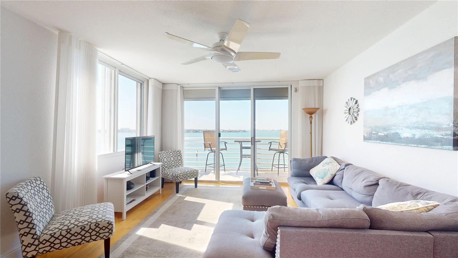 Welcome to this beautiful three-bedroom condo in the prestigious Club Bahia Vista. This exquisite residence offers spectacular water views from nearly every angle, with three waterfront balconies that fill the home with natural light and provide a front-row seat to breathtaking sunrises and sunsets. Step inside to discover an open-concept living space where classic design meets modern sophistication. The gourmet kitchen is a chef’s delight, featuring natural wood cabinetry with etched glass panels, soft-close drawers, granite countertops, stainless steel appliances, and under-cabinet lighting. A custom etched breakfast table and built-in desk with file cabinets add refined touches that enhance both style and functionality. The expansive living and dining areas are accented by gleaming wood floors and walls of sliding glass doors that frame dramatic views of the water, creating a seamless transition between indoor elegance and the serene outdoors. The master suite is a private retreat complete with its own seaside balcony, hardwood floors, a generous walk-in closet, and a luxurious bath featuring dual sinks, a garden tub, and a separate shower. An additional bedroom or den also enjoys its own balcony, ensuring every space in this home offers a glimpse of the picturesque waterfront. Further highlights include hurricane shutters, one of the best assigned covered parking spots near the front door, and energy-efficient 3M film on windows and doors. Club Bahia Vista enriches your lifestyle with an impressive array of amenities—a beautifully appointed recreation building with a kitchen, fitness center, and TV room, alongside a tropical pool and spa overlooking the lake. Ideally located just minutes from Gulf beaches, Ft. DeSoto Park, and the Pinellas Bike Trail, with downtown St. Petersburg and Tampa International Airport conveniently close, this condo presents an unparalleled blend of luxury, comfort, and location. Schedule your private showing today or grab your VR headset for a Matterport tour.