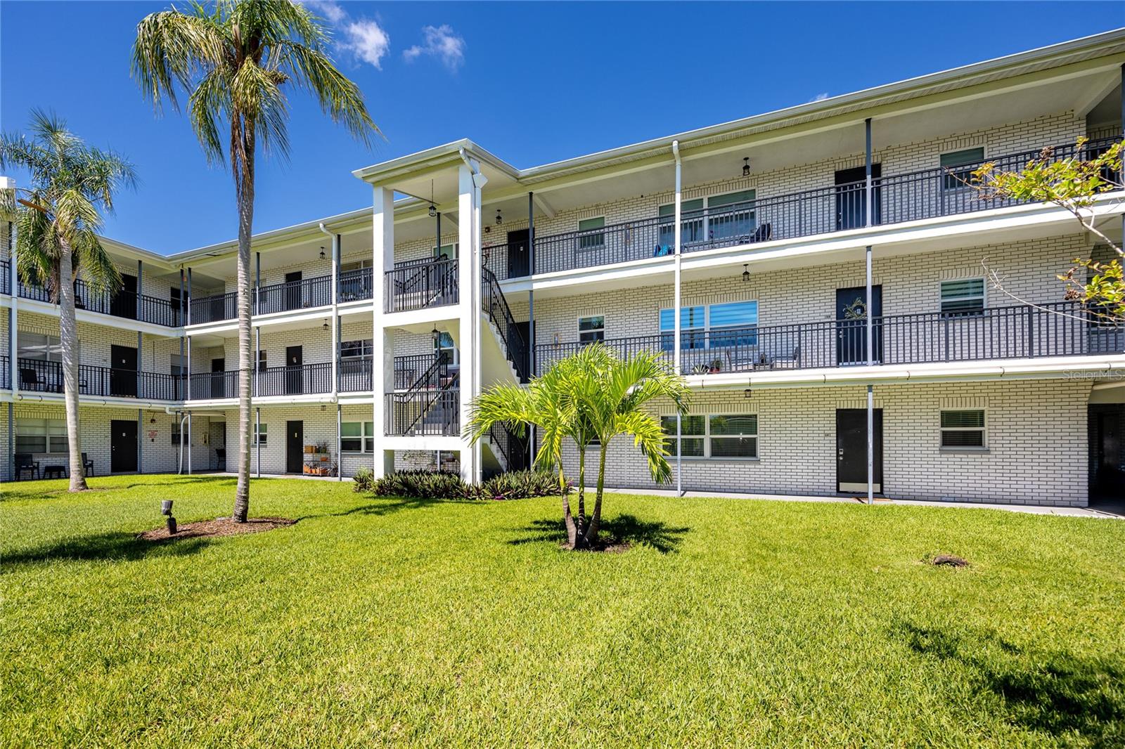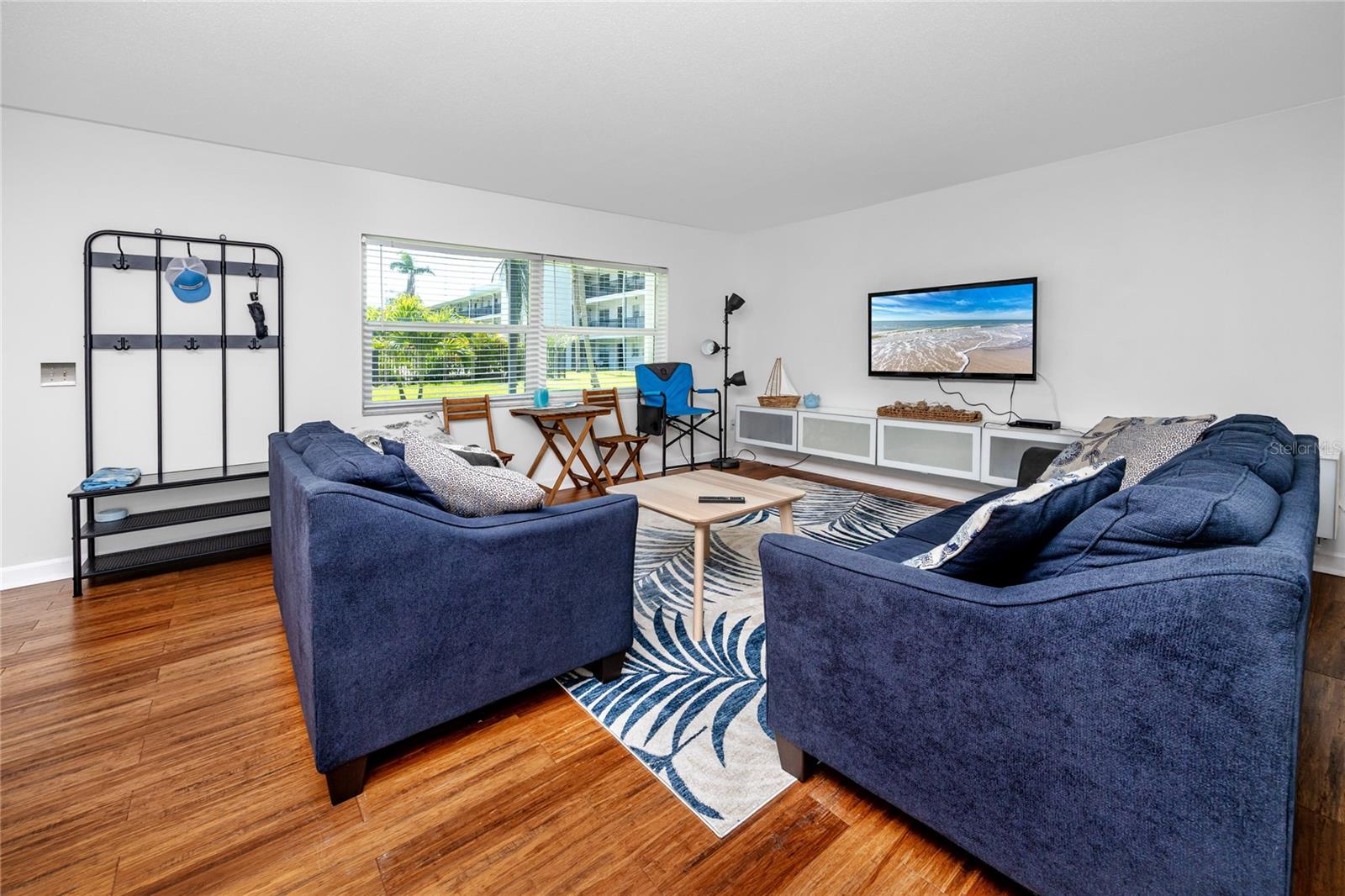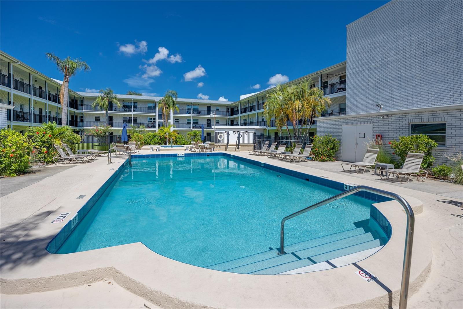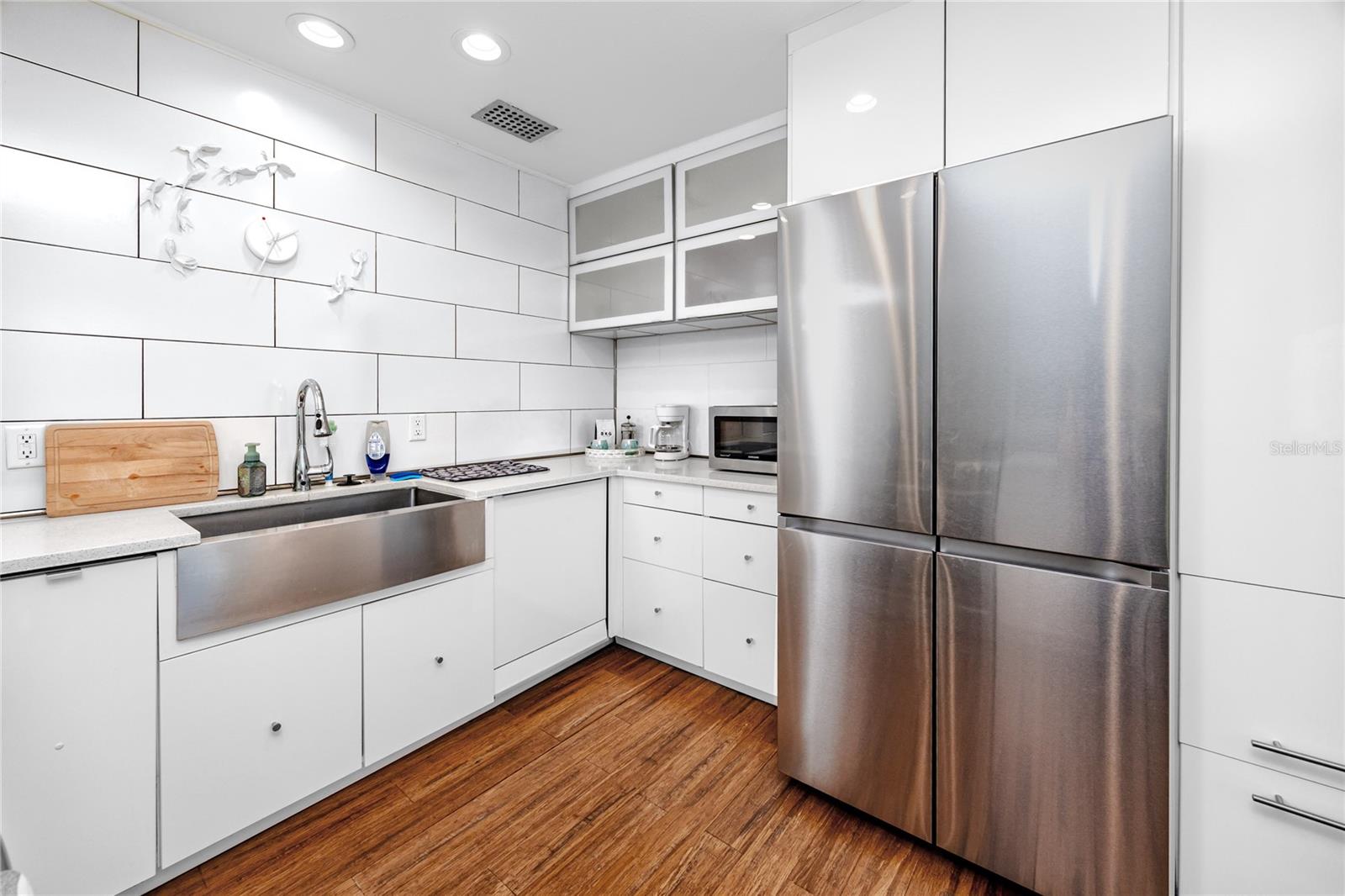 Discover effortless living in this fully renovated, low-maintenance 2-bedroom, 1-bath ground-floor condo in the well-maintained French Quarter community of St. Petersburg. Situated in a quiet rear corner, this spacious unit offers the largest open floor plan in the community, designed for comfort and modern functionality. Bamboo plank flooring flows throughout, complementing an interior updated with hurricane-resistant double-pane windows, HVAC (replaced this summer in August 2025!), and water heater—all under five years old. The contemporary kitchen features quartz waterfall countertops, all-new stainless steel appliances, a deep brushed steel farmhouse sink, and custom IKEA cabinetry with lighted pull-out storage, perfect for everyday living or entertaining. The stylishly remodeled bathroom includes tiled walls, a frosted glass pocket door, an electronic Kohler shower system with rain and handheld settings, and elegant ceiling panels for a modern touch. The open-concept living area is both spacious and functional, with custom wall-mounted consoles that maximize storage while maintaining clean lines. French Quarter offers excellent community amenities including a pool and spa, clubhouse with modern kitchen, shuffleboard courts, two dog-walking stations, three laundry facilities, and monthly pest control. HOA fees cover water, trash, cable/internet, and exterior maintenance for true worry-free living. Conveniently located just minutes from vibrant Downtown St. Pete, residents enjoy easy access to world-class dining, art galleries, entertainment, and the St. Pete Pier. A city bus stop is right outside the gate, and Whole Foods, Starbucks, and two Publix locations are within walking distance. This turnkey condo represents one of the most upgraded, move-in-ready options among St. Petersburg condos for sale.