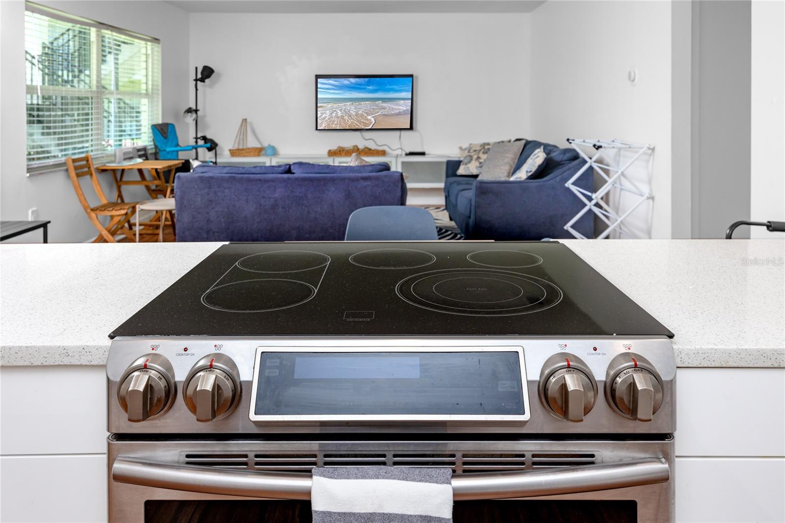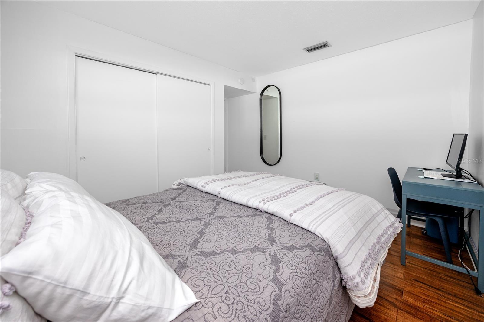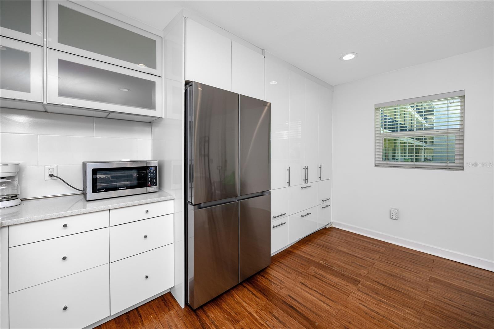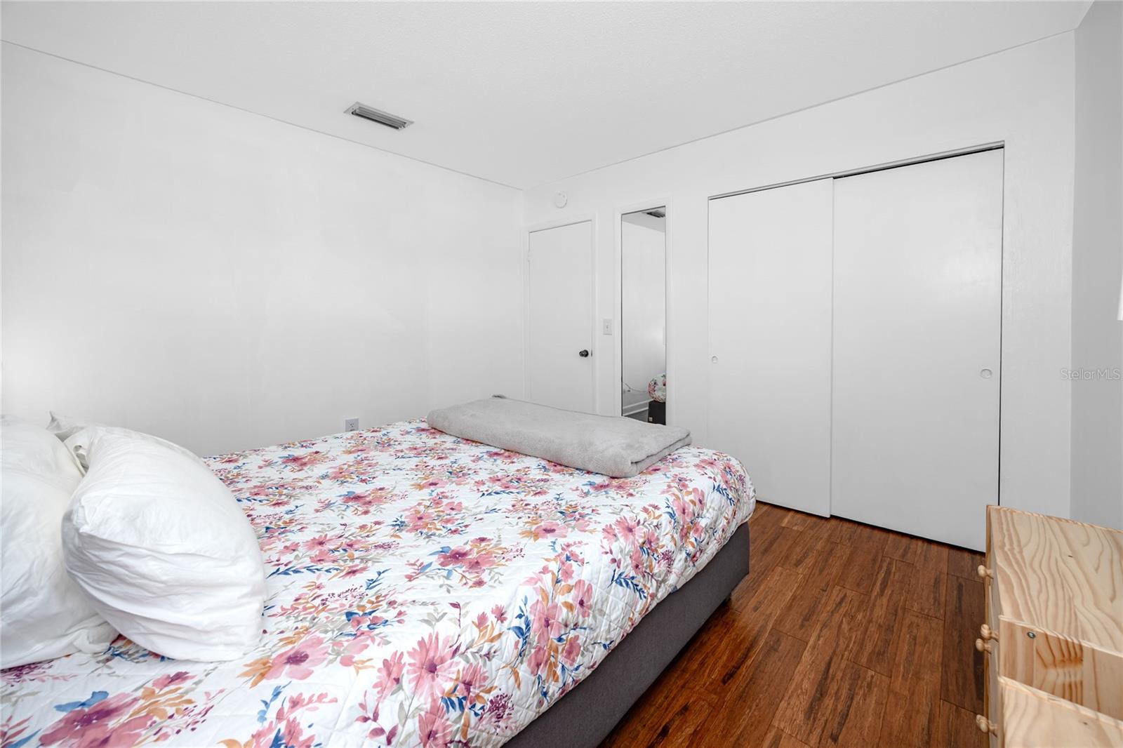 Discover effortless living in this fully renovated, low-maintenance 2-bedroom, 1-bath ground-floor condo in the well-maintained French Quarter community of St. Petersburg. Situated in a quiet rear corner, this spacious unit offers the largest open floor plan in the community, designed for comfort and modern functionality. Bamboo plank flooring flows throughout, complementing an interior updated with hurricane-resistant double-pane windows, HVAC (replaced this summer in August 2025!), and water heater—all under five years old. The contemporary kitchen features quartz waterfall countertops, all-new stainless steel appliances, a deep brushed steel farmhouse sink, and custom IKEA cabinetry with lighted pull-out storage, perfect for everyday living or entertaining. The stylishly remodeled bathroom includes tiled walls, a frosted glass pocket door, an electronic Kohler shower system with rain and handheld settings, and elegant ceiling panels for a modern touch. The open-concept living area is both spacious and functional, with custom wall-mounted consoles that maximize storage while maintaining clean lines. French Quarter offers excellent community amenities including a pool and spa, clubhouse with modern kitchen, shuffleboard courts, two dog-walking stations, three laundry facilities, and monthly pest control. HOA fees cover water, trash, cable/internet, and exterior maintenance for true worry-free living. Conveniently located just minutes from vibrant Downtown St. Pete, residents enjoy easy access to world-class dining, art galleries, entertainment, and the St. Pete Pier. A city bus stop is right outside the gate, and Whole Foods, Starbucks, and two Publix locations are within walking distance. This turnkey condo represents one of the most upgraded, move-in-ready options among St. Petersburg condos for sale.