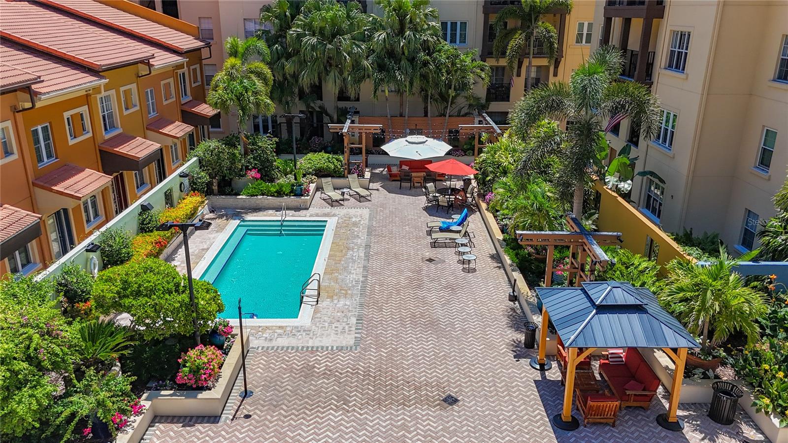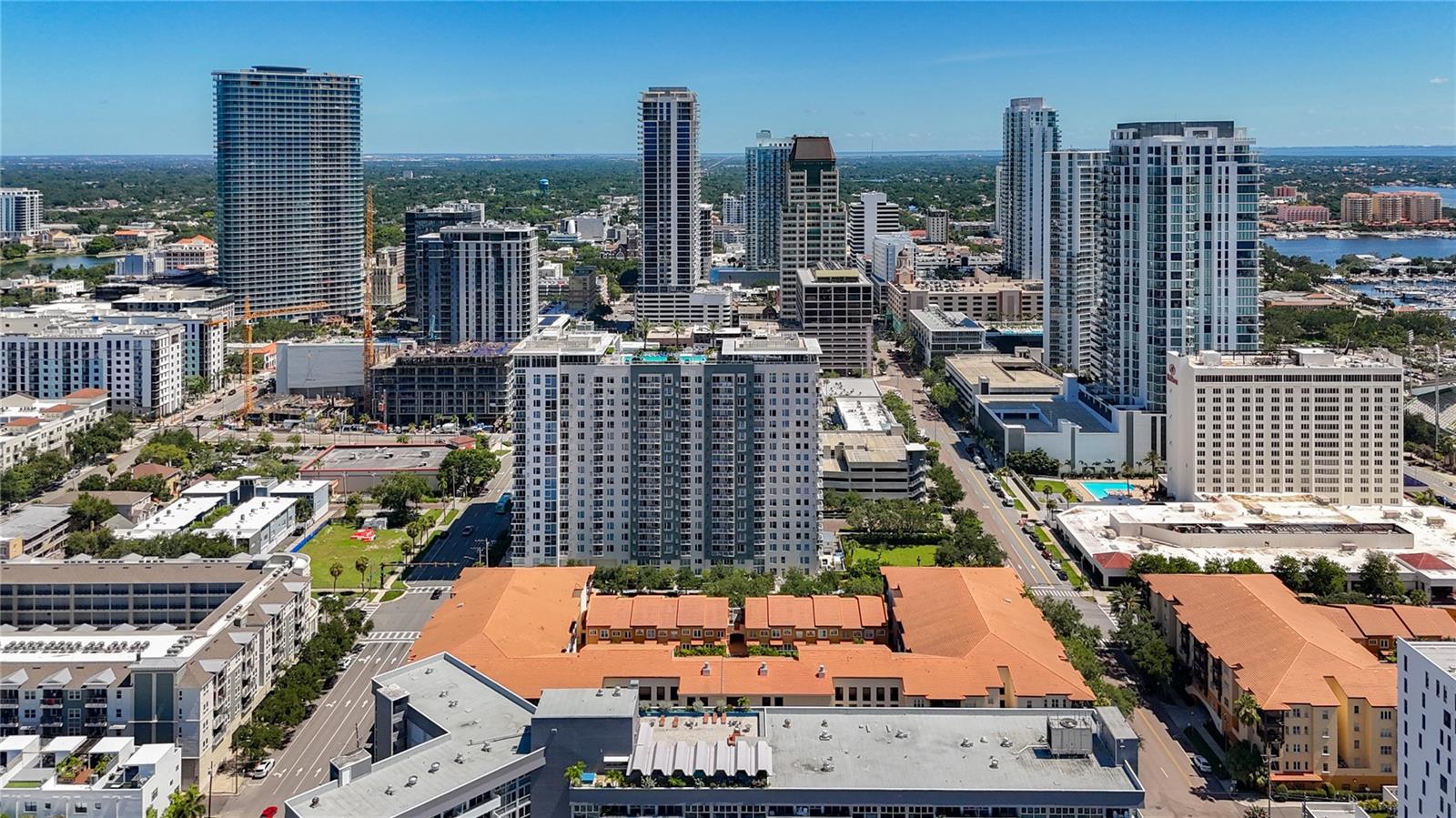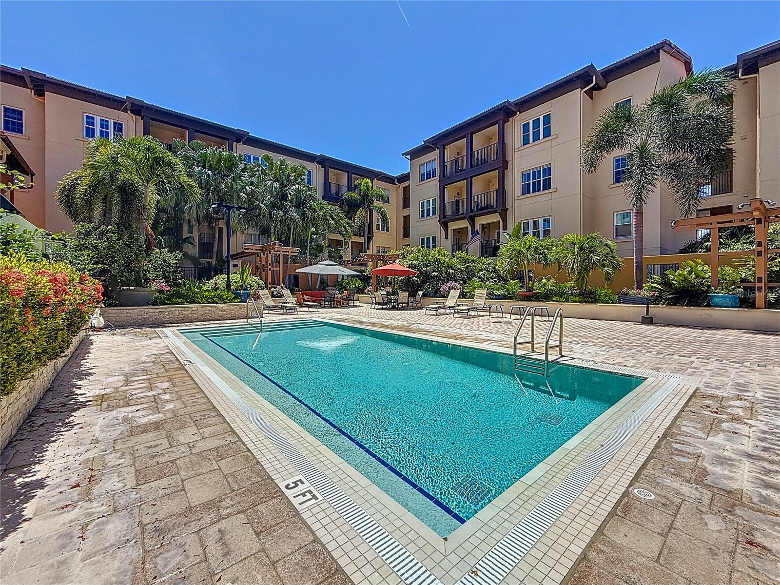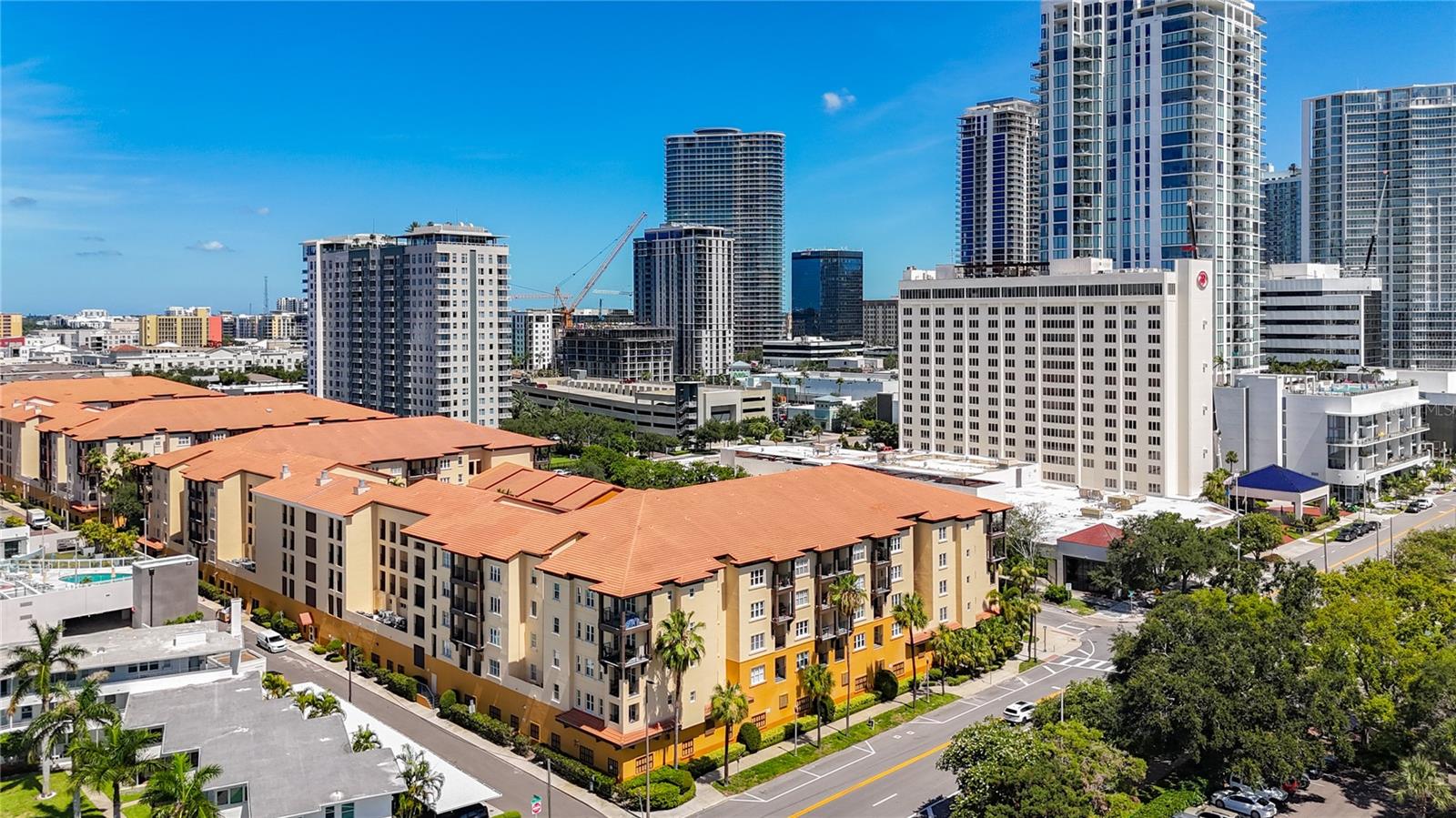 Beautifully updated 1 bedroom condo located at the Madison in the heart of downtown St Pete! This residence boasts an open floor plan with high ceilings, oversized bedroom, walk-in closet, large bathroom and bamboo wood flooring throughout. The kitchen has been updated with quartz countertops, stainless steel appliances including a double oven, microwave, dishwasher & refrigerator. Ample counter space and a breakfast bar. Plus, a laundry closet with full size washer & dryer off the kitchen. The private balcony overlooks 1st Street with wonderful views of the city, stunning sunrises over the bay, and even a front row seat to turn 3 of the Grand Prix. This resort style community boasts an extraordinary courtyard with its tropical vegetation, private cabanas, heated pool and spa, BBQ and fireplace. It's a great place for outdoor entertaining. The complex also has a fully equipped fitness center, community room, underground parking & private storage. The Madison is walking distance to all the local amenities including casual and fine dining, shopping, theatre, several downtown museums and art galleries, Bayside activities and the University of South Florida. Also just around the corner from Bay Front Medical Center. Great location, great place to live!