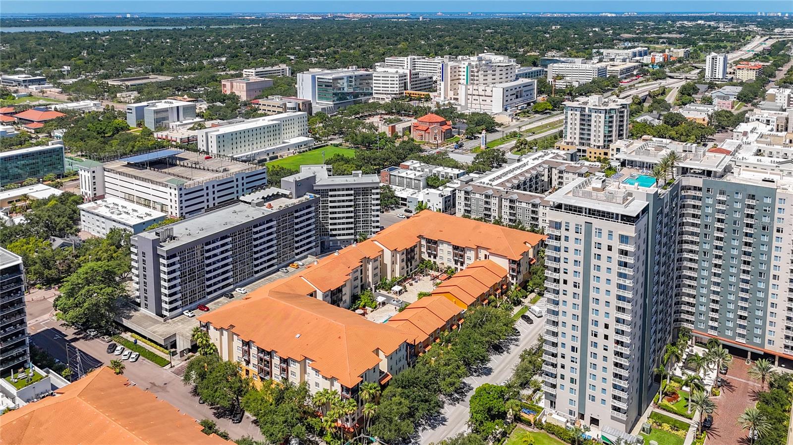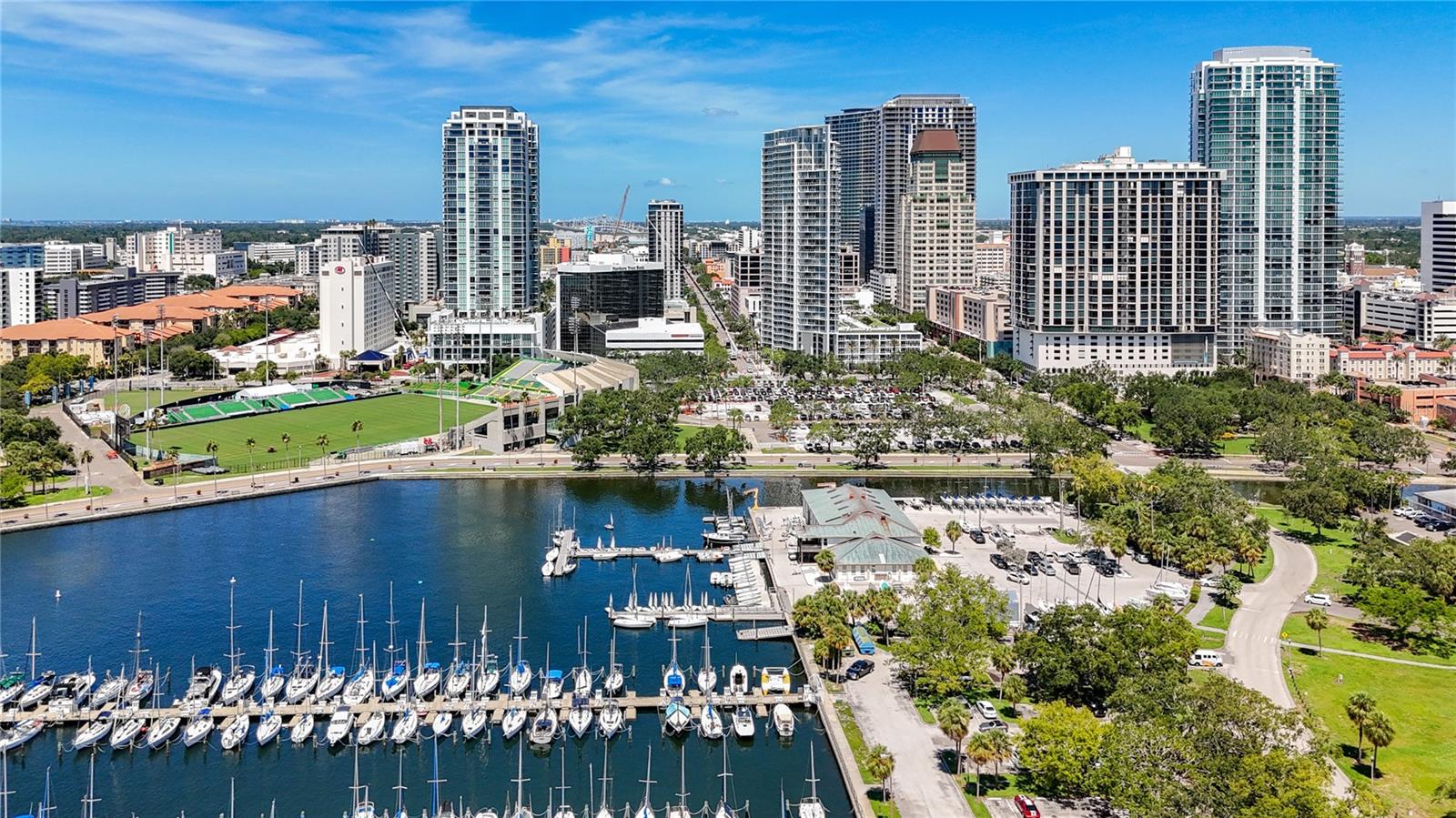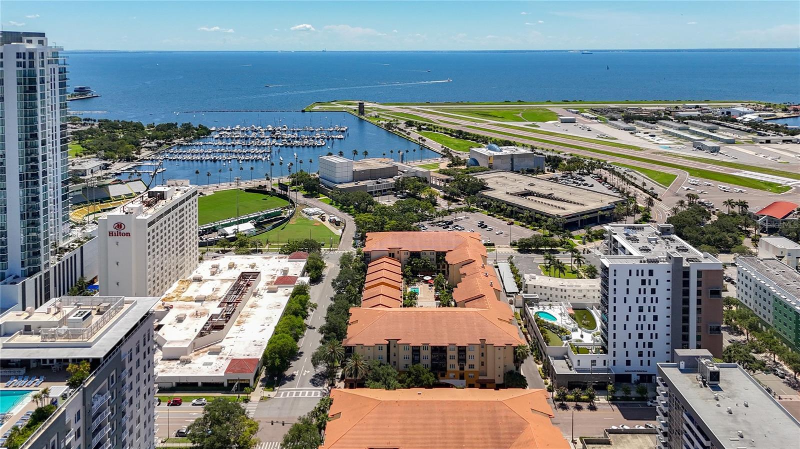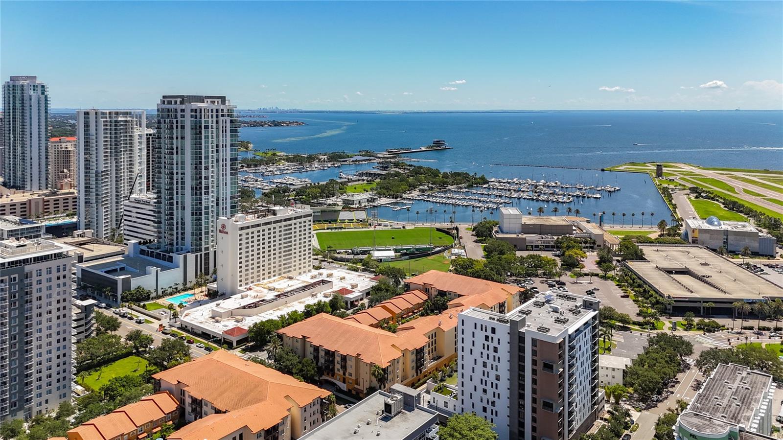 Beautifully updated 1 bedroom condo located at the Madison in the heart of downtown St Pete! This residence boasts an open floor plan with high ceilings, oversized bedroom, walk-in closet, large bathroom and bamboo wood flooring throughout. The kitchen has been updated with quartz countertops, stainless steel appliances including a double oven, microwave, dishwasher & refrigerator. Ample counter space and a breakfast bar. Plus, a laundry closet with full size washer & dryer off the kitchen. The private balcony overlooks 1st Street with wonderful views of the city, stunning sunrises over the bay, and even a front row seat to turn 3 of the Grand Prix. This resort style community boasts an extraordinary courtyard with its tropical vegetation, private cabanas, heated pool and spa, BBQ and fireplace. It's a great place for outdoor entertaining. The complex also has a fully equipped fitness center, community room, underground parking & private storage. The Madison is walking distance to all the local amenities including casual and fine dining, shopping, theatre, several downtown museums and art galleries, Bayside activities and the University of South Florida. Also just around the corner from Bay Front Medical Center. Great location, great place to live!