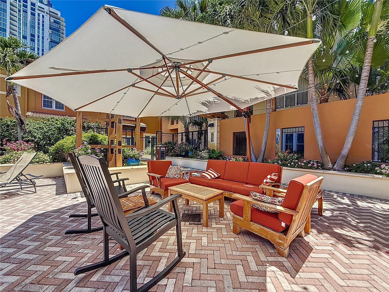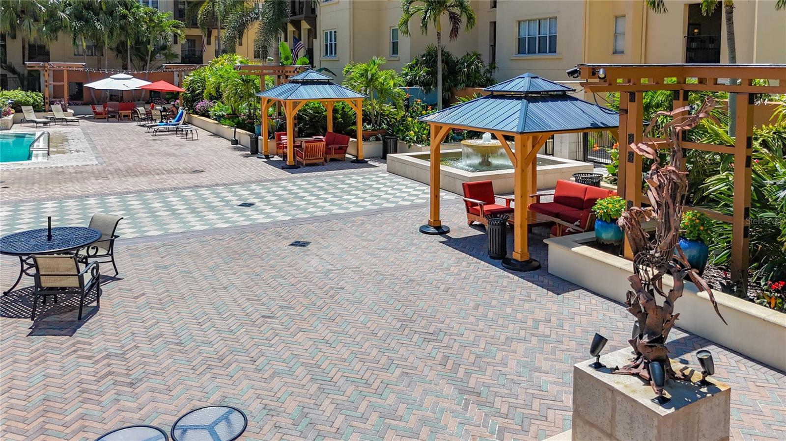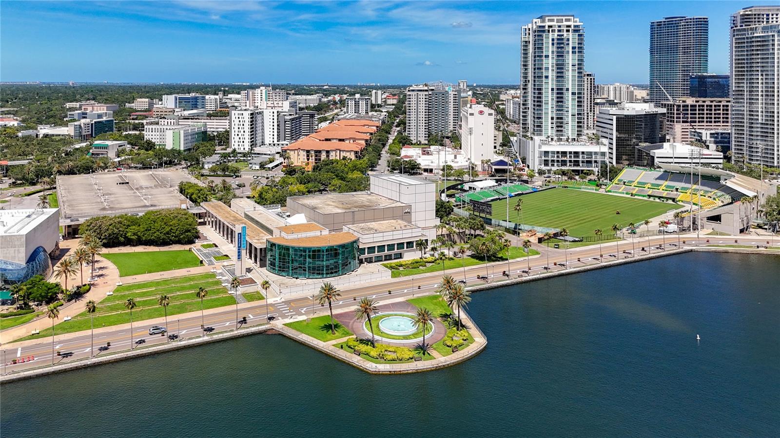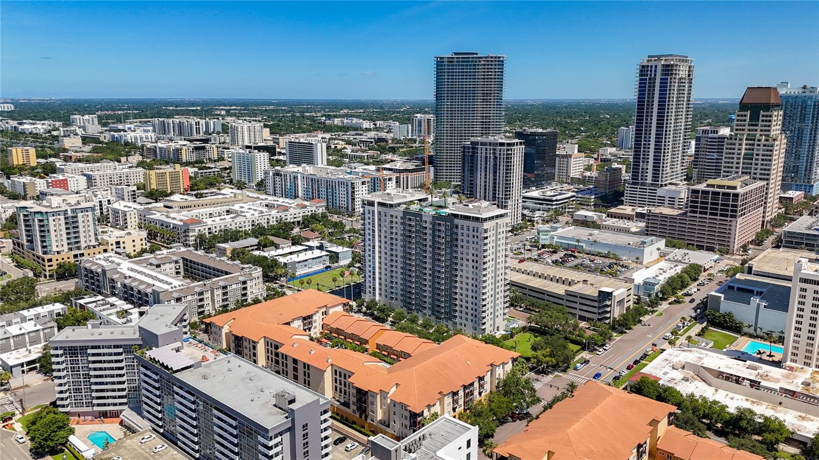 Beautifully updated 1 bedroom condo located at the Madison in the heart of downtown St Pete! This residence boasts an open floor plan with high ceilings, oversized bedroom, walk-in closet, large bathroom and bamboo wood flooring throughout. The kitchen has been updated with quartz countertops, stainless steel appliances including a double oven, microwave, dishwasher & refrigerator. Ample counter space and a breakfast bar. Plus, a laundry closet with full size washer & dryer off the kitchen. The private balcony overlooks 1st Street with wonderful views of the city, stunning sunrises over the bay, and even a front row seat to turn 3 of the Grand Prix. This resort style community boasts an extraordinary courtyard with its tropical vegetation, private cabanas, heated pool and spa, BBQ and fireplace. It's a great place for outdoor entertaining. The complex also has a fully equipped fitness center, community room, underground parking & private storage. The Madison is walking distance to all the local amenities including casual and fine dining, shopping, theatre, several downtown museums and art galleries, Bayside activities and the University of South Florida. Also just around the corner from Bay Front Medical Center. Great location, great place to live!