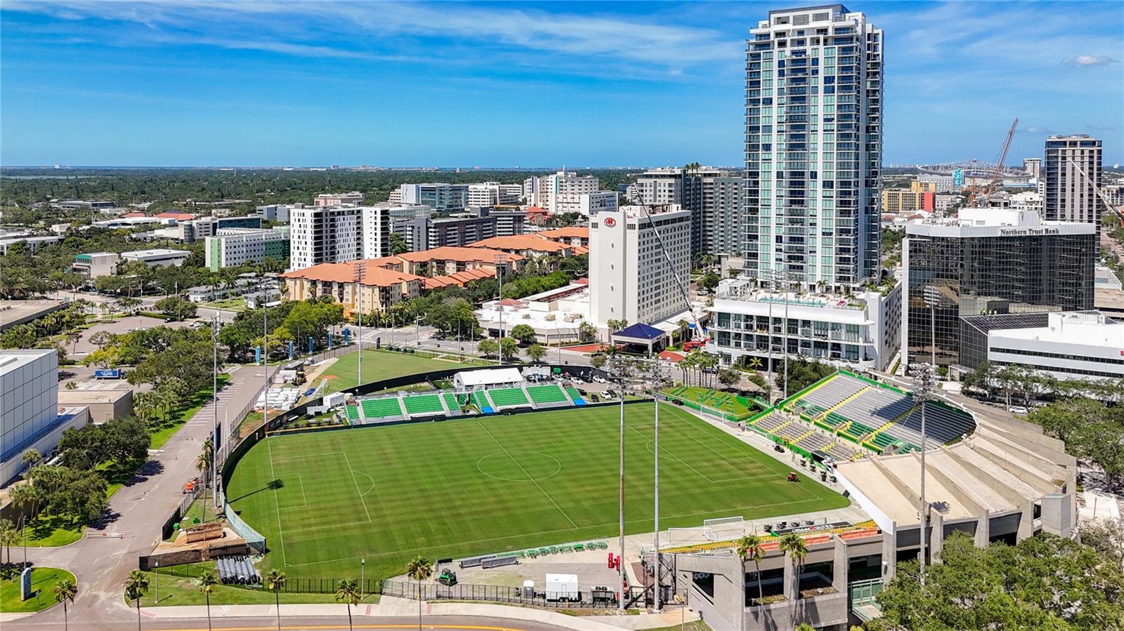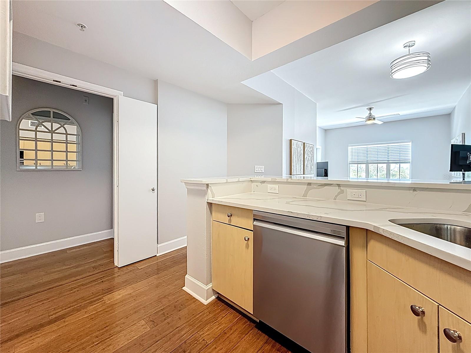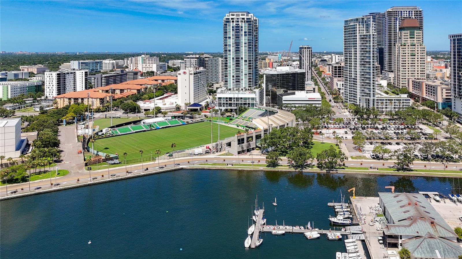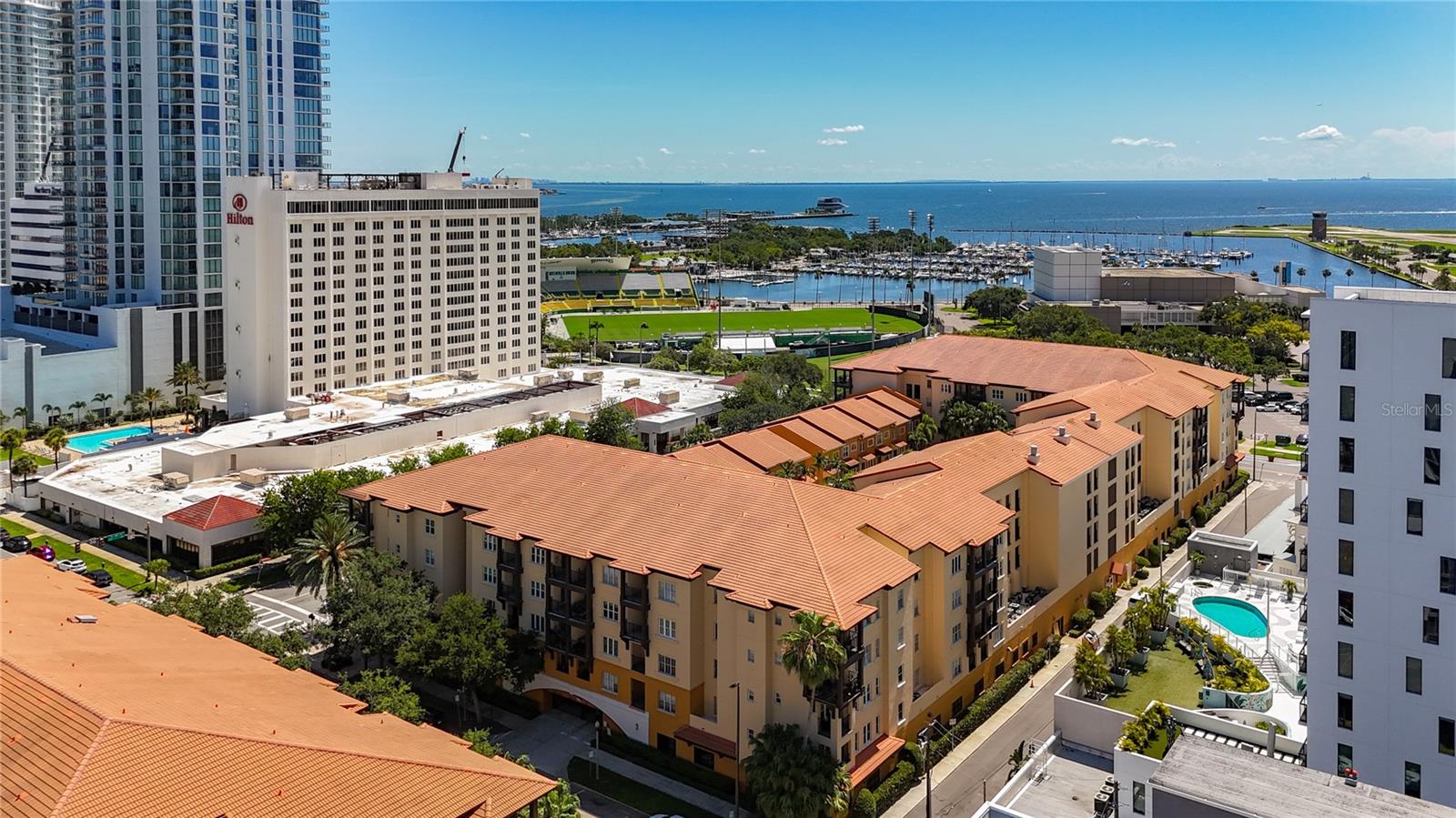 Beautifully updated 1 bedroom condo located at the Madison in the heart of downtown St Pete! This residence boasts an open floor plan with high ceilings, oversized bedroom, walk-in closet, large bathroom and bamboo wood flooring throughout. The kitchen has been updated with quartz countertops, stainless steel appliances including a double oven, microwave, dishwasher & refrigerator. Ample counter space and a breakfast bar. Plus, a laundry closet with full size washer & dryer off the kitchen. The private balcony overlooks 1st Street with wonderful views of the city, stunning sunrises over the bay, and even a front row seat to turn 3 of the Grand Prix. This resort style community boasts an extraordinary courtyard with its tropical vegetation, private cabanas, heated pool and spa, BBQ and fireplace. It's a great place for outdoor entertaining. The complex also has a fully equipped fitness center, community room, underground parking & private storage. The Madison is walking distance to all the local amenities including casual and fine dining, shopping, theatre, several downtown museums and art galleries, Bayside activities and the University of South Florida. Also just around the corner from Bay Front Medical Center. Great location, great place to live!