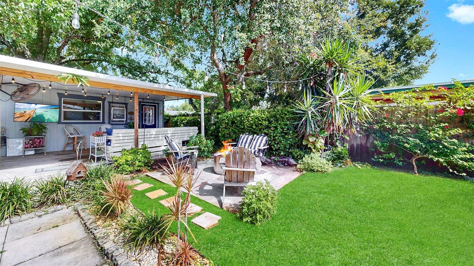 Welcome to this beautiful bungalow, a dreamy 3 bed, 2 bath retreat with lush landscaping, cozy fire pit, additional bonus room approximately 400 sf, and room to grow. This home exudes old charm combined with modern updates. Beautiful original wood floors, open living space and remodeled kitchen. The owners suite is privately located opposite bedrooms with separate bath and indoor laundry closet. Fully fenced back yard with back patio perfect for entertaining. Oversized 2-car carport with alley access with potential to add a garage. The home has a 2019 roof, 2023 A/C, well for irrigation in a NON FLOOD ZONE. No damage from recent hurricanes. Minutes from downtown, Crescent Park, Old Northeast and approximately 15 minutes to beaches. Great potential for Air BNB, mid term or long term rentals. Close to shopping and restaurants.