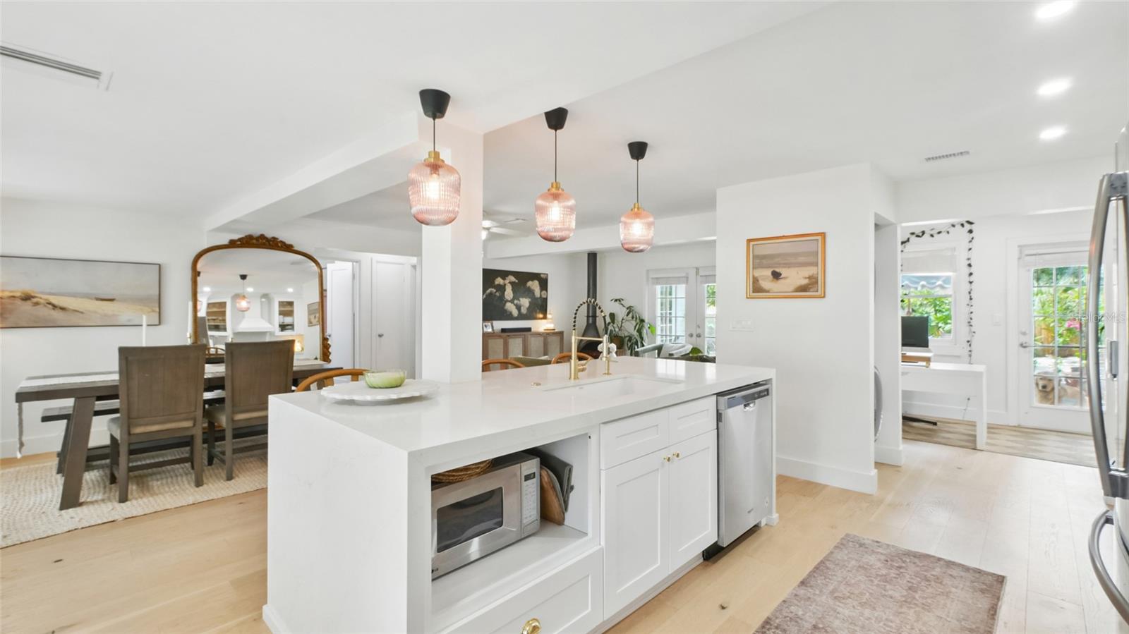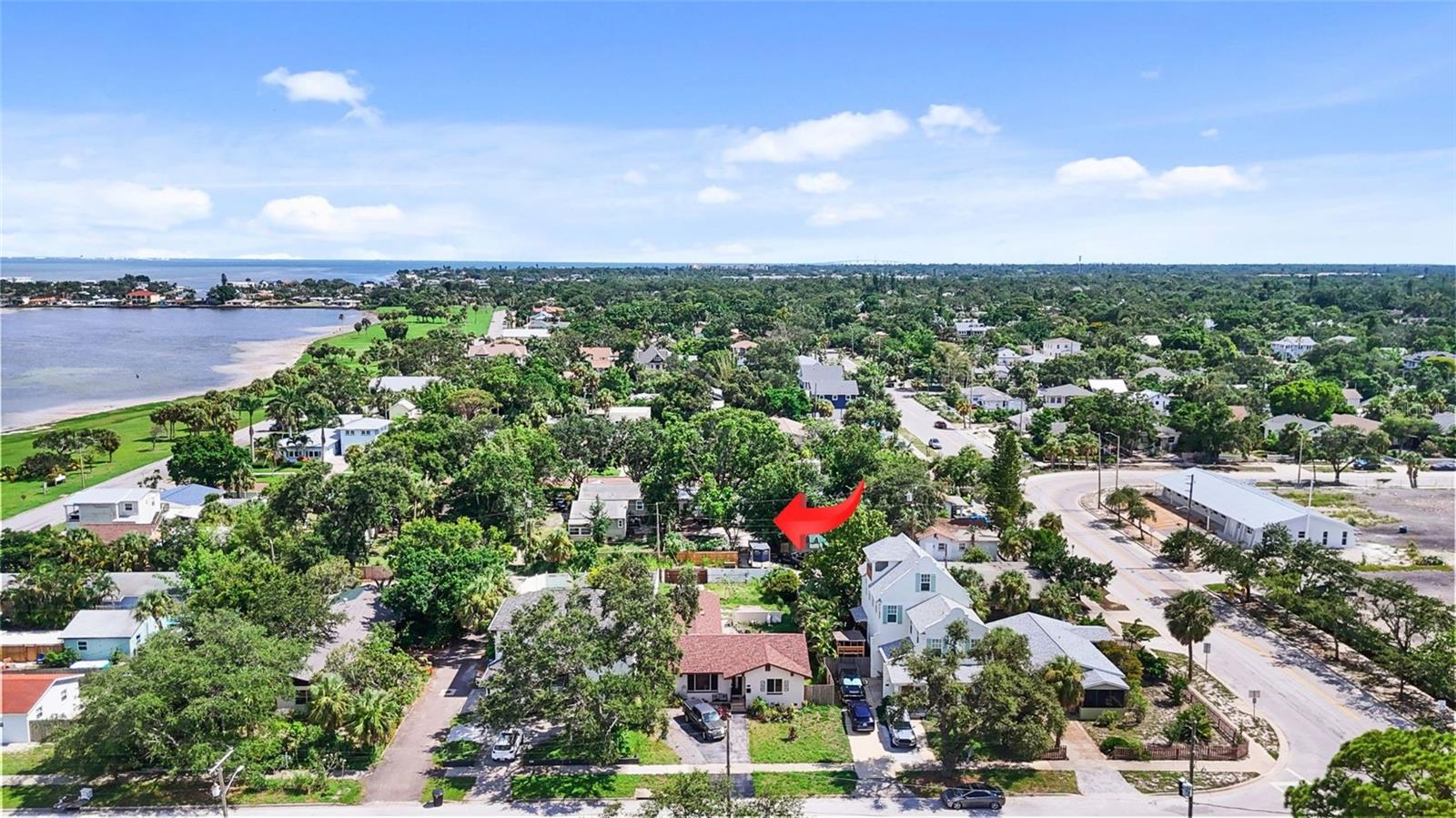 Welcome to this beautifully renovated bungalow located in the heart of one of St. Petersburg’s most coveted neighborhoods: Old Southeast. Nestled on a quiet brick lined street just four homes away from the waterfront at Lassing Park, this home offers the perfect blend of charm, convenience, and peace of mind. Enjoy water views of Tampa Bay from your front porch and breathtaking glimpses of the downtown skyline from your backyard—all while being HIGH AND DRY—NO FLOOD INSURANCE REQUIRED. This thoughtfully updated 2-bedroom, 2-bathroom home includes 1,241 square feet of living space with a versatile bonus room perfect for a home office or creative studio. Renovated in 2023, the home features brand-new engineered hardwood flooring throughout, a designer kitchen with solid wood cabinets, 2-inch quartz countertops and backsplash, and new kitchen and laundry appliances. Step outside onto the extended backyard deck, ideal for entertaining guests or enjoying a quiet evening under the stars. The backyard offers a peek at the downtown skyline and is the perfect spot to unwind. Additional features include a 2018 roof and an HVAC system also from 2018. Located just over a mile from vibrant downtown St. Pete, you’ll enjoy easy access to award-winning restaurants, boutiques, museums, and nightlife—while still coming home to a peaceful, bayfront community. Wake up to sunrise walks or yoga by the water, watch windsurfers glide past from your front yard, and embrace the laid-back yet connected lifestyle that makes Old Southeast so special. This is more than a home—it’s a lifestyle.