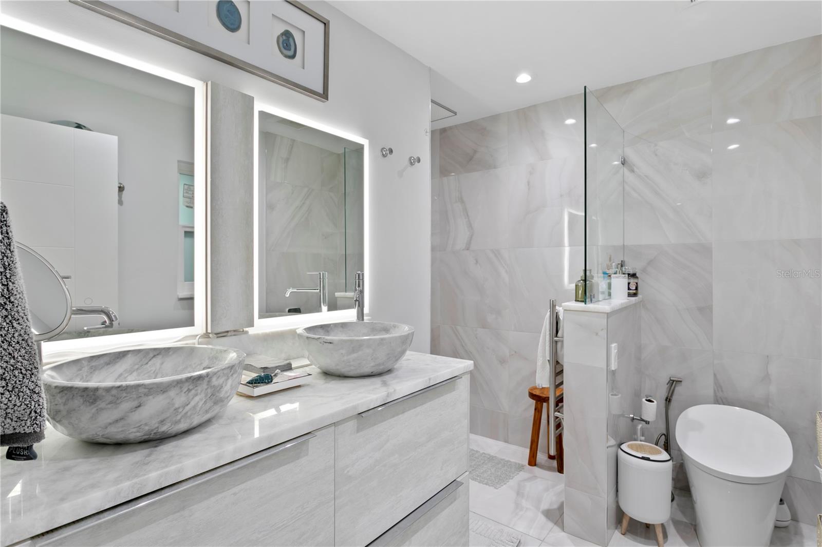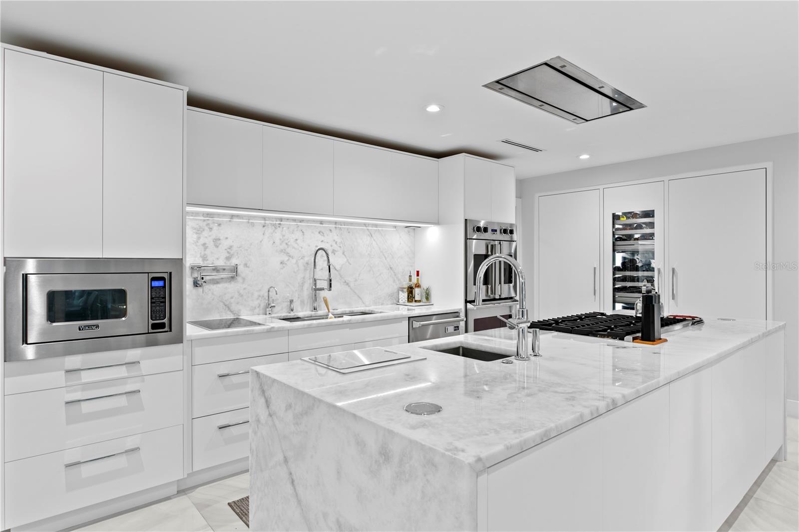 Enjoy peace of mind and luxury in this no water intrusion, according to the owner, fully rebuilt three-bedroom, two-bath waterfront home. Every inch of the interior has been redesigned and upgraded through a comprehensive renovation with over $300,000 in high-end upgrades, including premium materials, finishes and modern systems. The open-concept layout flows seamlessly throughout, anchored by a stunning kitchen that was relocated and expanded into the former dining area. This chef-designed space features 100 percent custom cabinetry, natural stone countertops, and an expansive 11-foot island with built-in storage. Outfitted with Viking and Miele appliances, it includes a gas range, in-wall coffee machine, double ovens, dual dishwashers, refrigerator drawers (inside and out), a walk-in pantry, butler’s pantry, three sinks, pot filler, and a separate built-in freezer and refrigerator. Both baths are fully renovated with designer finishes, including Toto bidet toilets, a rain shower in the primary suite, and elegant, high-end fixtures. Bedrooms feature custom Elfa closet systems for smart, sleek storage solutions. This home also features a complete electrical rewire, along with extensive upgrades to all major systems, such as new switches, fixtures, and lighting throughout, cast iron sewer lines replaced with PVC, Copper plumbing upgraded to PEX, hurricane-rated impact windows and sliding glass doors, all-new attic and wall insulation, ceiling fans and HVAC system, solar panels significantly reduce energy costs, 24/7 monitored security system with cameras, electric blinds and smart tech features. Outdoors, enjoy resort-style living with a heated pool, refinished tile and new filtration system. The outdoor kitchen is fully equipped with a wood-burning pizza oven, grill, griddle and sink. The property also features parasite-resistant sod, a turf-lined dog run, composite dock with 25,000-pound boat lift, and lush, low-maintenance landscaping. This home blends waterfront elegance, modern comfort, and total peace of mind fully renovated, move-in ready and built to the highest standards.