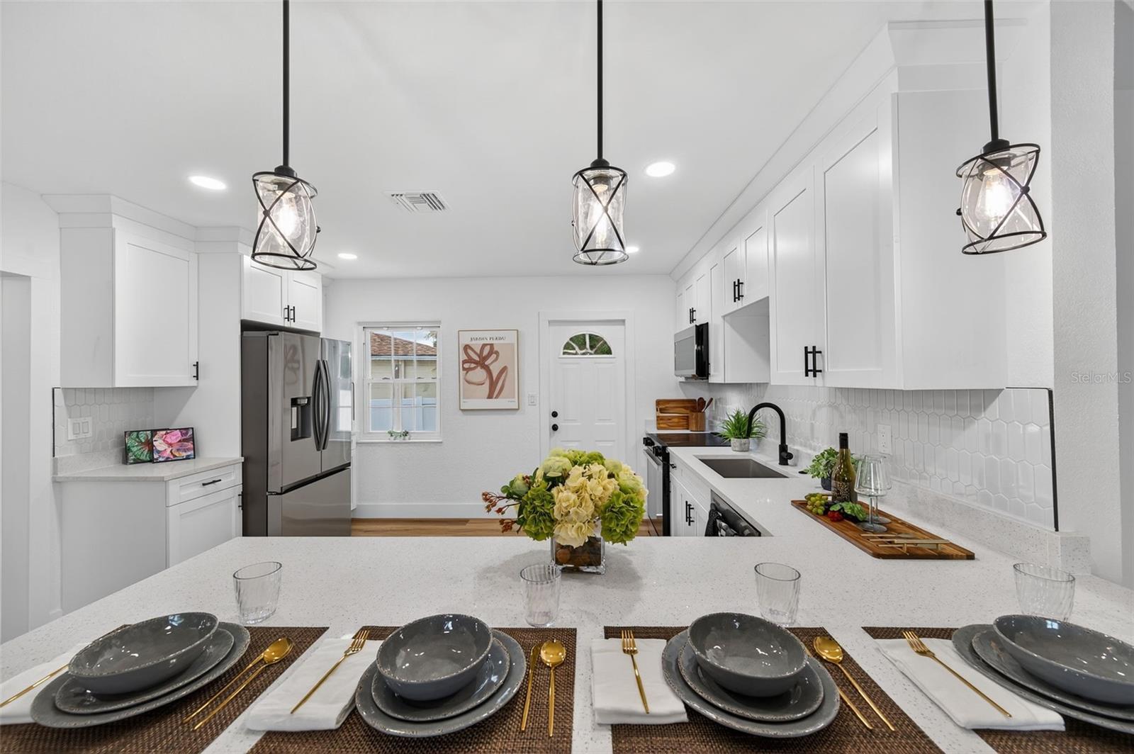 Beautifully Renovated Home on a Corner Lot in Disston Heights Located in one of St. Petersburg’s established neighborhoods, this move-in-ready 3-bedroom, 2-bath home sits on a desirable corner lot and offers complete modern updates. Inside, you’ll find an open-concept layout and a beautifully updated kitchen featuring waterfall-edge quartz countertops and stainless steel appliances. Both bathrooms have been fully renovated with modern finishes, and luxury vinyl plank flooring runs throughout for a clean, cohesive look. The home offers an abundance of natural light. Step outside to a spacious, fully vinyl-fenced backyard—perfect for entertaining, pets, or play—with mature landscaping and room for future additions. Conveniently located just minutes from shopping, dining, and the beaches. Located in Flood Zone X—no flood insurance required and no damage from last year's storms. Major updates include a new roof (2025), all-new ductwork, serviced HVAC (2025), and updated electrical and plumbing.