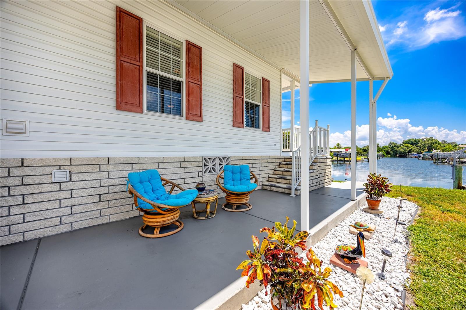 Experience the best of Florida living in this beautifully maintained, fully furnished 2-bedroom, 2-bath Jacobsen Homes Imperial 2013 model waterfront home in the highly desirable 55+ gated community of Americana Cove. Whether you’re seeking a seasonal escape or a year-round residence, this home offers the perfect blend of comfort, convenience, and a true coastal lifestyle. From your living room or back deck, you can relax and enjoy the daily sights of dolphins and manatees right outside your door. Perfect for boaters, kayakers, and fishermen, the water is quite literally your backyard. Inside, an open living and dining space flows easily to the kitchen, creating a warm and inviting environment for both entertaining and quiet evenings at home. Two sets of sliding glass doors overlook the water, filling the home with natural light and peaceful views. This home comes thoughtfully updated for comfort and peace of mind: new A/C ducts? in March 2025, and aplus a newer A/C (installed in June 2021). The interior was freshly painted in 2021, and the driveway was resurfaced and painted just last month. The carport provides parking for one vehicle? (possibly a golf cart) and it includes a very large storage shed with a second level—ideal for storing seasonal items, fishing gear, or hobby supplies. As part of Americana Cove, your purchase includes a share in the resident-owned co-op, ensuring both value and security. The low monthly fee of $380 covers 24-hour manned gate security, private streets, water, sewer, lawn care, trash pickup twice weekly, and all community amenities. Enjoy a heated pool, shuffleboard, bocce ball, two boat ramps, a kayak launch, and a full calendar of social events that make it easy to connect with neighbors. Located just 10 minutes from downtown St. Petersburg, 20 minutes from two major airports, and 25 minutes to the Gulf beaches, Americana Cove offers unmatched convenience while maintaining a serene, waterfront setting. This rare, fully furnished waterfront home is move-in ready and waiting for you. Schedule your private tour today and start living the retirement lifestyle you’ve always imagined!