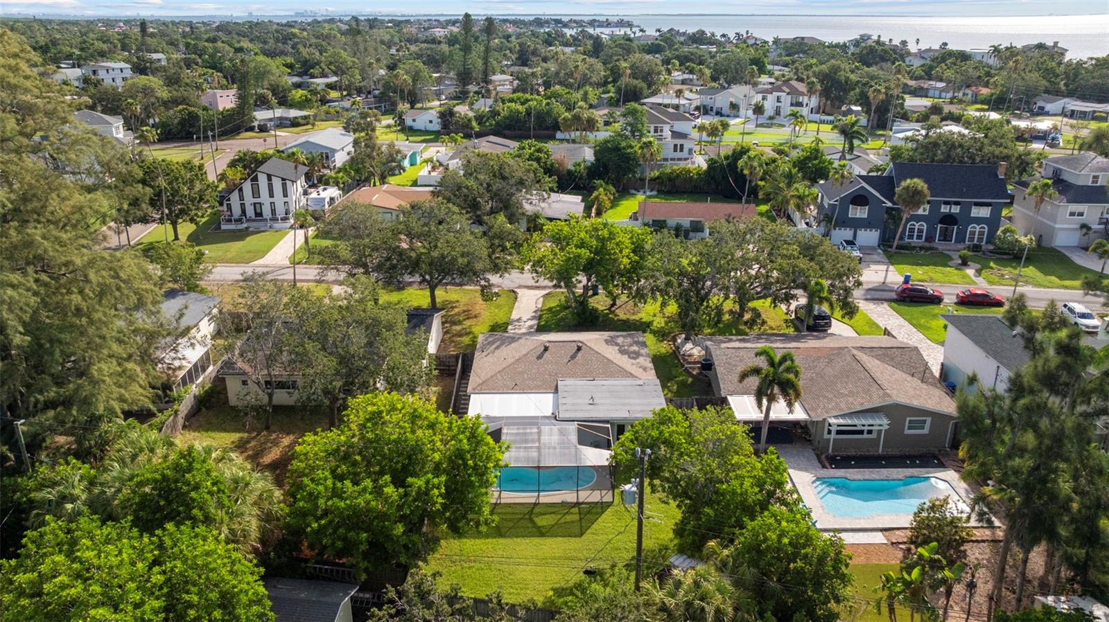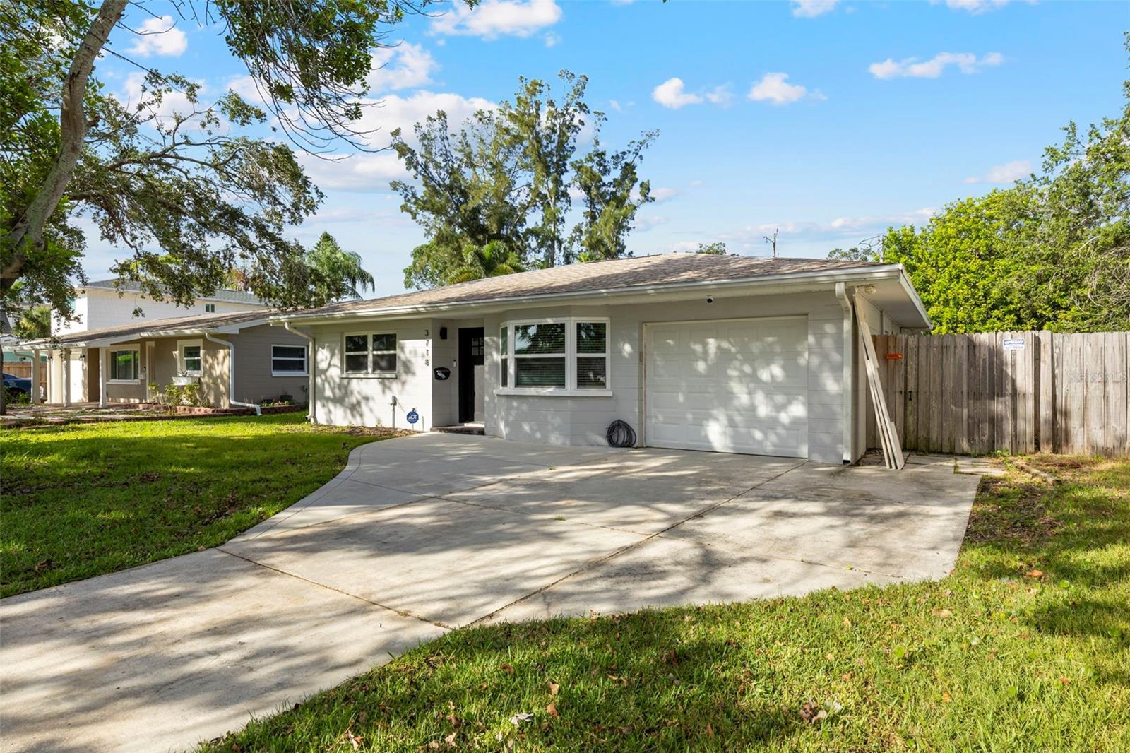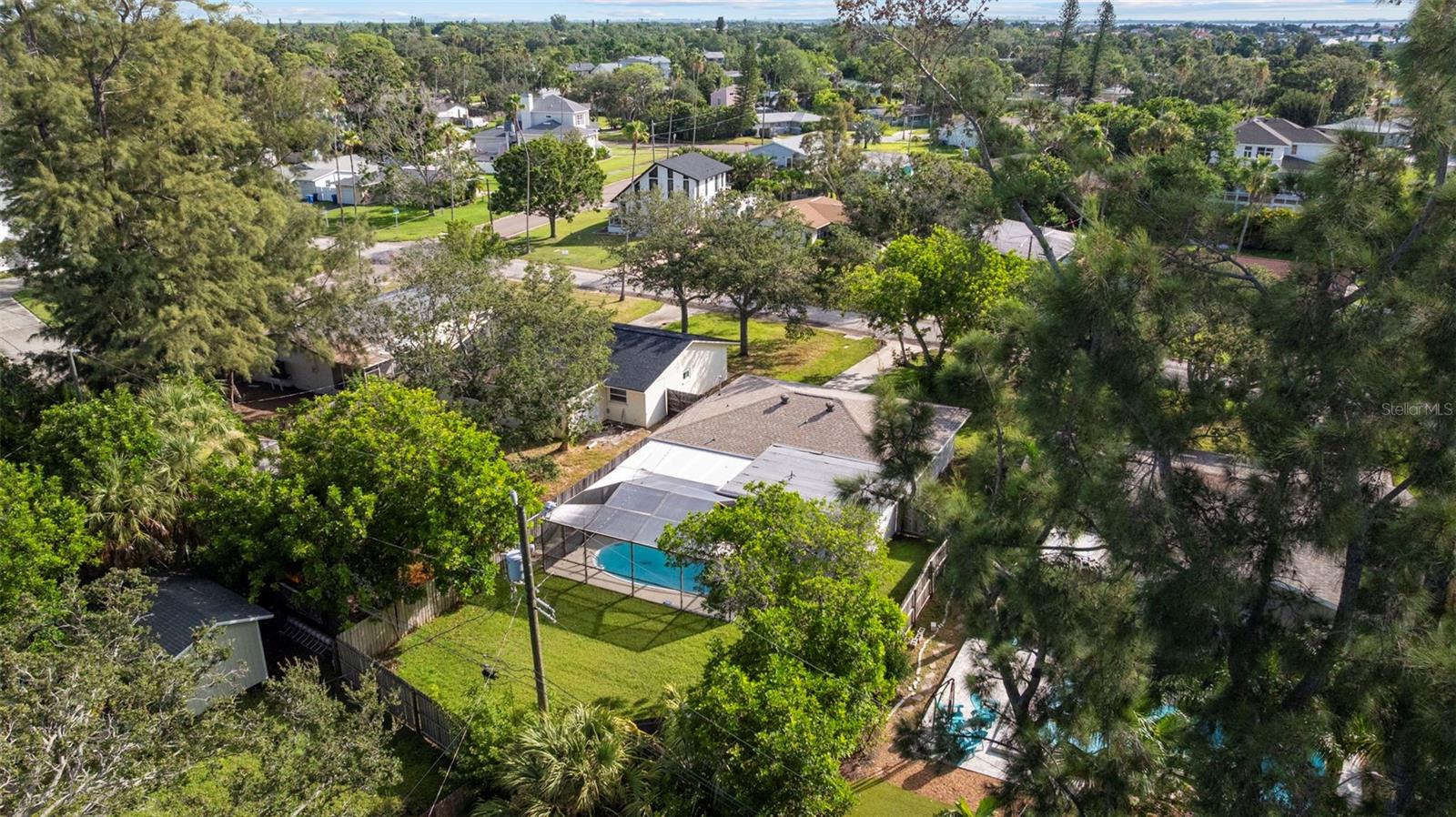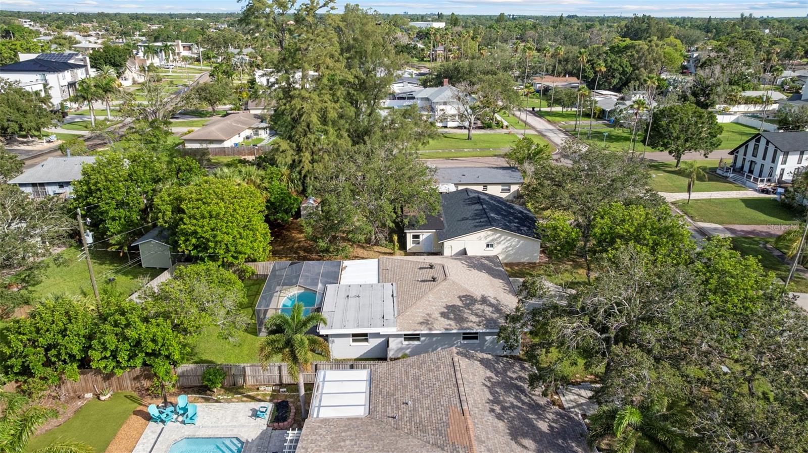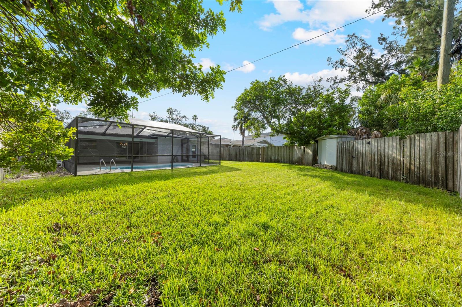 This recently completely redone and updated home in the Shore Acres neighborhood of St. Petersburg is a thoughtfully modernized single-family residence on an oversized lot! Featuring two bedrooms and two full baths across approximately 1,296 square feet, AND A PRIVATE POOL! Inside, the open floor plan with porcelain wood look tile flows, bringing together living, dining, and kitchen areas under abundant natural light coming in through the stunning bay window. The kitchen impresses with new cabinetry (Navy on bottom and white up top for a dramatic and clean effect!), quartz countertops, stainless steel appliances, open shelving, recessed lighting, and a breakfast bar. A central sliding glass door in the dining area looks toward the covered lanai (A bonus living space!) and POOL, ensuring each of the main living spaces stays bright and visually connected to the outdoors. Down a short hallway, you’ll find a full bathroom and a generously sized secondary bedroom. Further along, the primary suite reveals a private sanctuary. This truly expansive room includes two closets, one a large walk-in, and an updated ensuite bathroom. The primary suite is complete with access to the pool deck through a sliding door. The home's standout amenity is undoubtedly the cabana-style pool deck. An in-ground, fiberglass, screened pool with a surrounding deck creates a perfect setting for Florida-style entertaining. Beyond the pool, the spacious fenced backyard with lush grass and a storage shed completes the picture of relaxed outdoor living. The oversized lot provides ample space for any backyard dream your heart desires. Everything in this home has been meticulously redone by a local GC, with no stone left unturned. The windows have been updated, and the slider out to the backyard is Impact Resistant! No homeowners association fee applies, yet residents enjoy access to Shore Acres Recreation Center and nearby parks that offer pools, playgrounds, basketball courts, and multipurpose green spaces. Within the neighborhood, accessibility is a major draw. Downtown St. Petersburg is just minutes away, offering a dynamic mix of museums, restaurants, shopping, nightlife, and arts venues. Notable attractions include the Salvador Dalí Museum, Sunken Gardens, the St. Pete Pier, the Museum of Fine Arts, and lovely waterfront parks and murals. For outdoor enthusiasts, regional escapes like Weedon Island Preserve offer kayak trails, mangrove forests, and wildlife viewing. Also within reach are beaches and barrier islands such as Fort De Soto Park and Shell Key Preserve, perfect for beach days, shelling, or bird watching. In short, this home offers a perfect blend of modern updates, effortless indoor-outdoor living, community amenities, and proximity to everything that makes St. Petersburg a vibrant place to live.