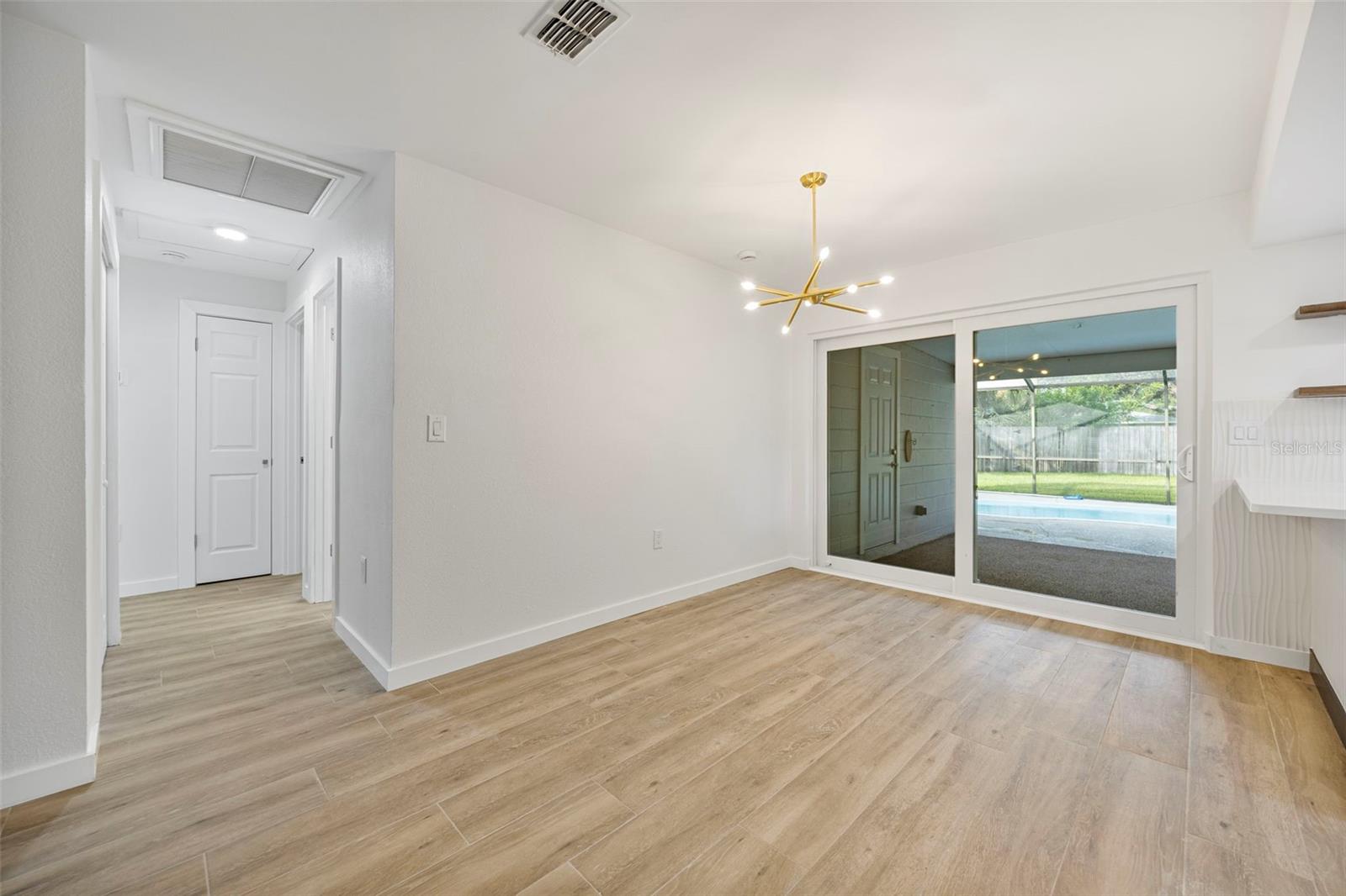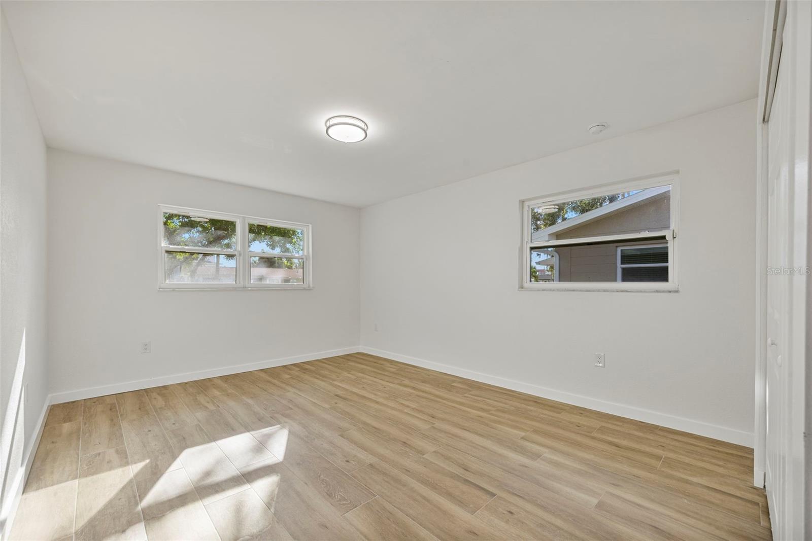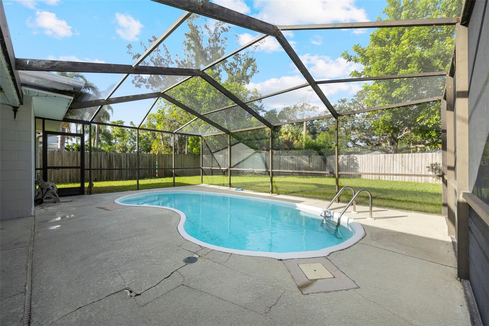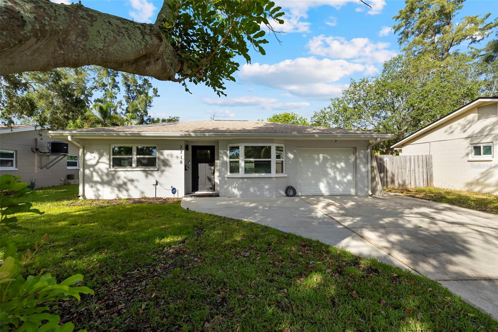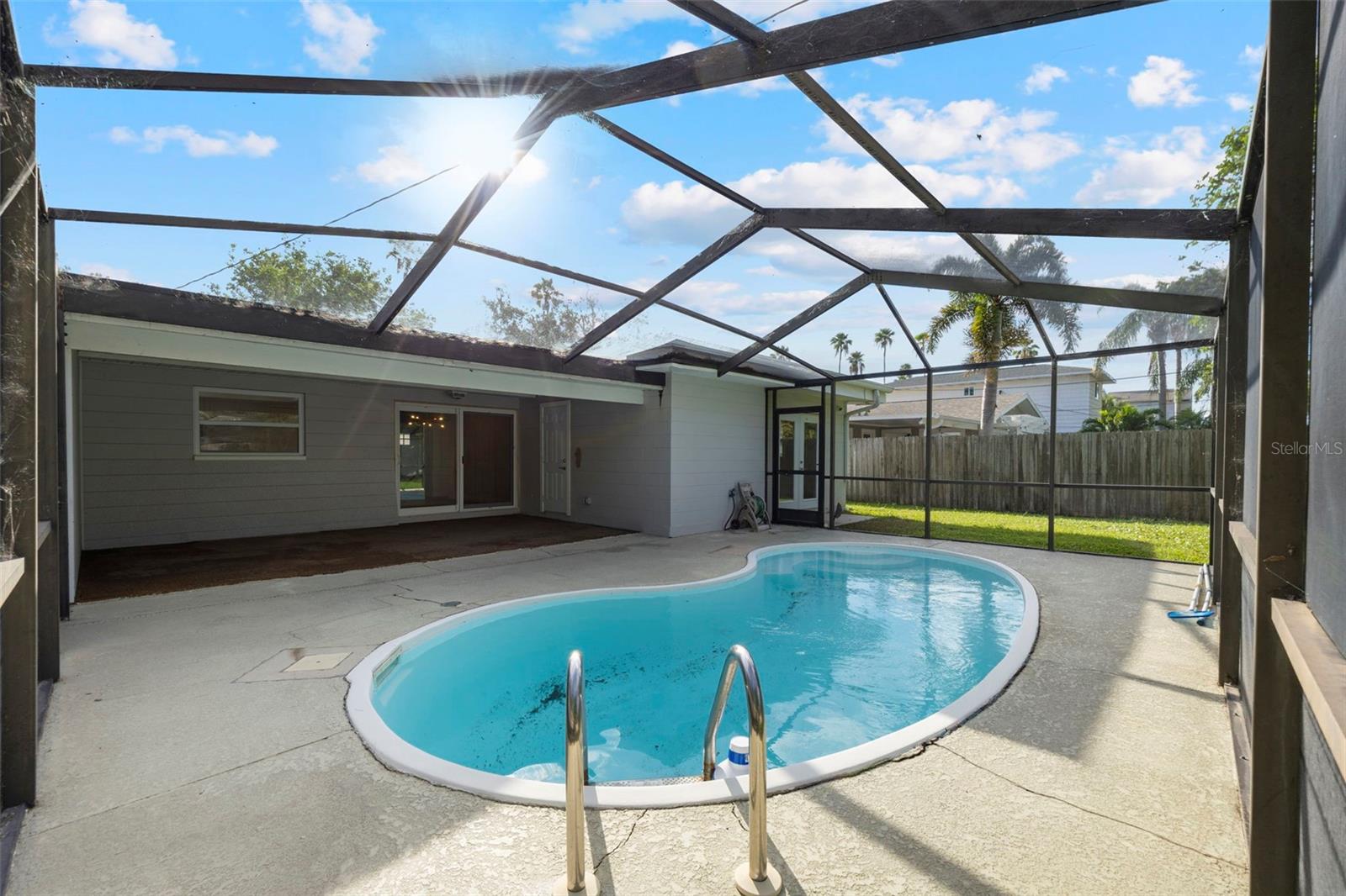 This recently completely redone and updated home in the Shore Acres neighborhood of St. Petersburg is a thoughtfully modernized single-family residence on an oversized lot! Featuring two bedrooms and two full baths across approximately 1,296 square feet, AND A PRIVATE POOL! Inside, the open floor plan with porcelain wood look tile flows, bringing together living, dining, and kitchen areas under abundant natural light coming in through the stunning bay window. The kitchen impresses with new cabinetry (Navy on bottom and white up top for a dramatic and clean effect!), quartz countertops, stainless steel appliances, open shelving, recessed lighting, and a breakfast bar. A central sliding glass door in the dining area looks toward the covered lanai (A bonus living space!) and POOL, ensuring each of the main living spaces stays bright and visually connected to the outdoors. Down a short hallway, you’ll find a full bathroom and a generously sized secondary bedroom. Further along, the primary suite reveals a private sanctuary. This truly expansive room includes two closets, one a large walk-in, and an updated ensuite bathroom. The primary suite is complete with access to the pool deck through a sliding door. The home's standout amenity is undoubtedly the cabana-style pool deck. An in-ground, fiberglass, screened pool with a surrounding deck creates a perfect setting for Florida-style entertaining. Beyond the pool, the spacious fenced backyard with lush grass and a storage shed completes the picture of relaxed outdoor living. The oversized lot provides ample space for any backyard dream your heart desires. Everything in this home has been meticulously redone by a local GC, with no stone left unturned. The windows have been updated, and the slider out to the backyard is Impact Resistant! No homeowners association fee applies, yet residents enjoy access to Shore Acres Recreation Center and nearby parks that offer pools, playgrounds, basketball courts, and multipurpose green spaces. Within the neighborhood, accessibility is a major draw. Downtown St. Petersburg is just minutes away, offering a dynamic mix of museums, restaurants, shopping, nightlife, and arts venues. Notable attractions include the Salvador Dalí Museum, Sunken Gardens, the St. Pete Pier, the Museum of Fine Arts, and lovely waterfront parks and murals. For outdoor enthusiasts, regional escapes like Weedon Island Preserve offer kayak trails, mangrove forests, and wildlife viewing. Also within reach are beaches and barrier islands such as Fort De Soto Park and Shell Key Preserve, perfect for beach days, shelling, or bird watching. In short, this home offers a perfect blend of modern updates, effortless indoor-outdoor living, community amenities, and proximity to everything that makes St. Petersburg a vibrant place to live.