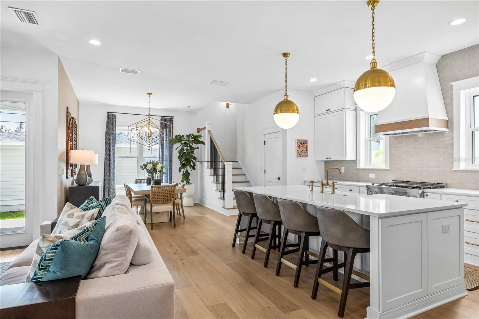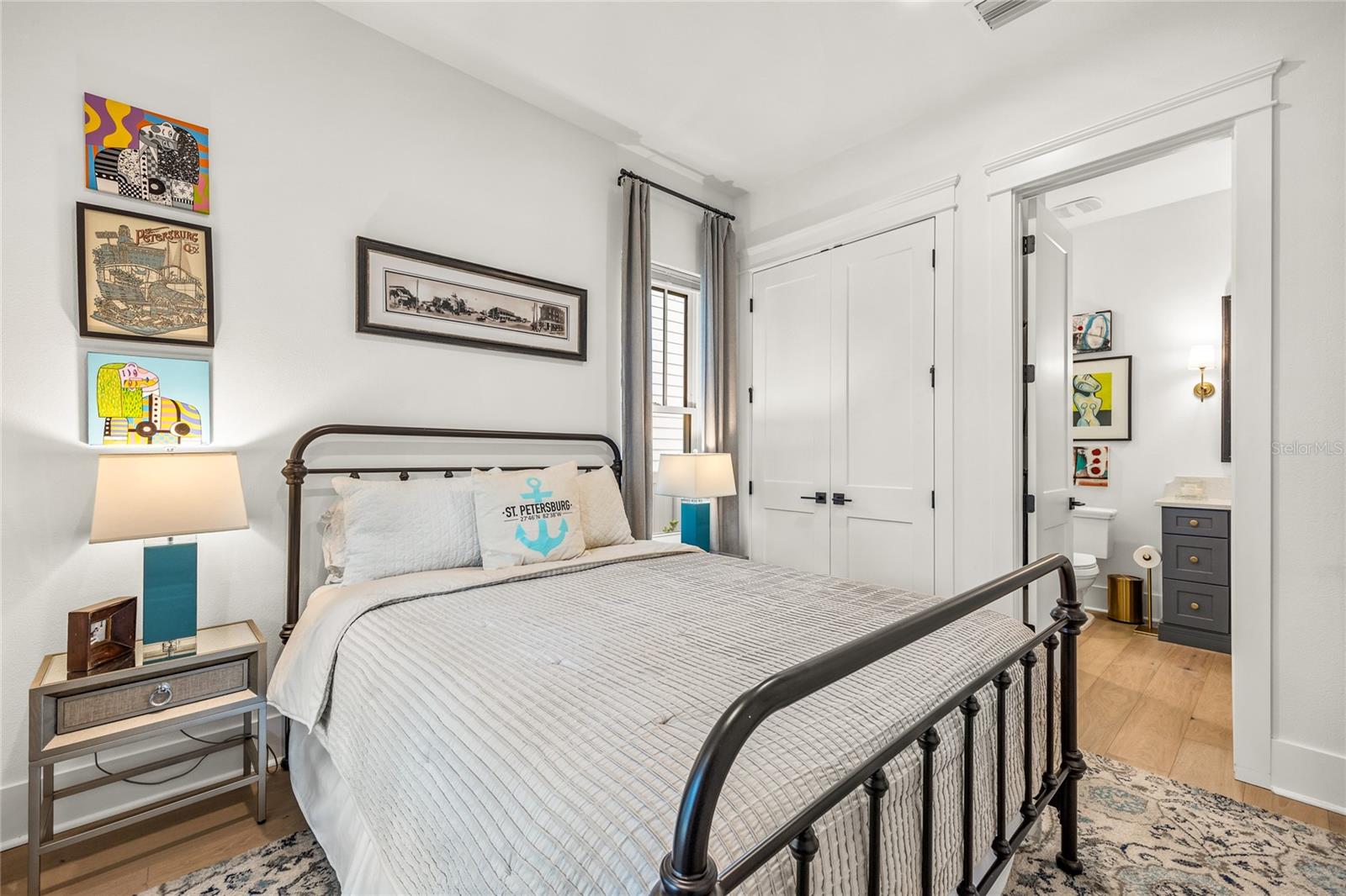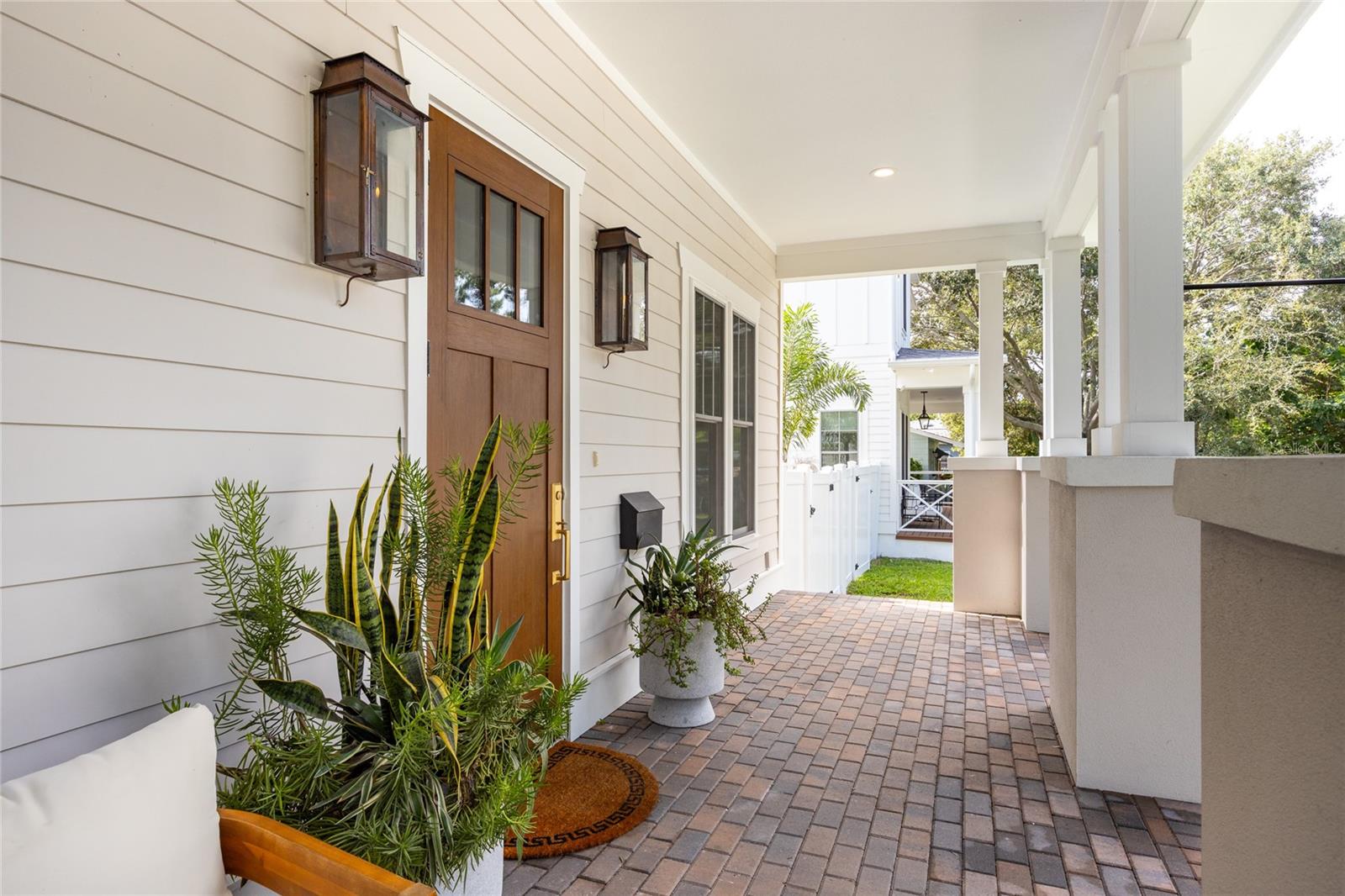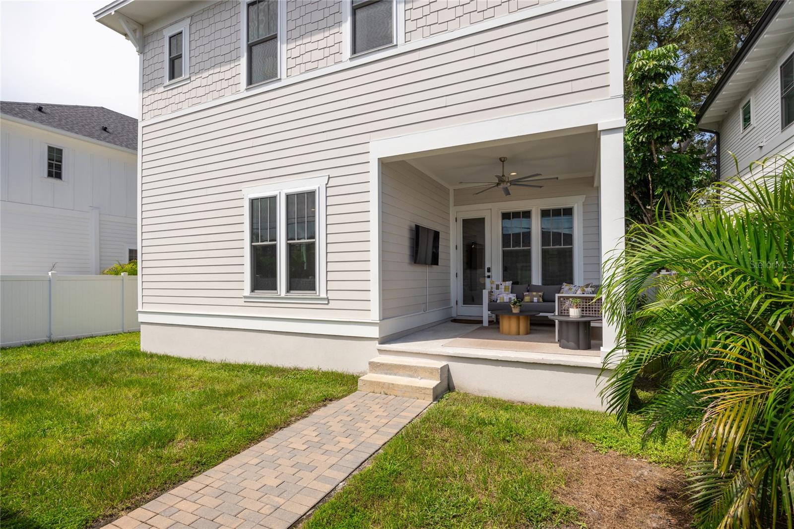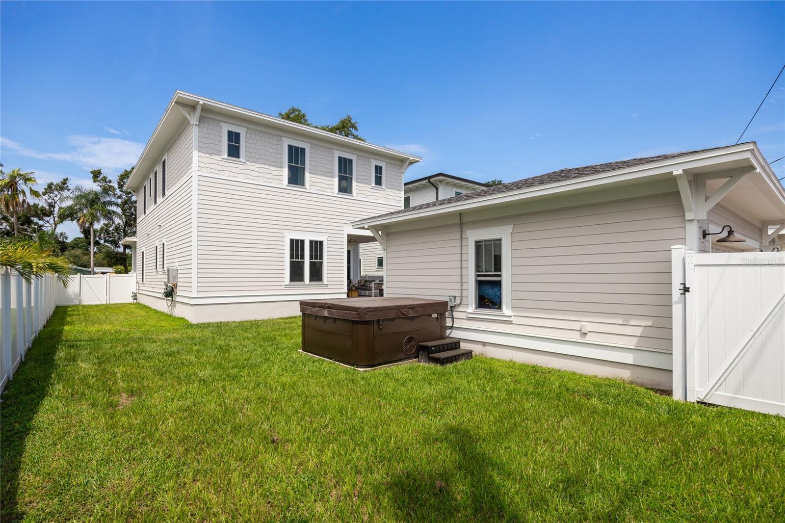 Why wait for new construction when this professionally designed 2023 Canopy Builders home is move-in ready today? Nestled in the sought-after Magnolia Heights neighborhood, this Four Square model sits on a premium 6,200 SF lot high and dry in Flood Zone X. Built by one of St. Petersburg’s most acclaimed builders, no detail has been overlooked in this 4-bedroom + office + loft, 3-bathroom residence with a detached 2-car garage with an electric charger. From the moment you arrive, the timeless curb appeal shines with Hardie Board plank siding, impact-rated windows and doors, gas lanterns on the welcoming front porch, and a pavered walkway framed by canopy oaks. Inside, 10’ ceilings on the main level, 8’ solid interior doors, and a designer finish package set a sophisticated tone. The open-concept floor plan flows effortlessly from the living area to the chef’s kitchen—complete with a spacious island, quartz countertops, top-stack cabinetry, and a KitchenAid appliance suite featuring a 36" natural gas range. Perfect for entertaining, the home also features front and rear porches and a backyard large enough for your dream pool and outdoor retreat. Upstairs, you’ll find a versatile loft, a laundry room with custom cabinetry, quartz counters, and a sink, along with abundant storage. The primary suite is a true sanctuary with a spa-like bathroom offering a freestanding soaking tub, dual vanities, a glass walk-in shower, and a spacious walk-in custom closet. Everyday convenience meets style with impact windows, 9’ ceilings upstairs, and thoughtful touches like custom lighting and built-in storage. Location is everything—and this quiet, tree-lined street puts you minutes from Downtown St. Pete, Crescent Lake, coffee shops, restaurants, and the beaches. Move-in ready, expertly designed, and built to the highest standards—this is the Magnolia Heights home you’ve been waiting for.