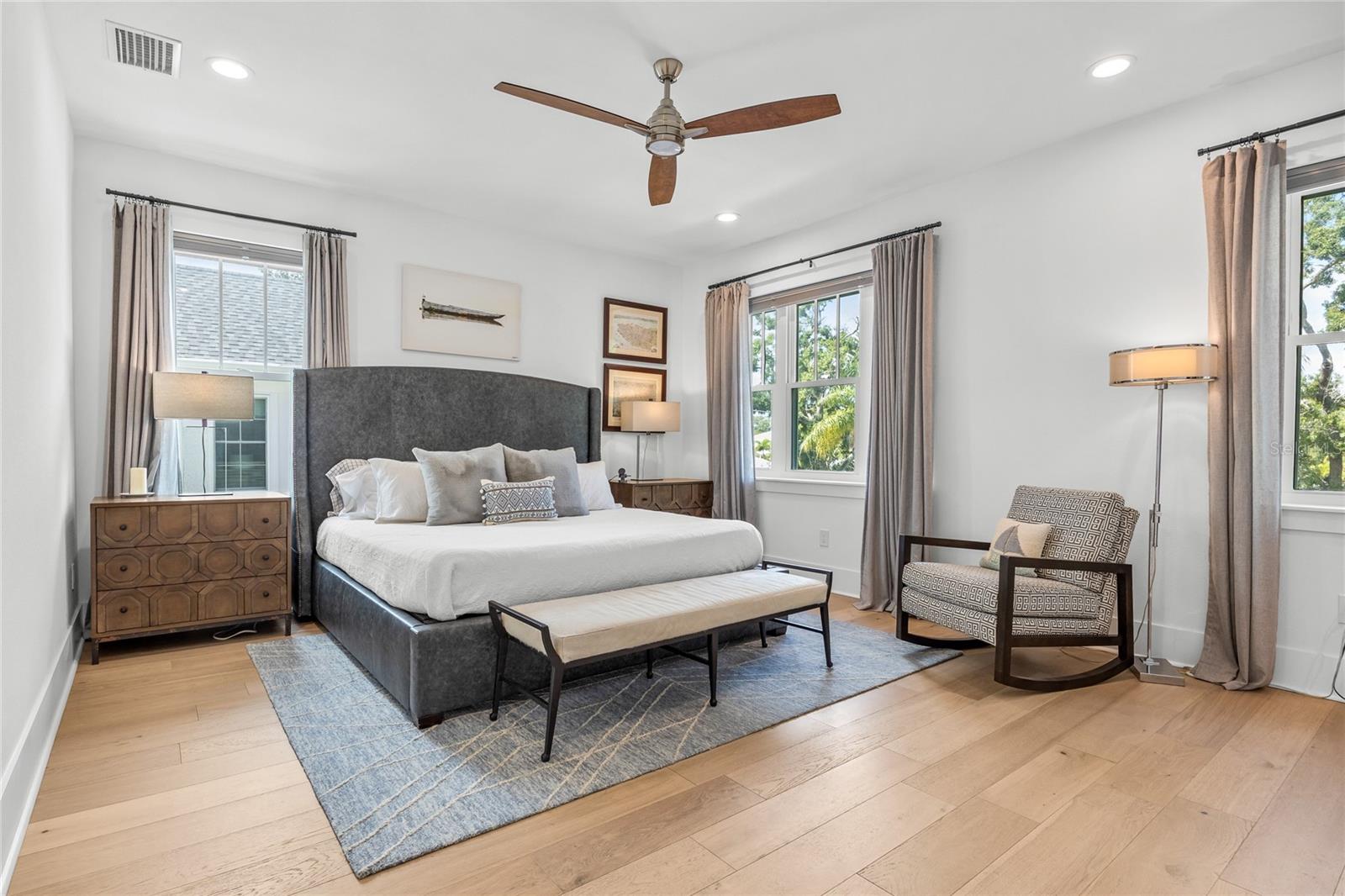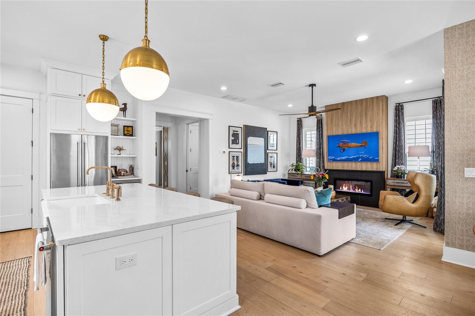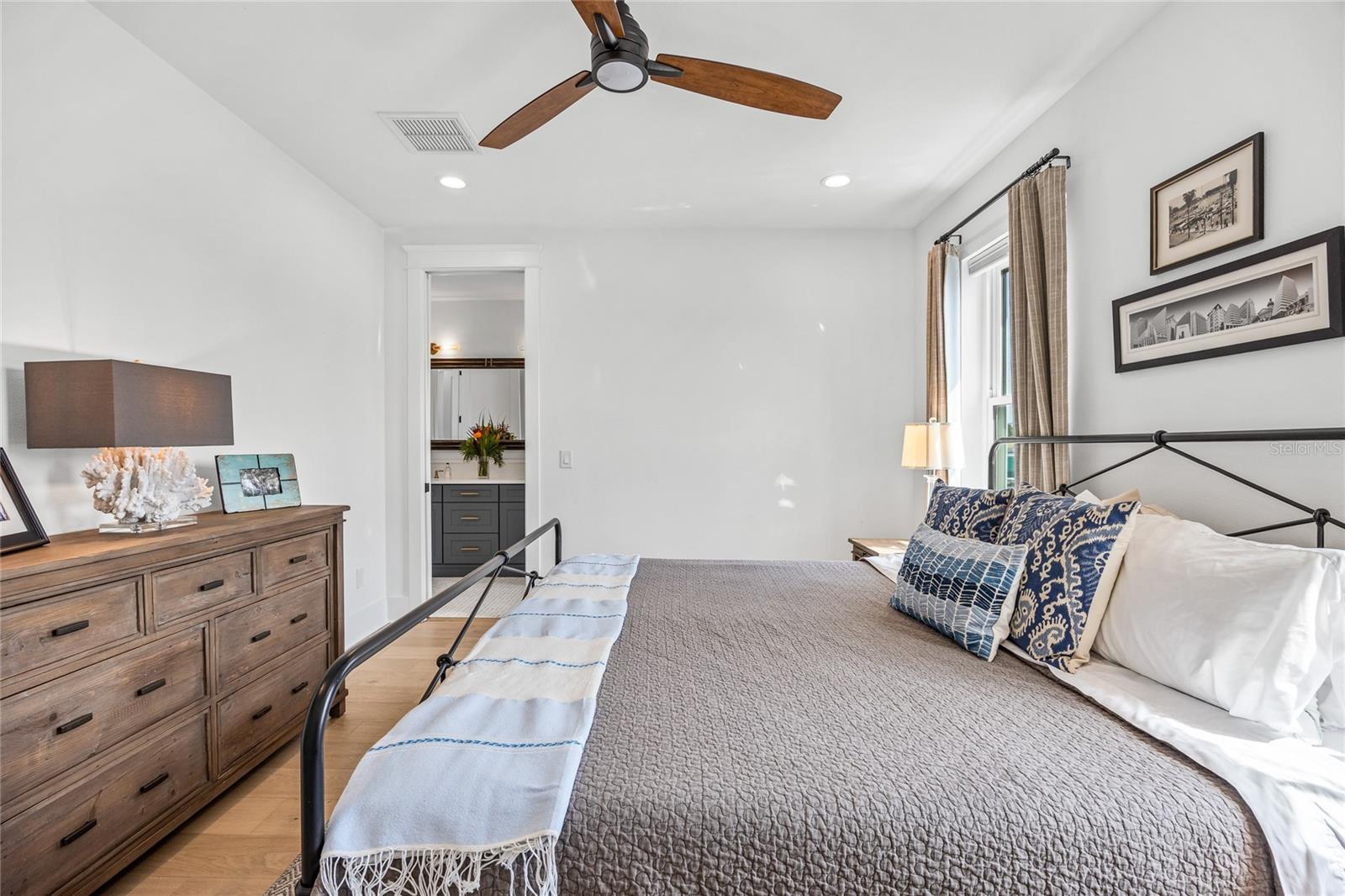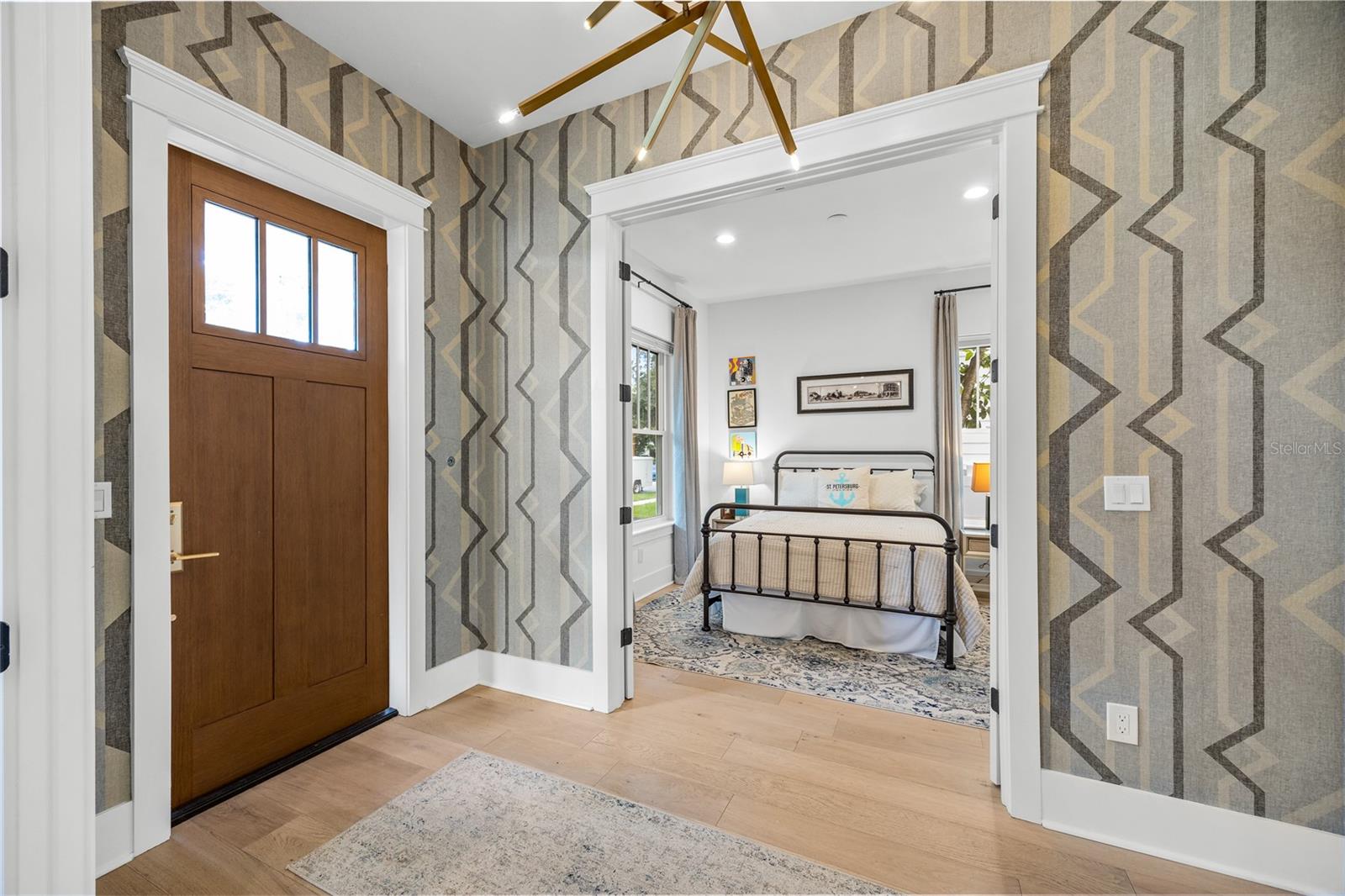 Why wait for new construction when this professionally designed 2023 Canopy Builders home is move-in ready today? Nestled in the sought-after Magnolia Heights neighborhood, this Four Square model sits on a premium 6,200 SF lot high and dry in Flood Zone X. Built by one of St. Petersburg’s most acclaimed builders, no detail has been overlooked in this 4-bedroom + office + loft, 3-bathroom residence with a detached 2-car garage with an electric charger. From the moment you arrive, the timeless curb appeal shines with Hardie Board plank siding, impact-rated windows and doors, gas lanterns on the welcoming front porch, and a pavered walkway framed by canopy oaks. Inside, 10’ ceilings on the main level, 8’ solid interior doors, and a designer finish package set a sophisticated tone. The open-concept floor plan flows effortlessly from the living area to the chef’s kitchen—complete with a spacious island, quartz countertops, top-stack cabinetry, and a KitchenAid appliance suite featuring a 36" natural gas range. Perfect for entertaining, the home also features front and rear porches and a backyard large enough for your dream pool and outdoor retreat. Upstairs, you’ll find a versatile loft, a laundry room with custom cabinetry, quartz counters, and a sink, along with abundant storage. The primary suite is a true sanctuary with a spa-like bathroom offering a freestanding soaking tub, dual vanities, a glass walk-in shower, and a spacious walk-in custom closet. Everyday convenience meets style with impact windows, 9’ ceilings upstairs, and thoughtful touches like custom lighting and built-in storage. Location is everything—and this quiet, tree-lined street puts you minutes from Downtown St. Pete, Crescent Lake, coffee shops, restaurants, and the beaches. Move-in ready, expertly designed, and built to the highest standards—this is the Magnolia Heights home you’ve been waiting for.