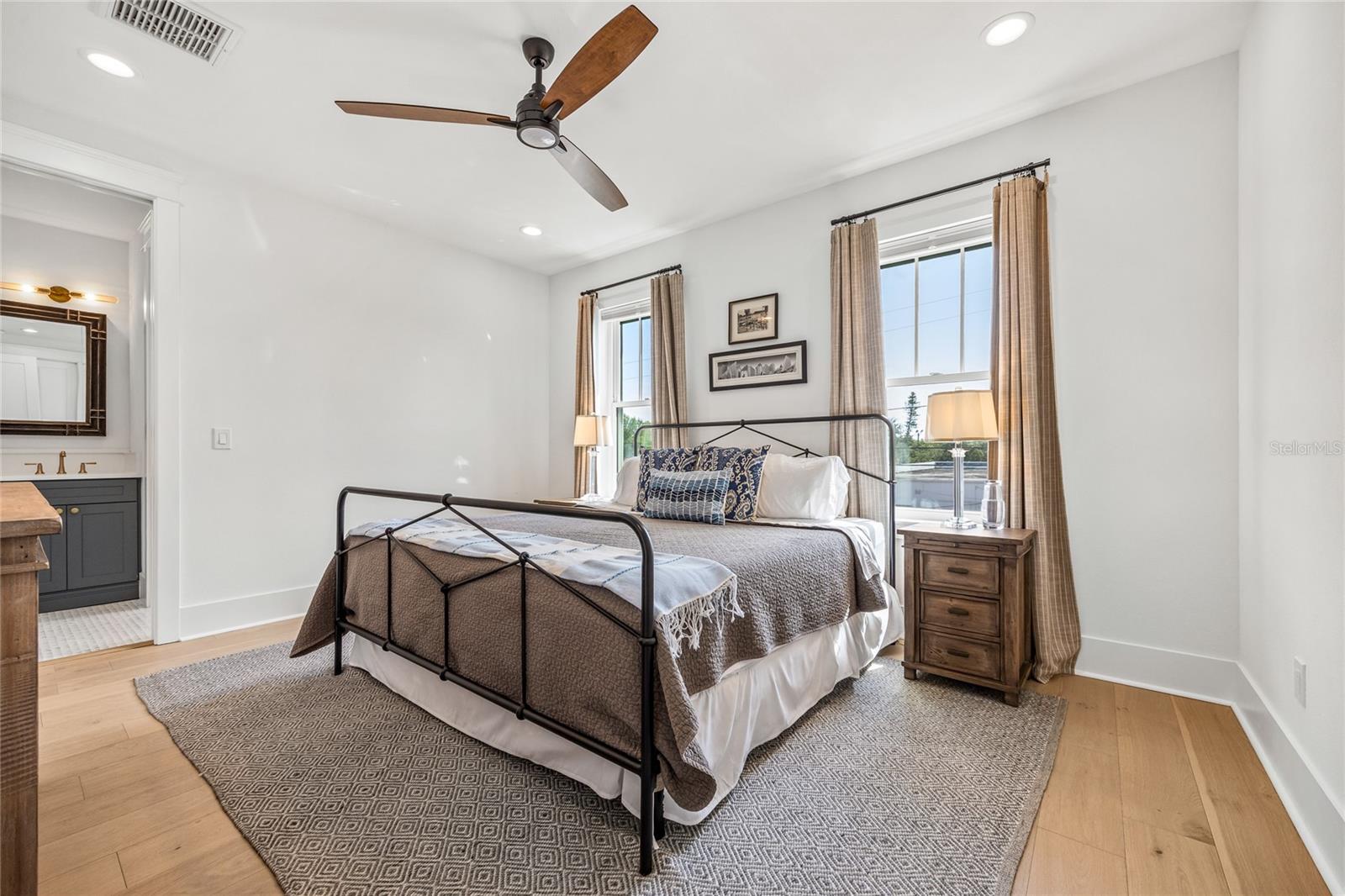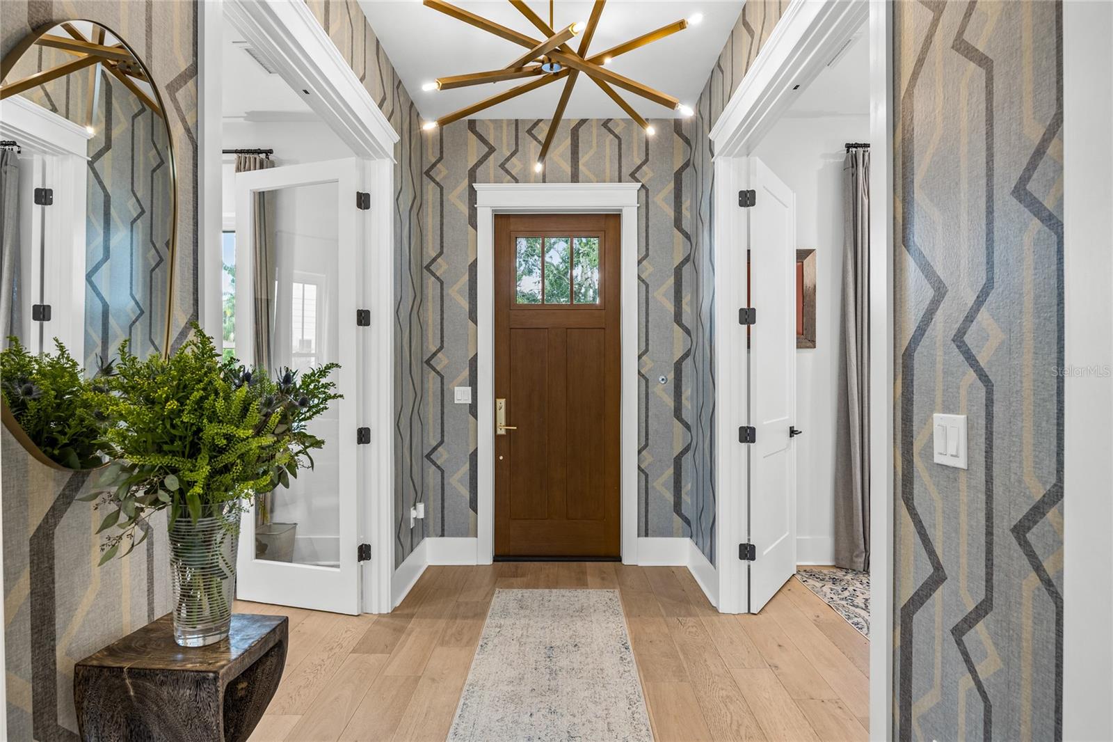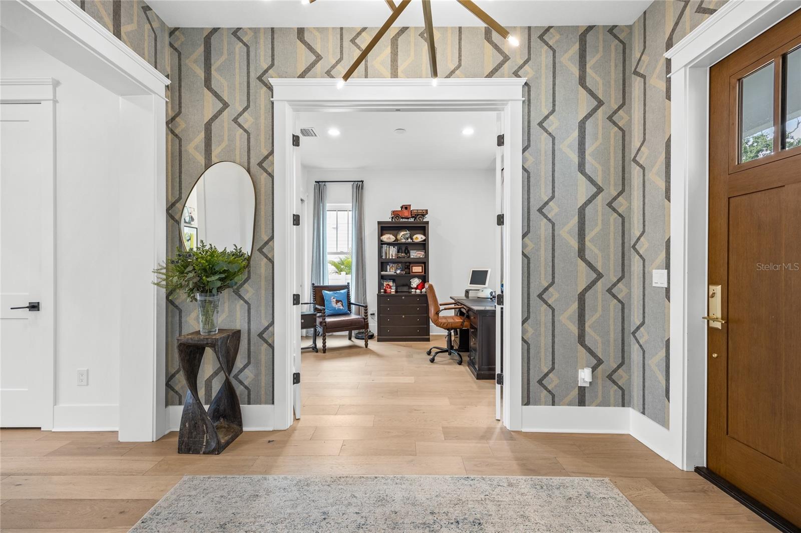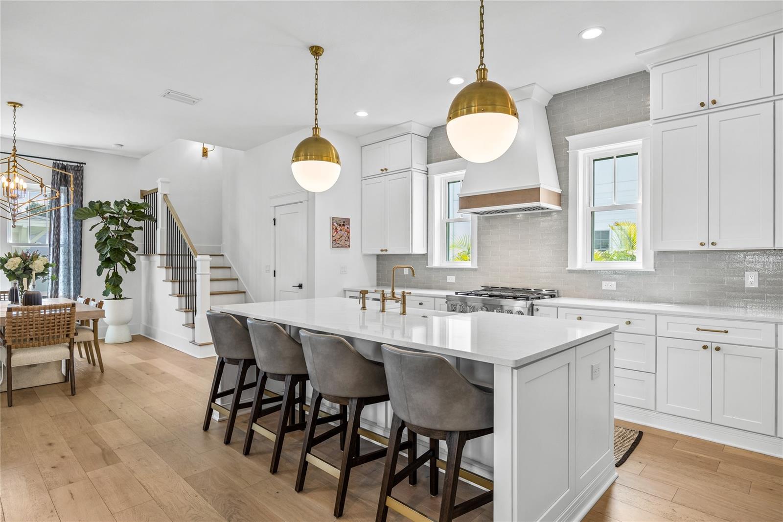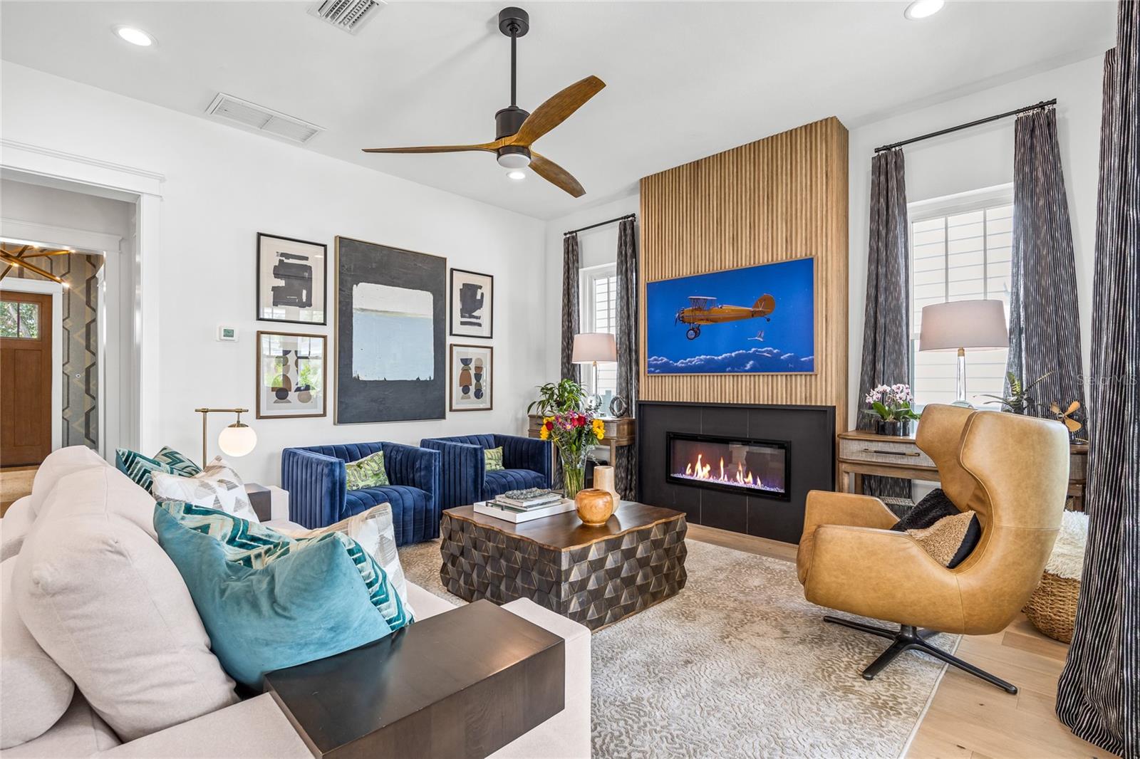 Why wait for new construction when this professionally designed 2023 Canopy Builders home is move-in ready today? Nestled in the sought-after Magnolia Heights neighborhood, this Four Square model sits on a premium 6,200 SF lot high and dry in Flood Zone X. Built by one of St. Petersburg’s most acclaimed builders, no detail has been overlooked in this 4-bedroom + office + loft, 3-bathroom residence with a detached 2-car garage with an electric charger. From the moment you arrive, the timeless curb appeal shines with Hardie Board plank siding, impact-rated windows and doors, gas lanterns on the welcoming front porch, and a pavered walkway framed by canopy oaks. Inside, 10’ ceilings on the main level, 8’ solid interior doors, and a designer finish package set a sophisticated tone. The open-concept floor plan flows effortlessly from the living area to the chef’s kitchen—complete with a spacious island, quartz countertops, top-stack cabinetry, and a KitchenAid appliance suite featuring a 36" natural gas range. Perfect for entertaining, the home also features front and rear porches and a backyard large enough for your dream pool and outdoor retreat. Upstairs, you’ll find a versatile loft, a laundry room with custom cabinetry, quartz counters, and a sink, along with abundant storage. The primary suite is a true sanctuary with a spa-like bathroom offering a freestanding soaking tub, dual vanities, a glass walk-in shower, and a spacious walk-in custom closet. Everyday convenience meets style with impact windows, 9’ ceilings upstairs, and thoughtful touches like custom lighting and built-in storage. Location is everything—and this quiet, tree-lined street puts you minutes from Downtown St. Pete, Crescent Lake, coffee shops, restaurants, and the beaches. Move-in ready, expertly designed, and built to the highest standards—this is the Magnolia Heights home you’ve been waiting for.