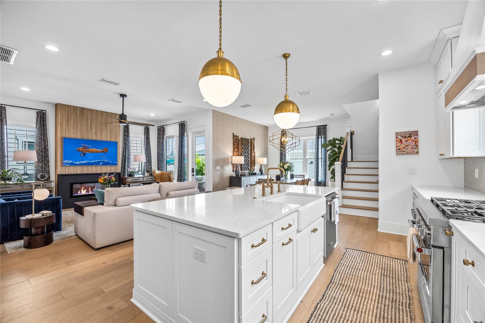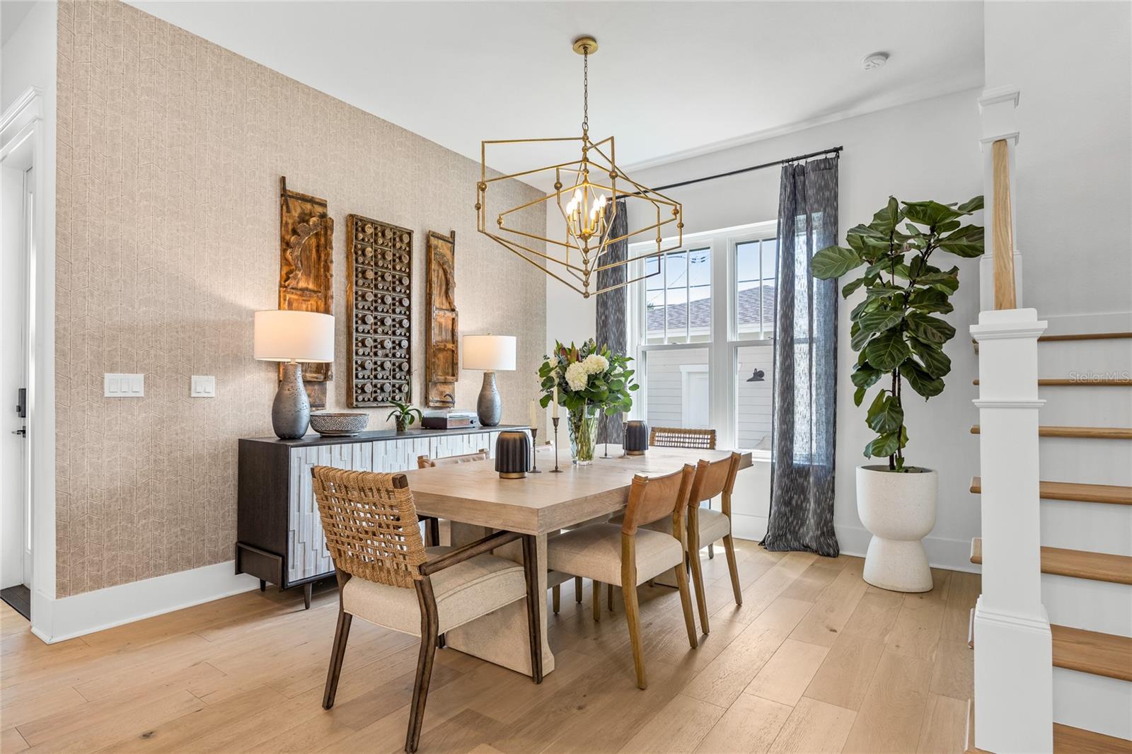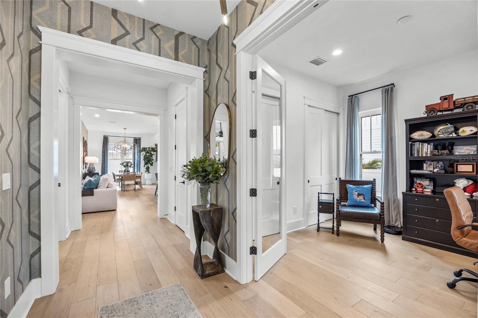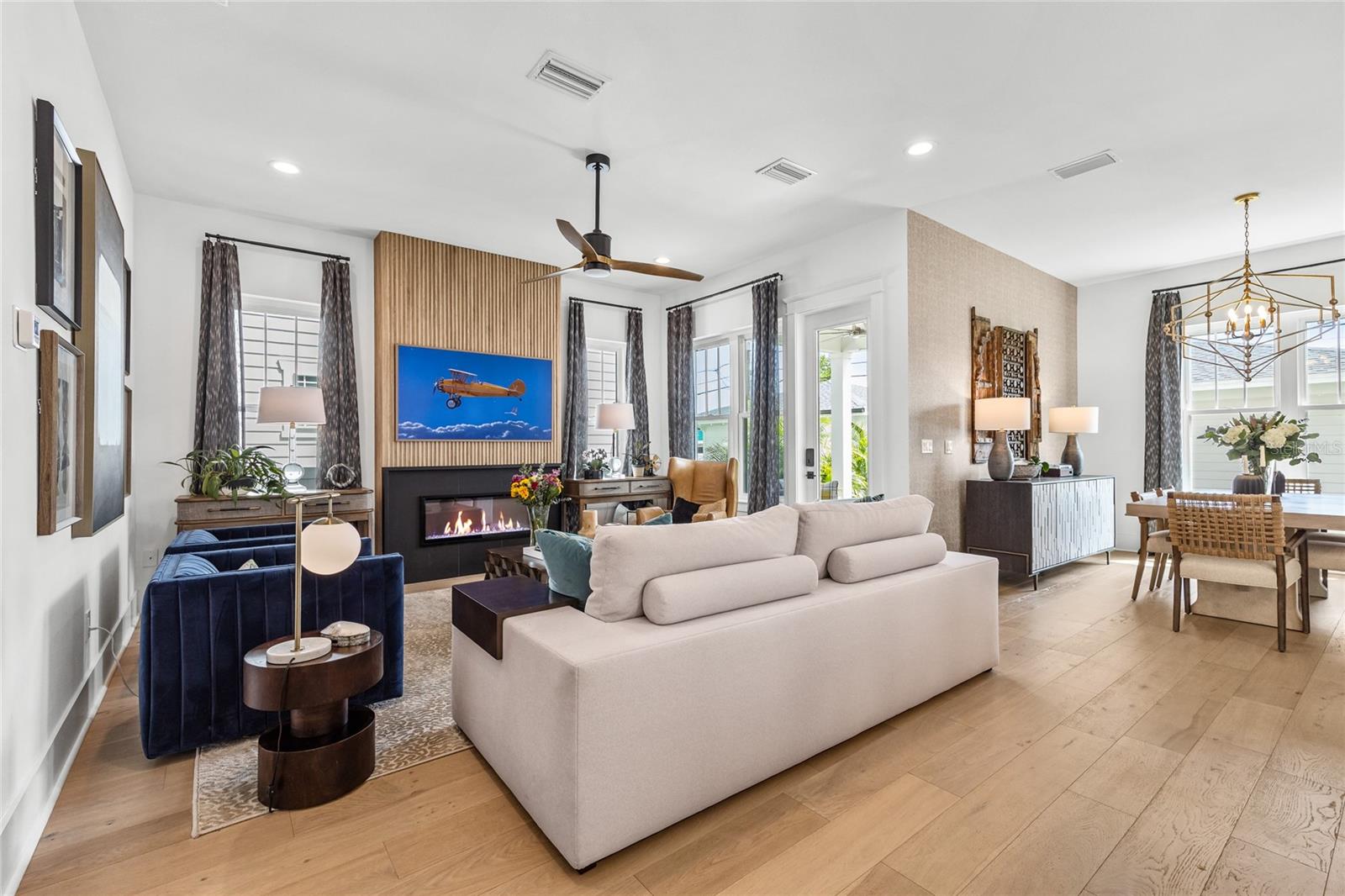 Why wait for new construction when this professionally designed 2023 Canopy Builders home is move-in ready today? Nestled in the sought-after Magnolia Heights neighborhood, this Four Square model sits on a premium 6,200 SF lot high and dry in Flood Zone X. Built by one of St. Petersburg’s most acclaimed builders, no detail has been overlooked in this 4-bedroom + office + loft, 3-bathroom residence with a detached 2-car garage with an electric charger. From the moment you arrive, the timeless curb appeal shines with Hardie Board plank siding, impact-rated windows and doors, gas lanterns on the welcoming front porch, and a pavered walkway framed by canopy oaks. Inside, 10’ ceilings on the main level, 8’ solid interior doors, and a designer finish package set a sophisticated tone. The open-concept floor plan flows effortlessly from the living area to the chef’s kitchen—complete with a spacious island, quartz countertops, top-stack cabinetry, and a KitchenAid appliance suite featuring a 36" natural gas range. Perfect for entertaining, the home also features front and rear porches and a backyard large enough for your dream pool and outdoor retreat. Upstairs, you’ll find a versatile loft, a laundry room with custom cabinetry, quartz counters, and a sink, along with abundant storage. The primary suite is a true sanctuary with a spa-like bathroom offering a freestanding soaking tub, dual vanities, a glass walk-in shower, and a spacious walk-in custom closet. Everyday convenience meets style with impact windows, 9’ ceilings upstairs, and thoughtful touches like custom lighting and built-in storage. Location is everything—and this quiet, tree-lined street puts you minutes from Downtown St. Pete, Crescent Lake, coffee shops, restaurants, and the beaches. Move-in ready, expertly designed, and built to the highest standards—this is the Magnolia Heights home you’ve been waiting for.