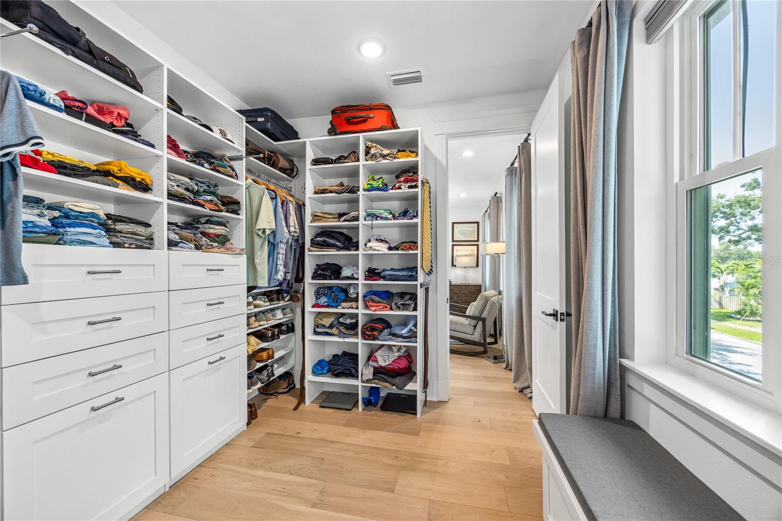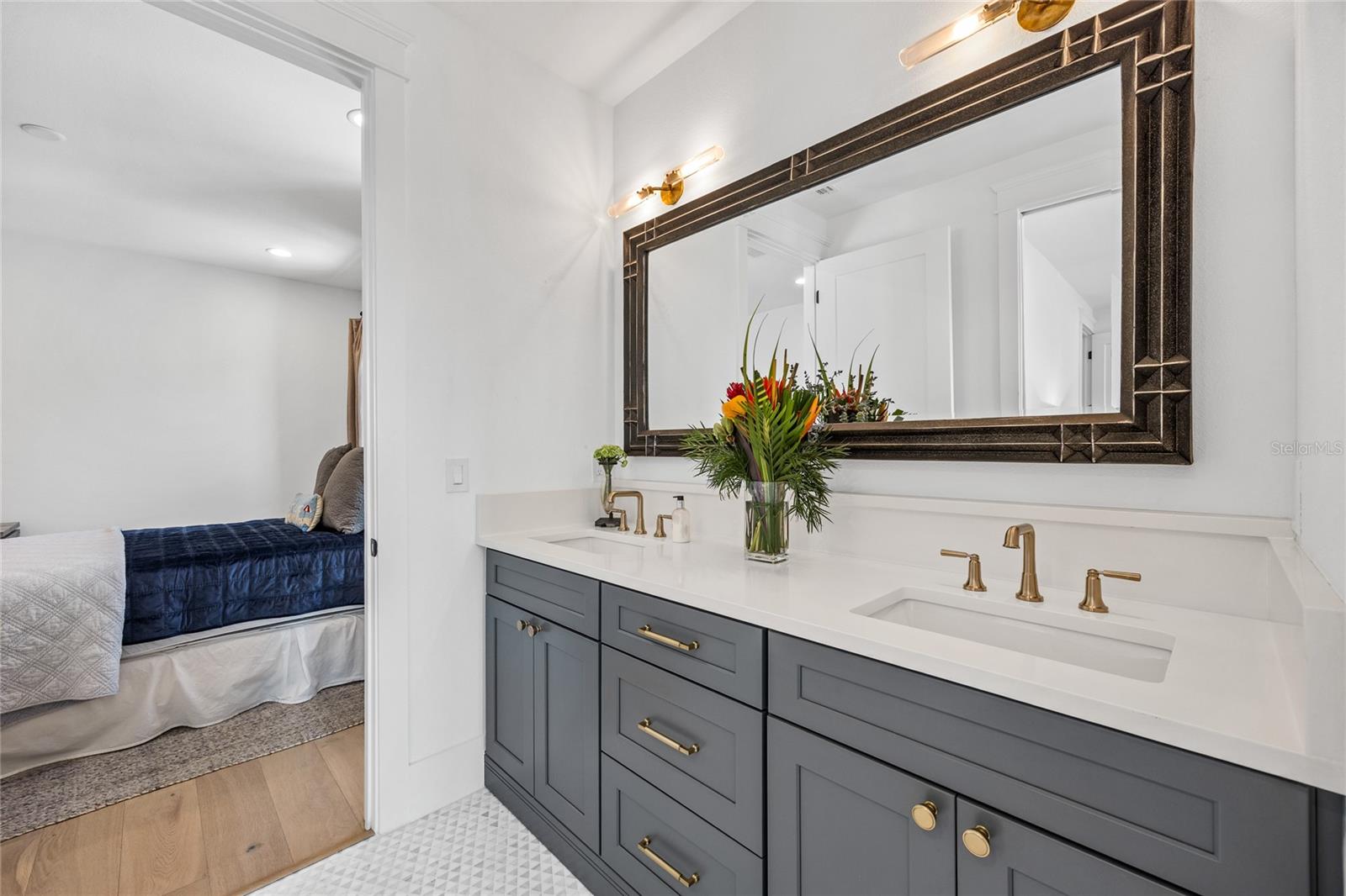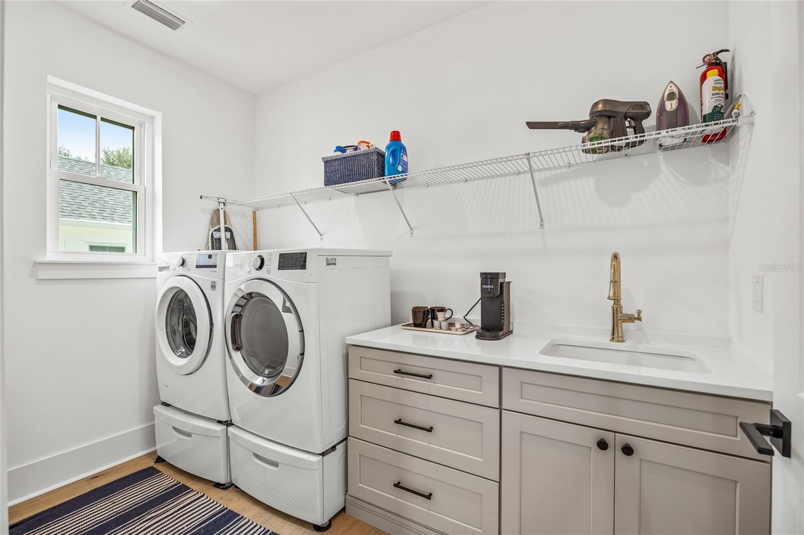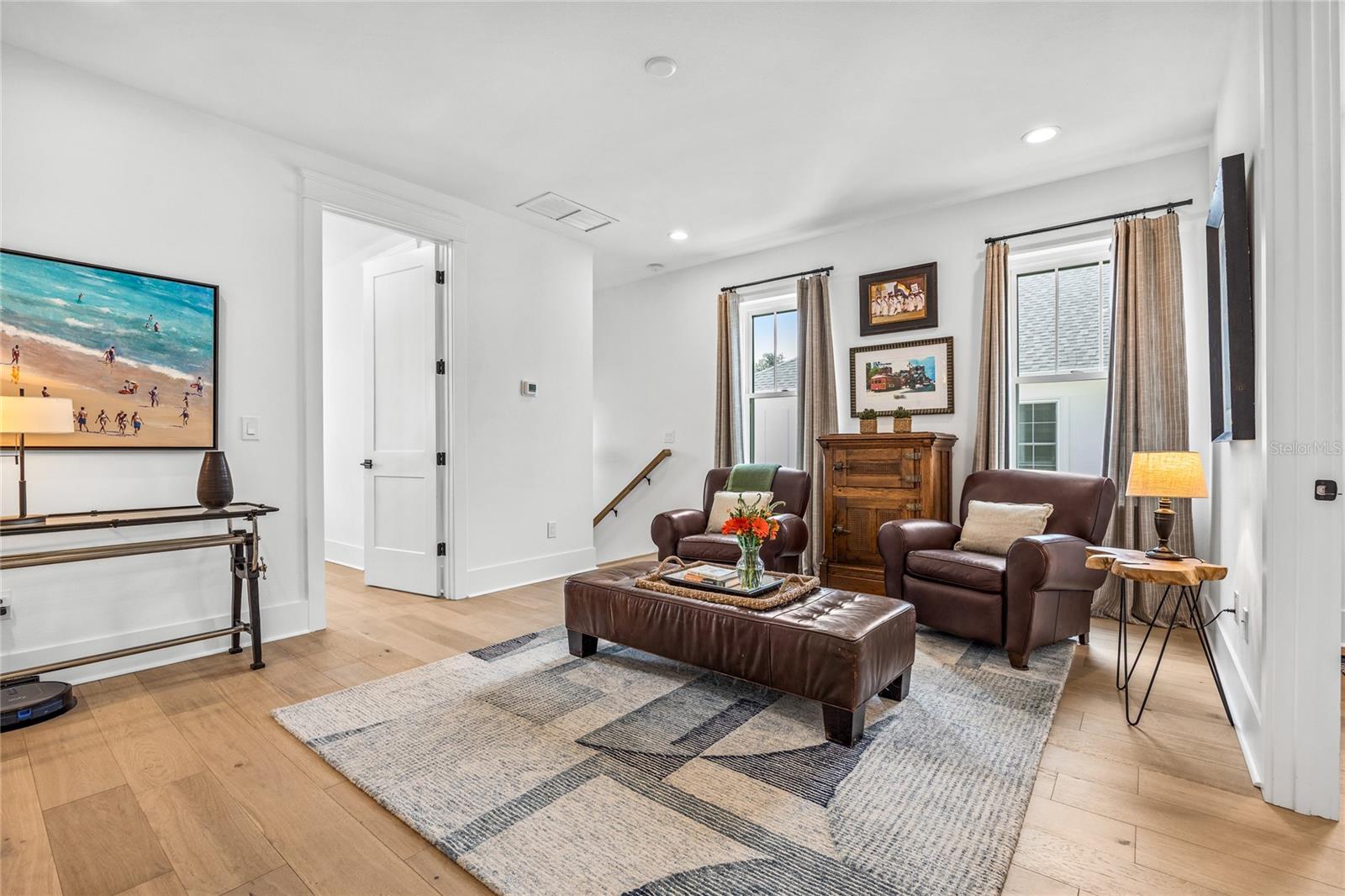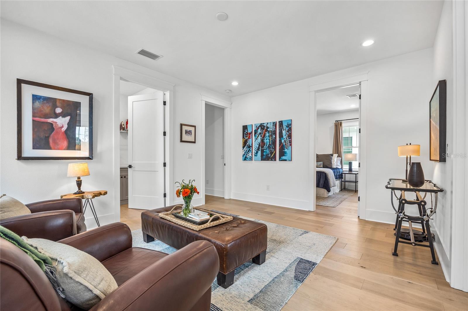 Why wait for new construction when this professionally designed 2023 Canopy Builders home is move-in ready today? Nestled in the sought-after Magnolia Heights neighborhood, this Four Square model sits on a premium 6,200 SF lot high and dry in Flood Zone X. Built by one of St. Petersburg’s most acclaimed builders, no detail has been overlooked in this 4-bedroom + office + loft, 3-bathroom residence with a detached 2-car garage with an electric charger. From the moment you arrive, the timeless curb appeal shines with Hardie Board plank siding, impact-rated windows and doors, gas lanterns on the welcoming front porch, and a pavered walkway framed by canopy oaks. Inside, 10’ ceilings on the main level, 8’ solid interior doors, and a designer finish package set a sophisticated tone. The open-concept floor plan flows effortlessly from the living area to the chef’s kitchen—complete with a spacious island, quartz countertops, top-stack cabinetry, and a KitchenAid appliance suite featuring a 36" natural gas range. Perfect for entertaining, the home also features front and rear porches and a backyard large enough for your dream pool and outdoor retreat. Upstairs, you’ll find a versatile loft, a laundry room with custom cabinetry, quartz counters, and a sink, along with abundant storage. The primary suite is a true sanctuary with a spa-like bathroom offering a freestanding soaking tub, dual vanities, a glass walk-in shower, and a spacious walk-in custom closet. Everyday convenience meets style with impact windows, 9’ ceilings upstairs, and thoughtful touches like custom lighting and built-in storage. Location is everything—and this quiet, tree-lined street puts you minutes from Downtown St. Pete, Crescent Lake, coffee shops, restaurants, and the beaches. Move-in ready, expertly designed, and built to the highest standards—this is the Magnolia Heights home you’ve been waiting for.